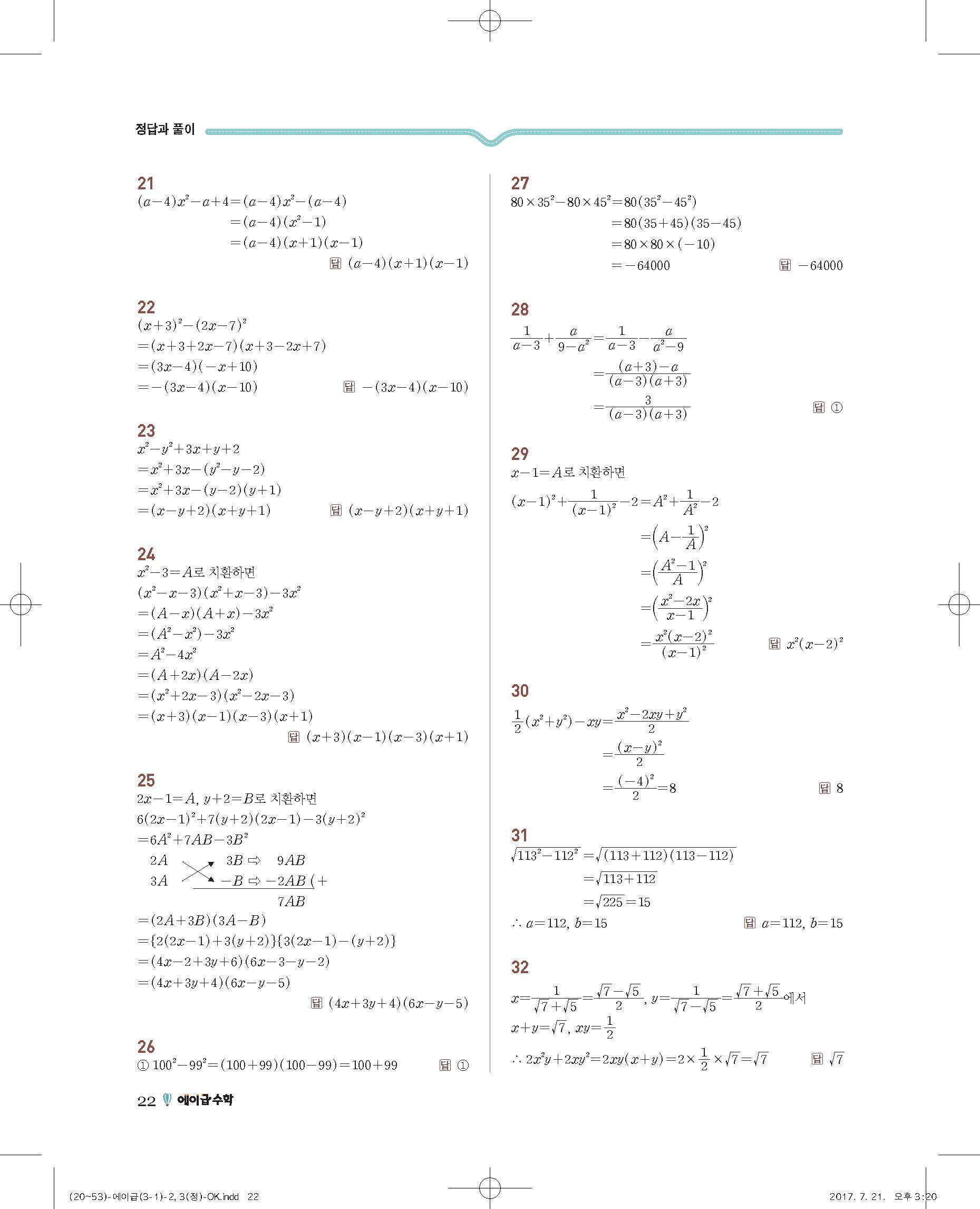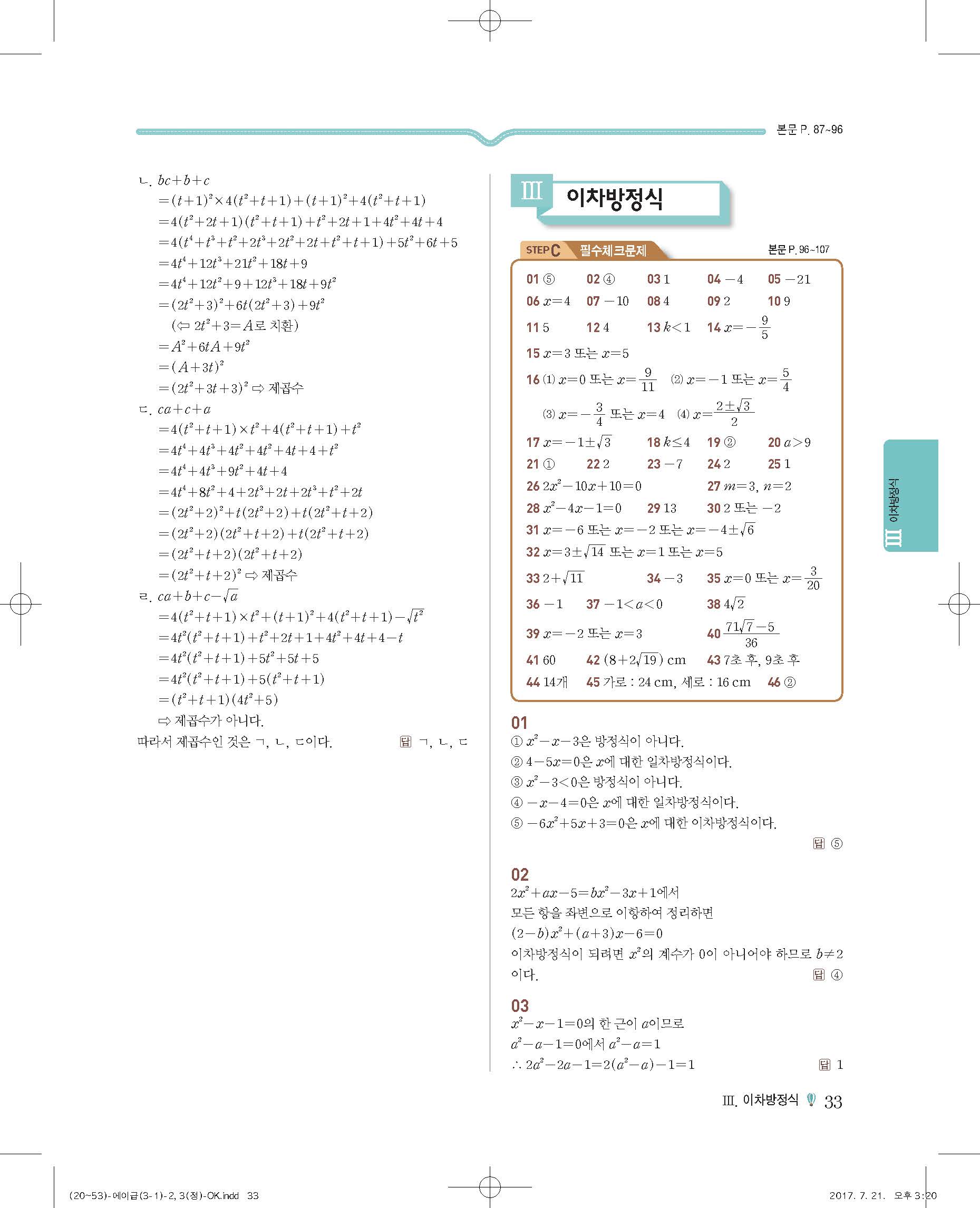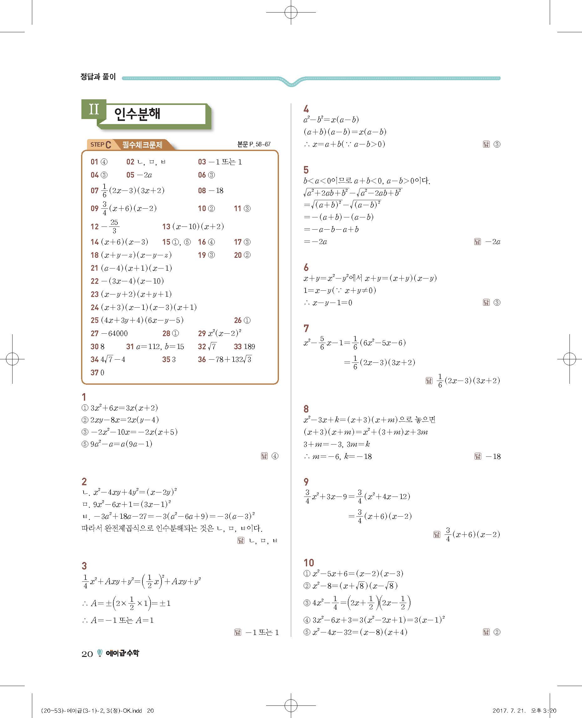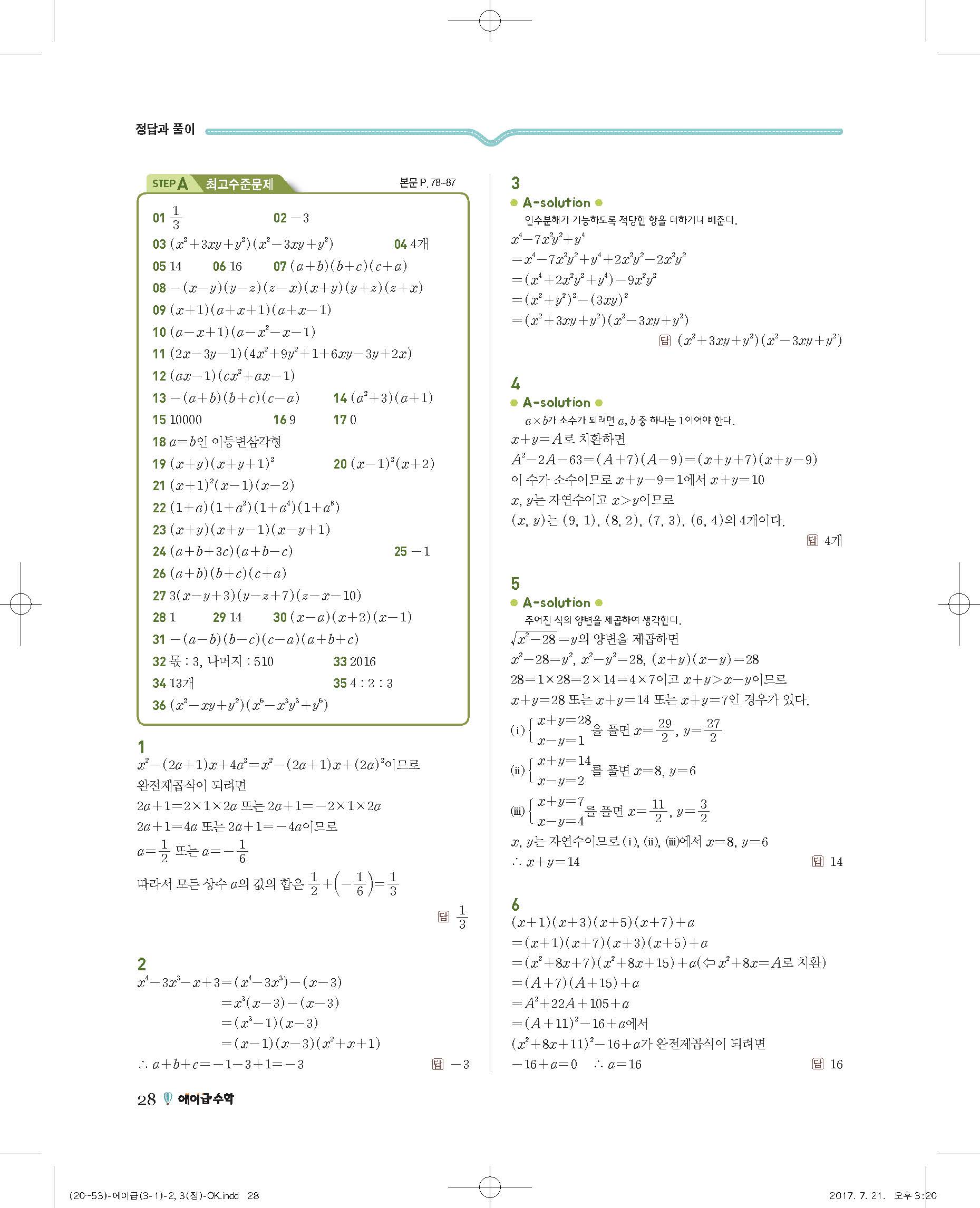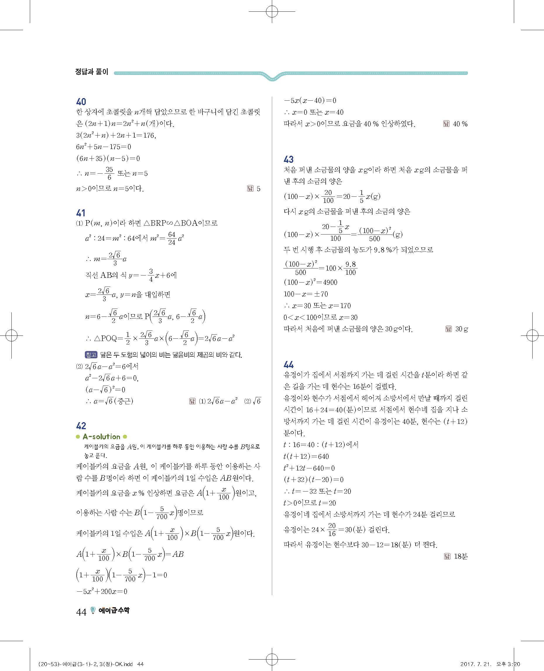에이급수학 중3상 답지 사진답지 빠른답지 모바일최적화