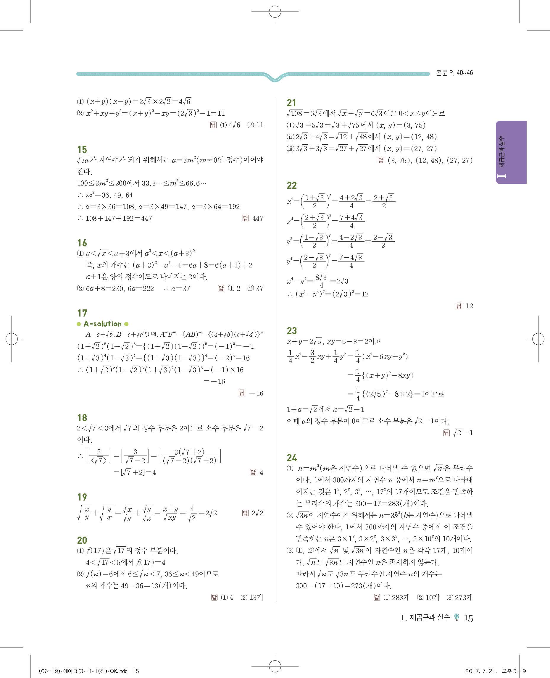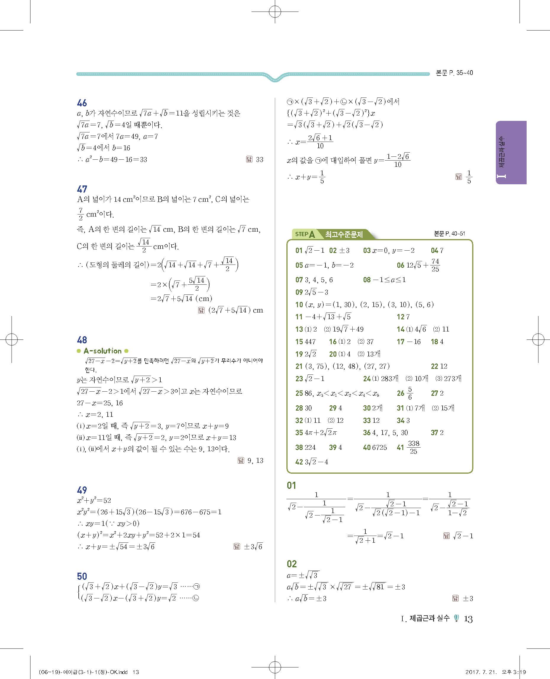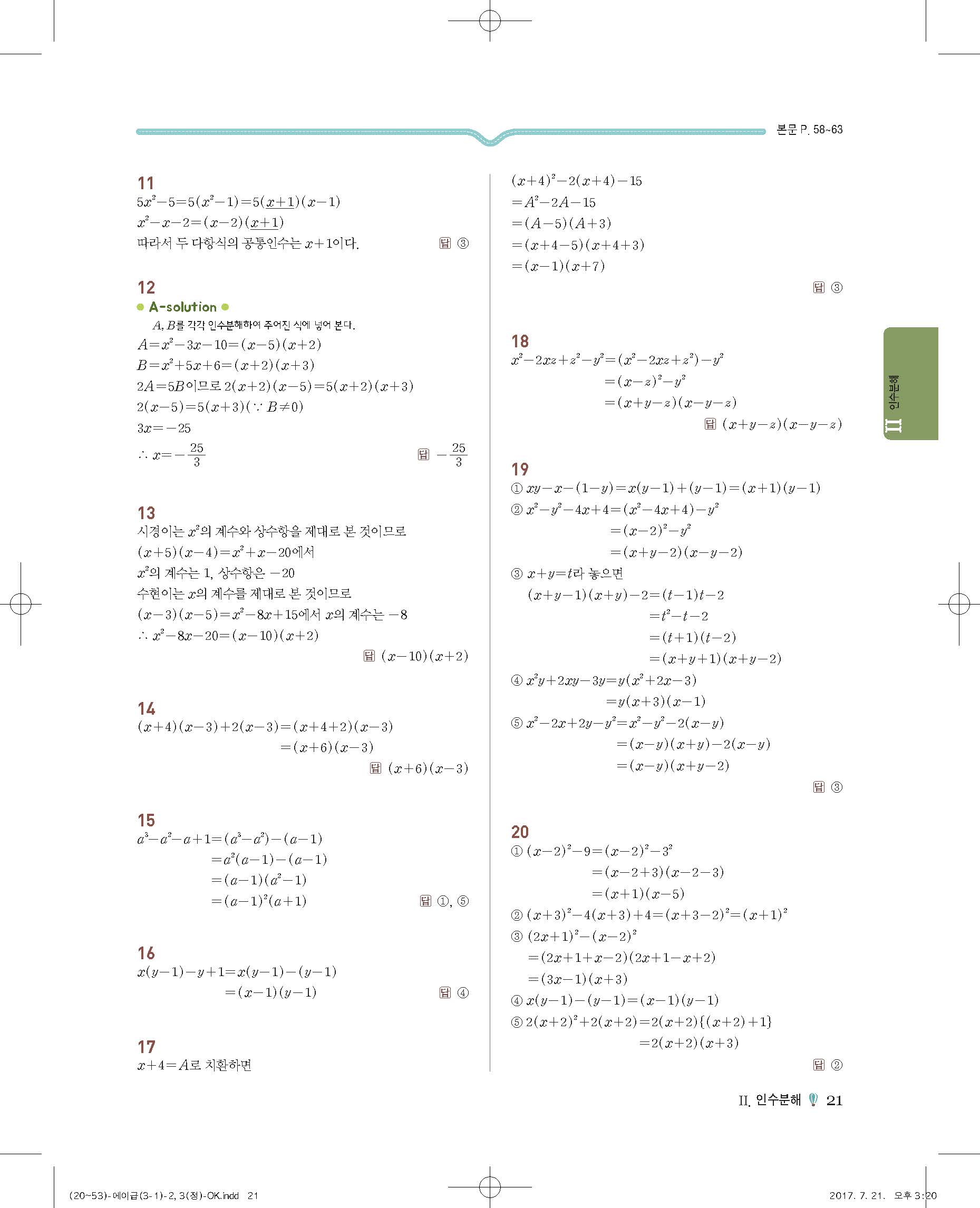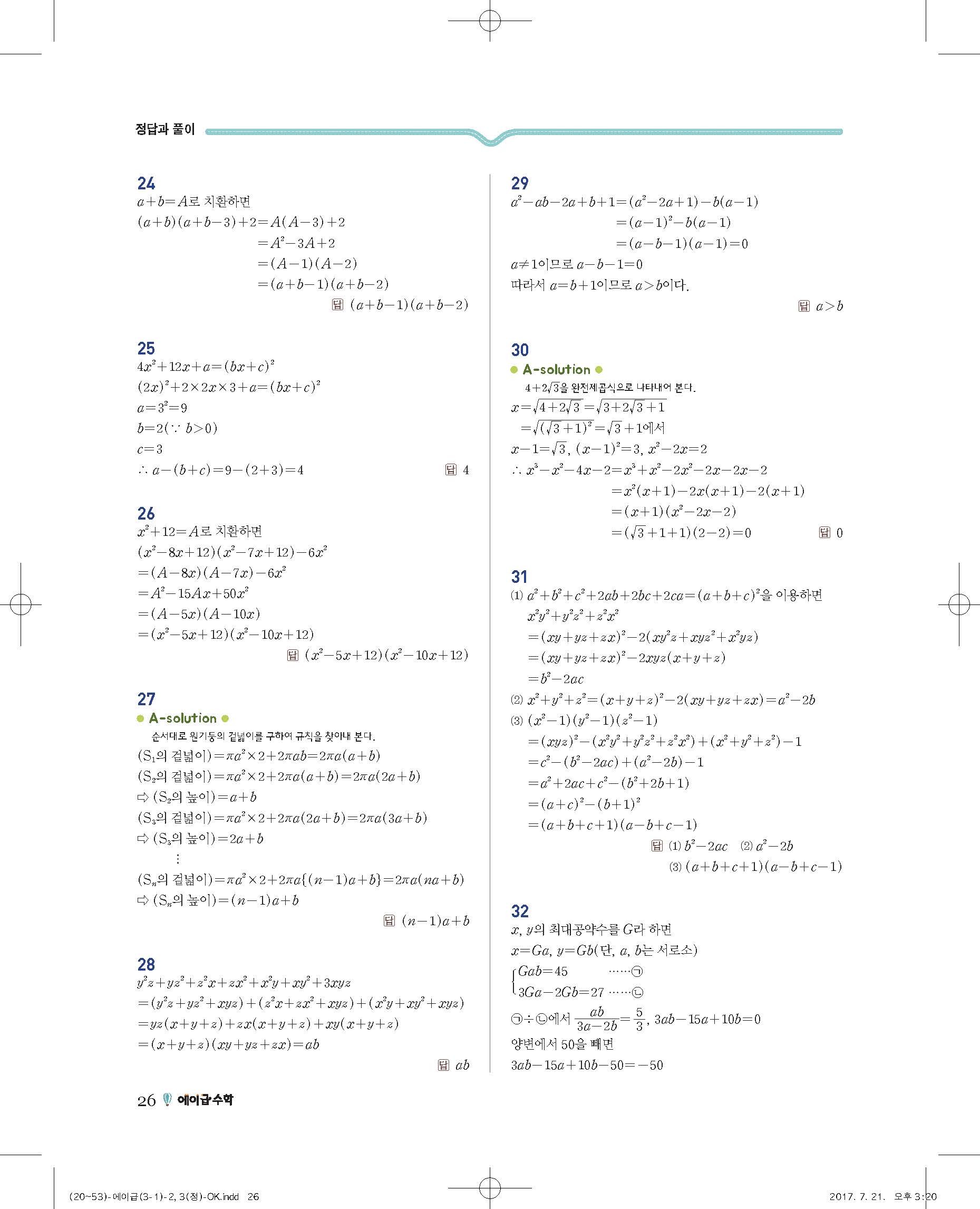 에이급수학 중3상 답지 사진답지 빠른답지 모바일최적화