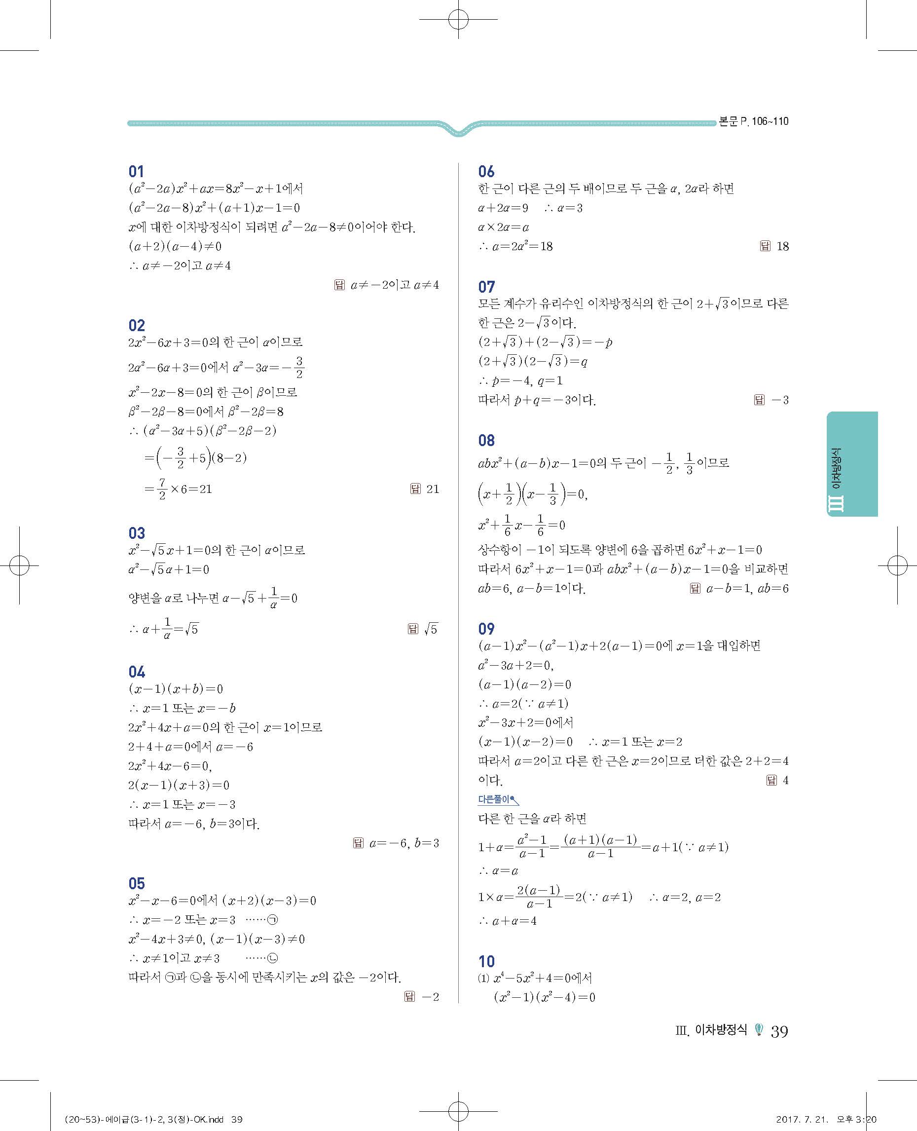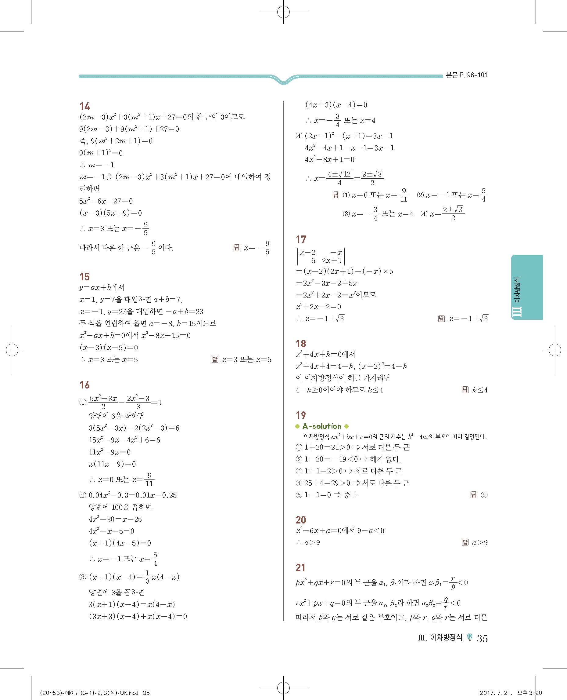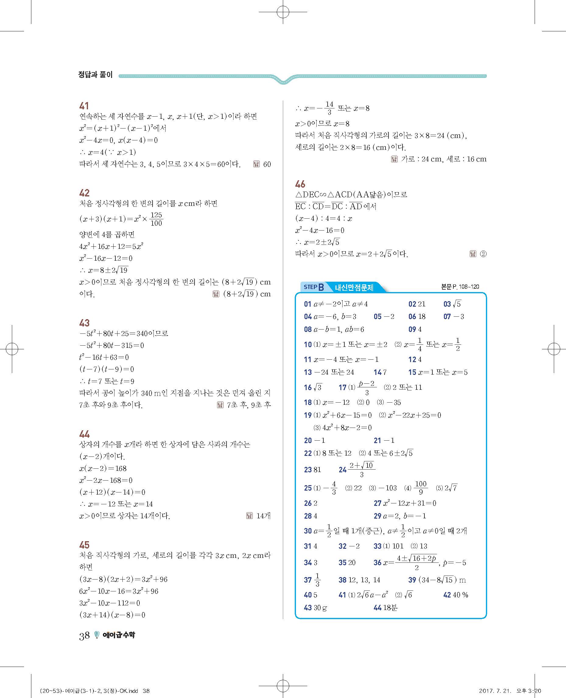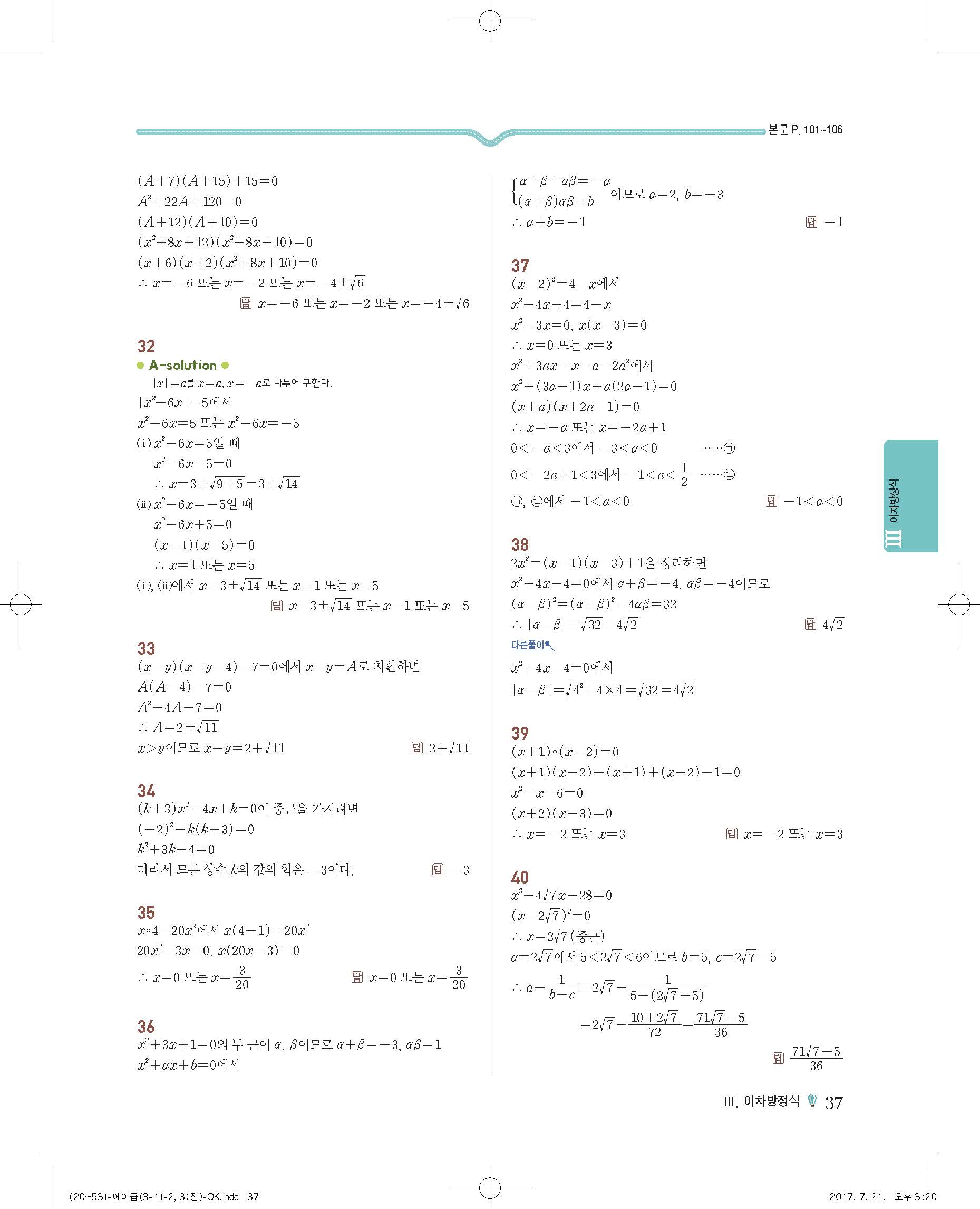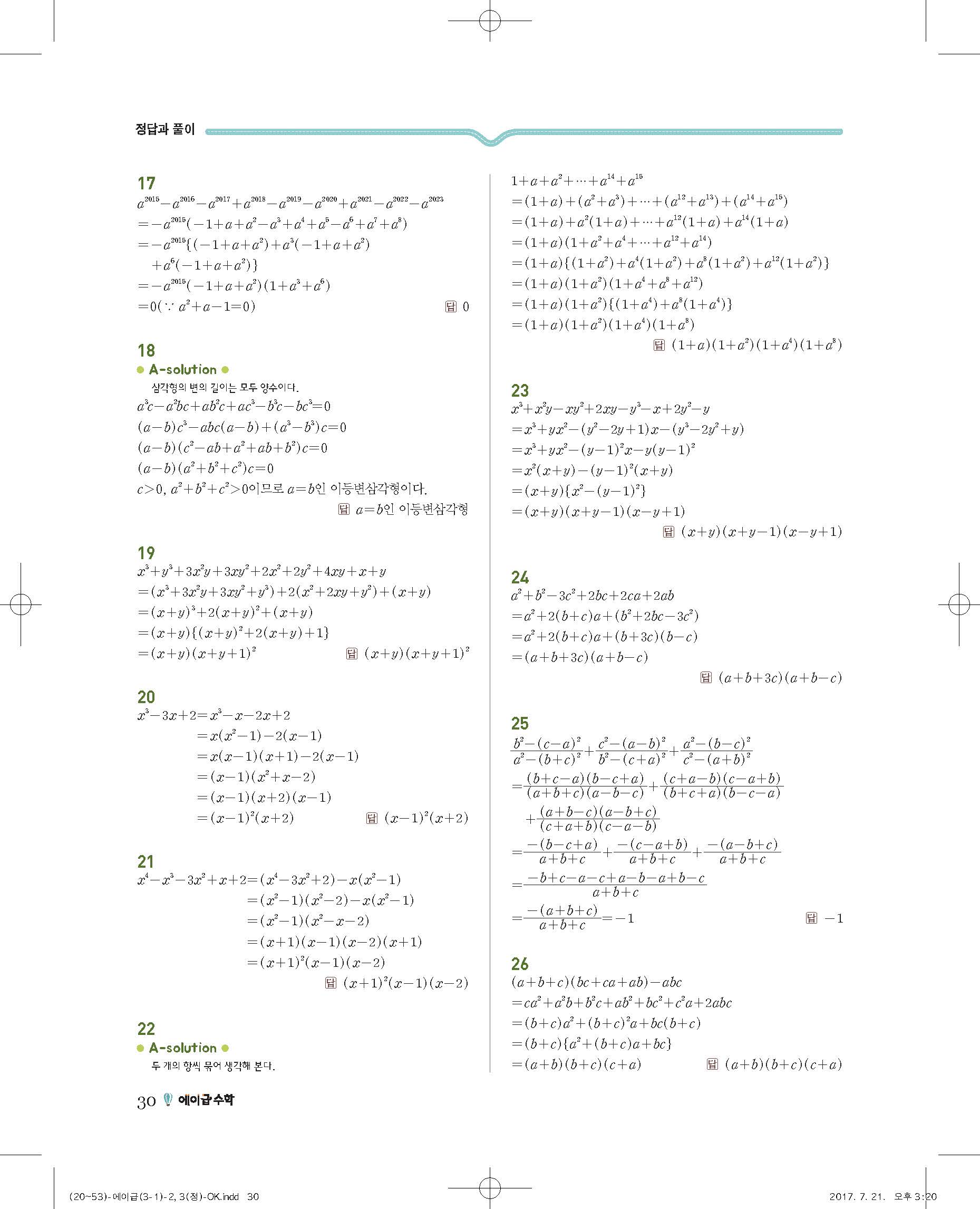 에이급수학 중3상 답지 사진답지 빠른답지 모바일최적화