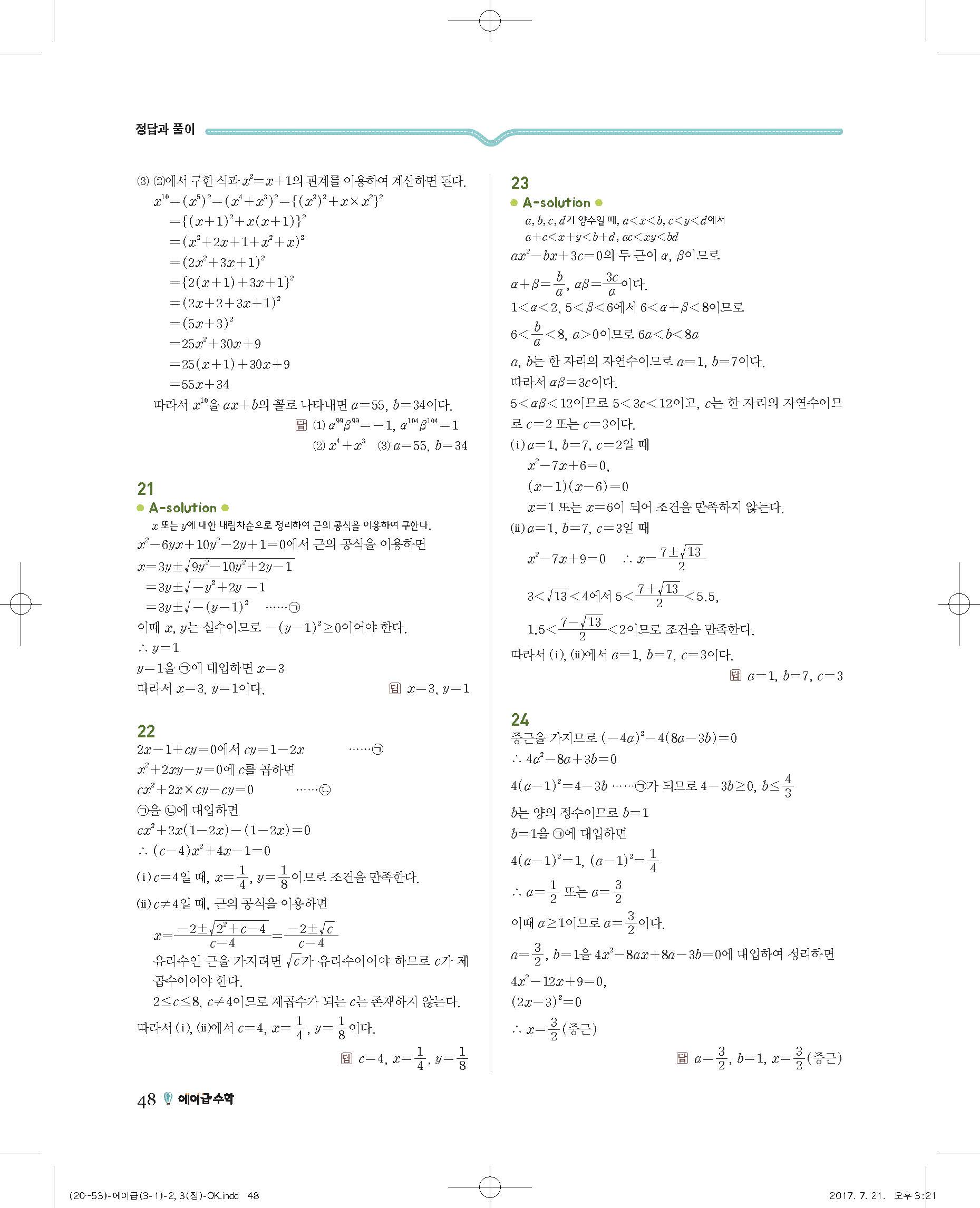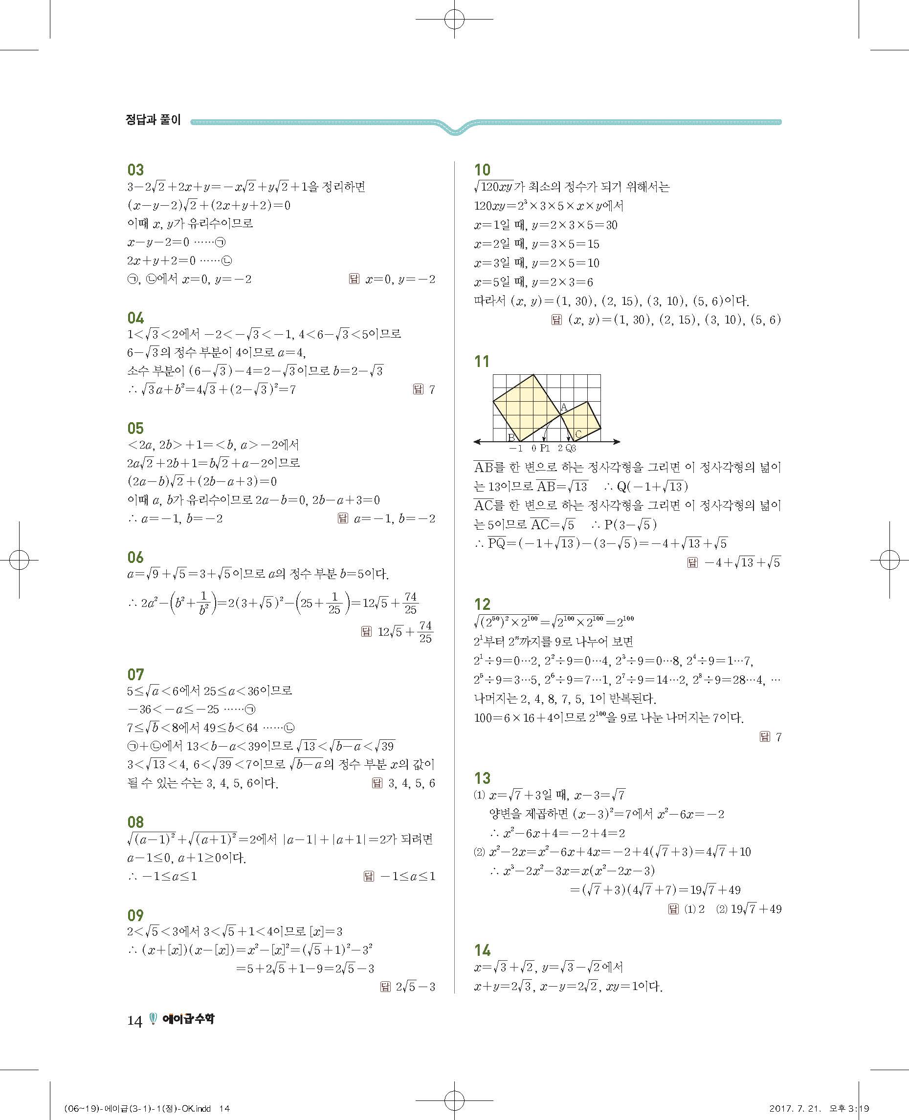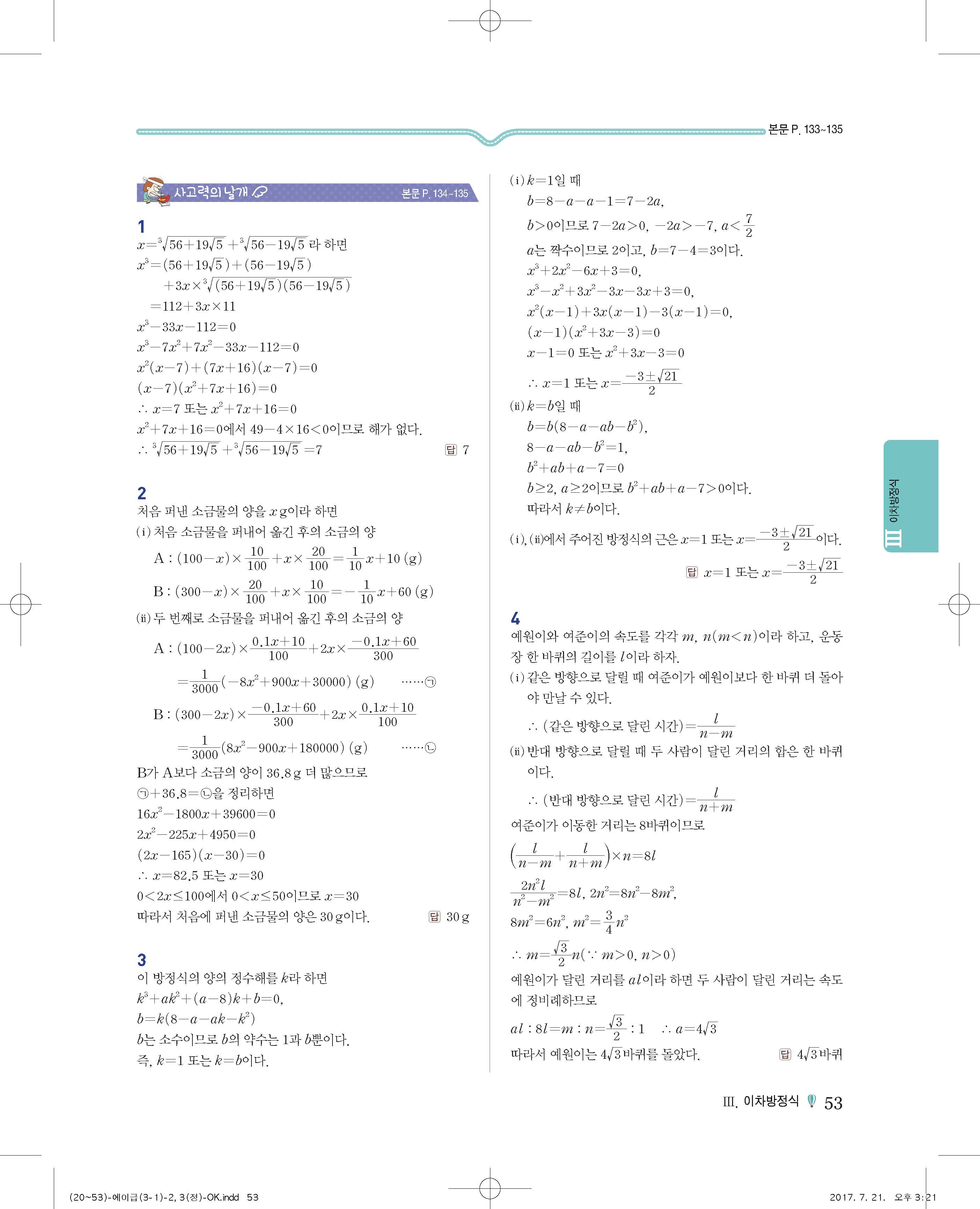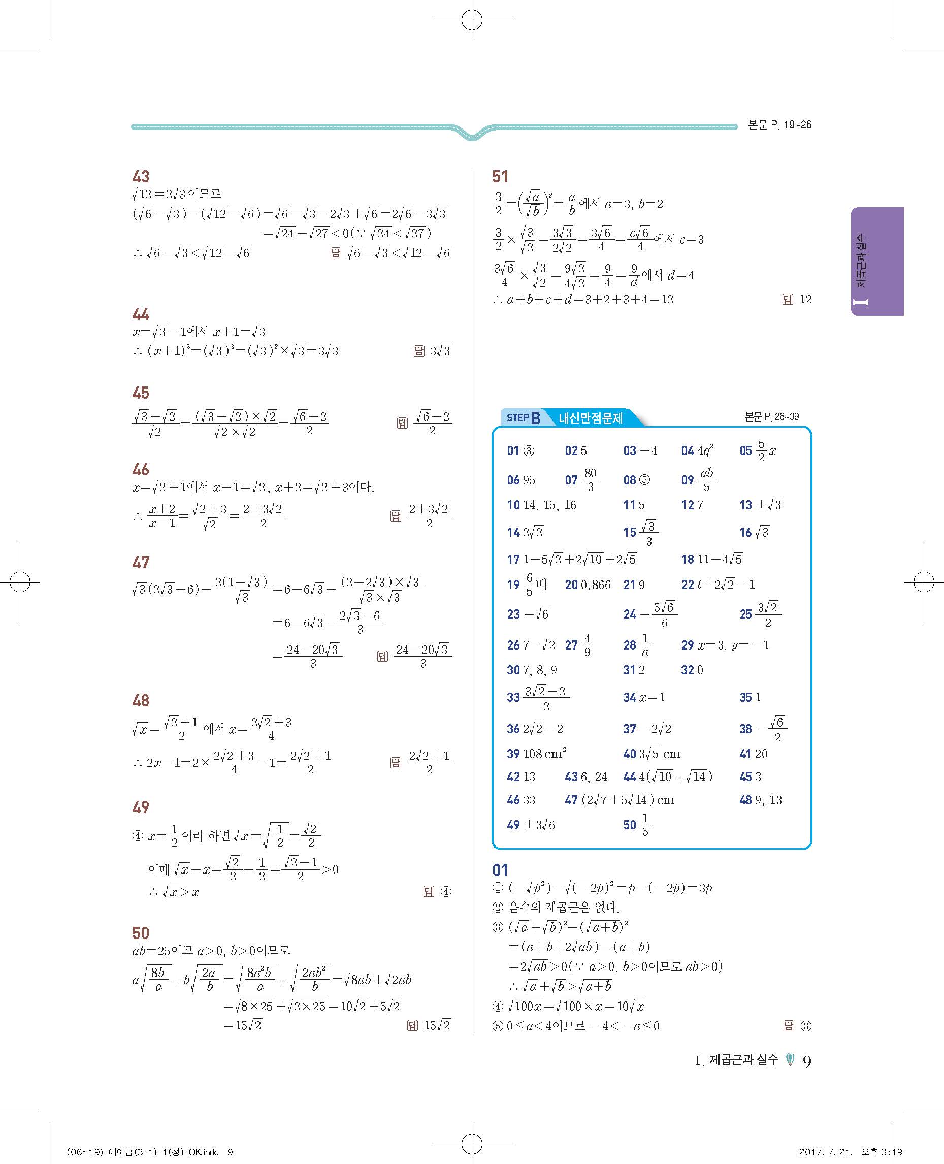 | 교학사 고호경 중3 수학교과서 답지 | |
