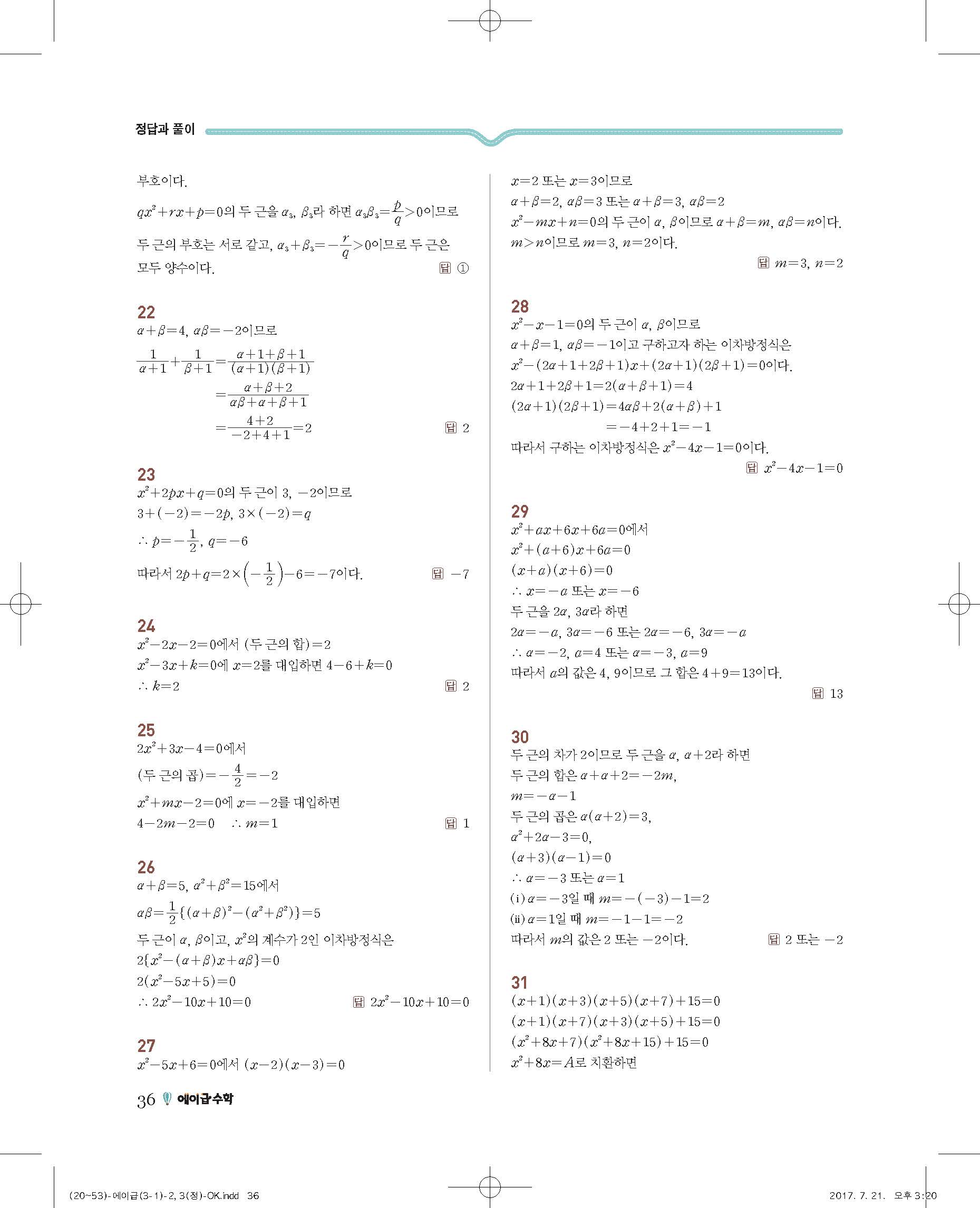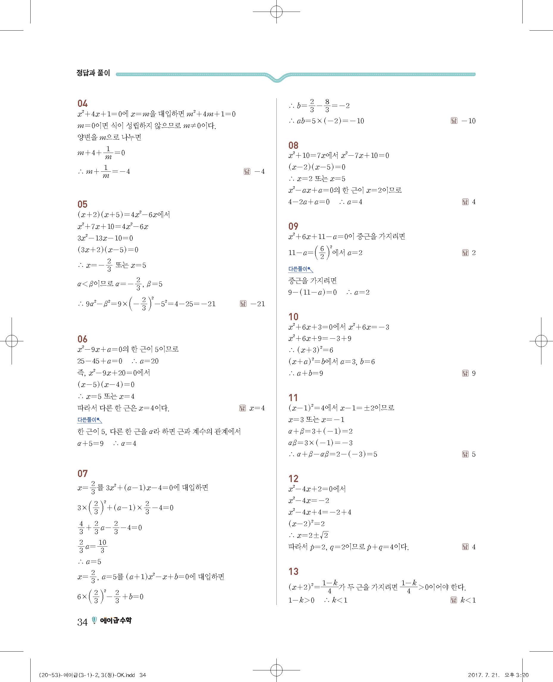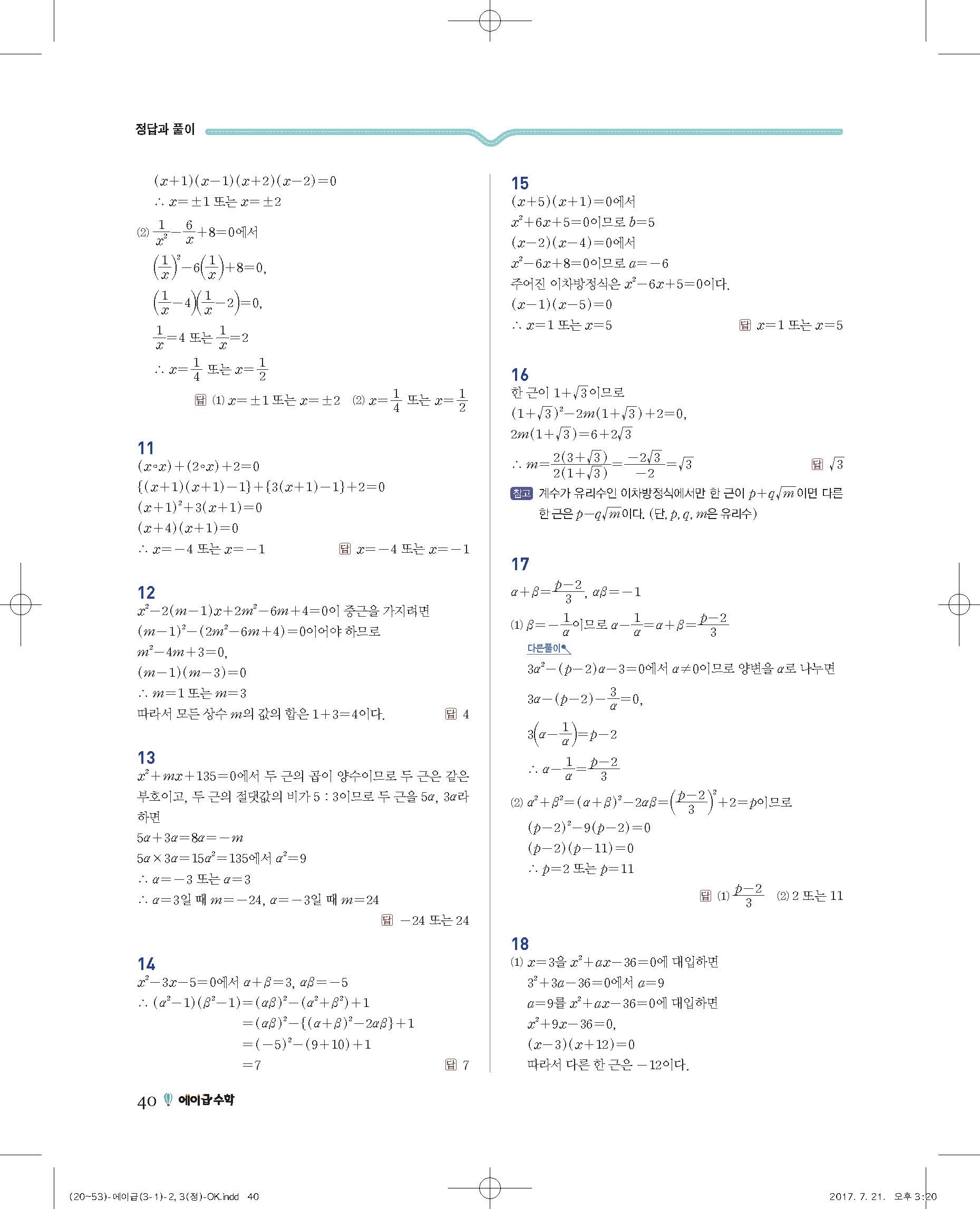 | 교학사 고호경 중3 수학교과서 답지 | |