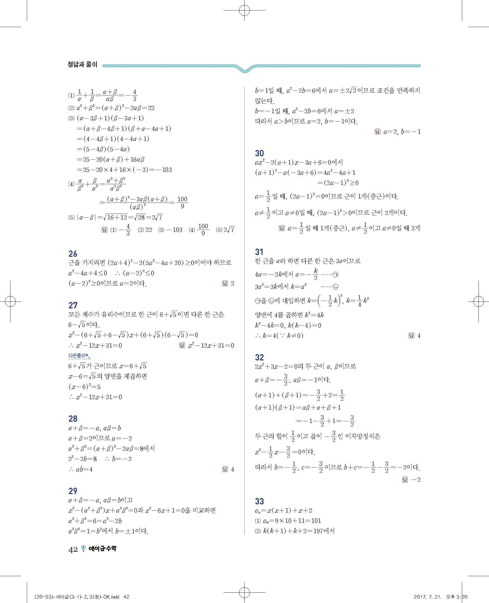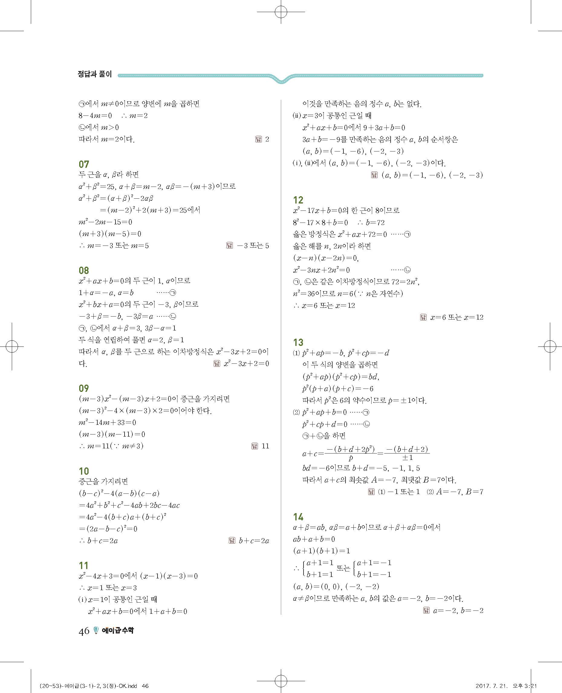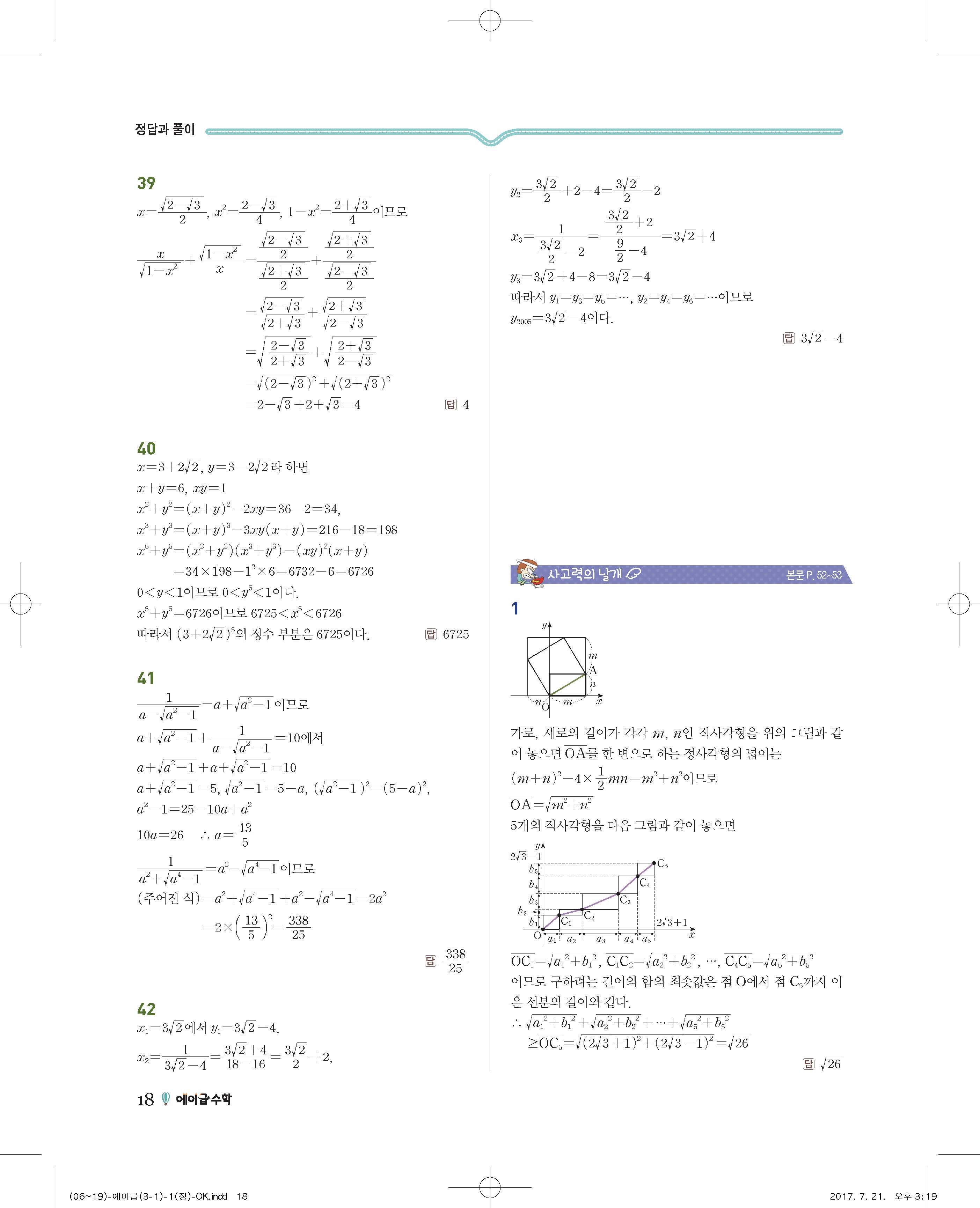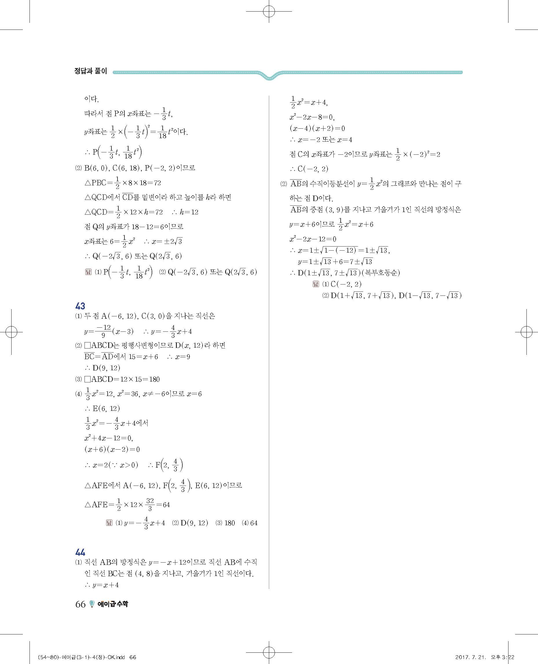 | 교학사 고호경 중3 수학교과서 답지 | |
