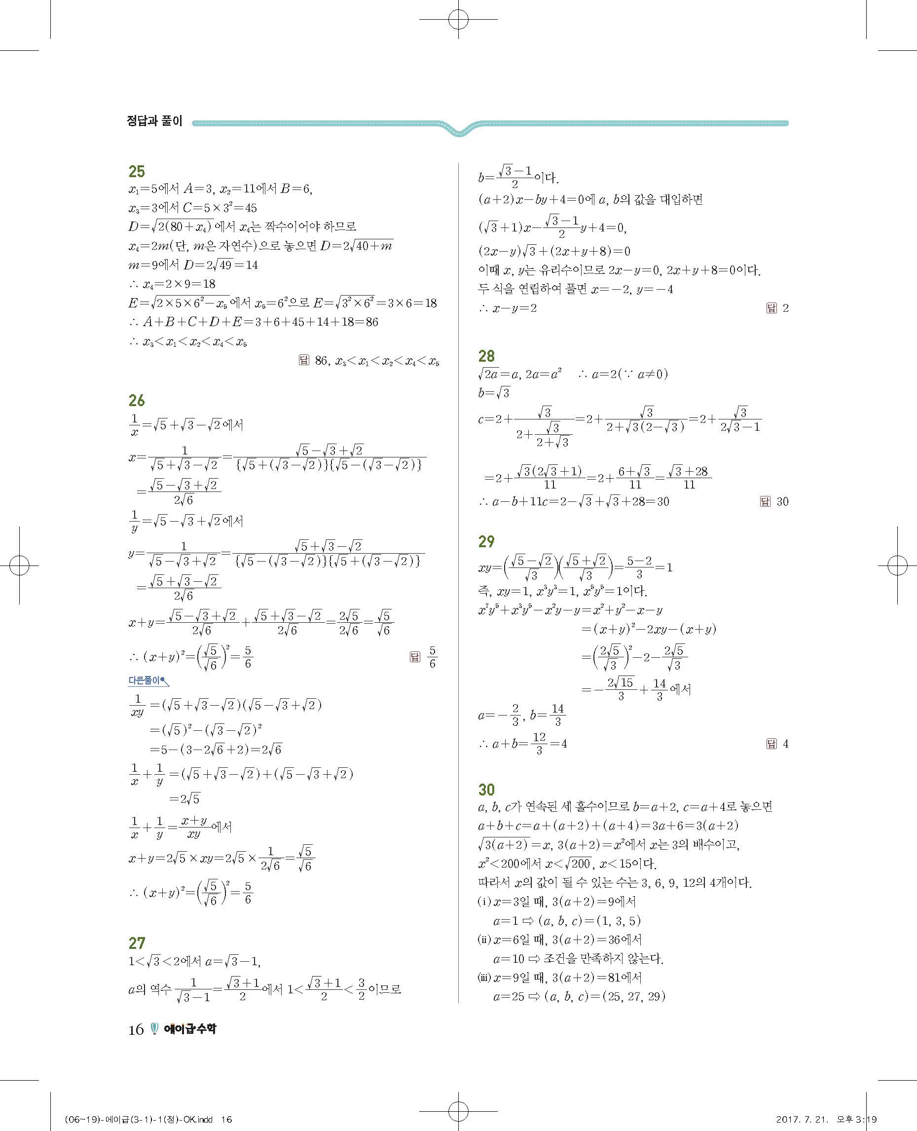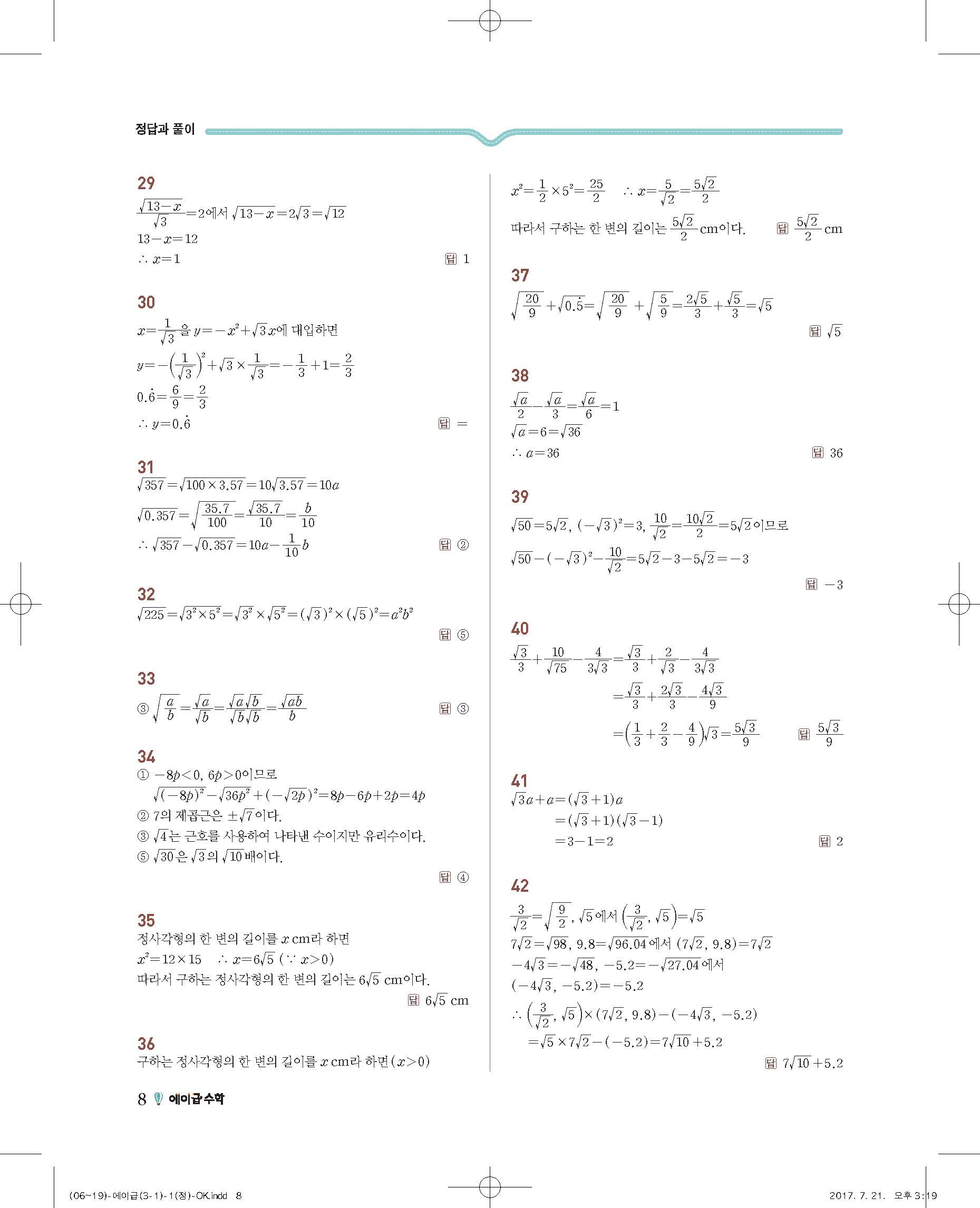 | 천재교육 이준열 중3 수학교과서 답지 | |