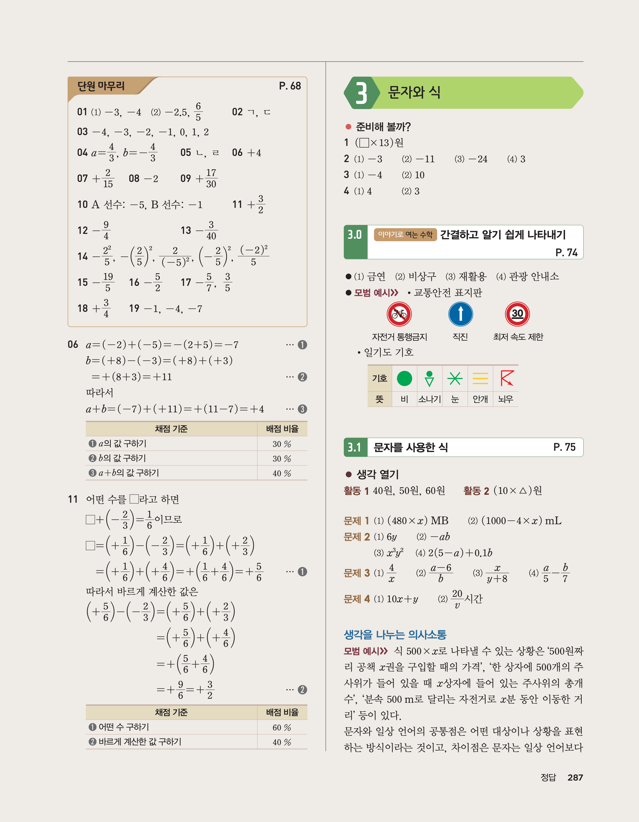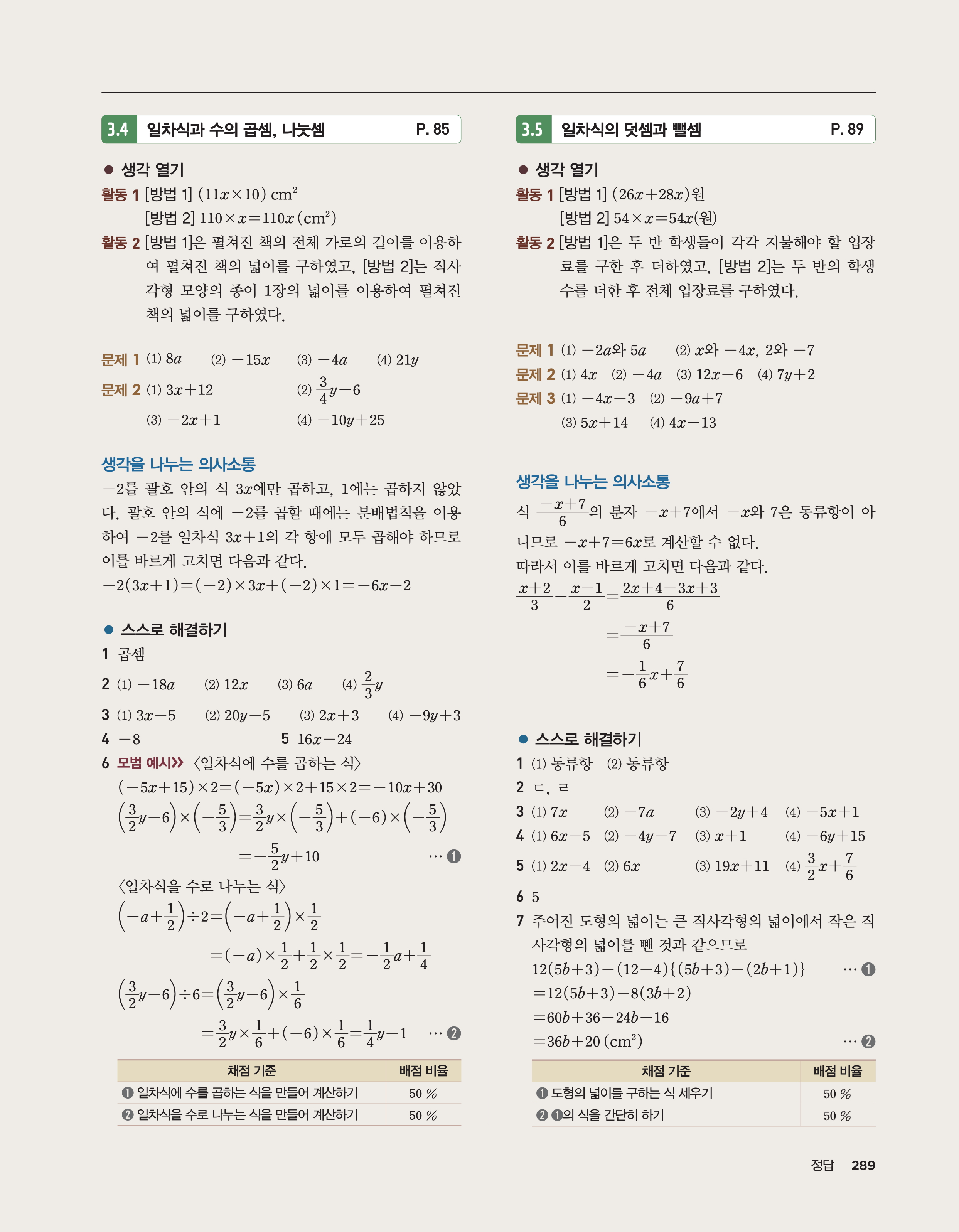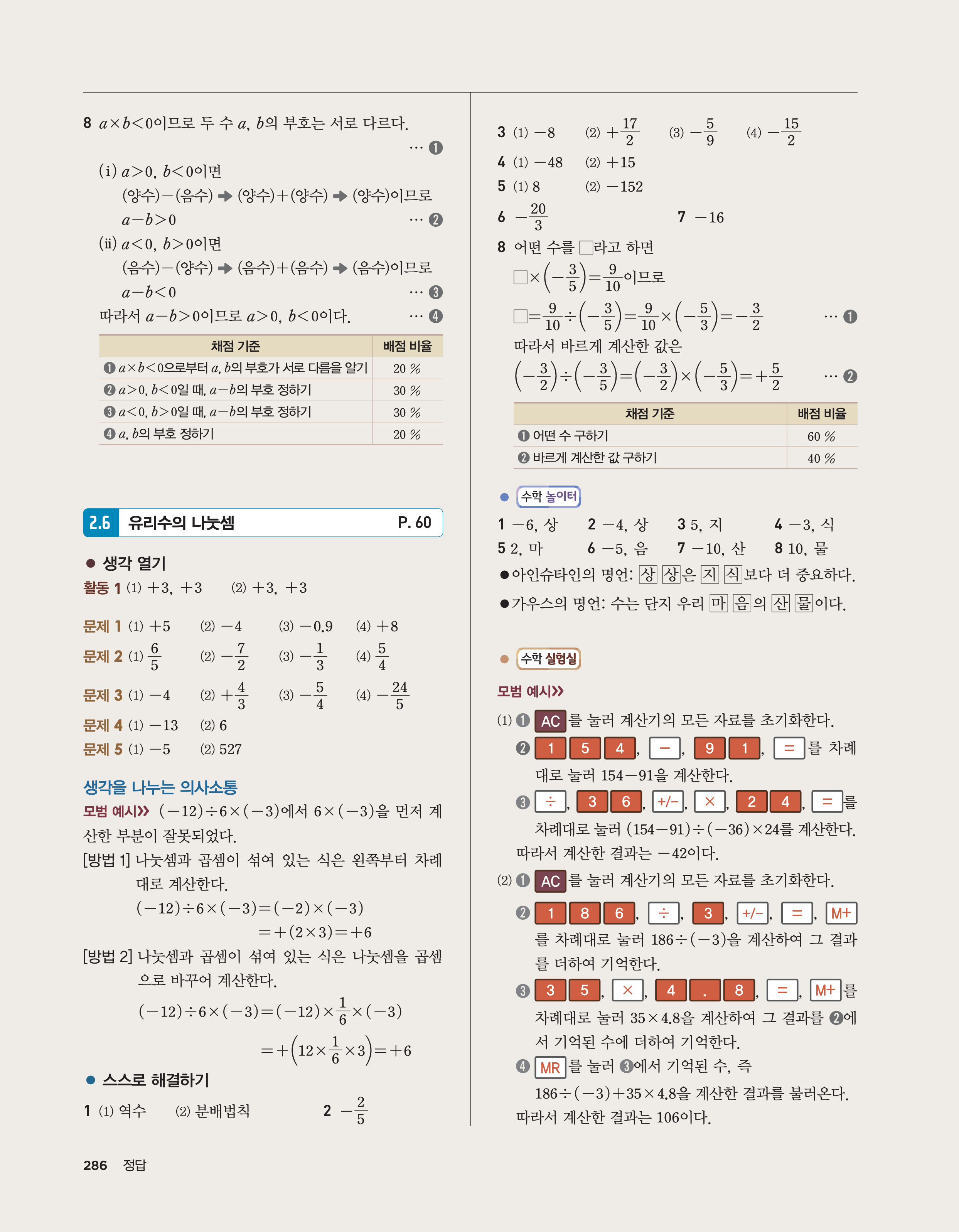 | 교학사 고호경 수학교과서 중1 답지 | |
