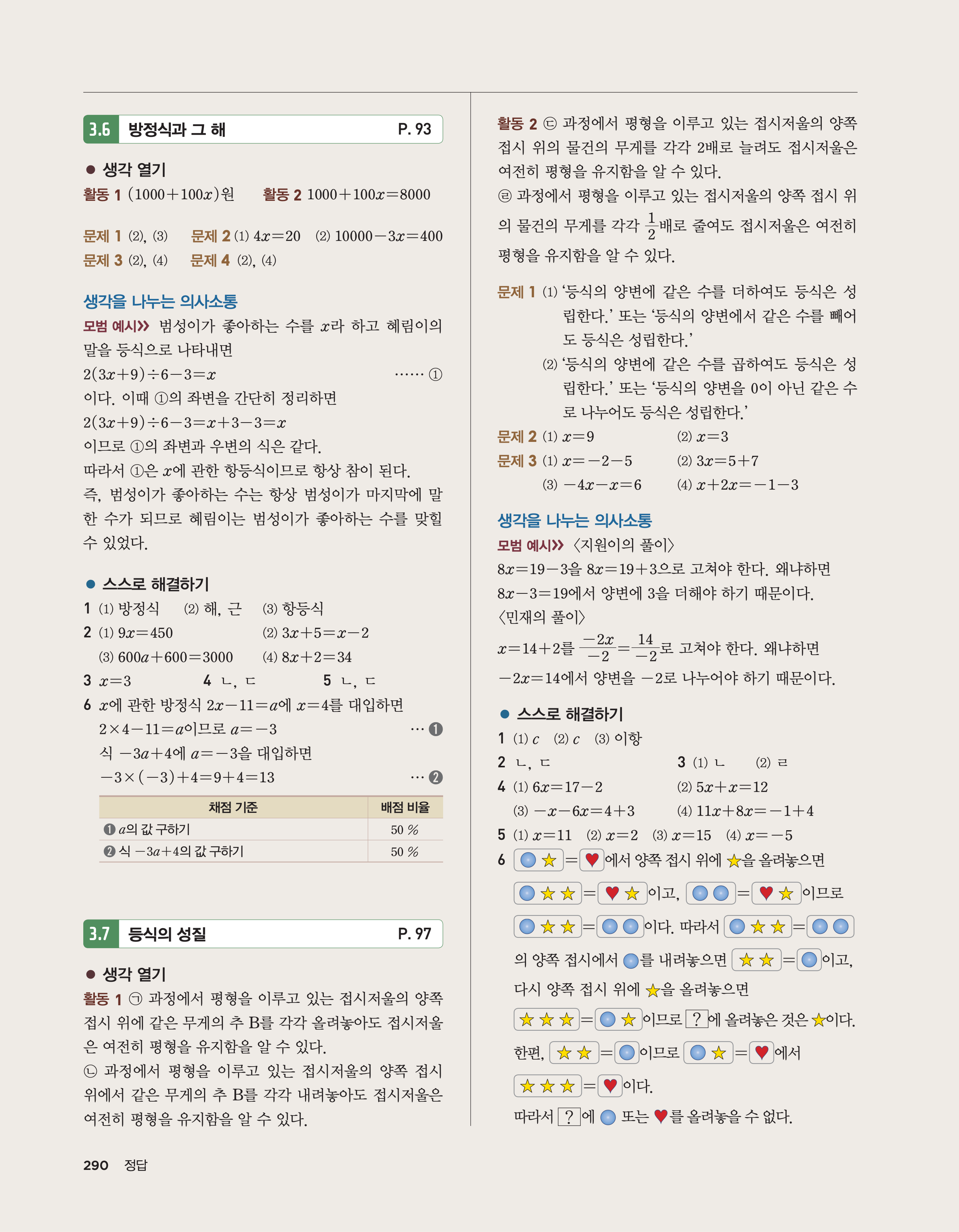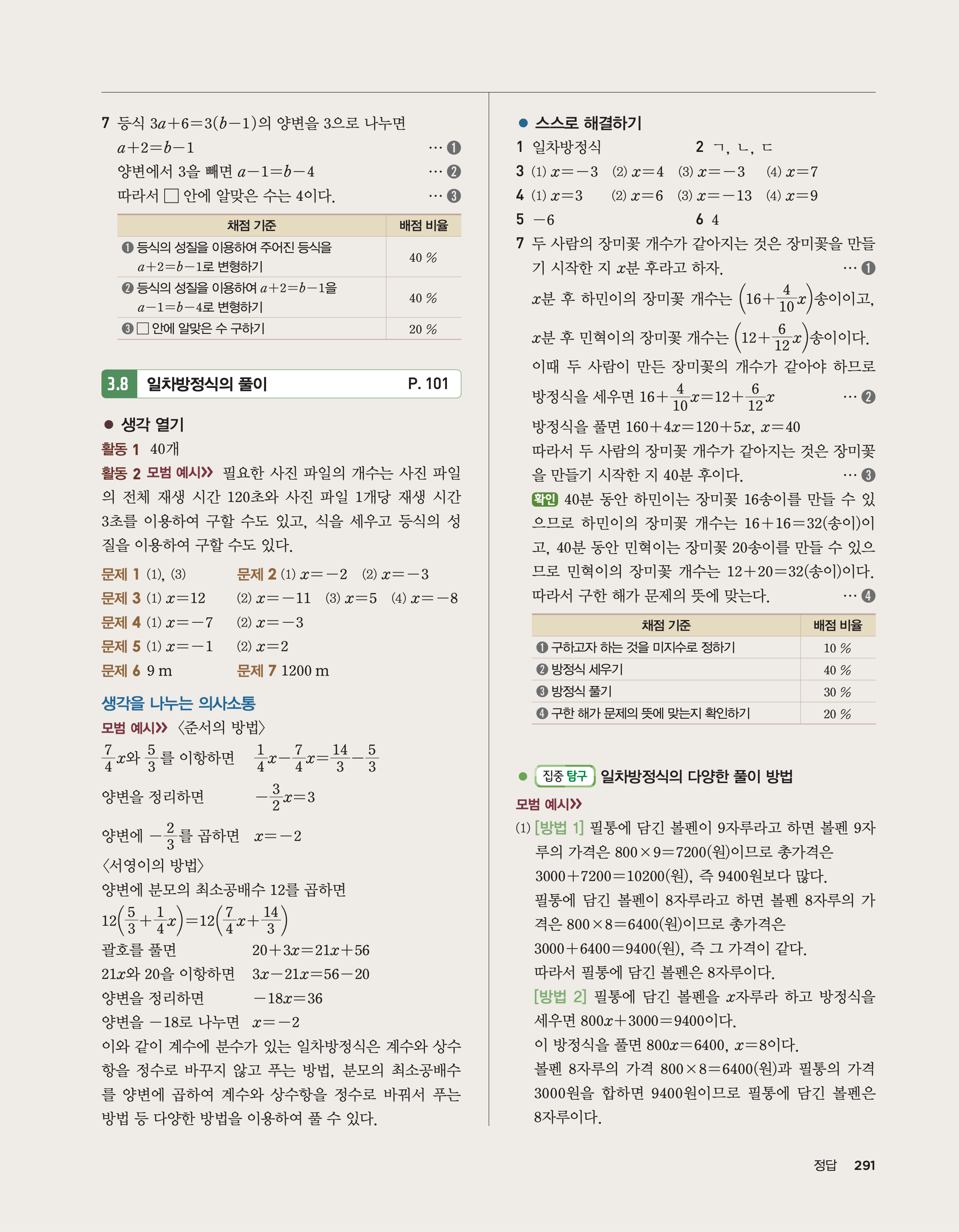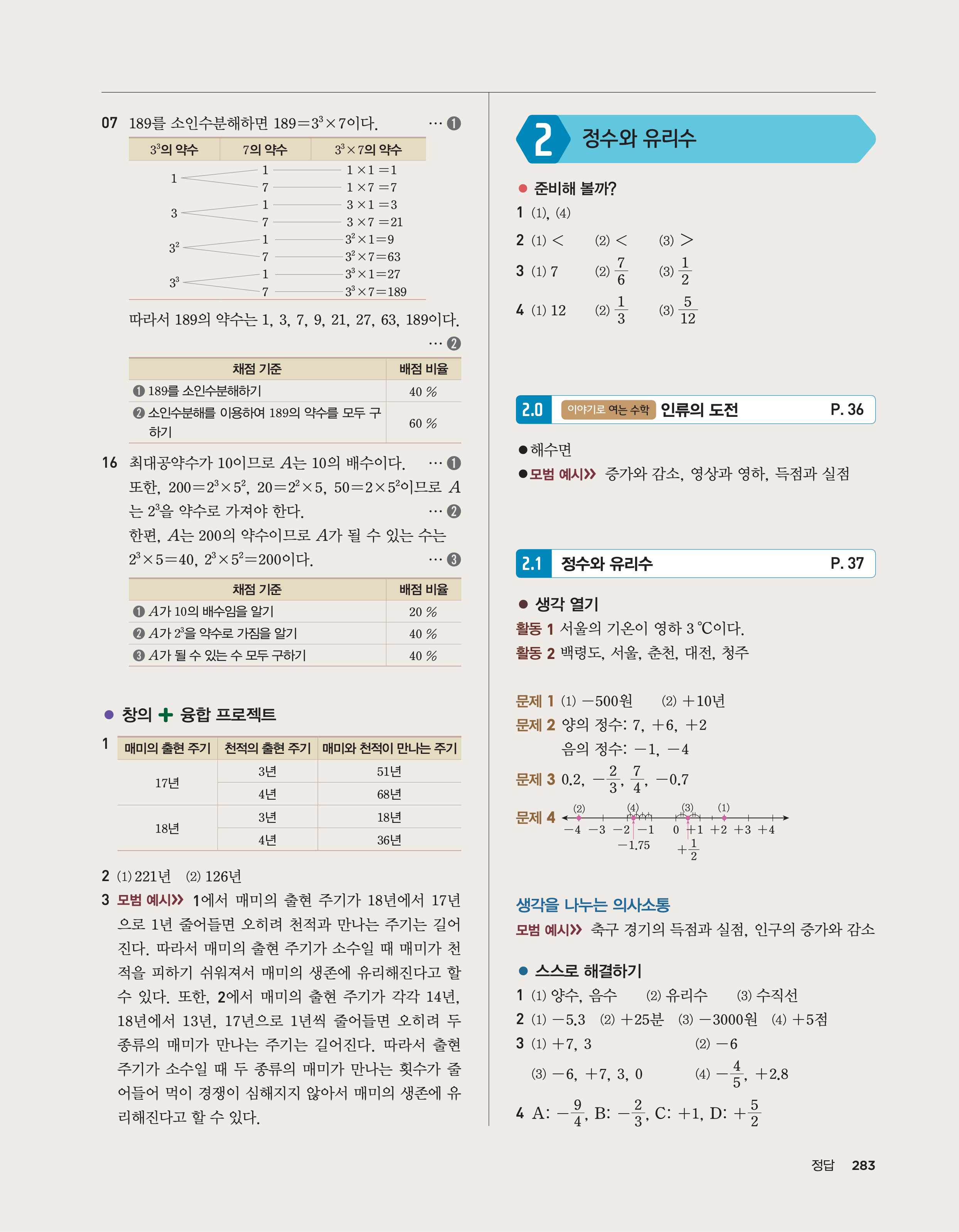 | 천재 류희찬 수학교과서 중1 답지 | |