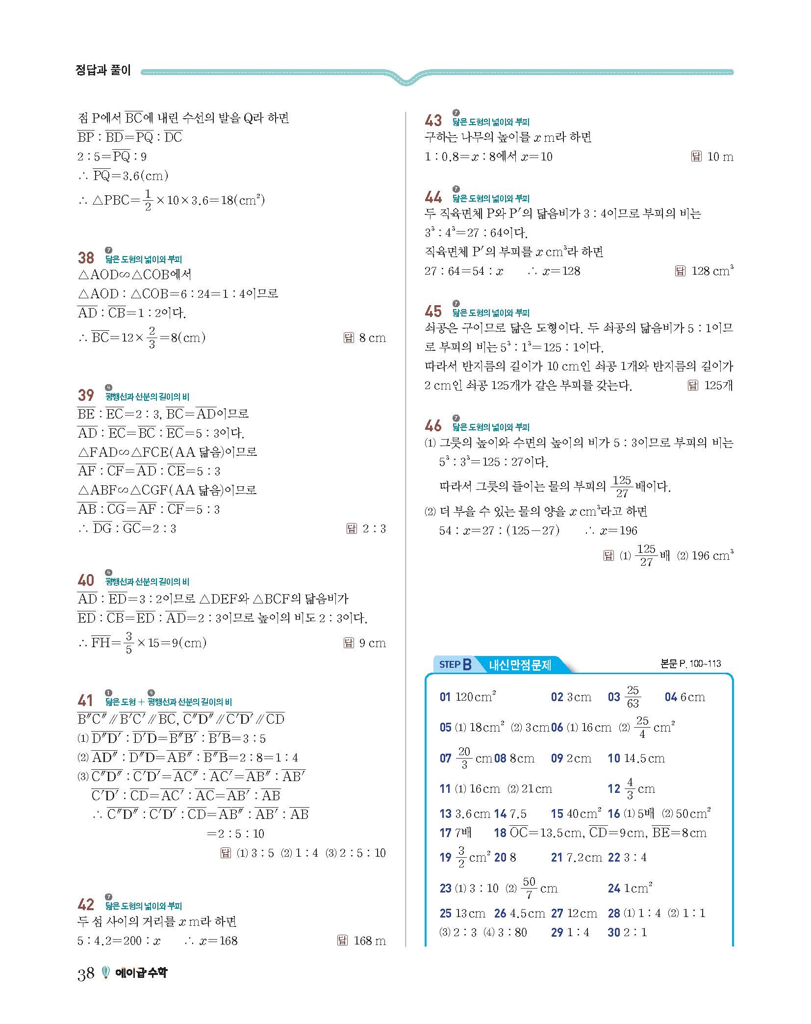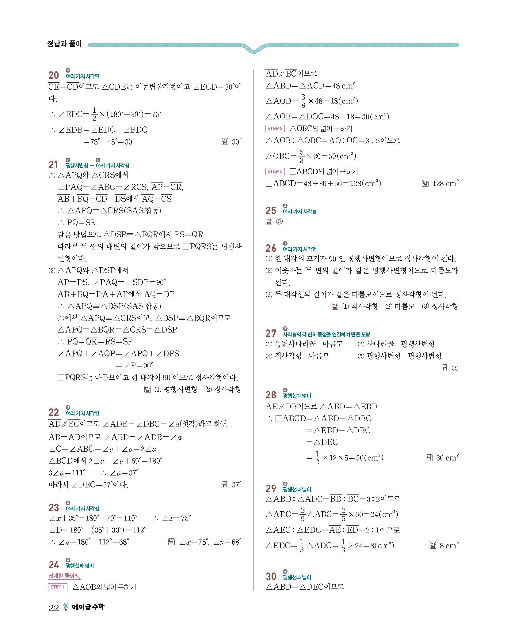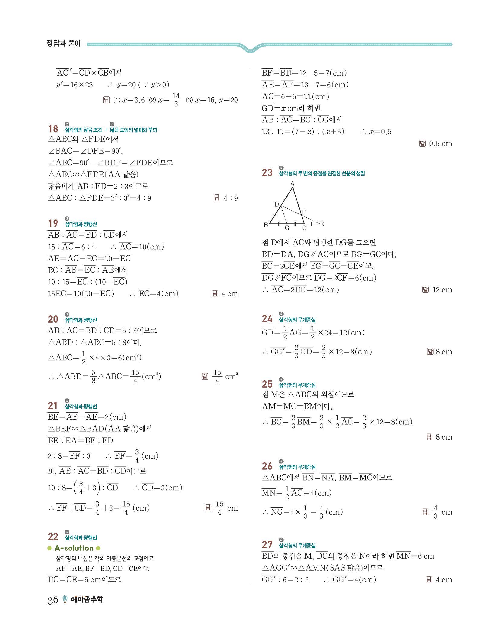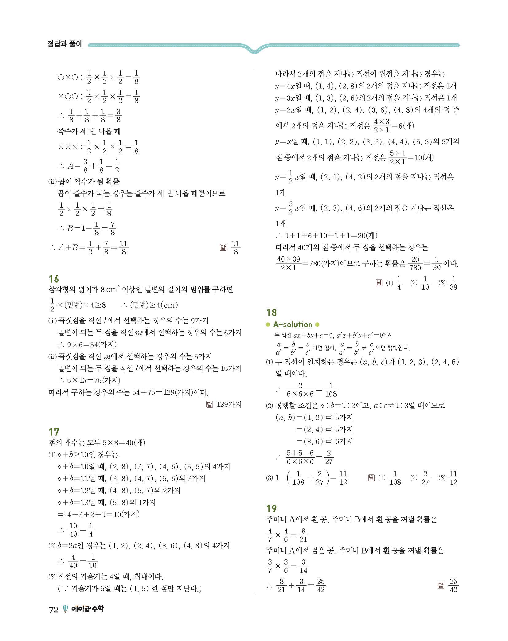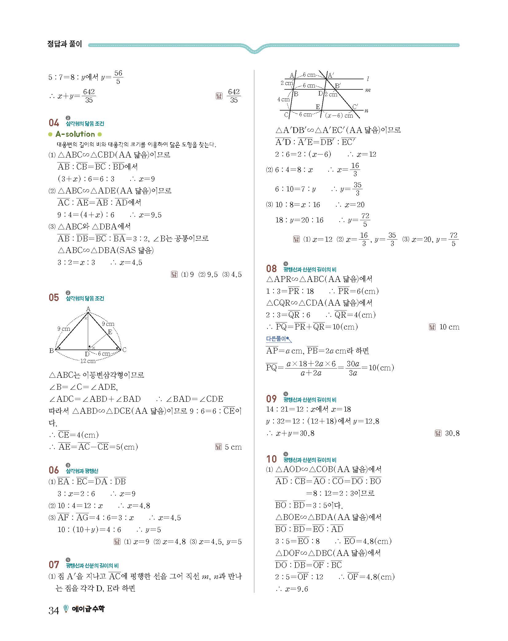에이급수학 중2하 답지 사진답지 빠른답지 모바일최적화
