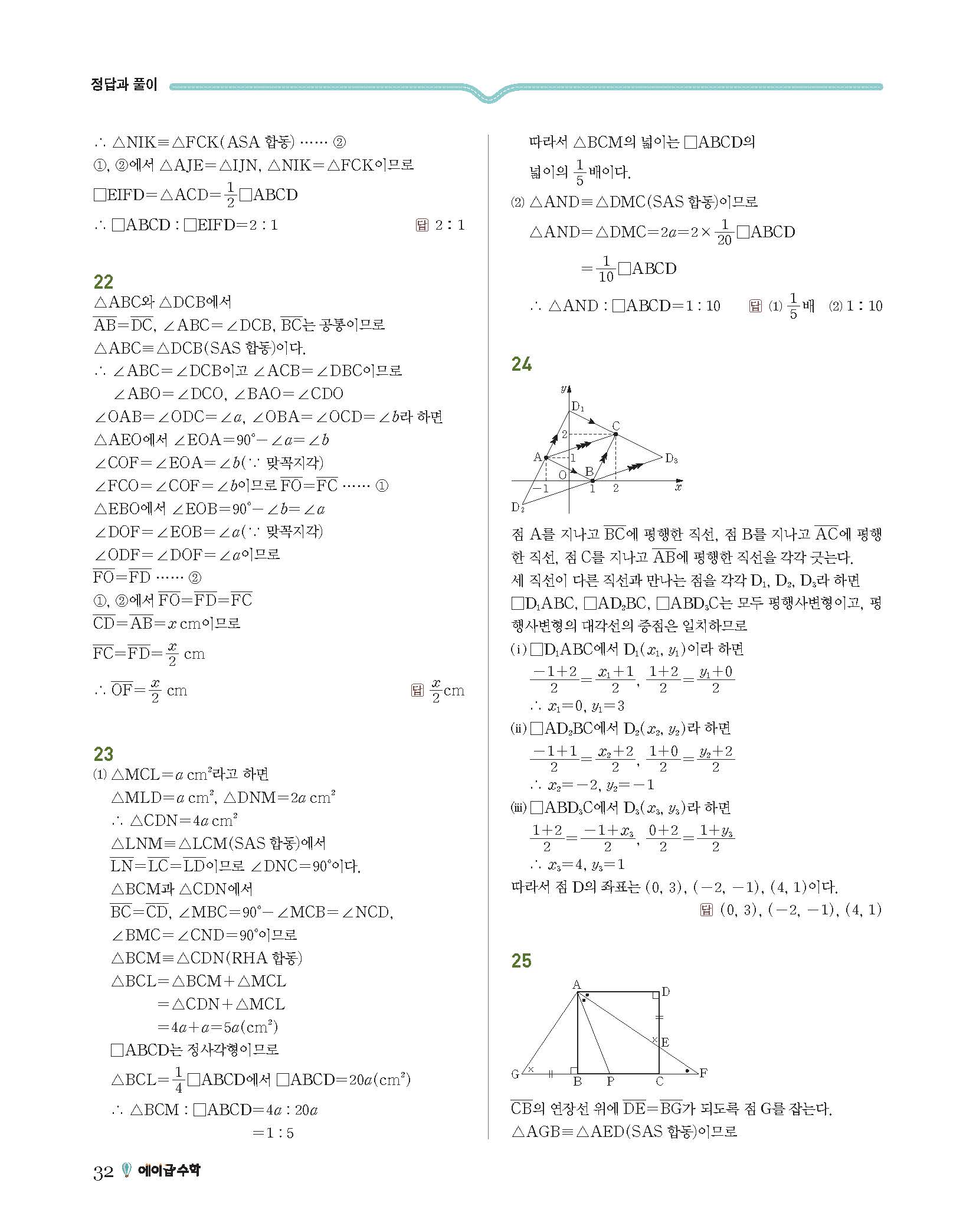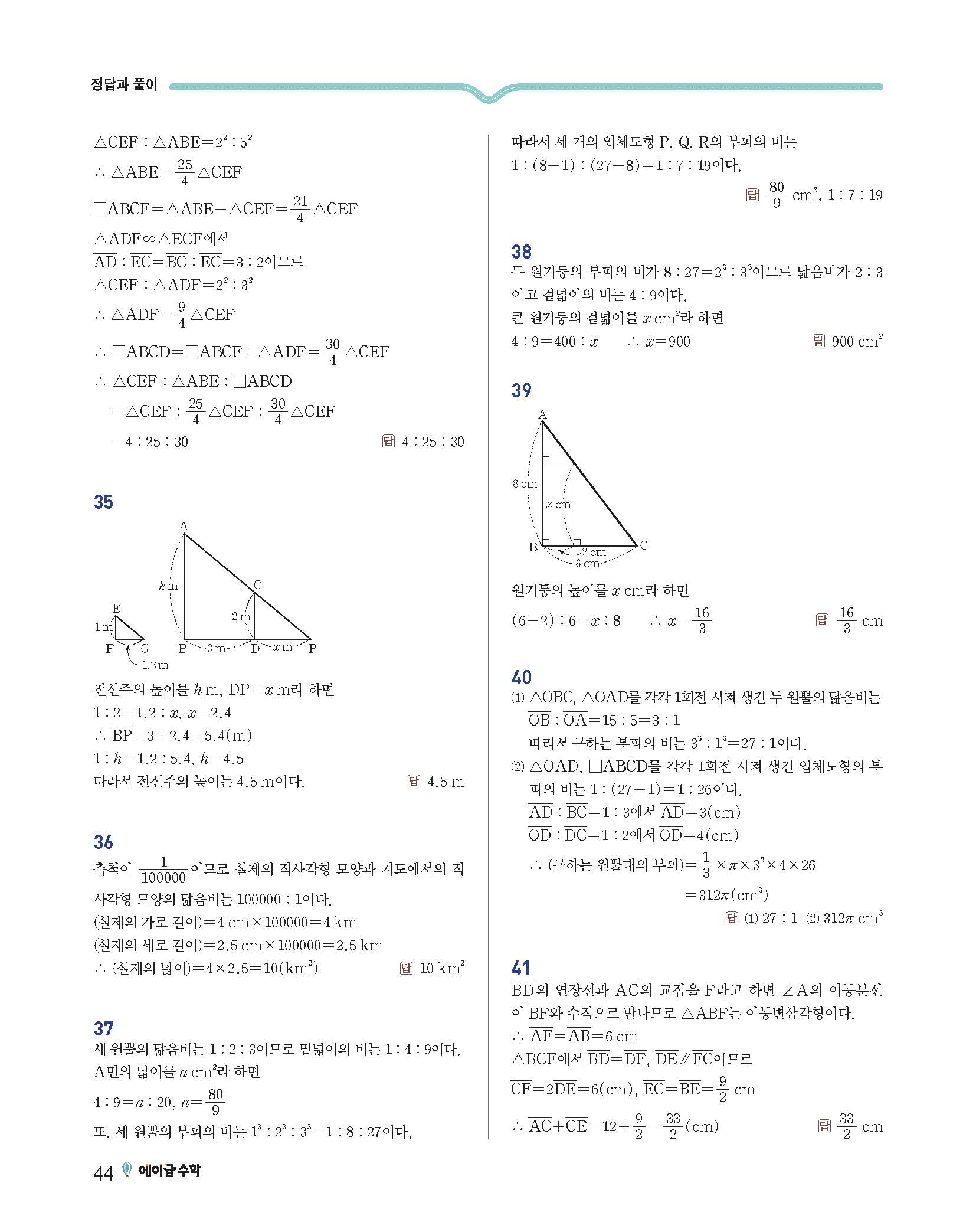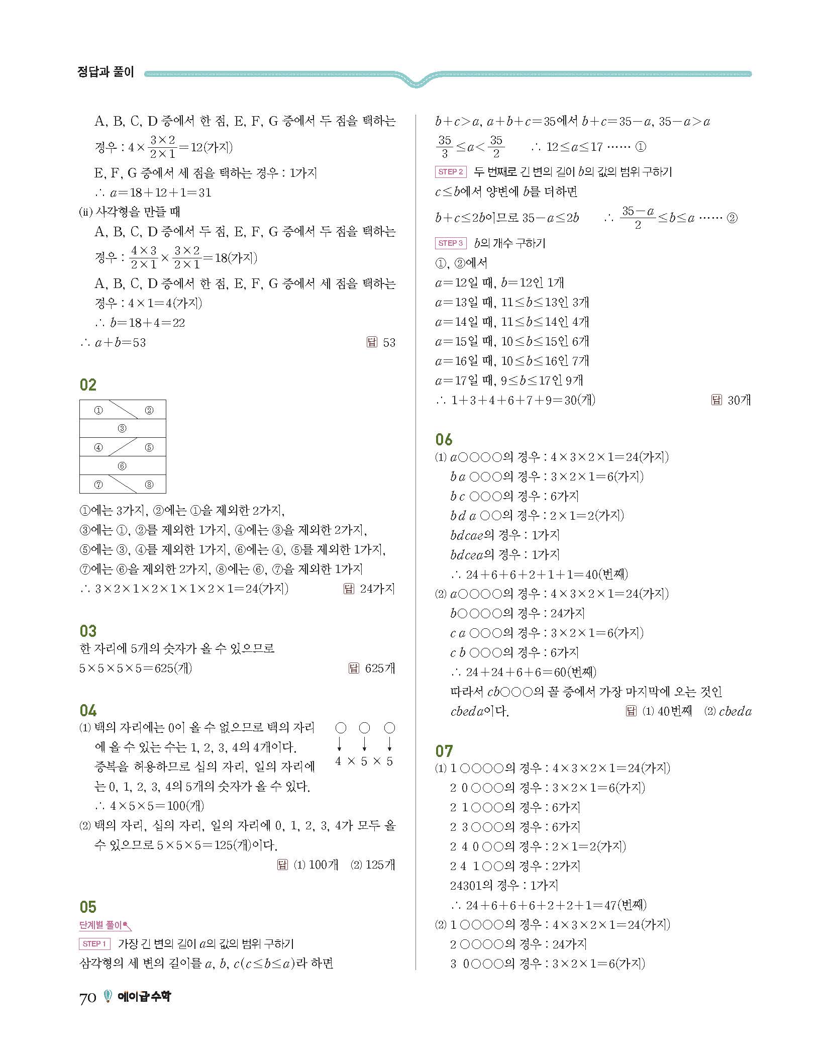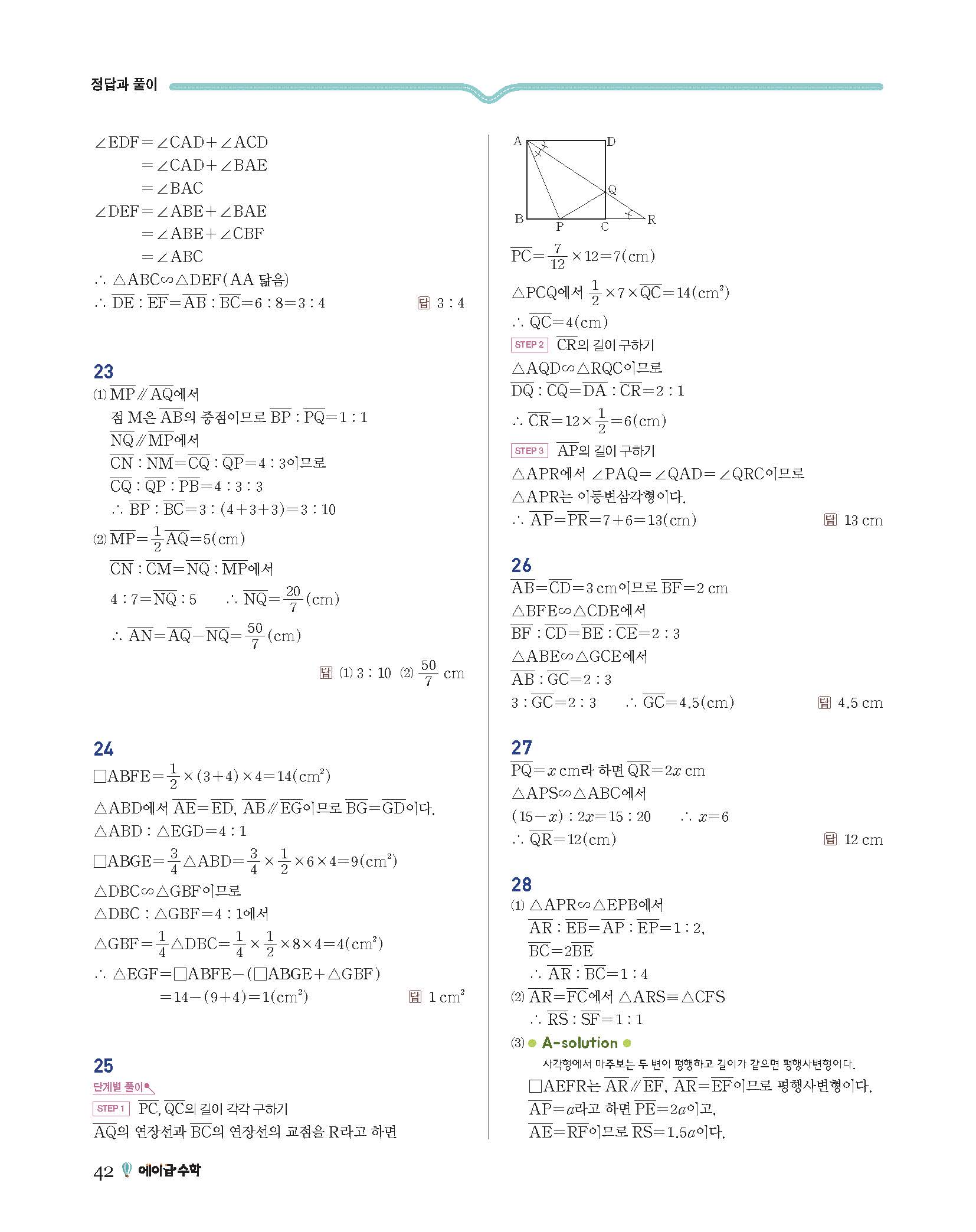 에이급수학 중2하 답지 사진답지 빠른답지 모바일최적화