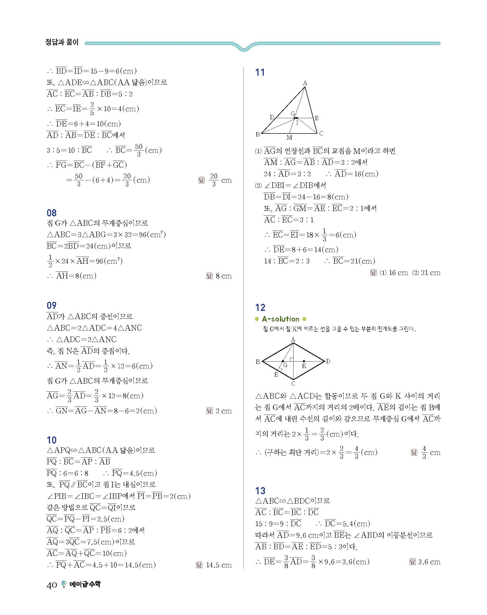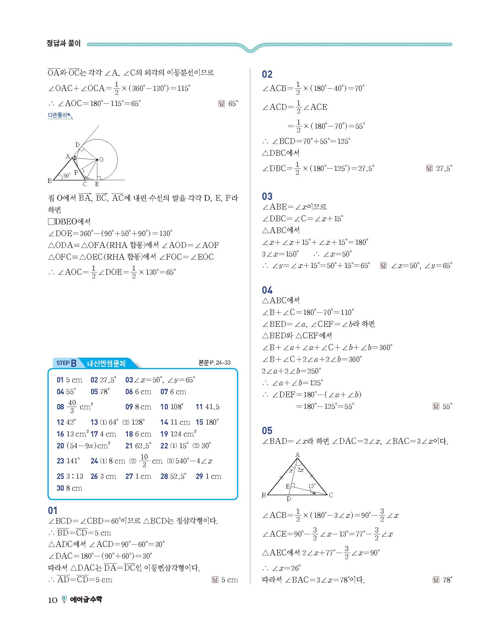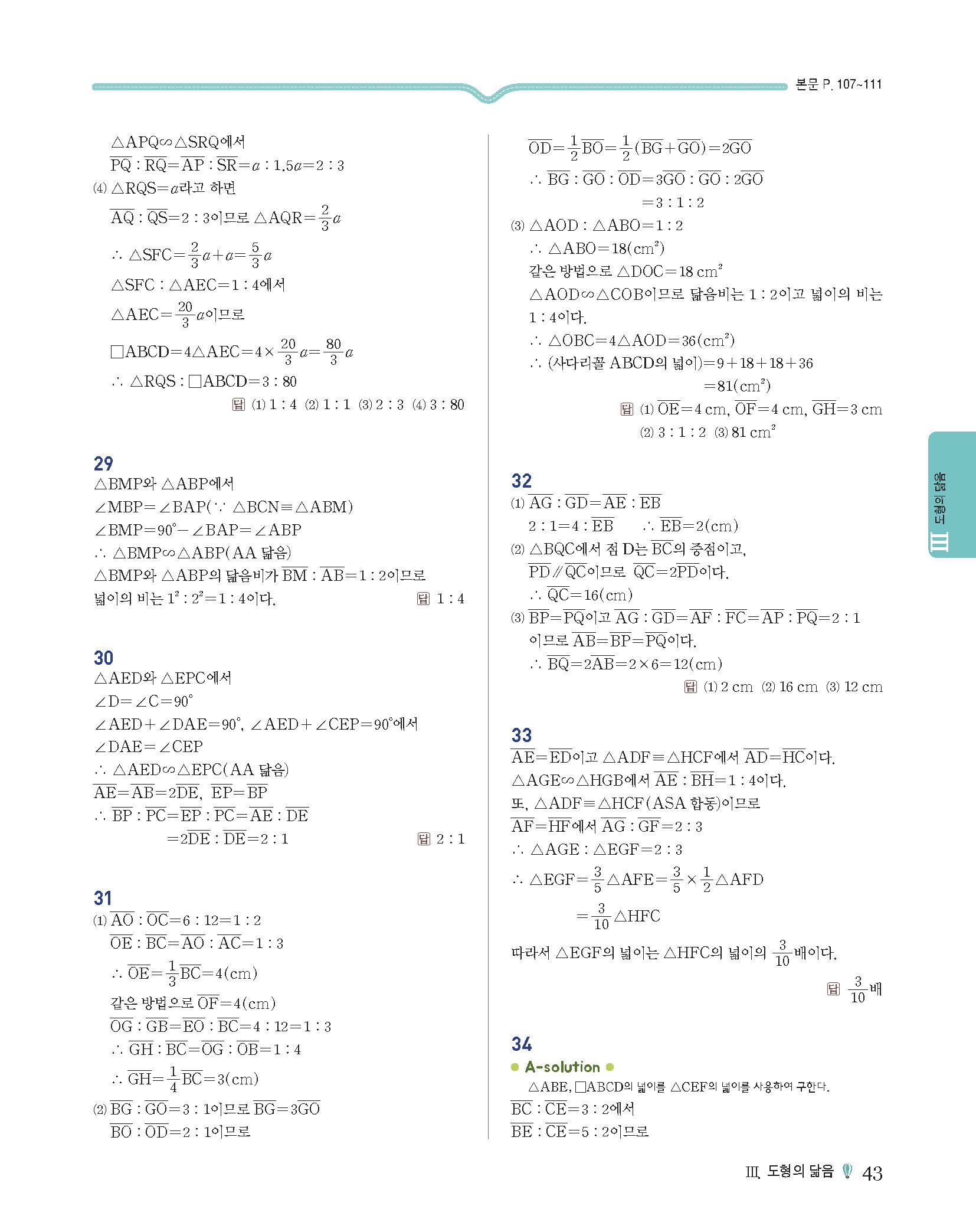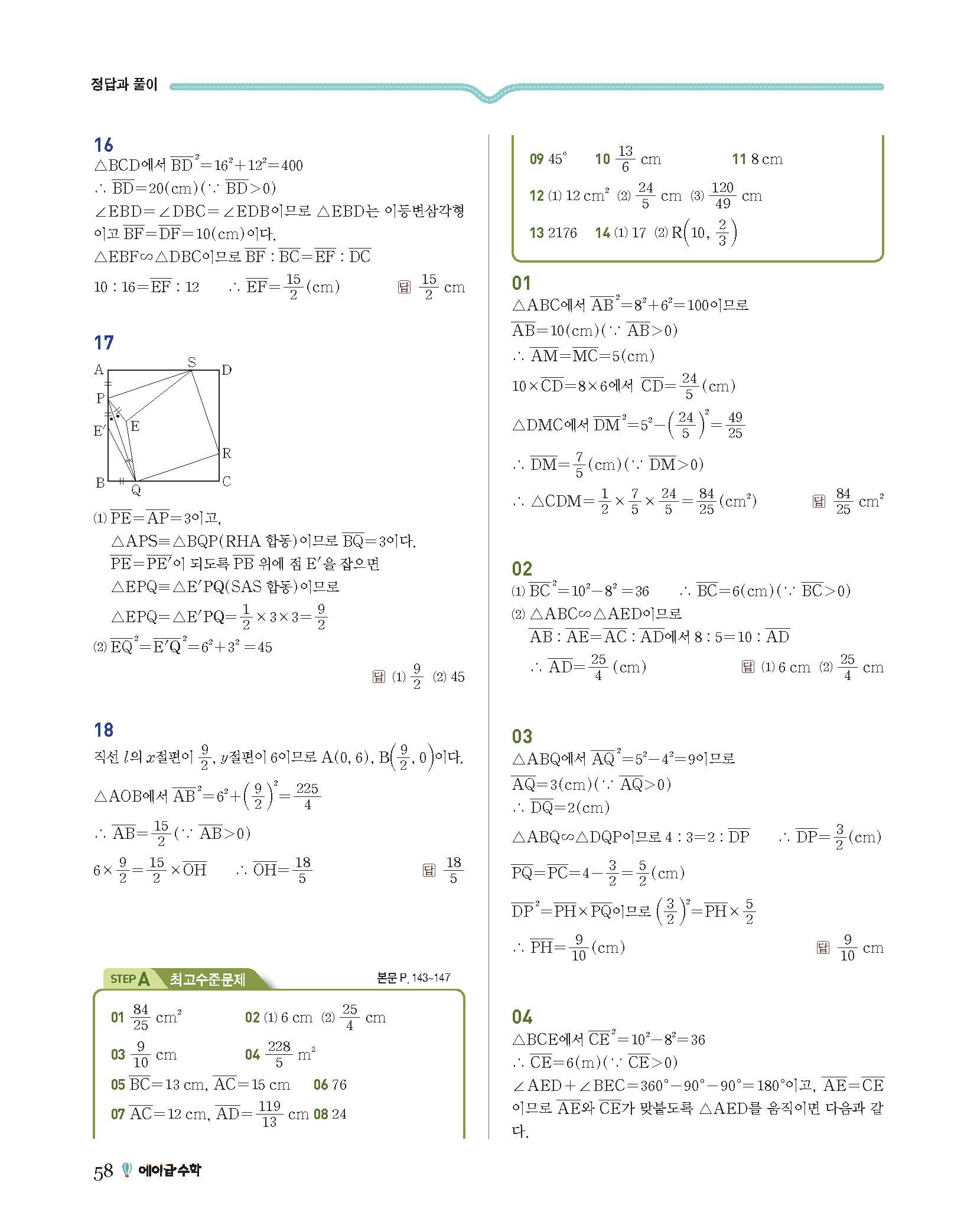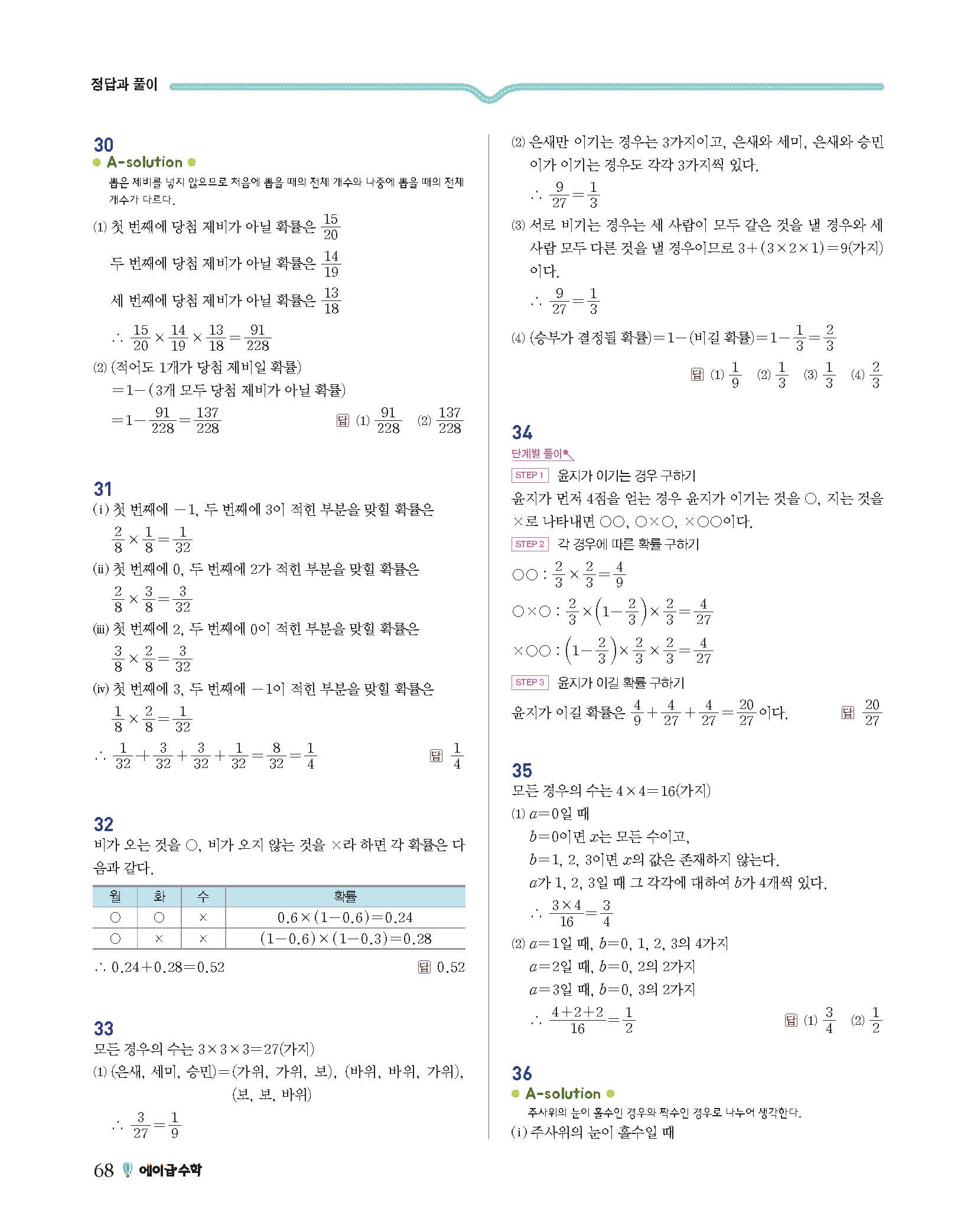 에이급수학 중2하 답지 사진답지 빠른답지 모바일최적화