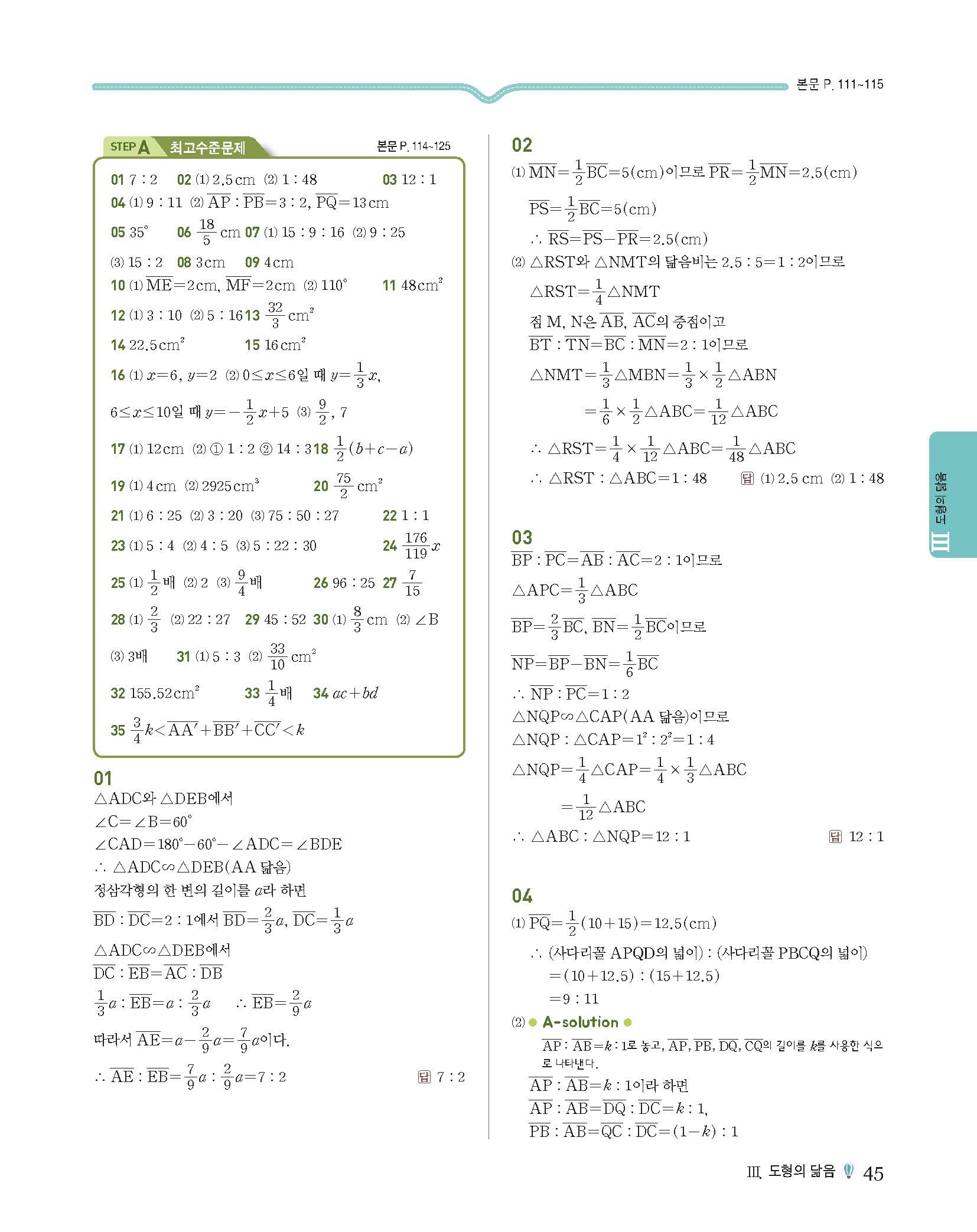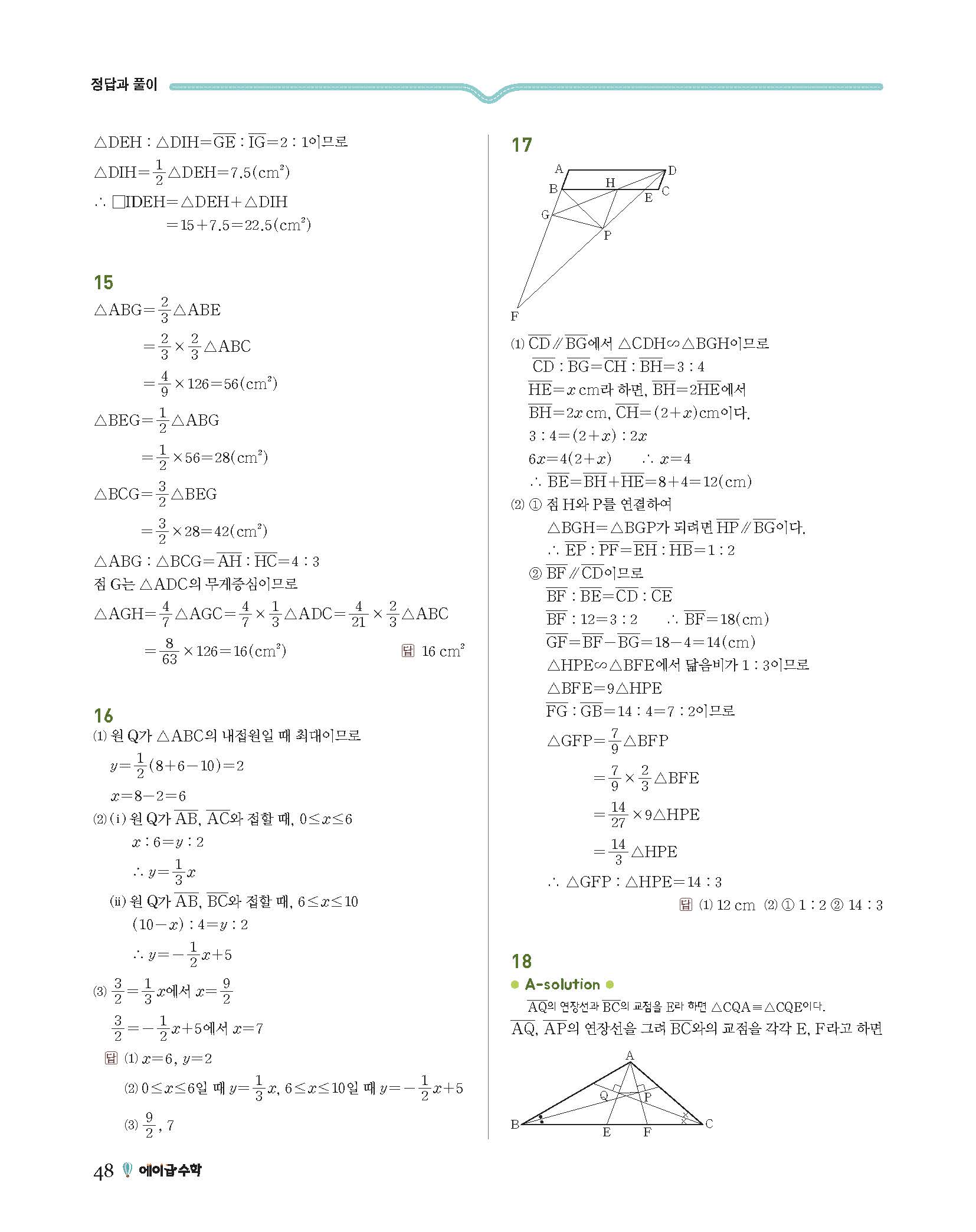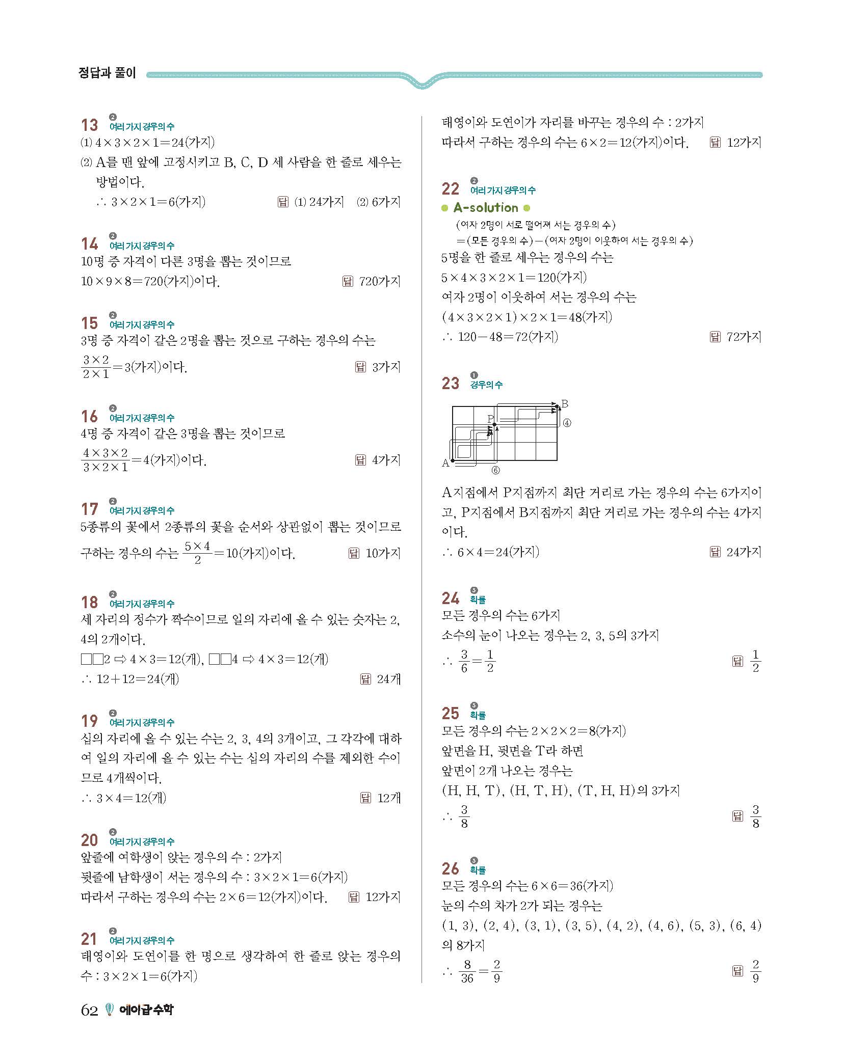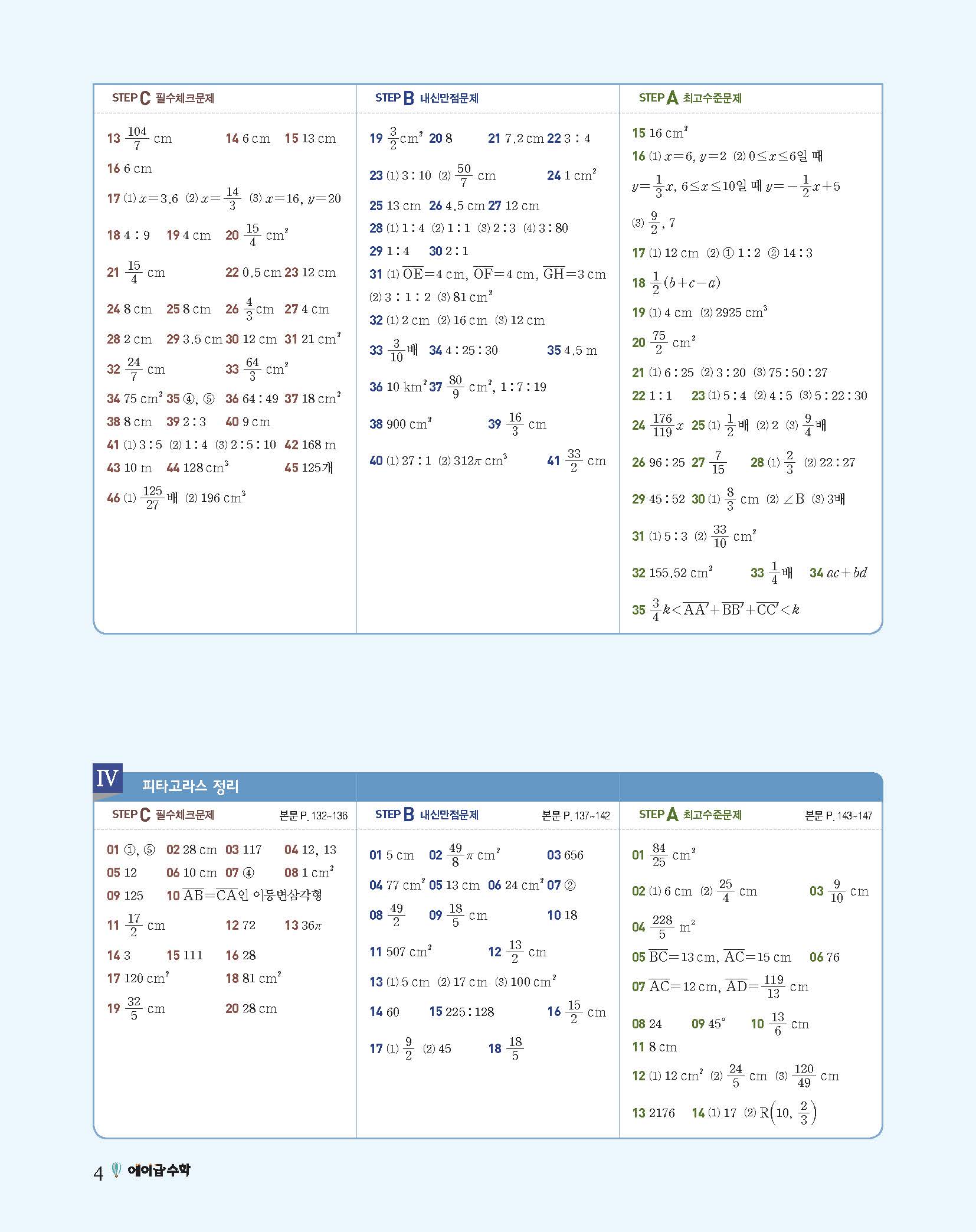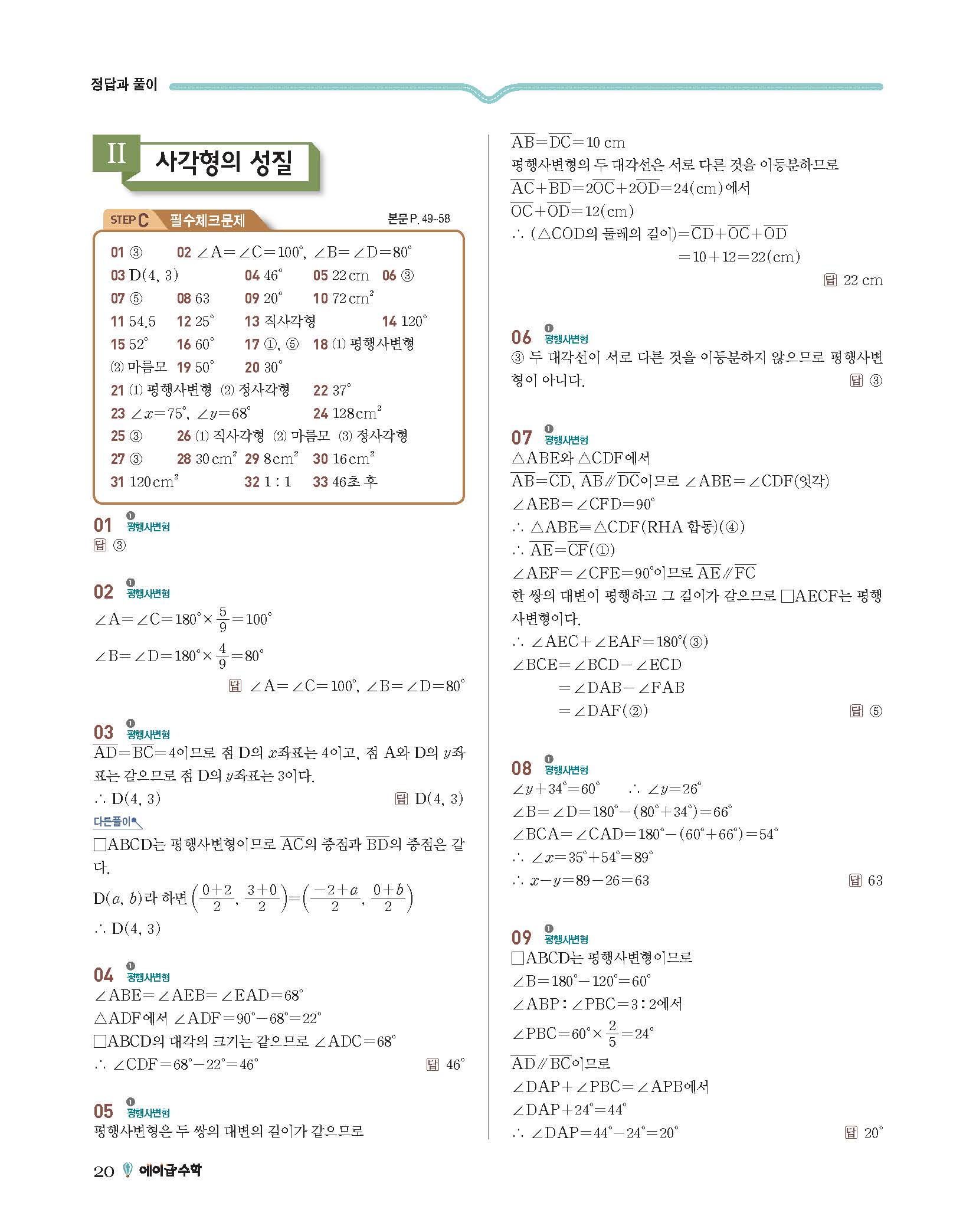 에이급수학 중2하 답지 사진답지 빠른답지 모바일최적화