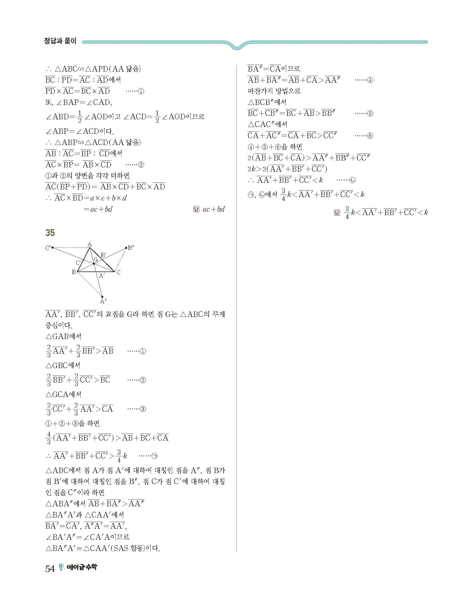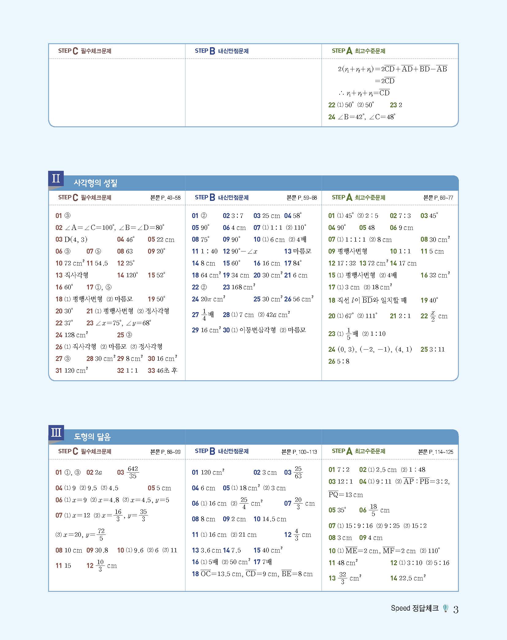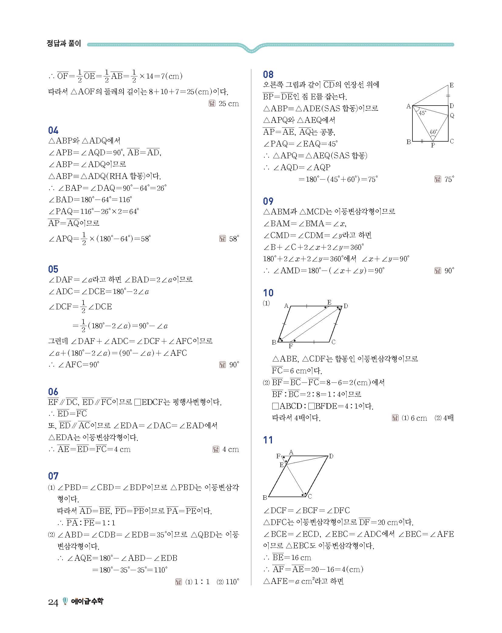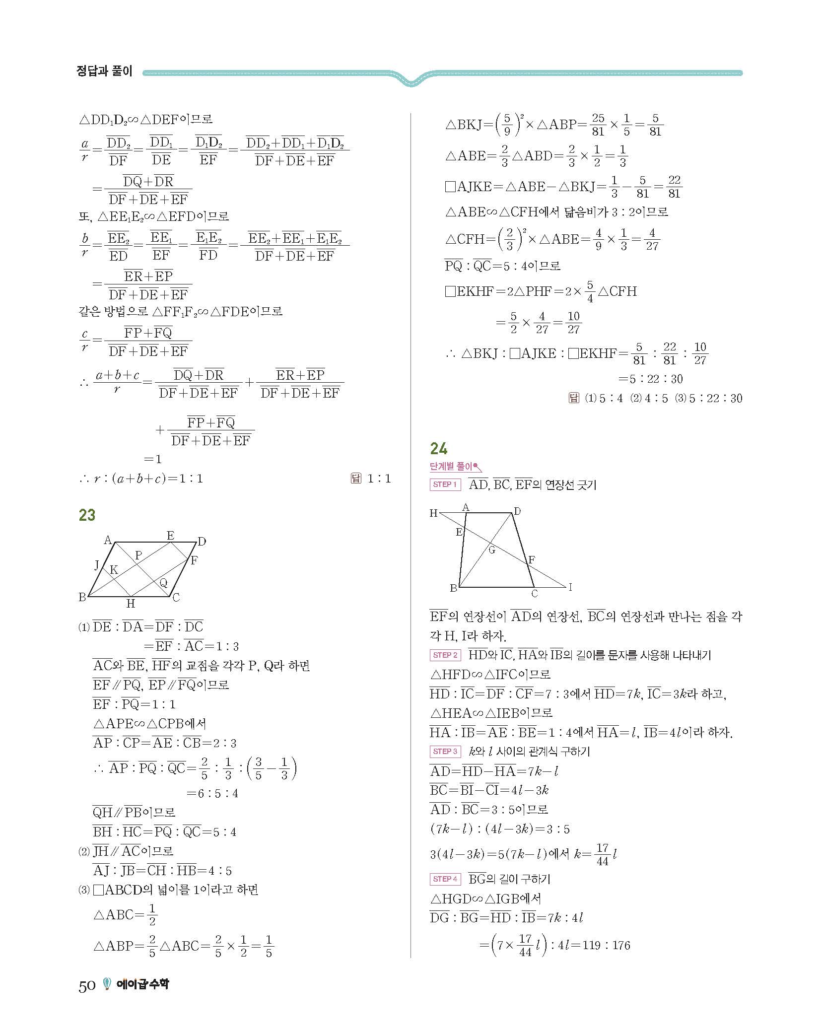 에이급수학 중2하 답지 사진답지 빠른답지 모바일최적화