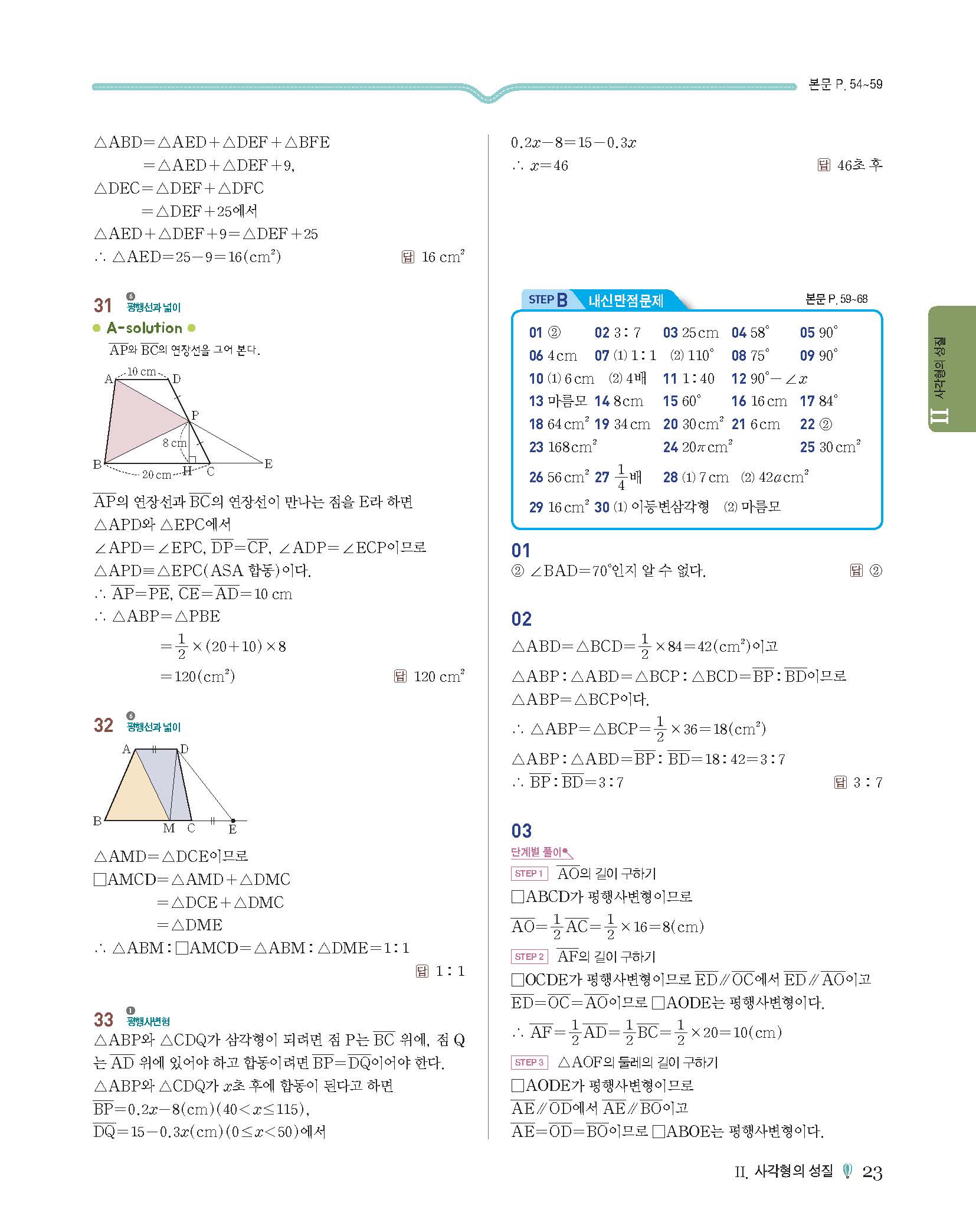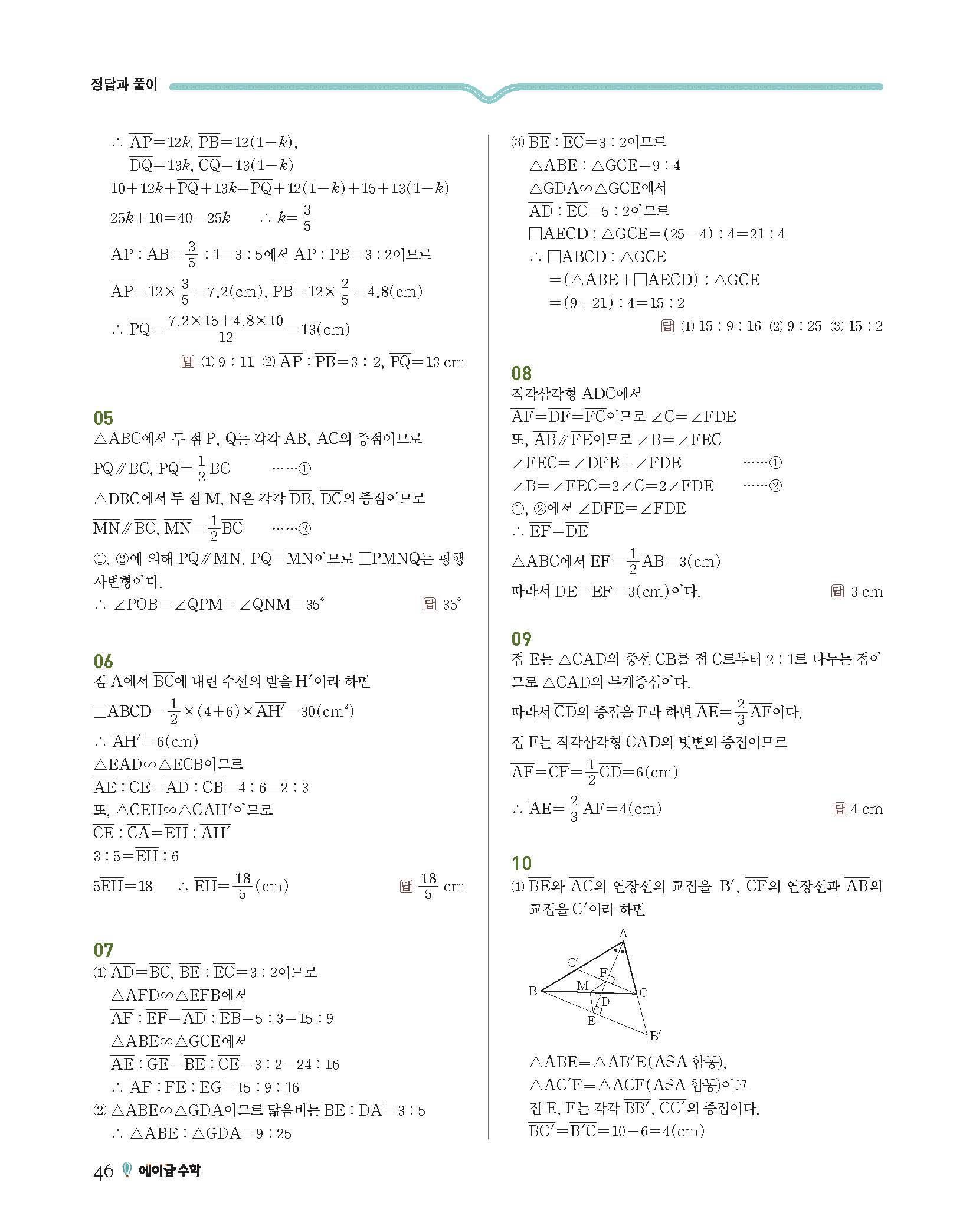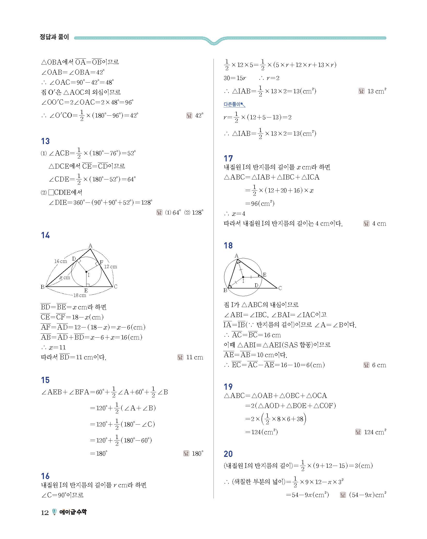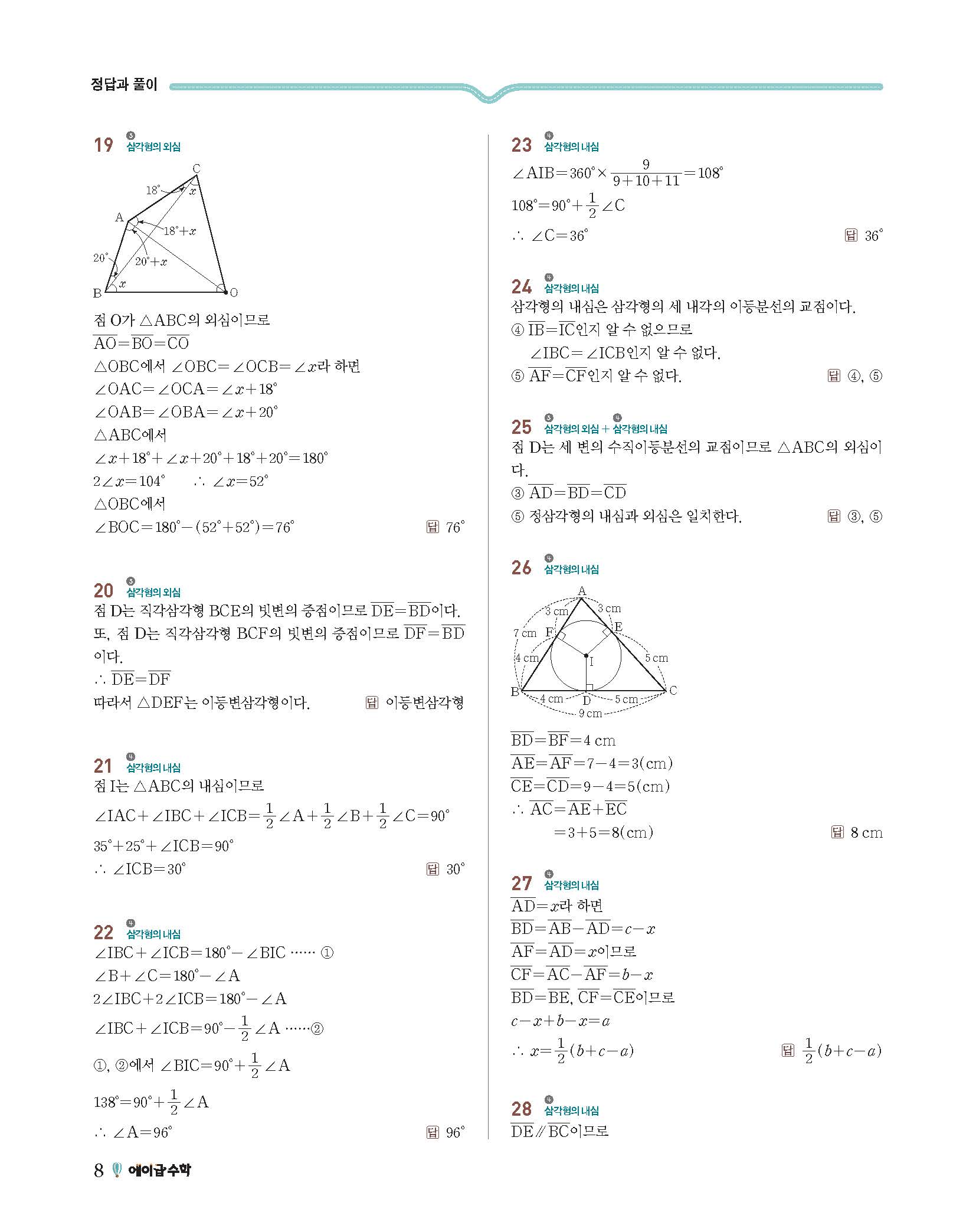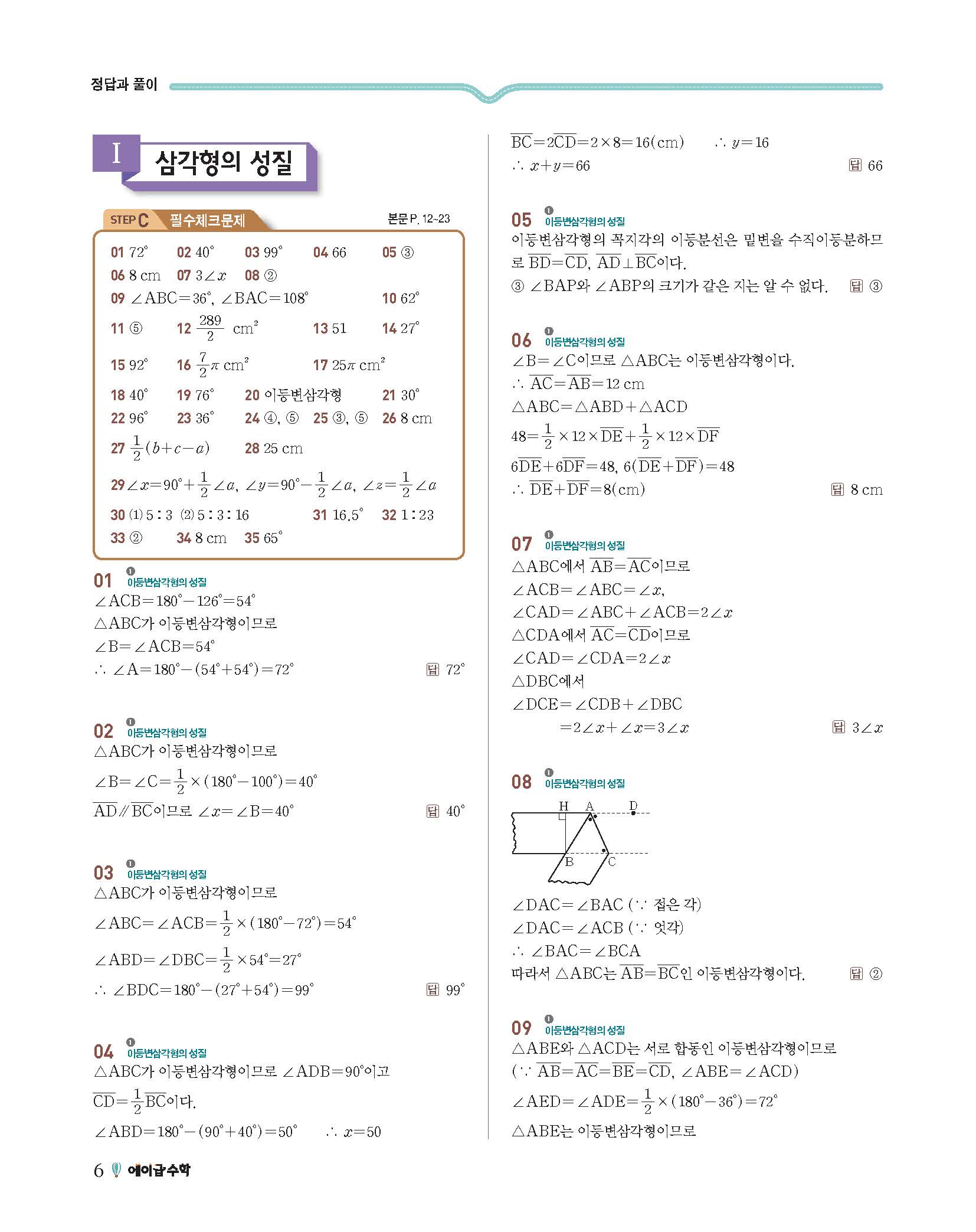 에이급수학 중2하 답지 사진답지 빠른답지 모바일최적화