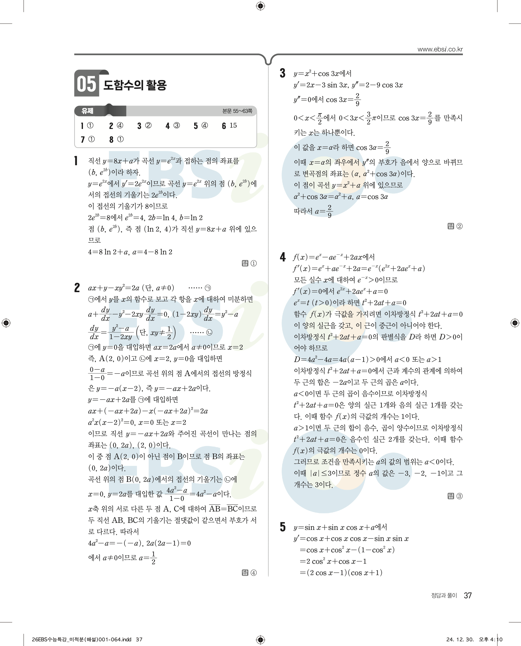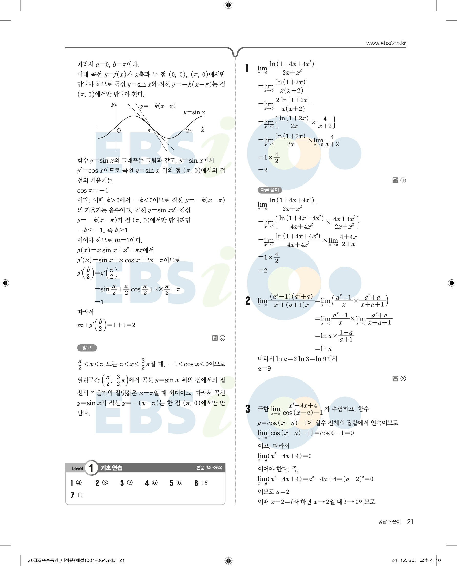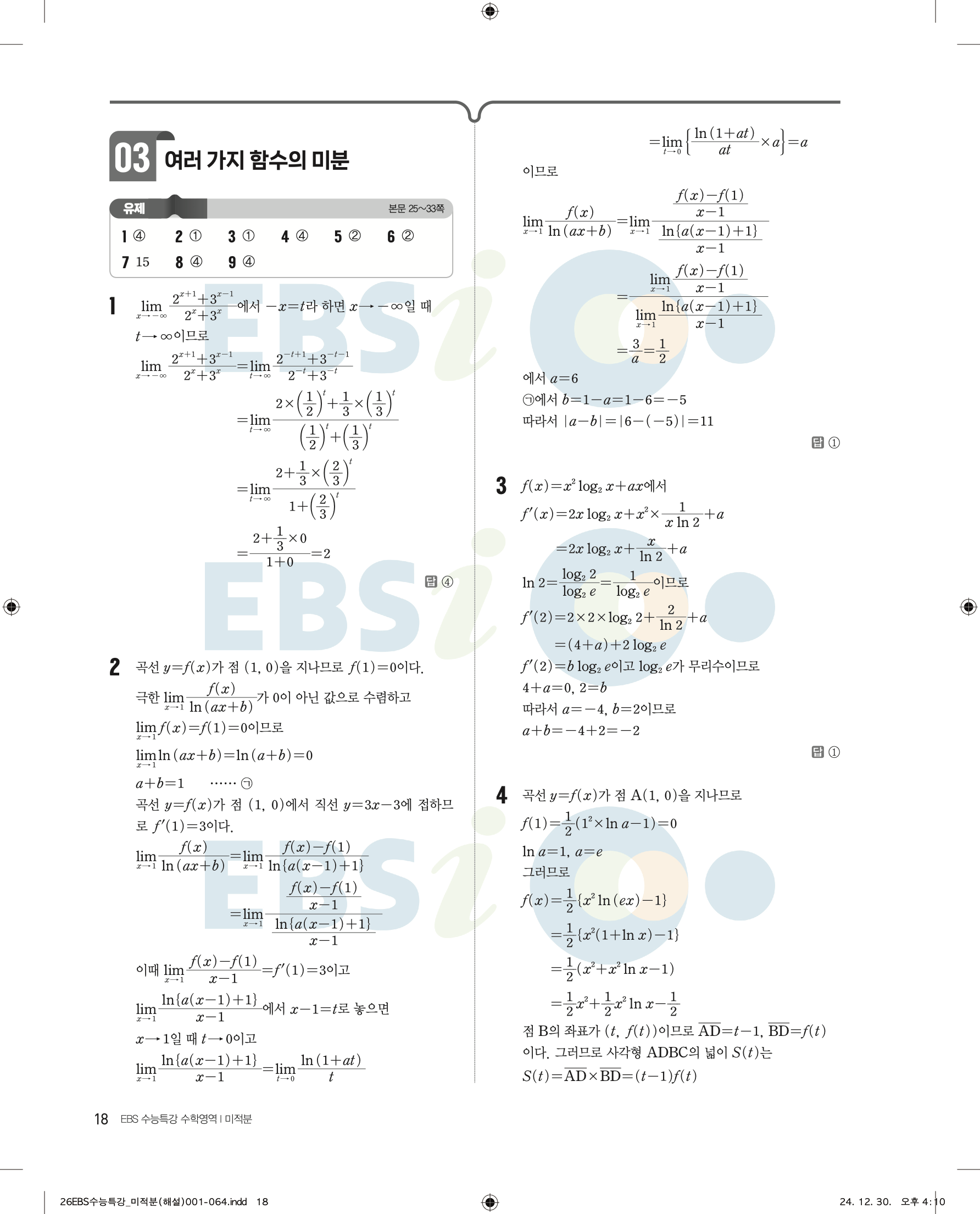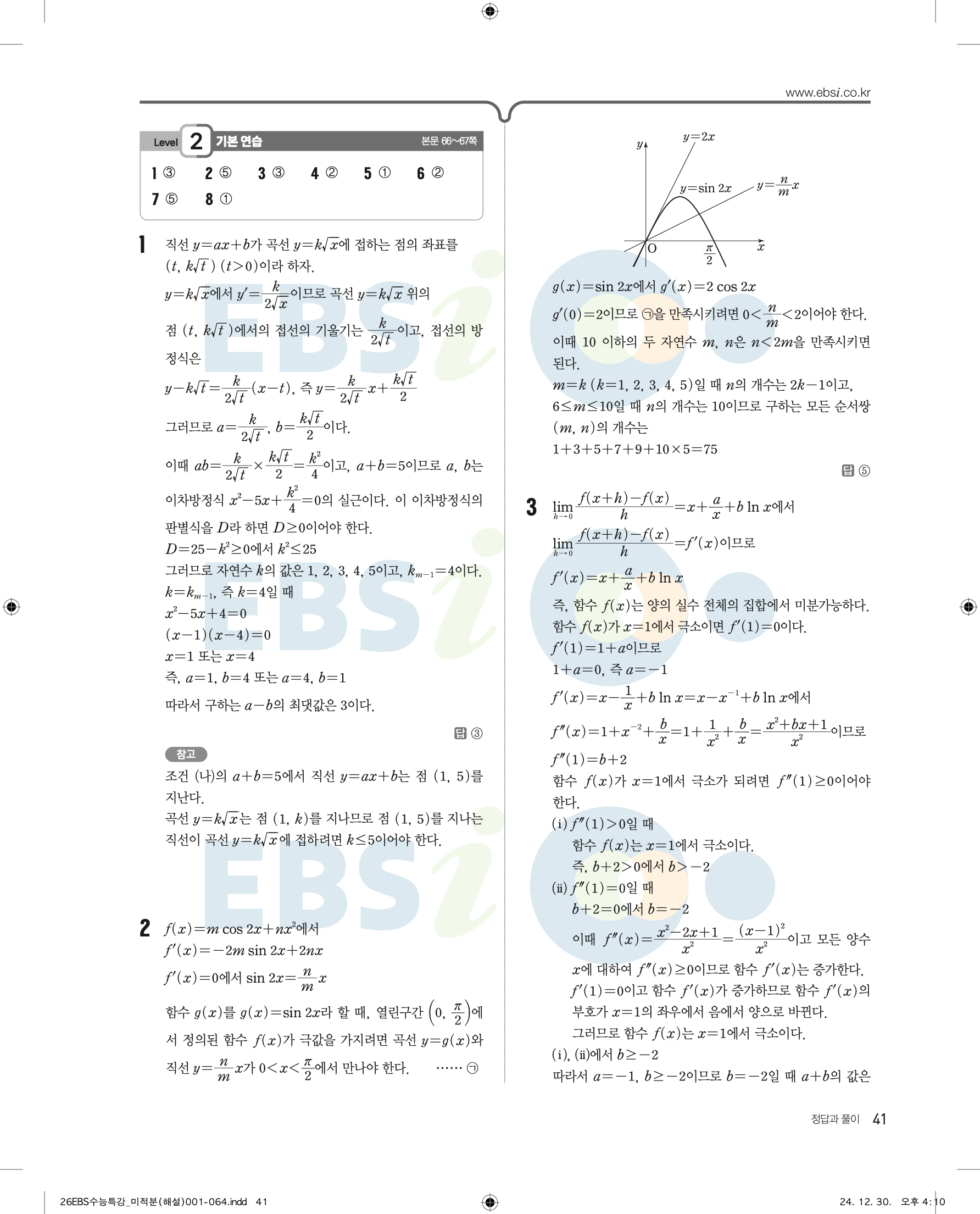 2026 수능특강 미적분 수특 미적의 답지와 해설을 통해 효과적으로 학습하고, 수능에서 좋은 성과를 거두시기 바랍니다.