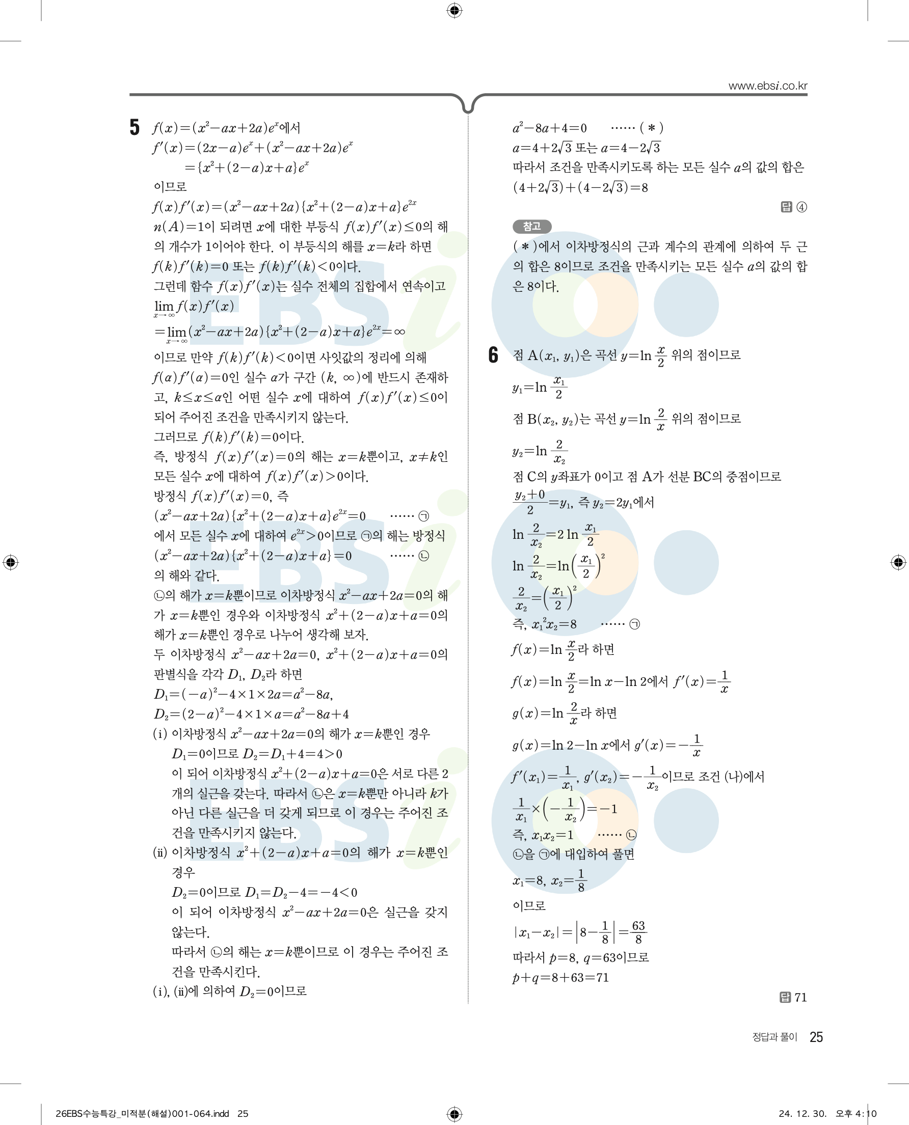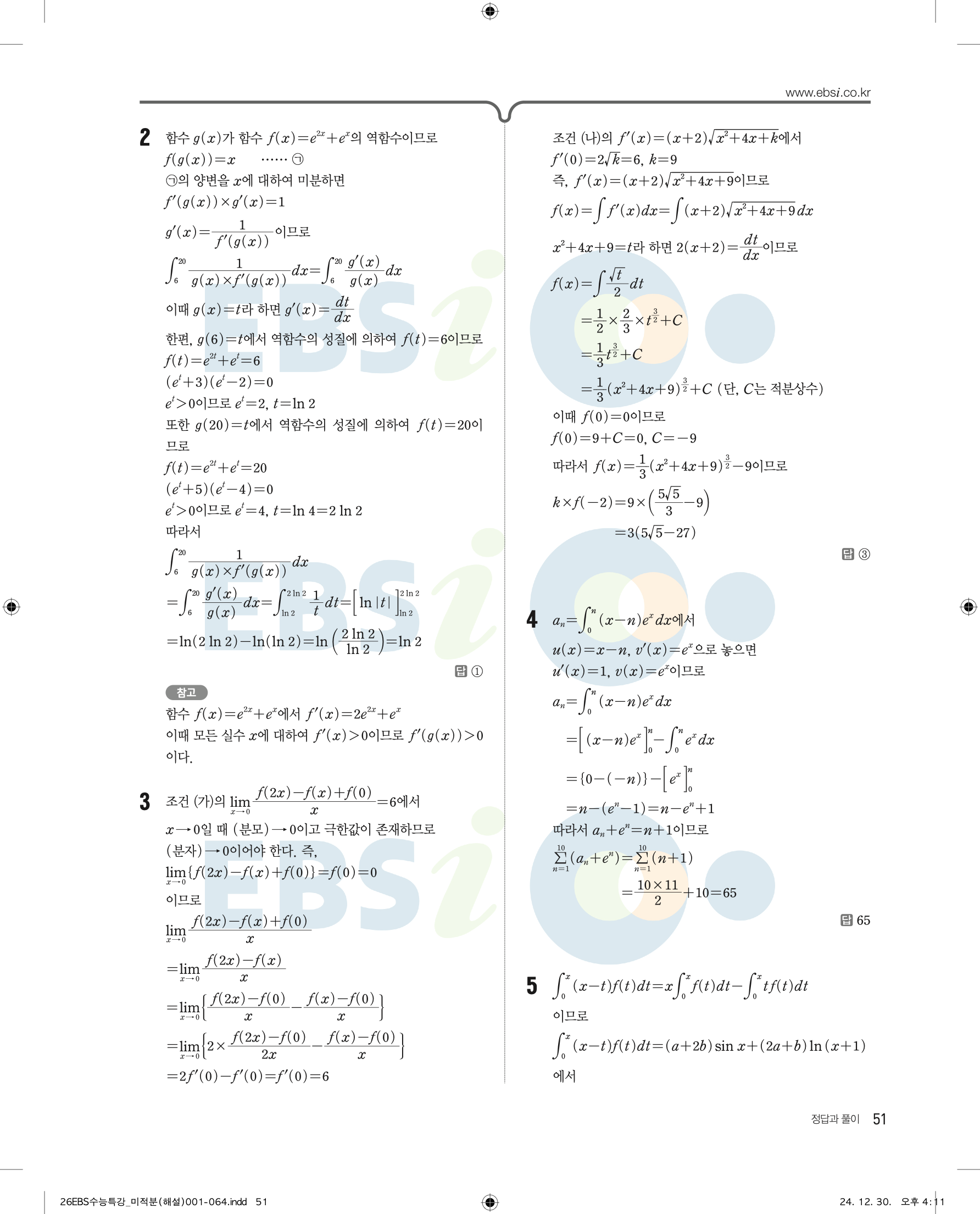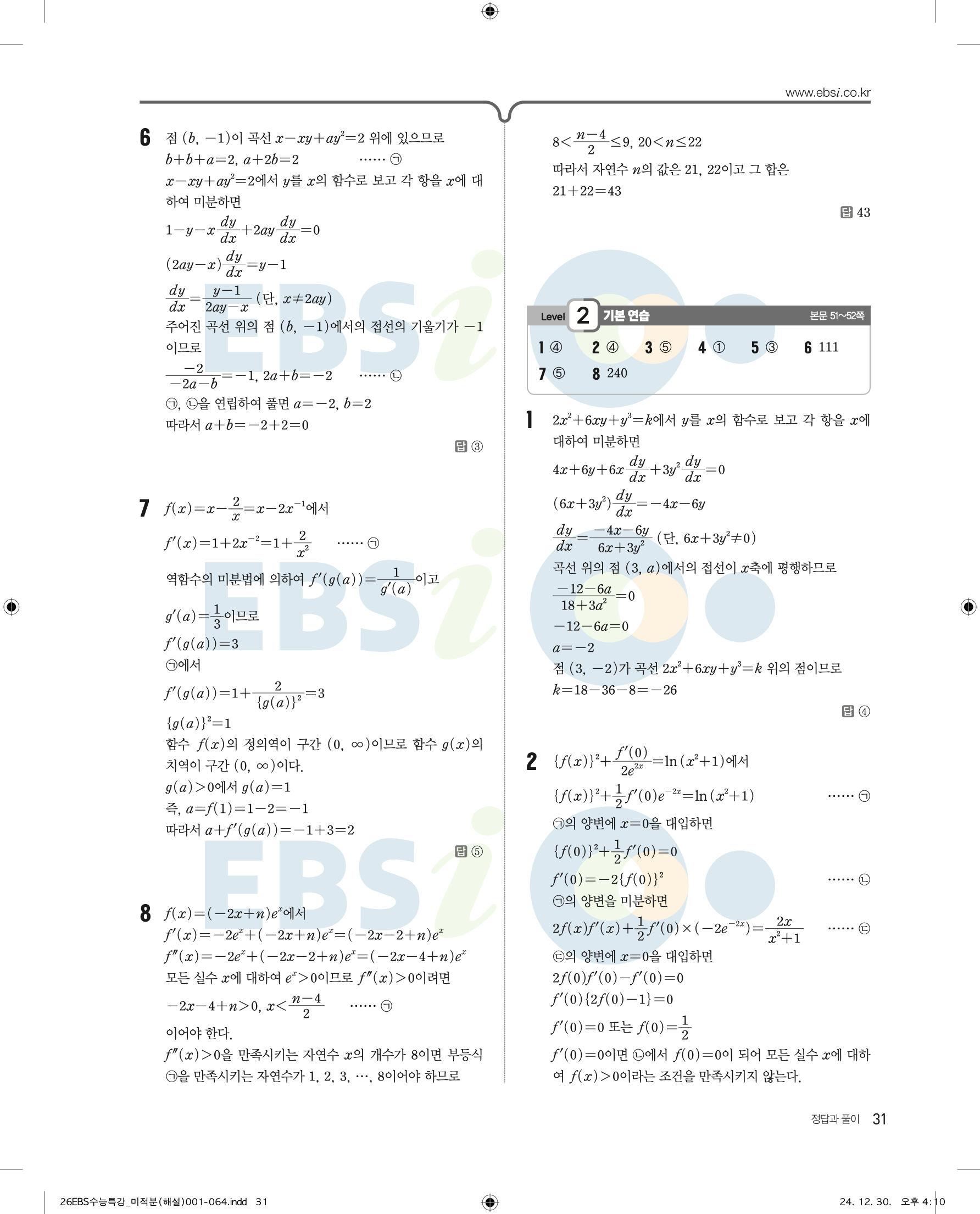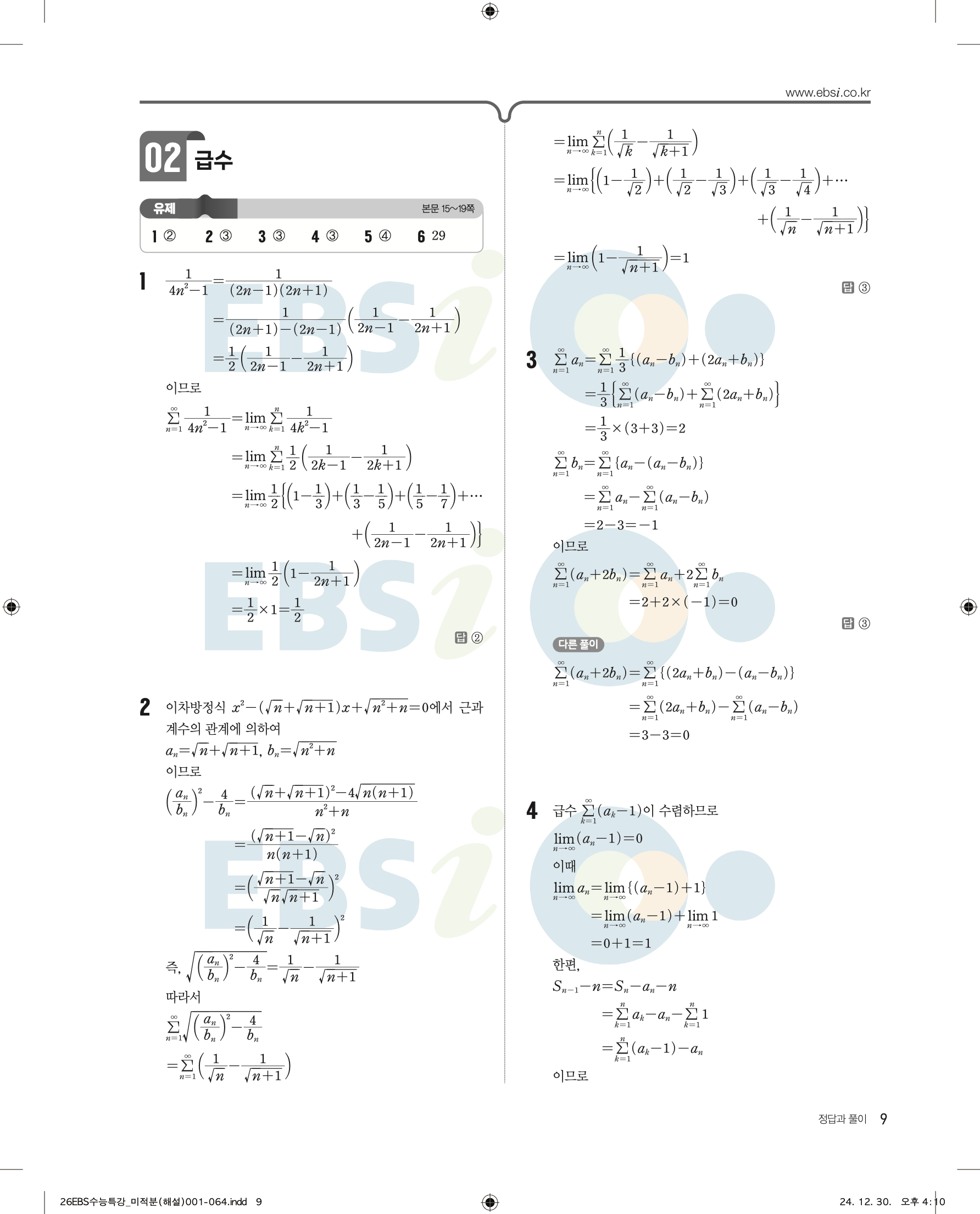 2026 수능특강 미적분 수특 미적의 답지와 해설을 통해 효과적으로 학습하고, 수능에서 좋은 성과를 거두시기 바랍니다.
