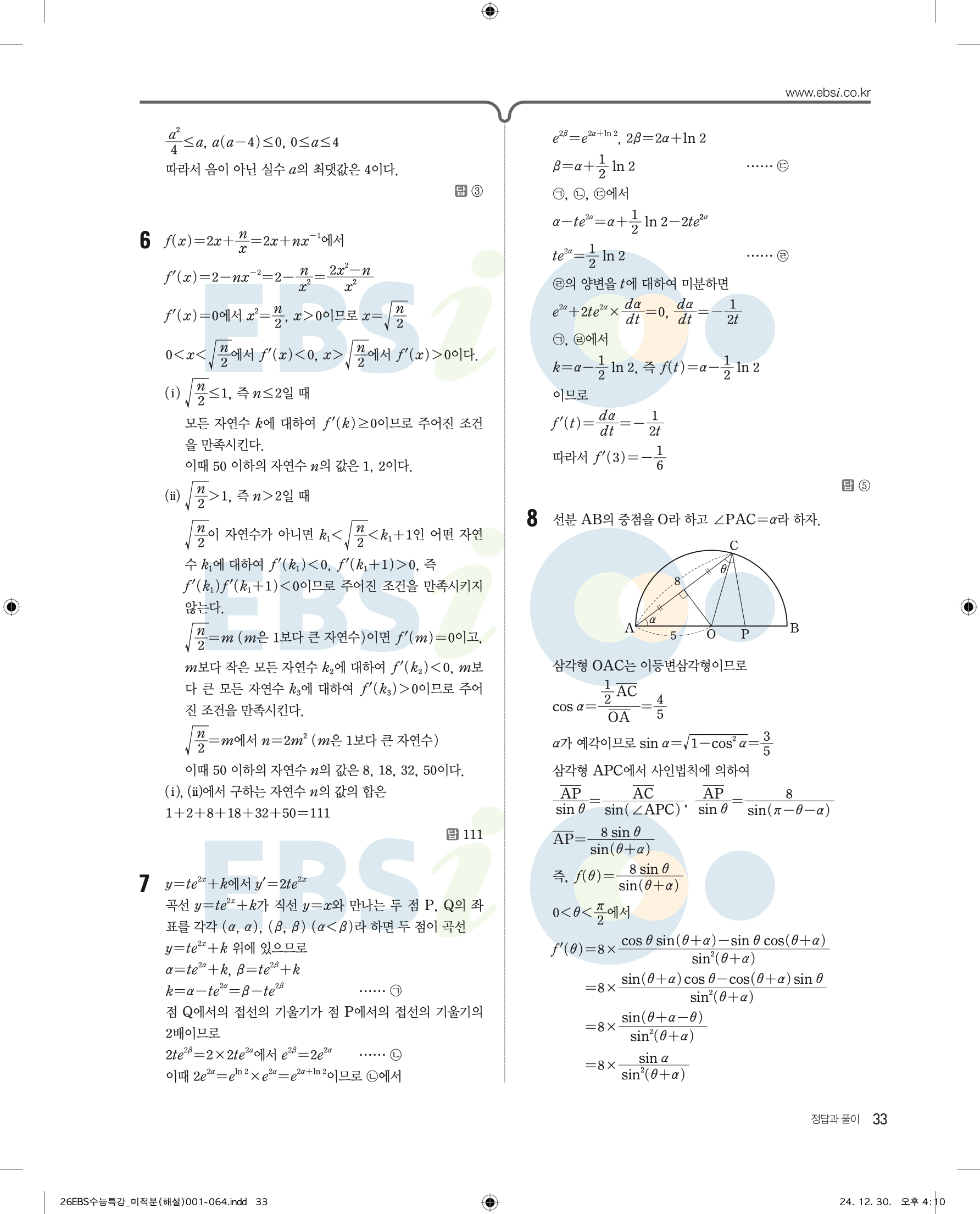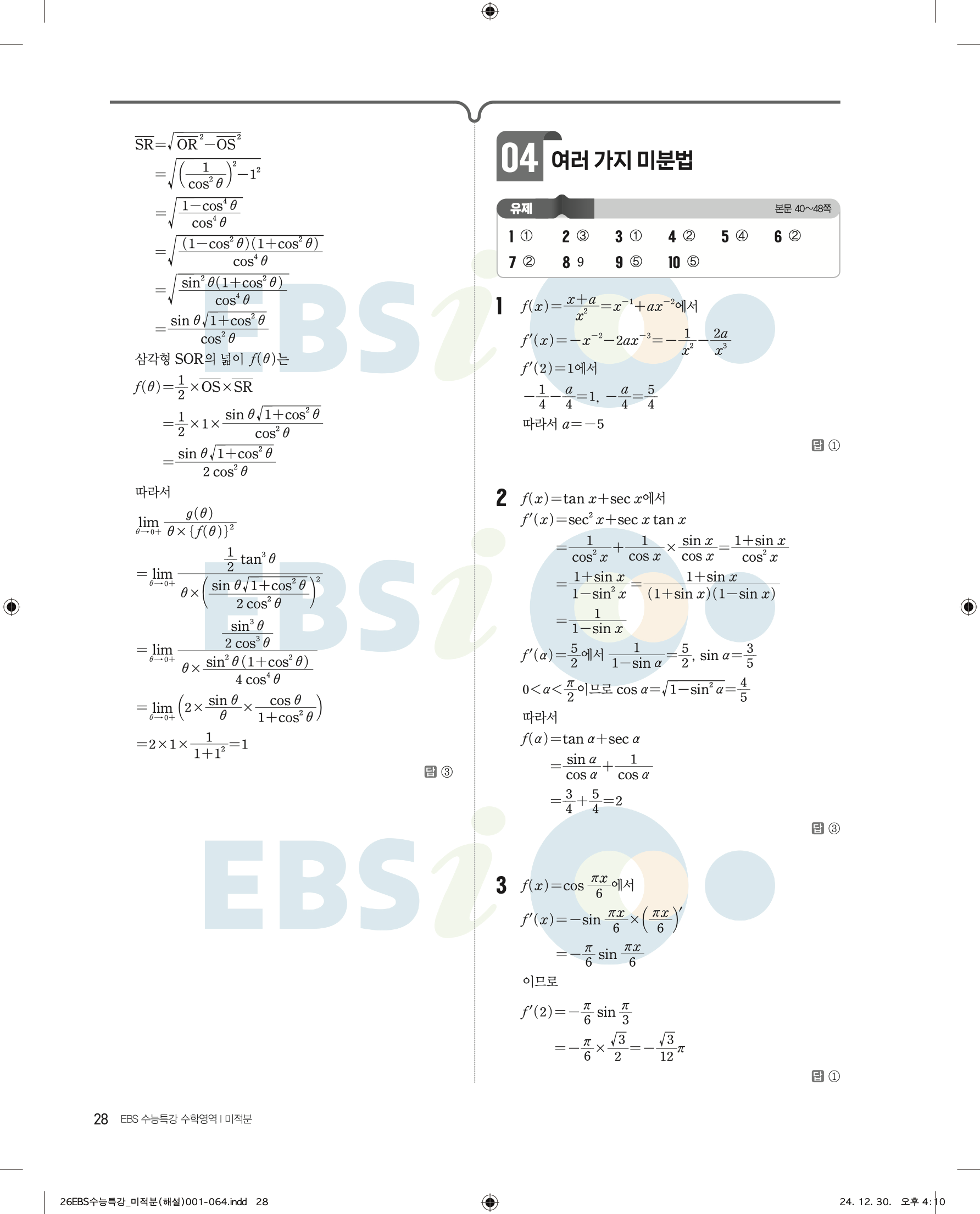 📷 2026 수능특강 미적분 수특 미적 바로보는 사진답지