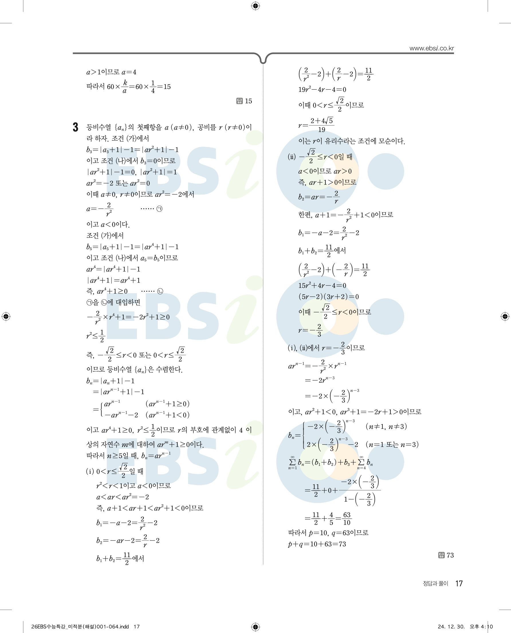 📖 2026 수능특강 미적분 수특 미적 답지 해설 및 빠른답지 다운로드