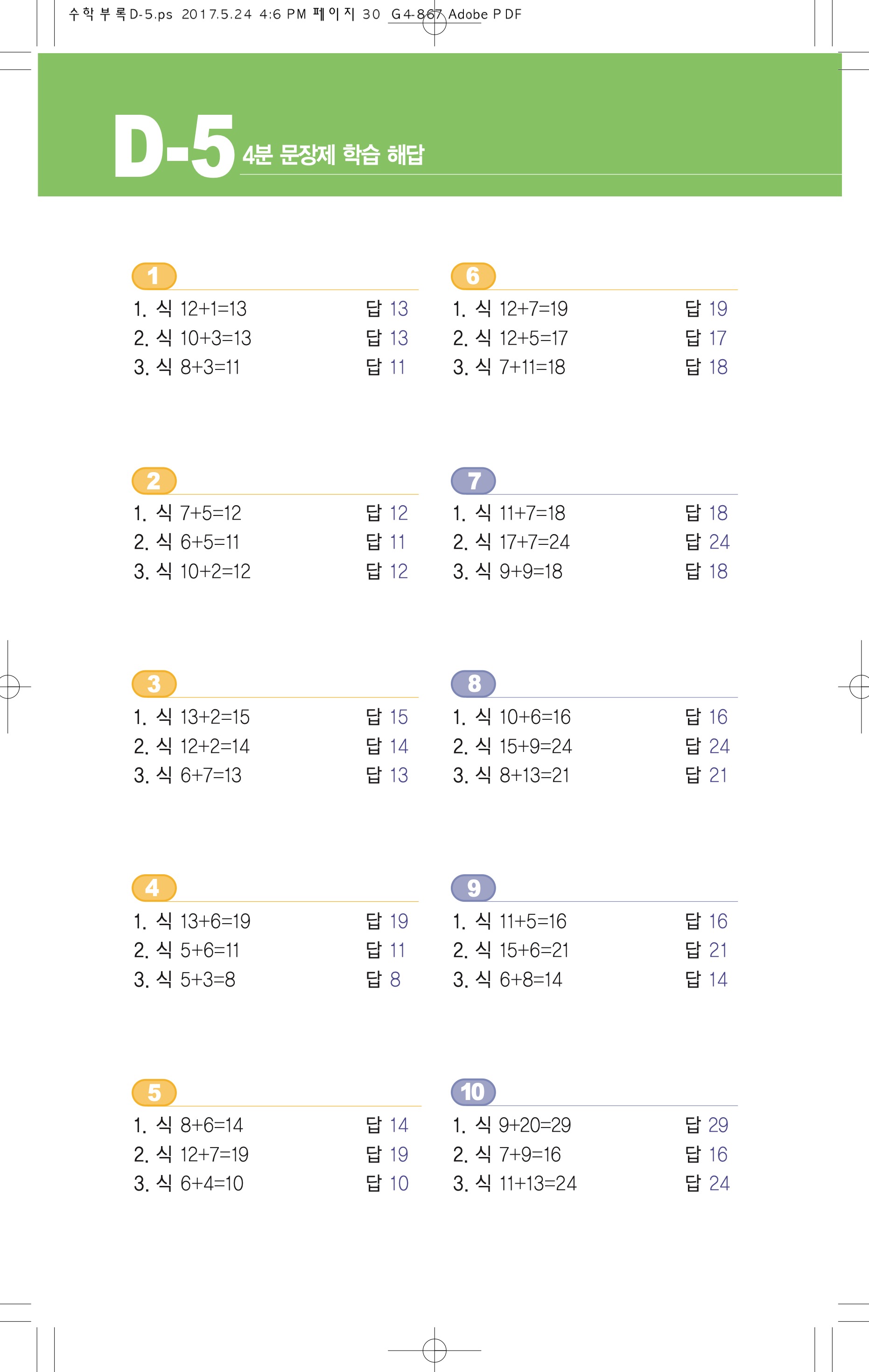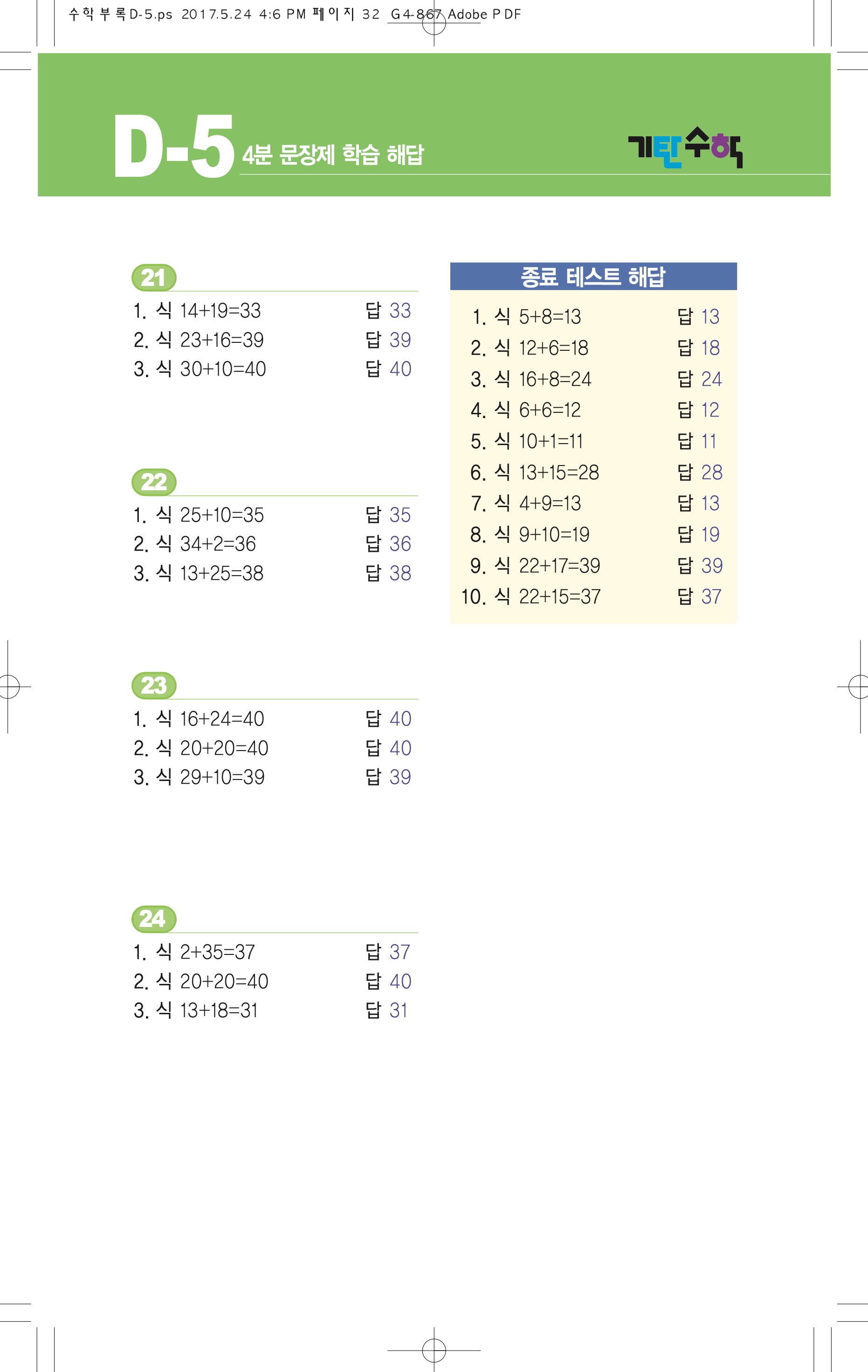 기탄수학d5답지 d-5답지