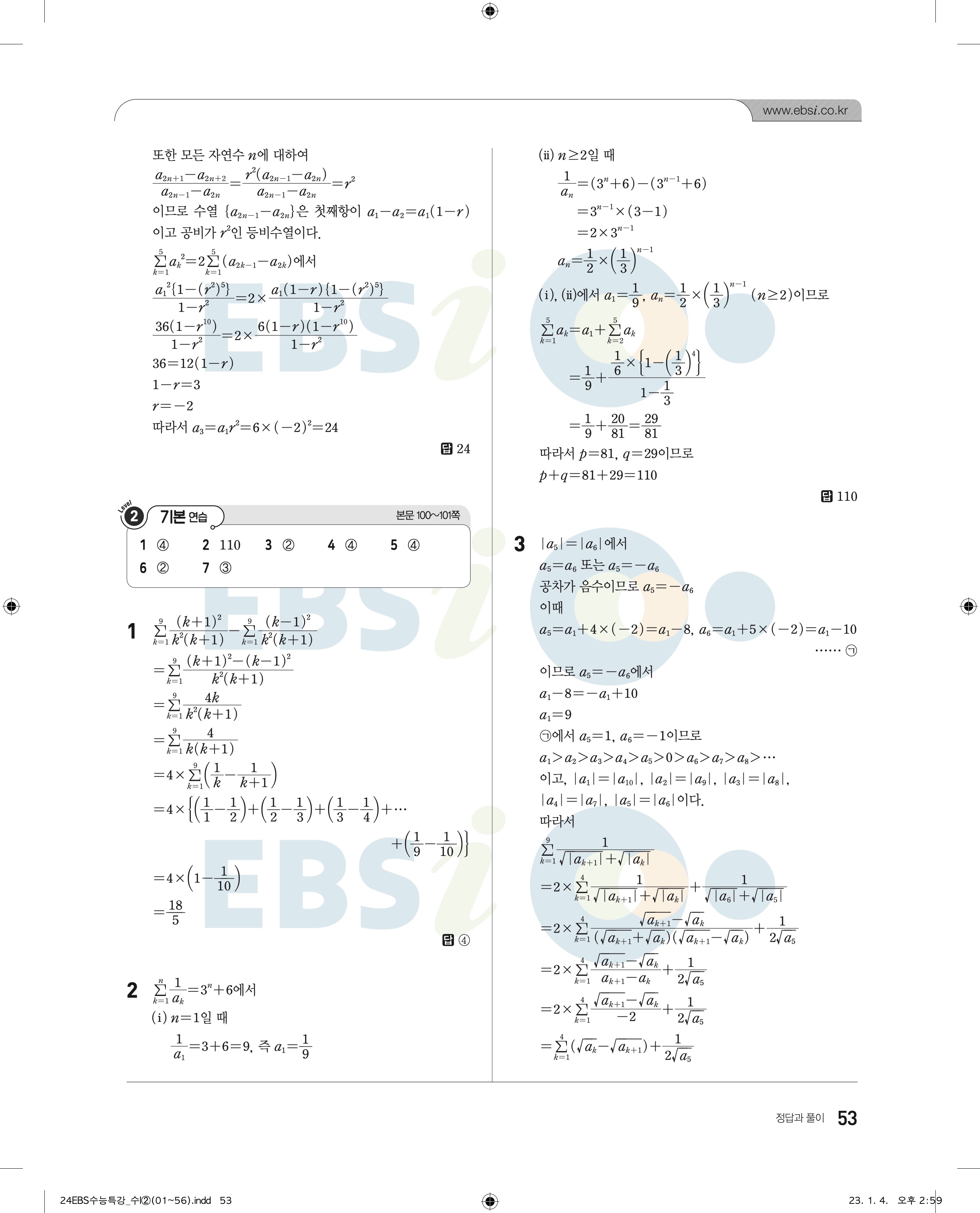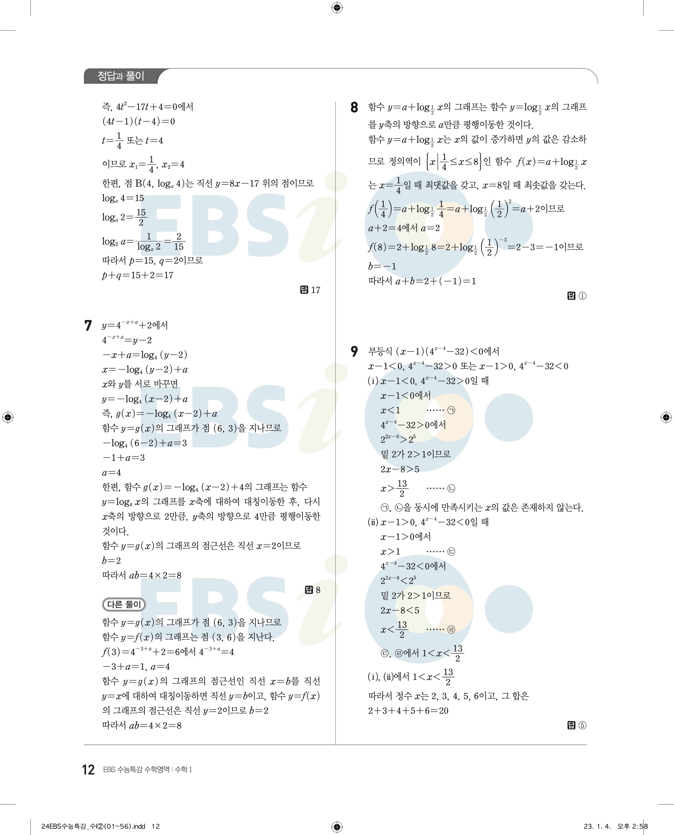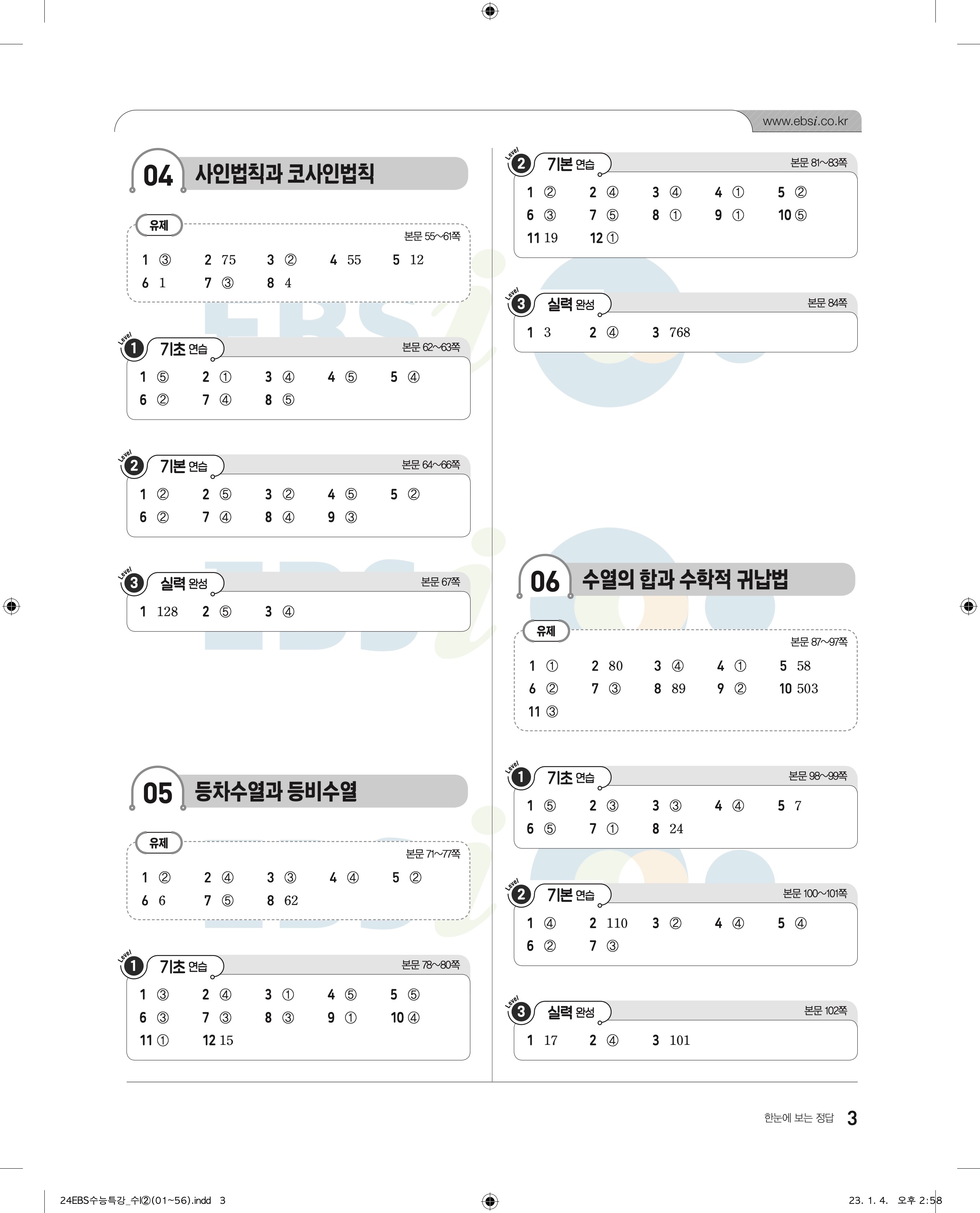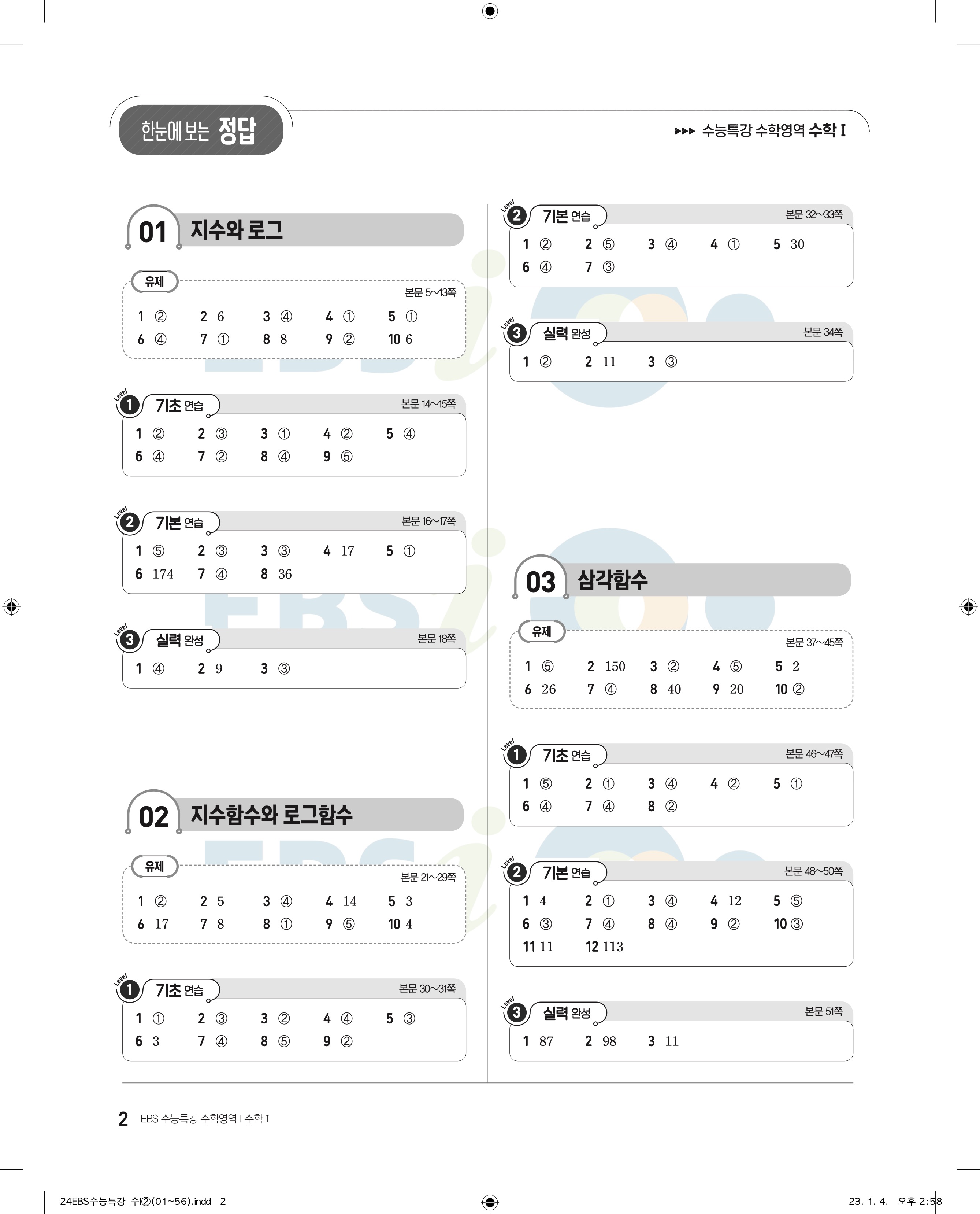 2024수능특강 수학1 답지 다운없이 바로보는 사진답지 모바일최적화