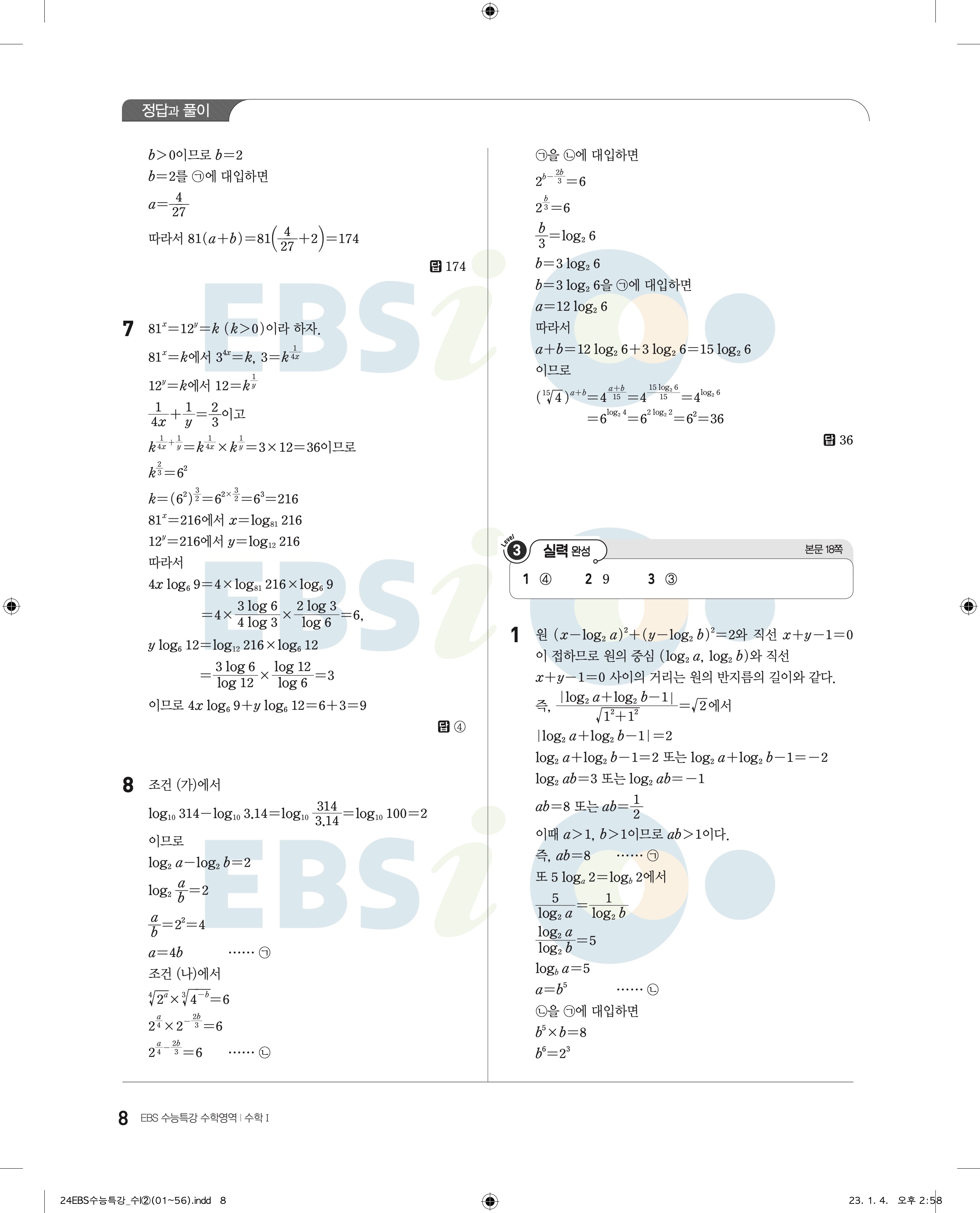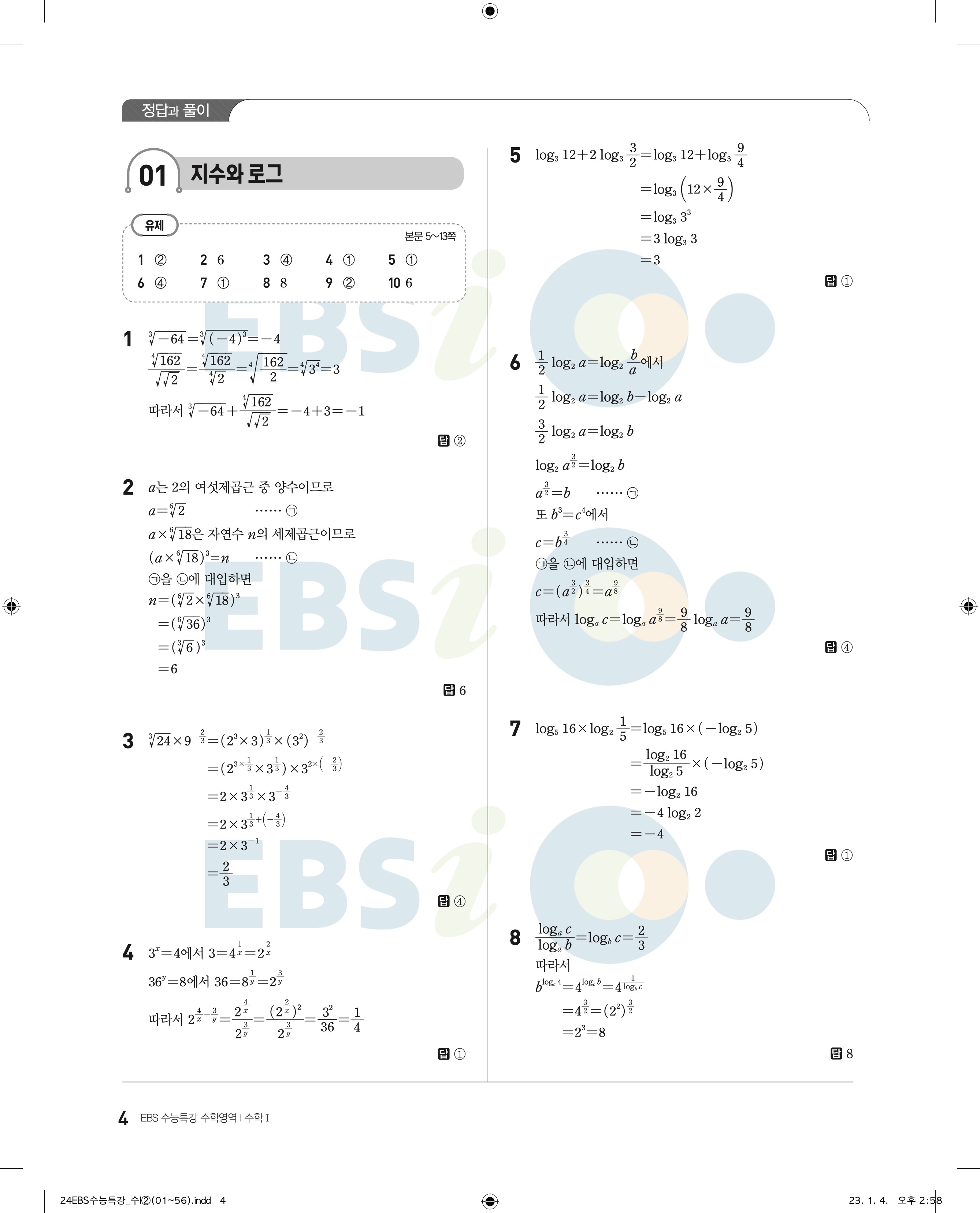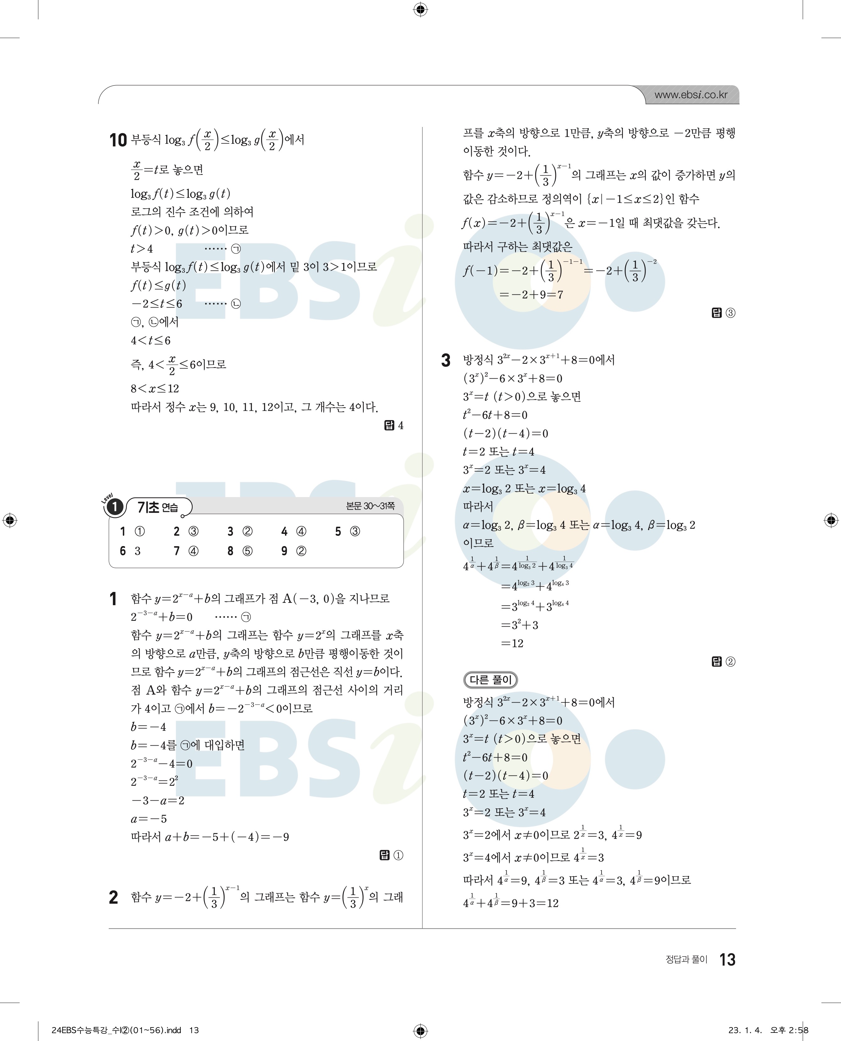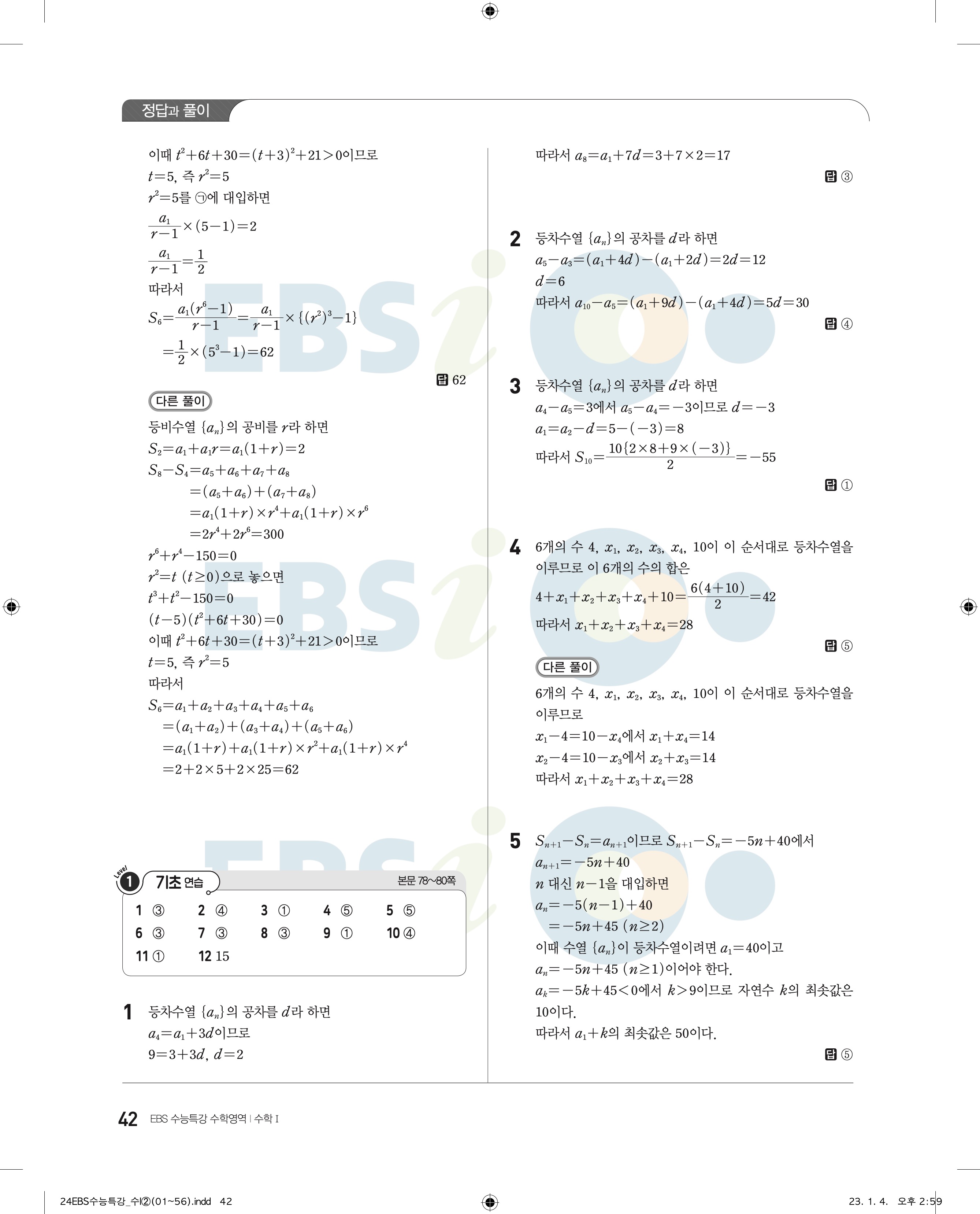 2024수능특강 수학1 답지 다운없이 바로보는 사진답지 모바일최적화
