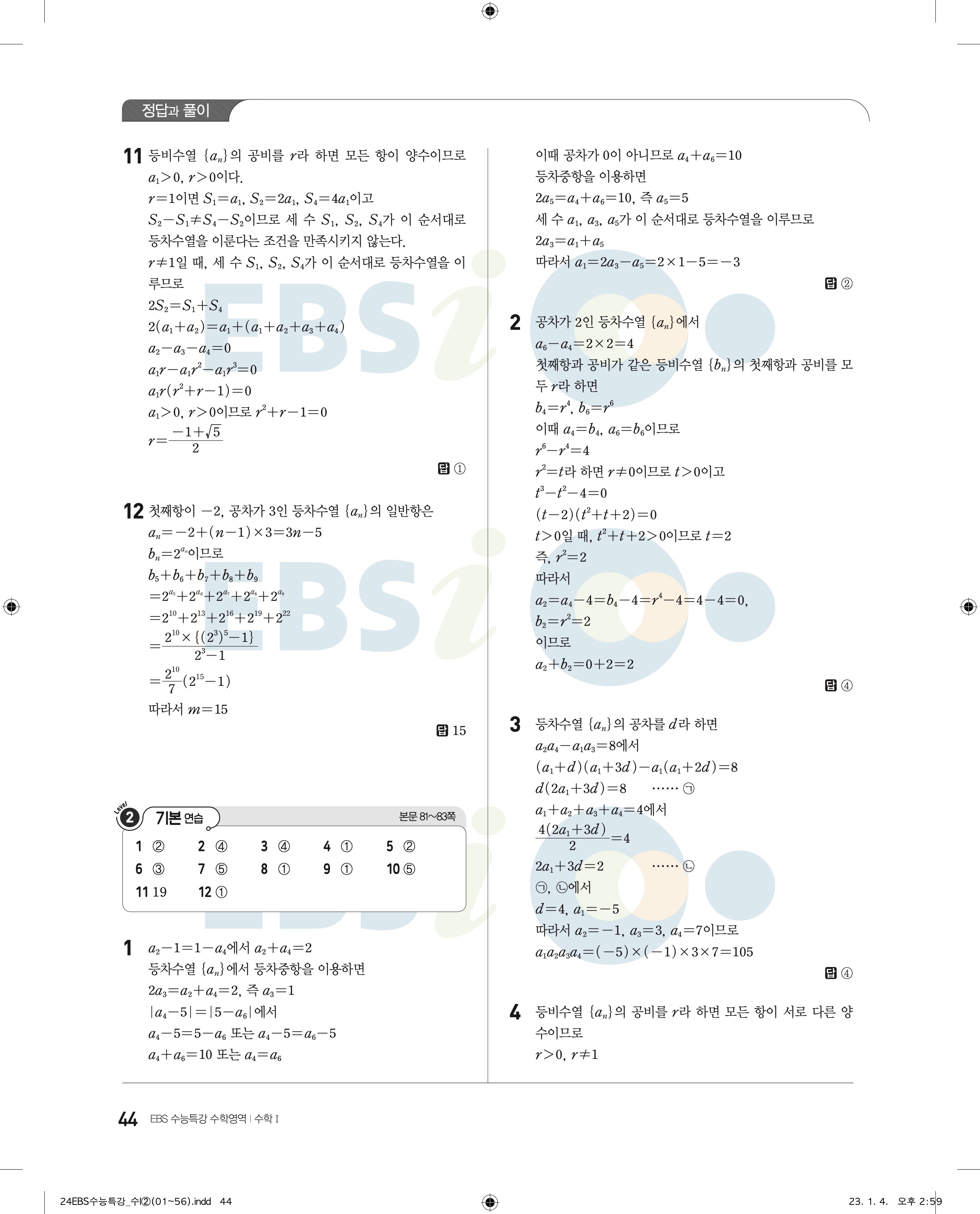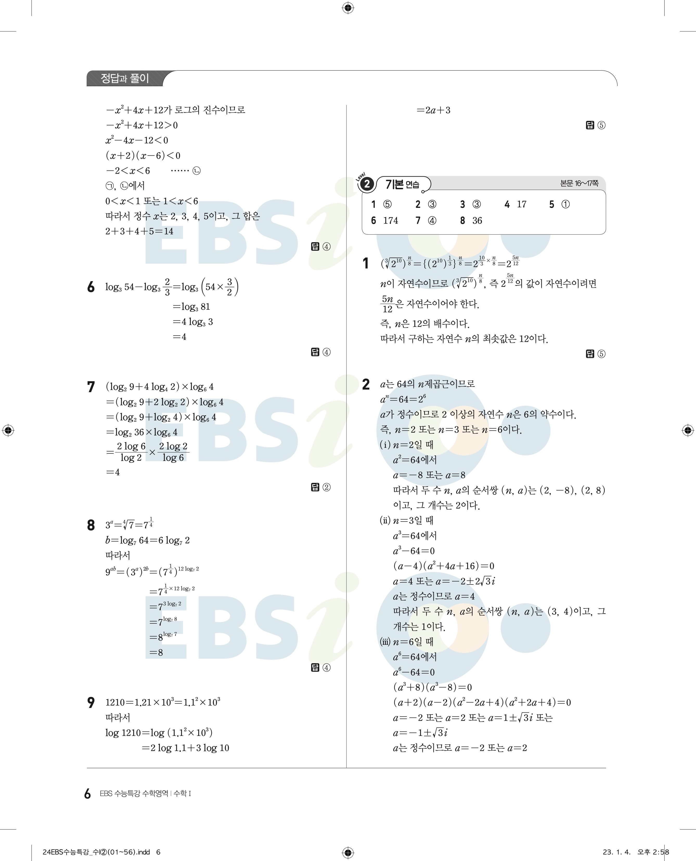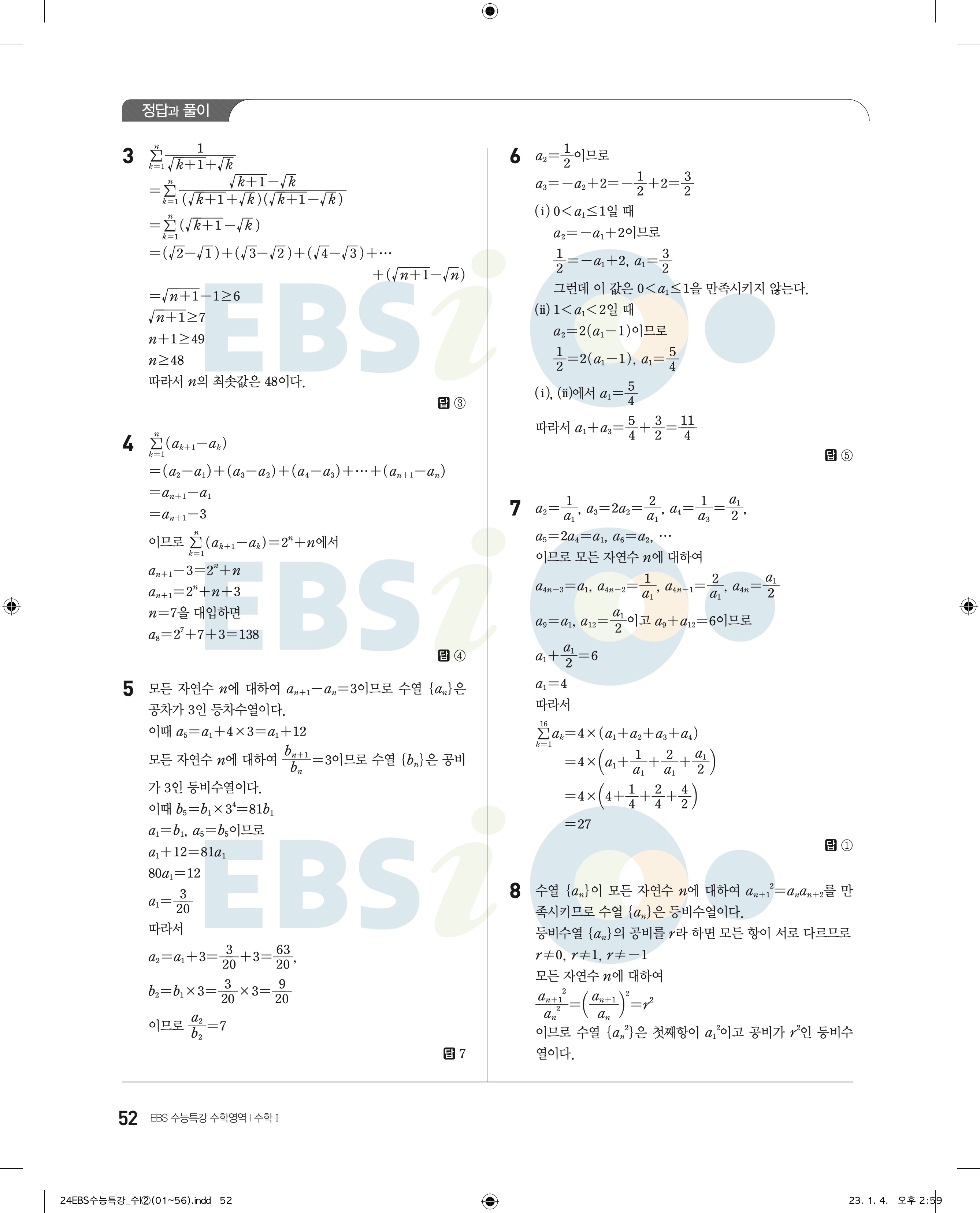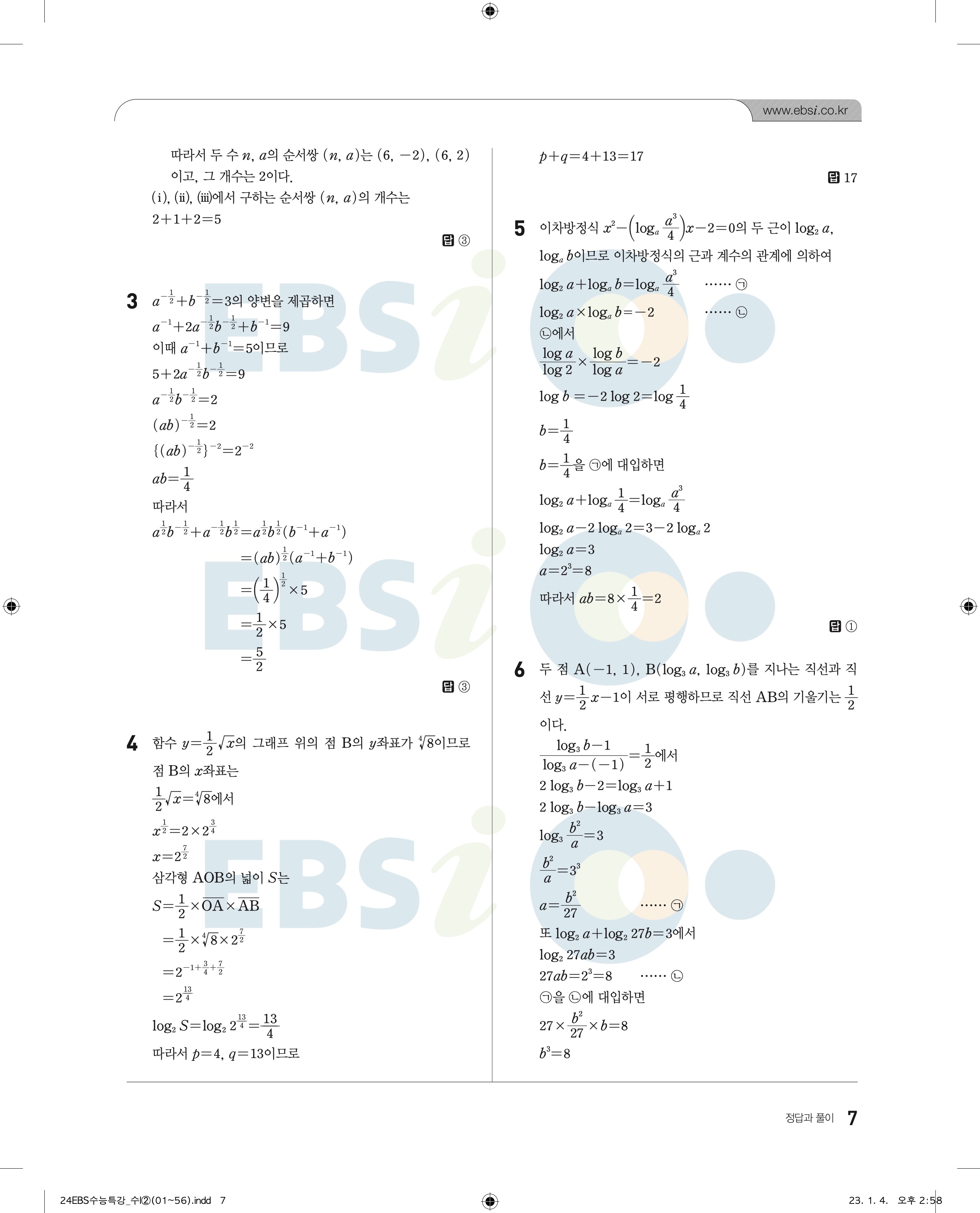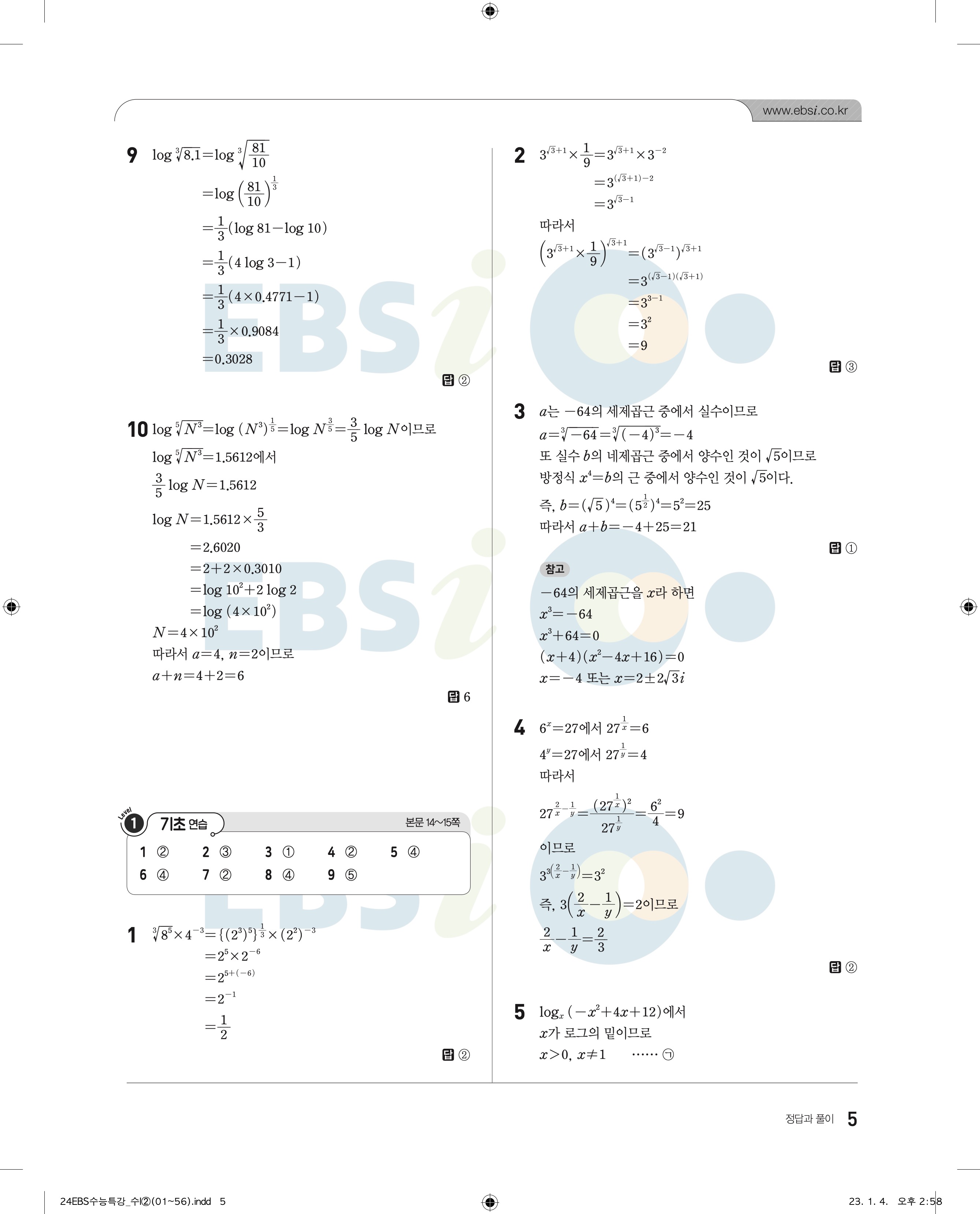 2024수능특강 수학1 답지 다운없이 바로보는 사진답지 모바일최적화