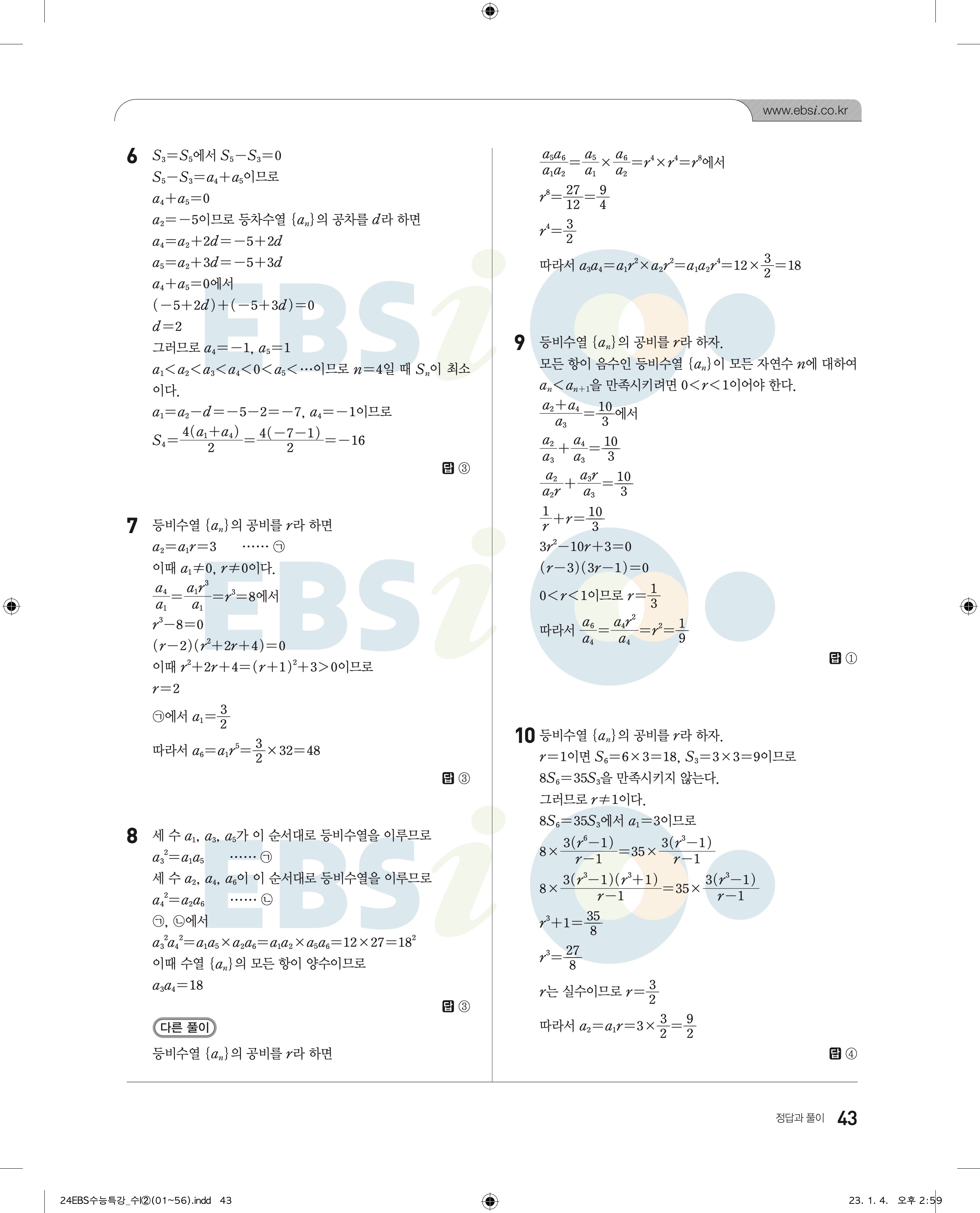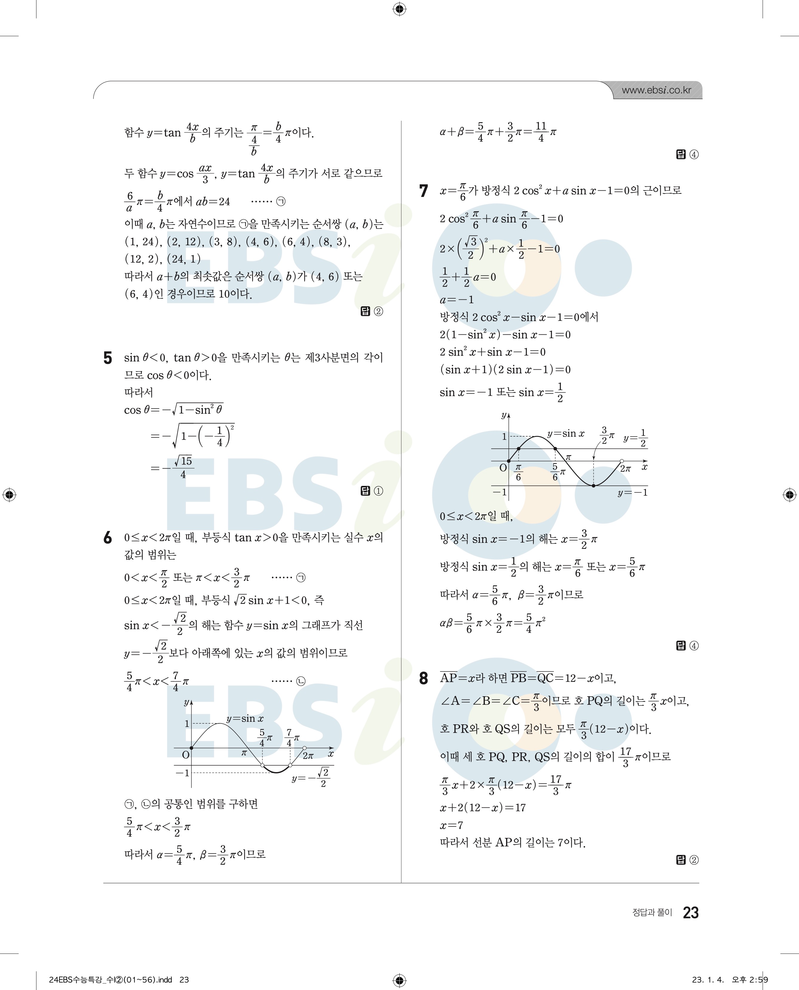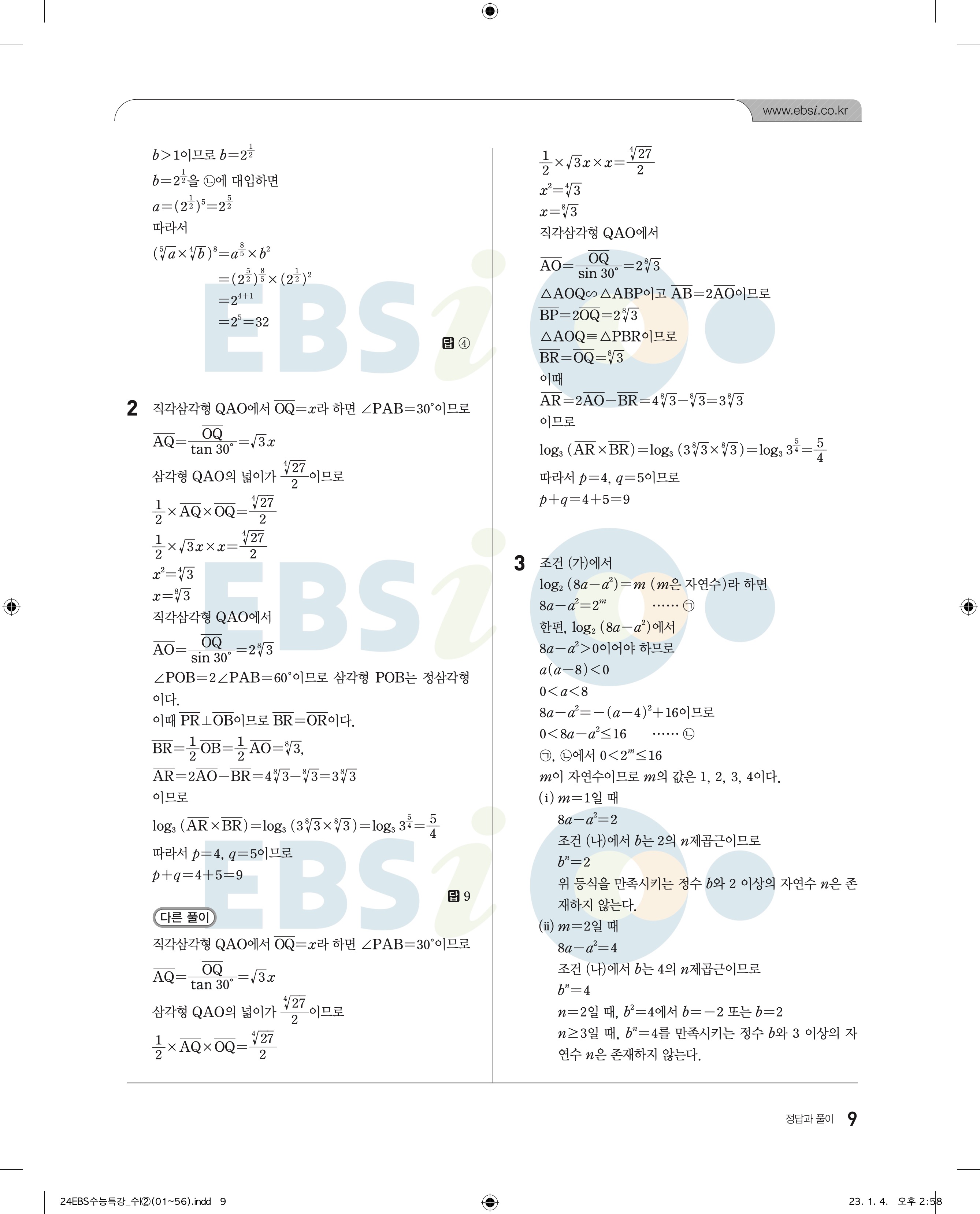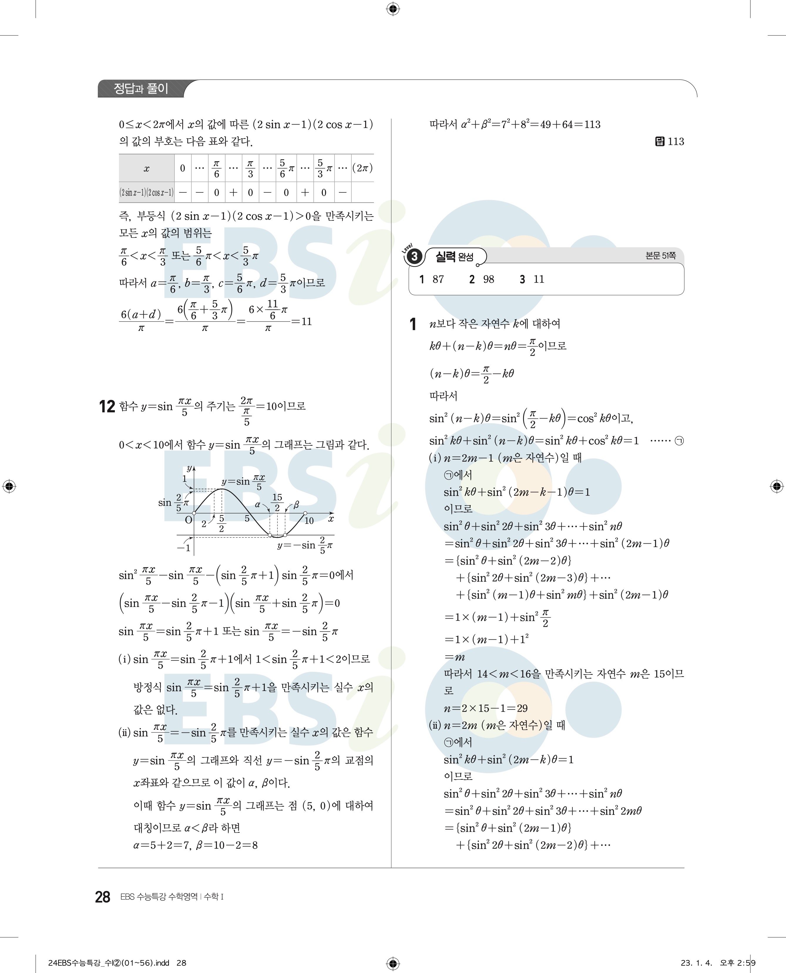 2024수능특강 수학1 답지 다운없이 바로보는 사진답지 모바일최적화
