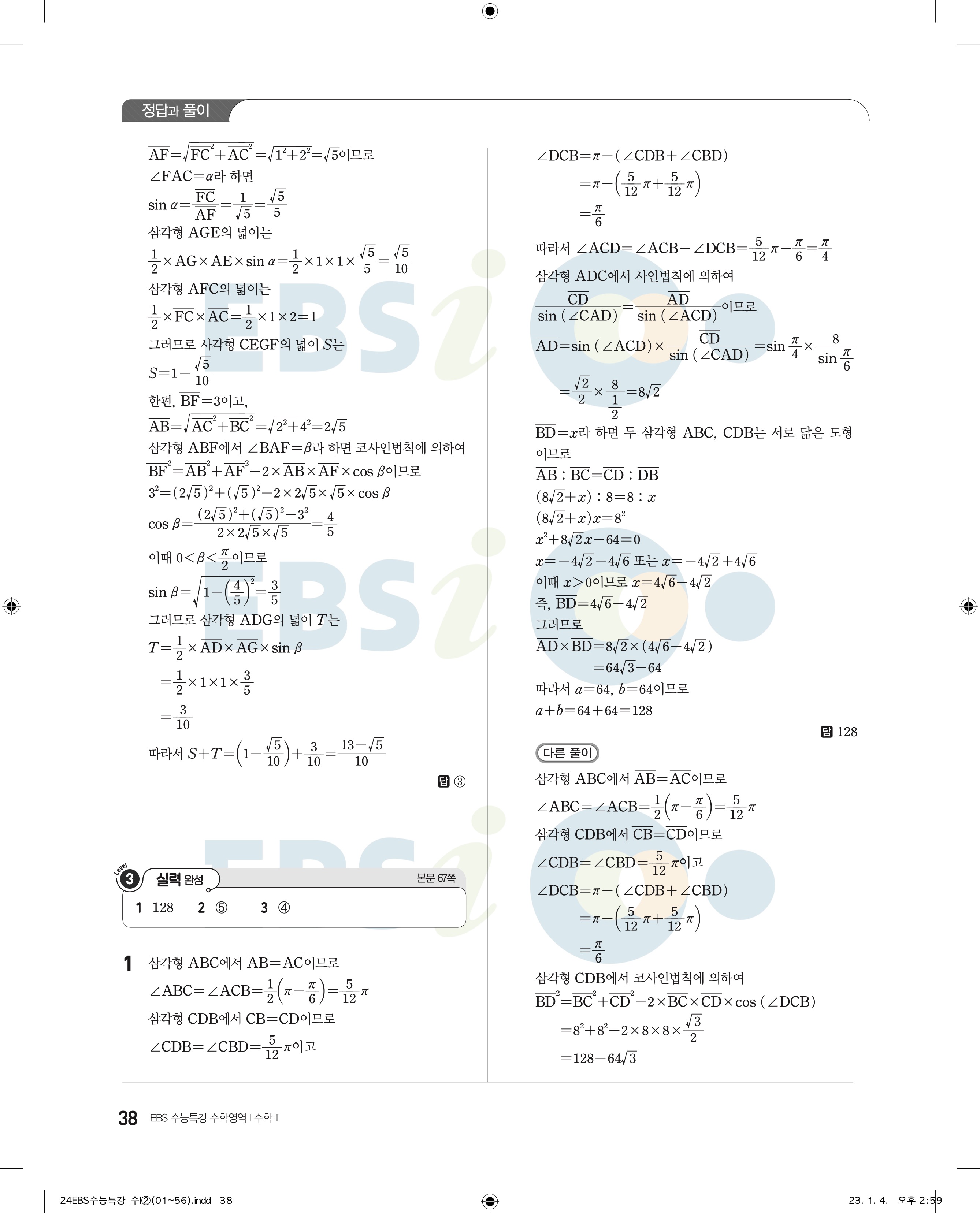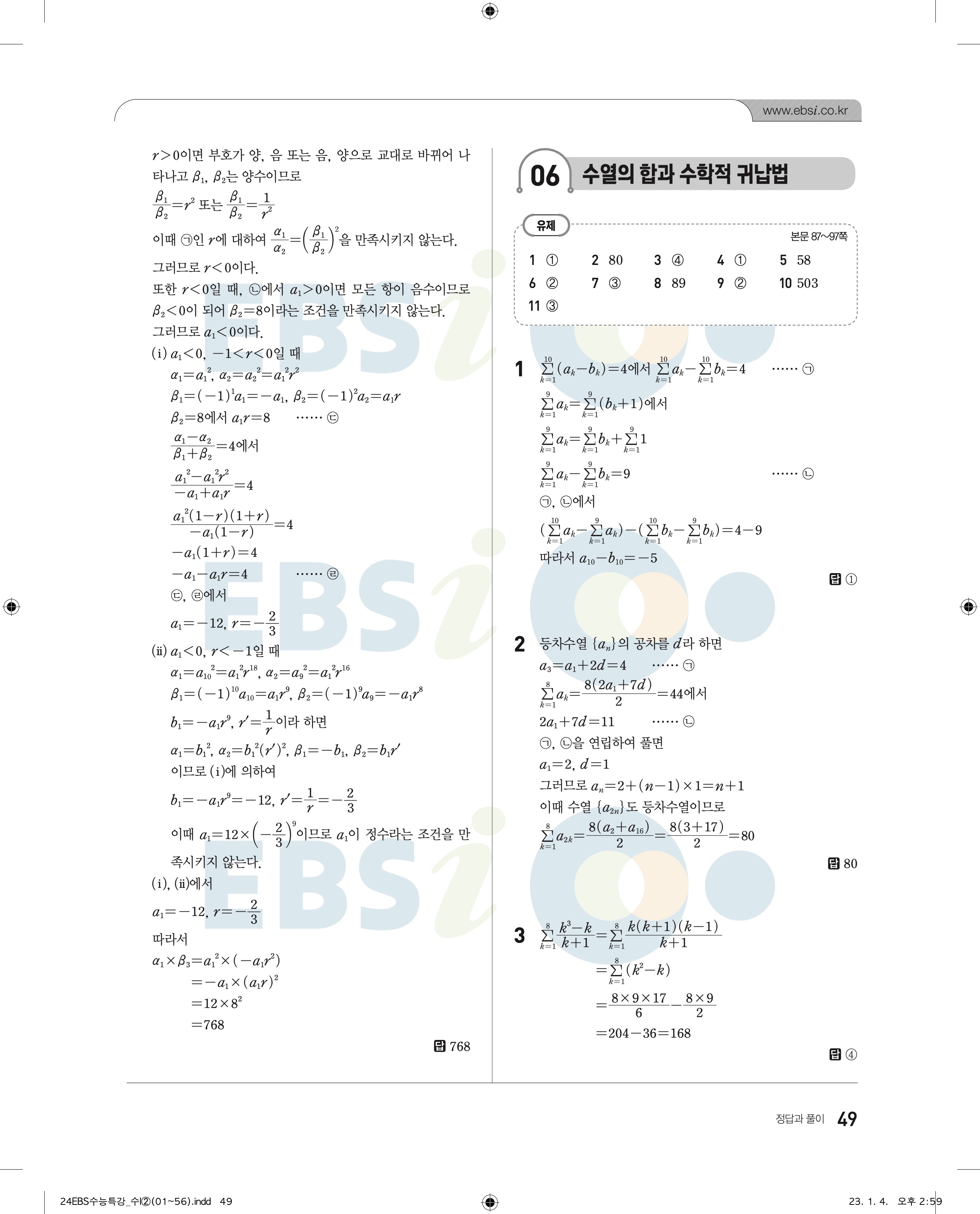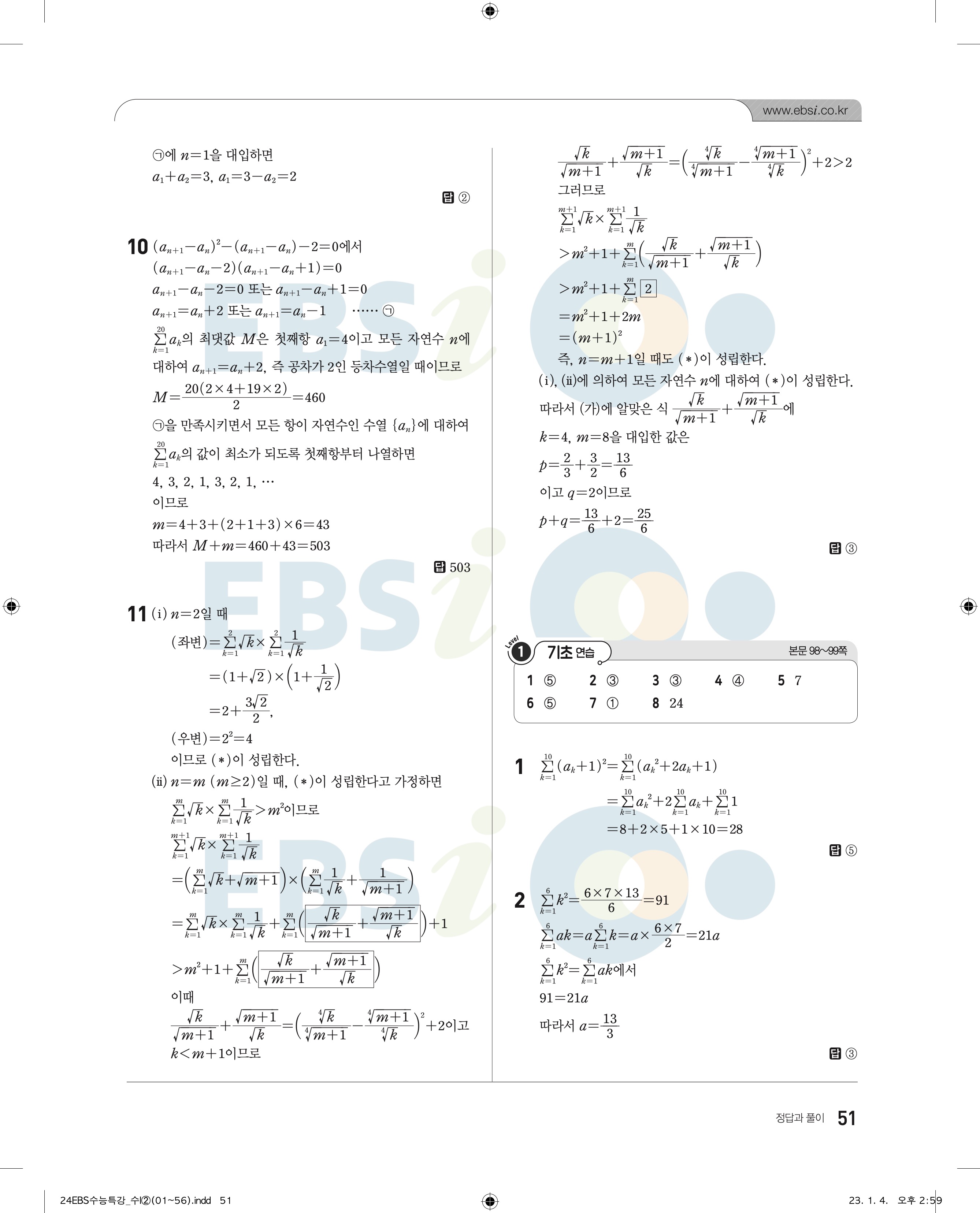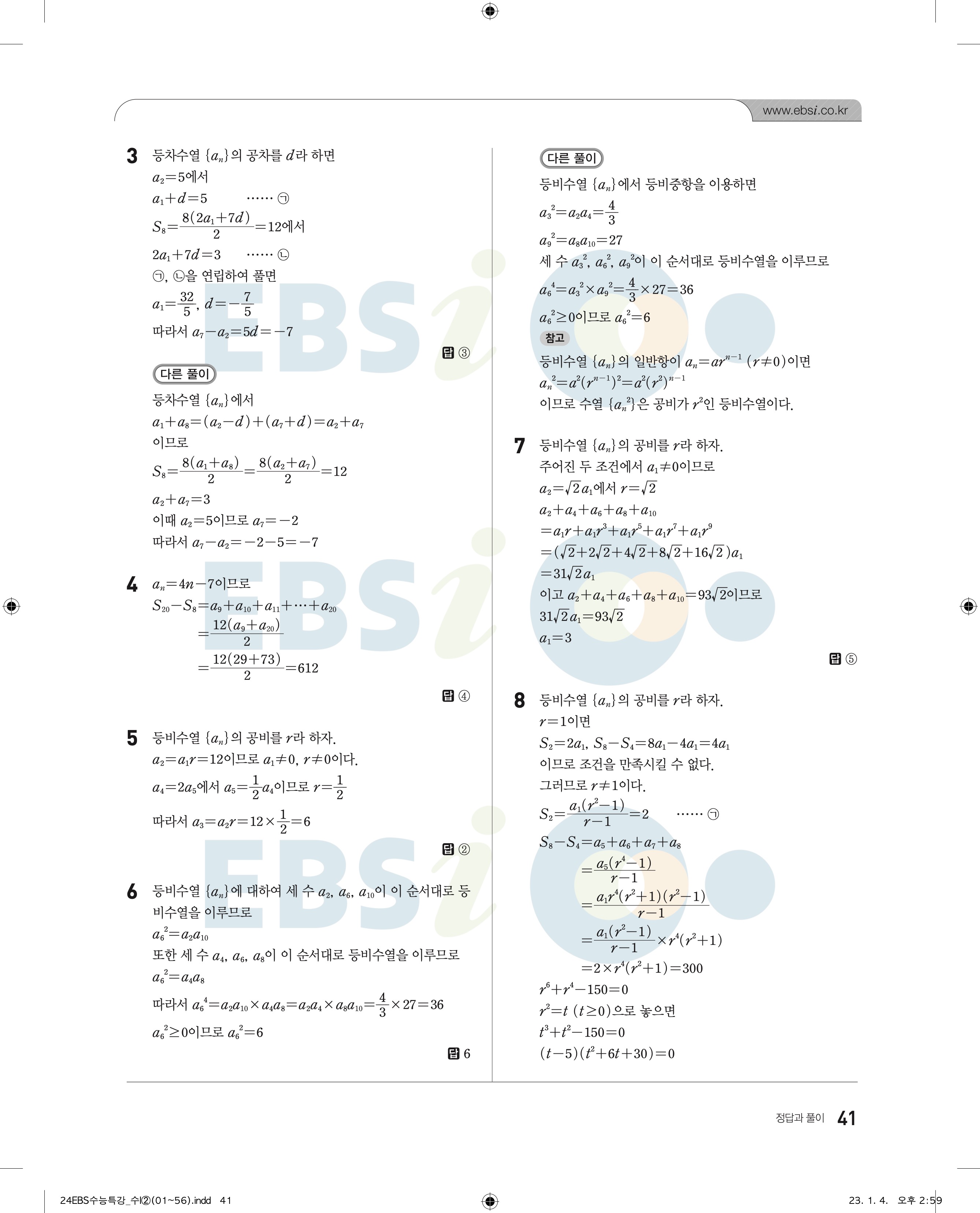 2024수능특강 수학1 답지 다운없이 바로보는 사진답지 모바일최적화