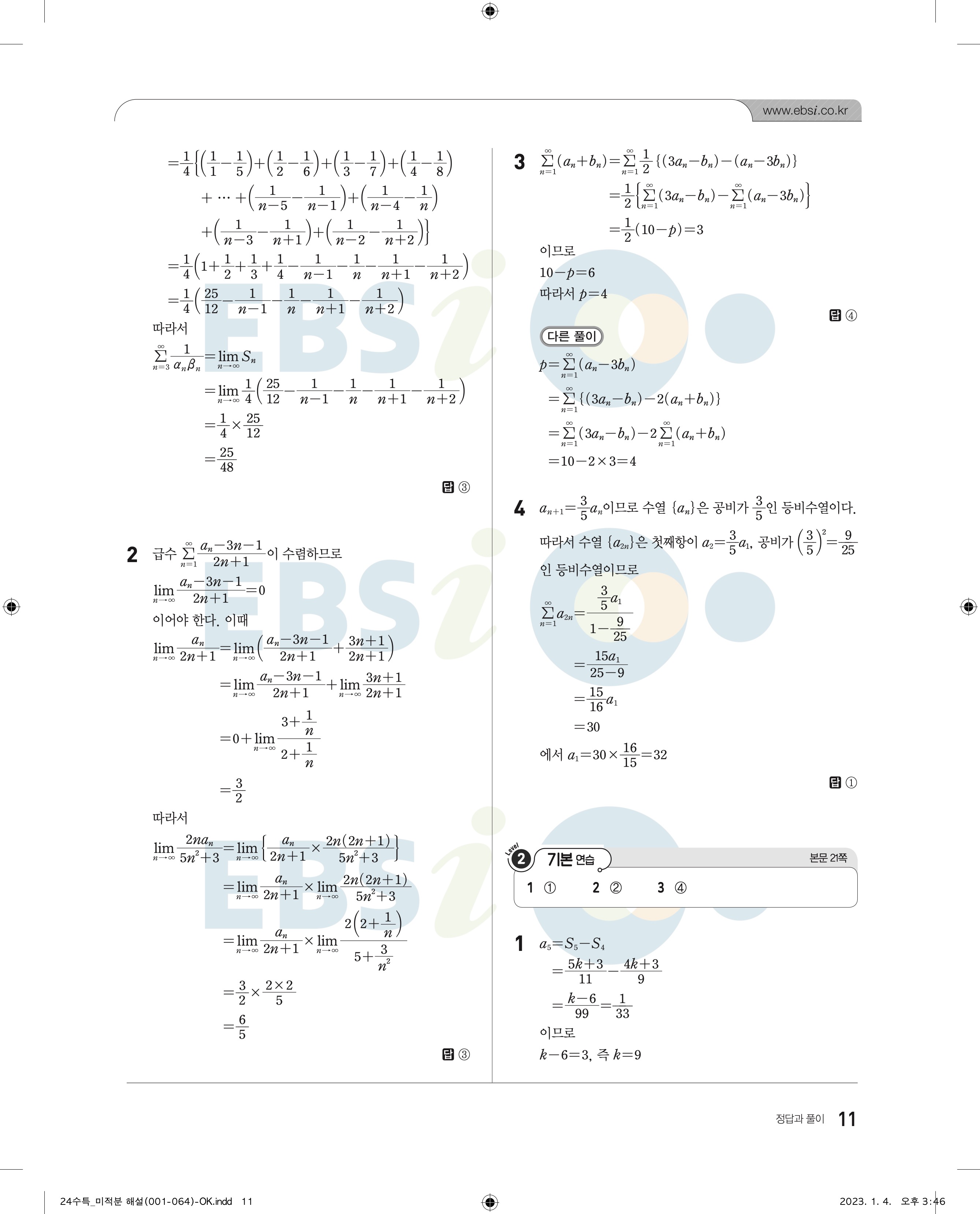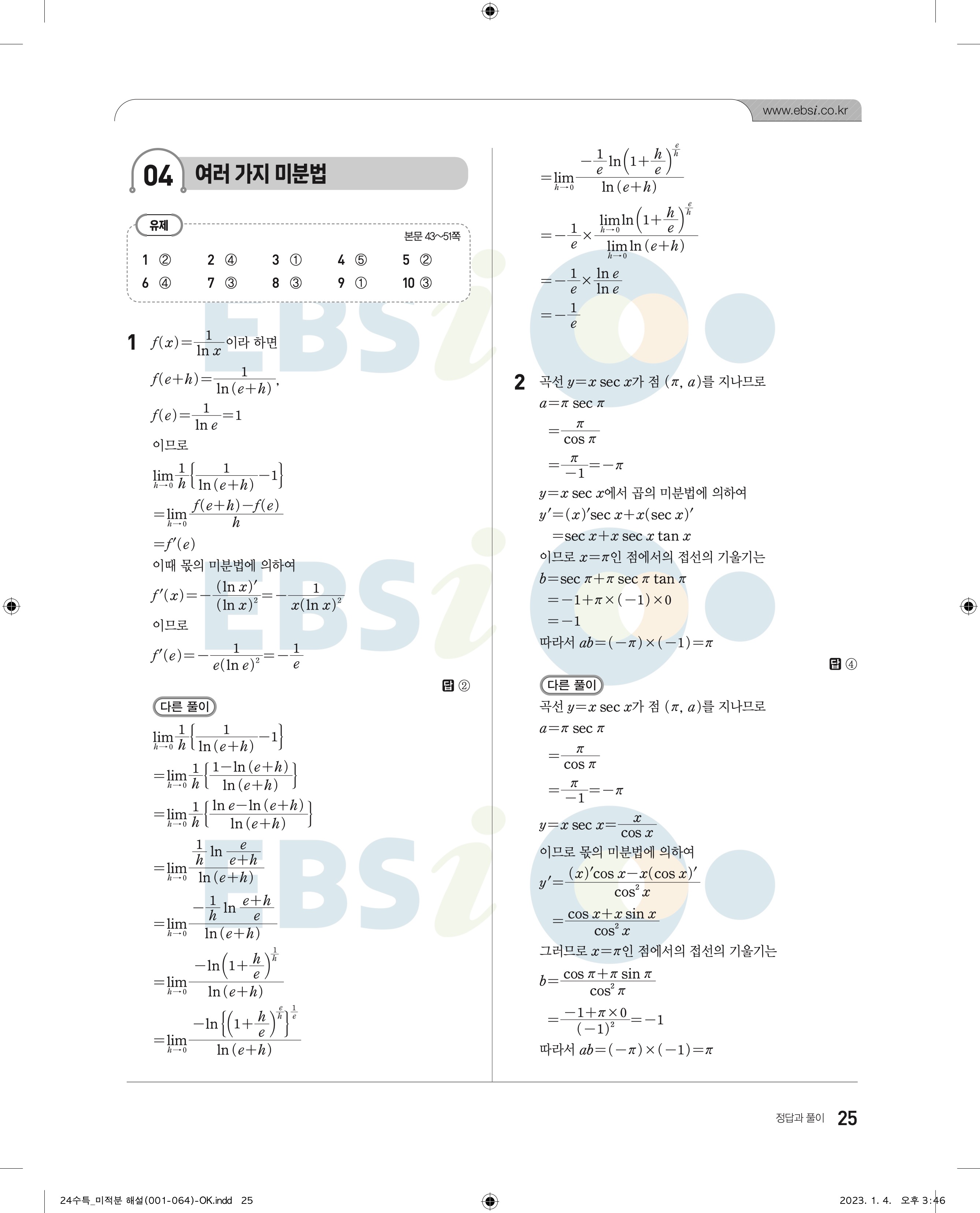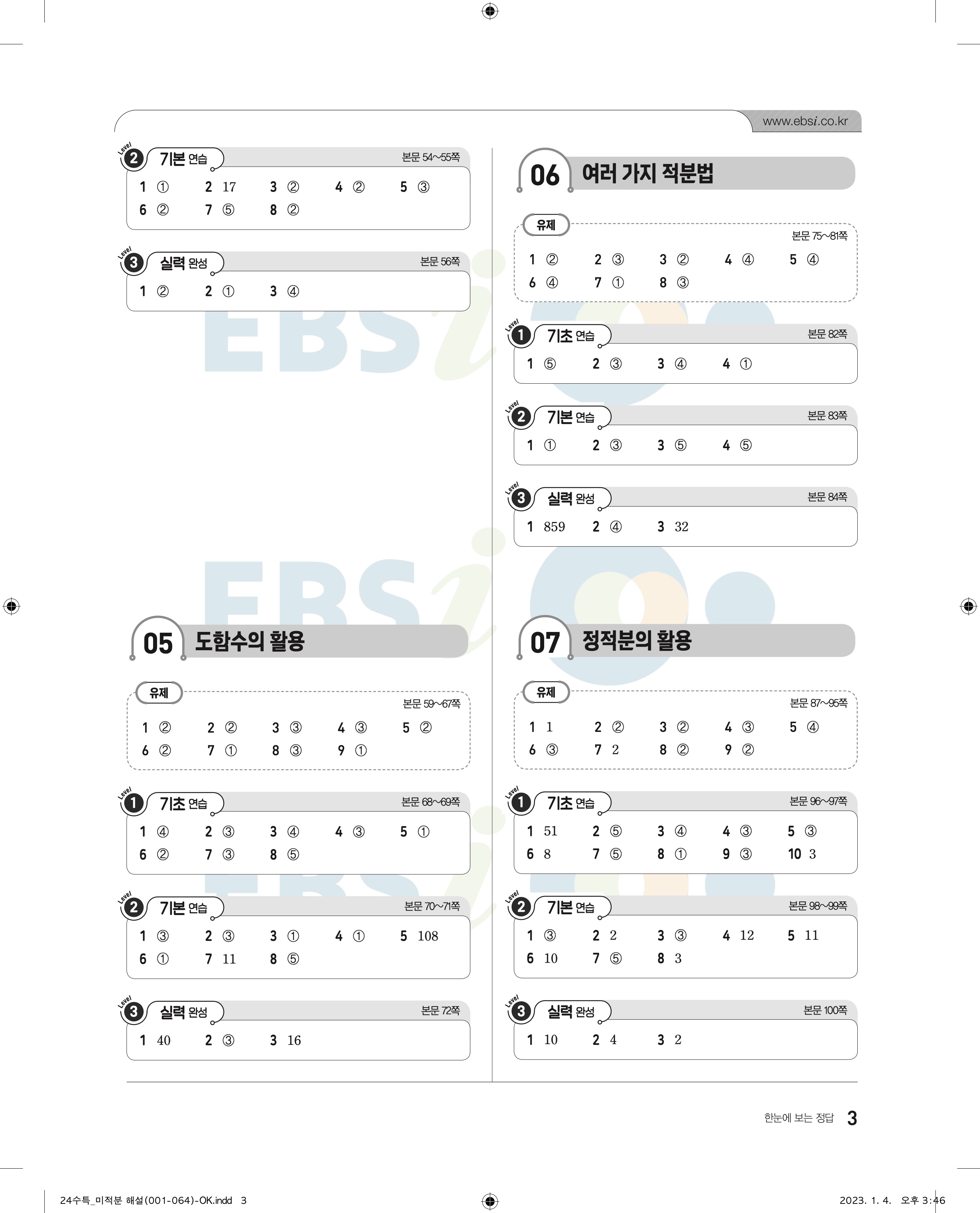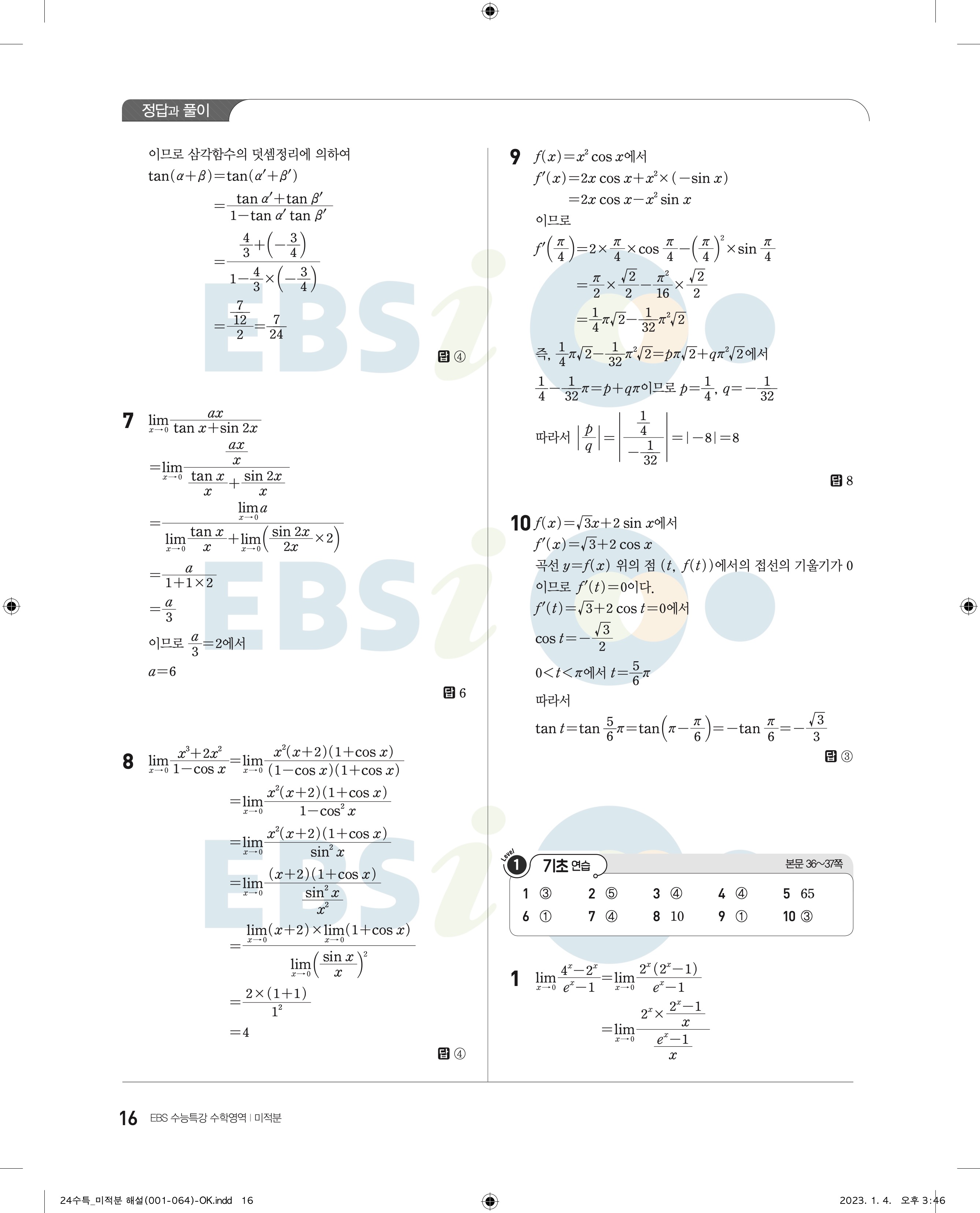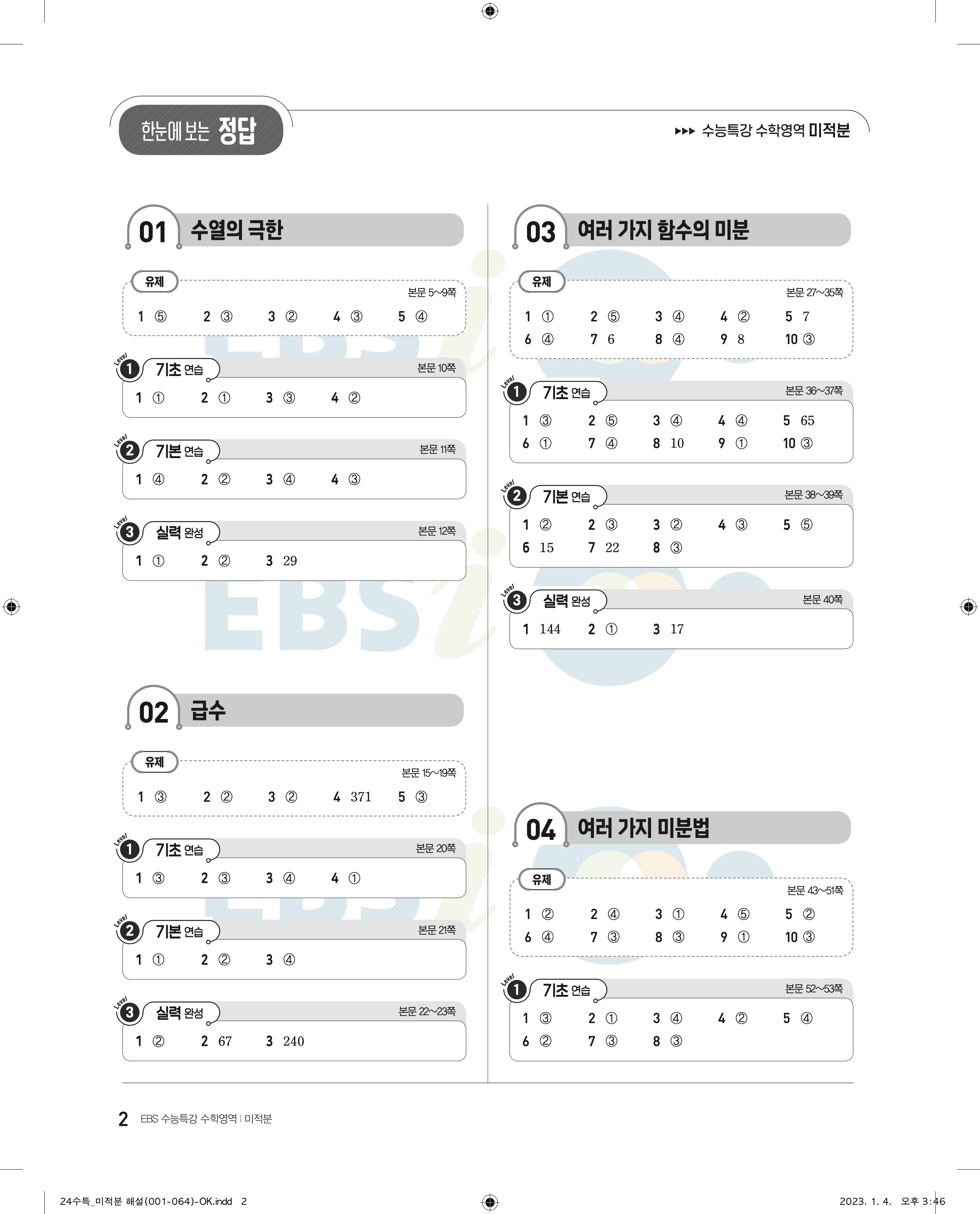 수특미적분답지해설 바로보는 사진답지 2024수능대비