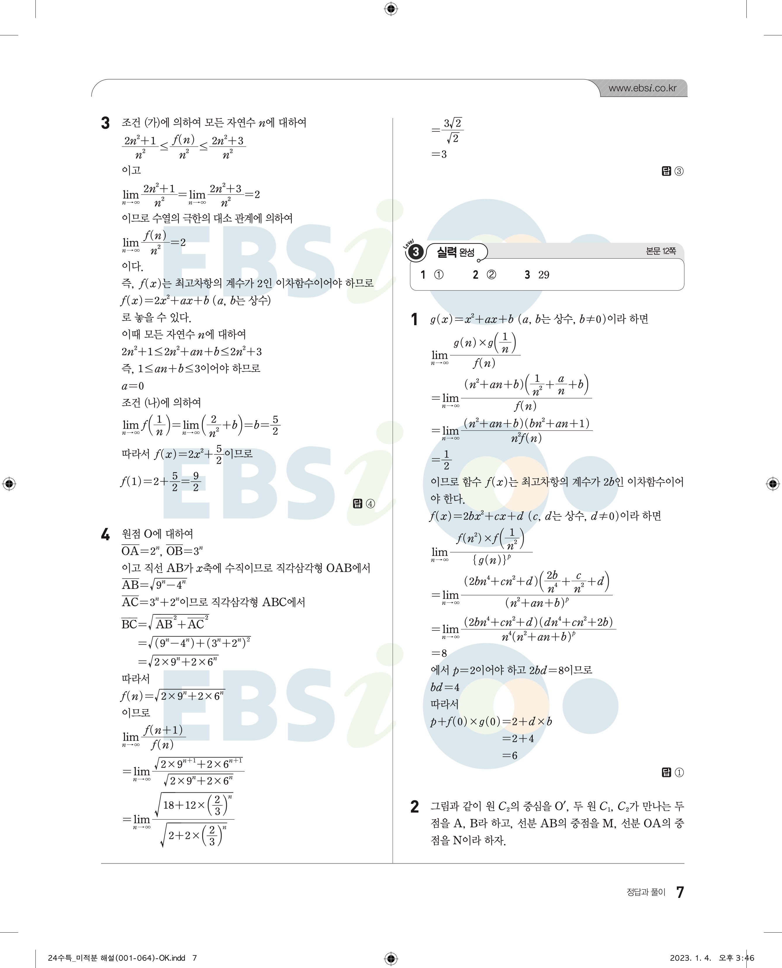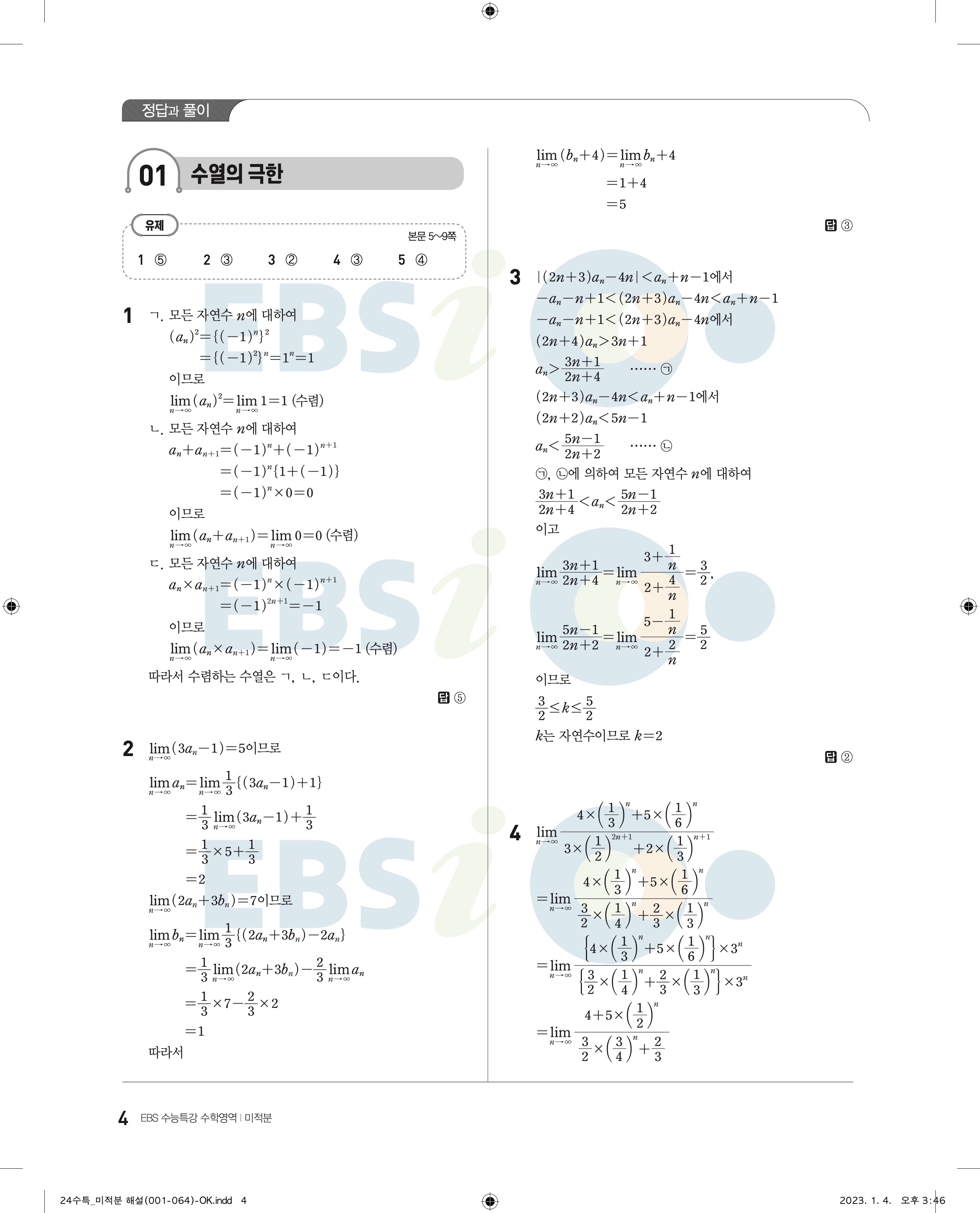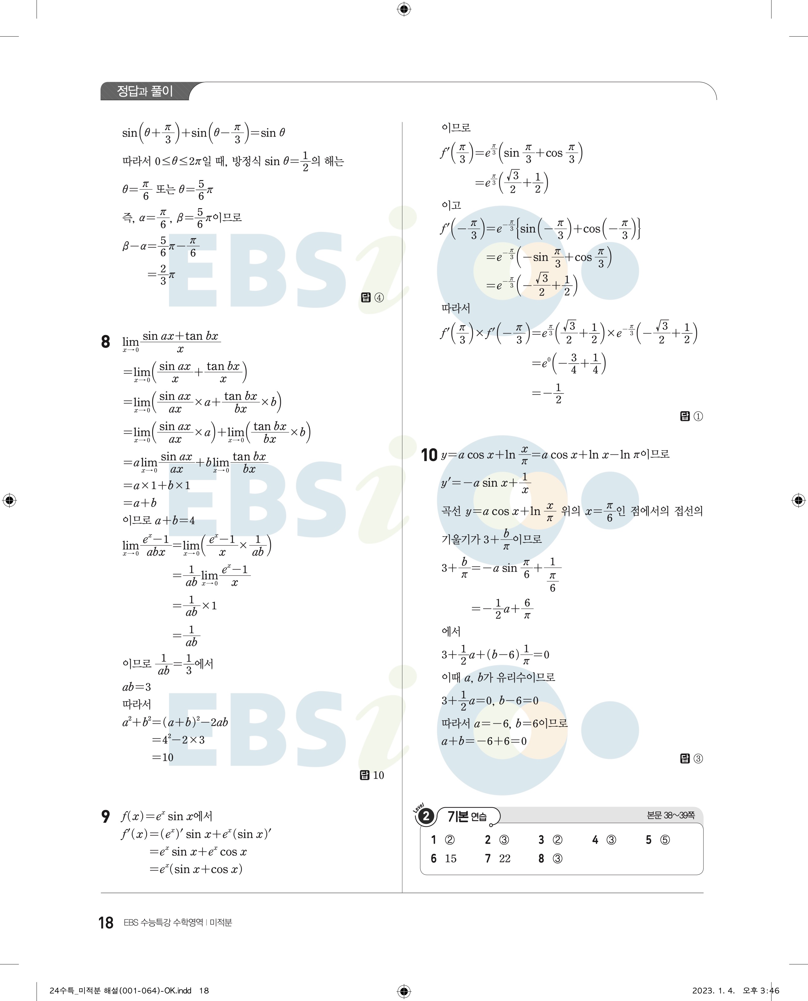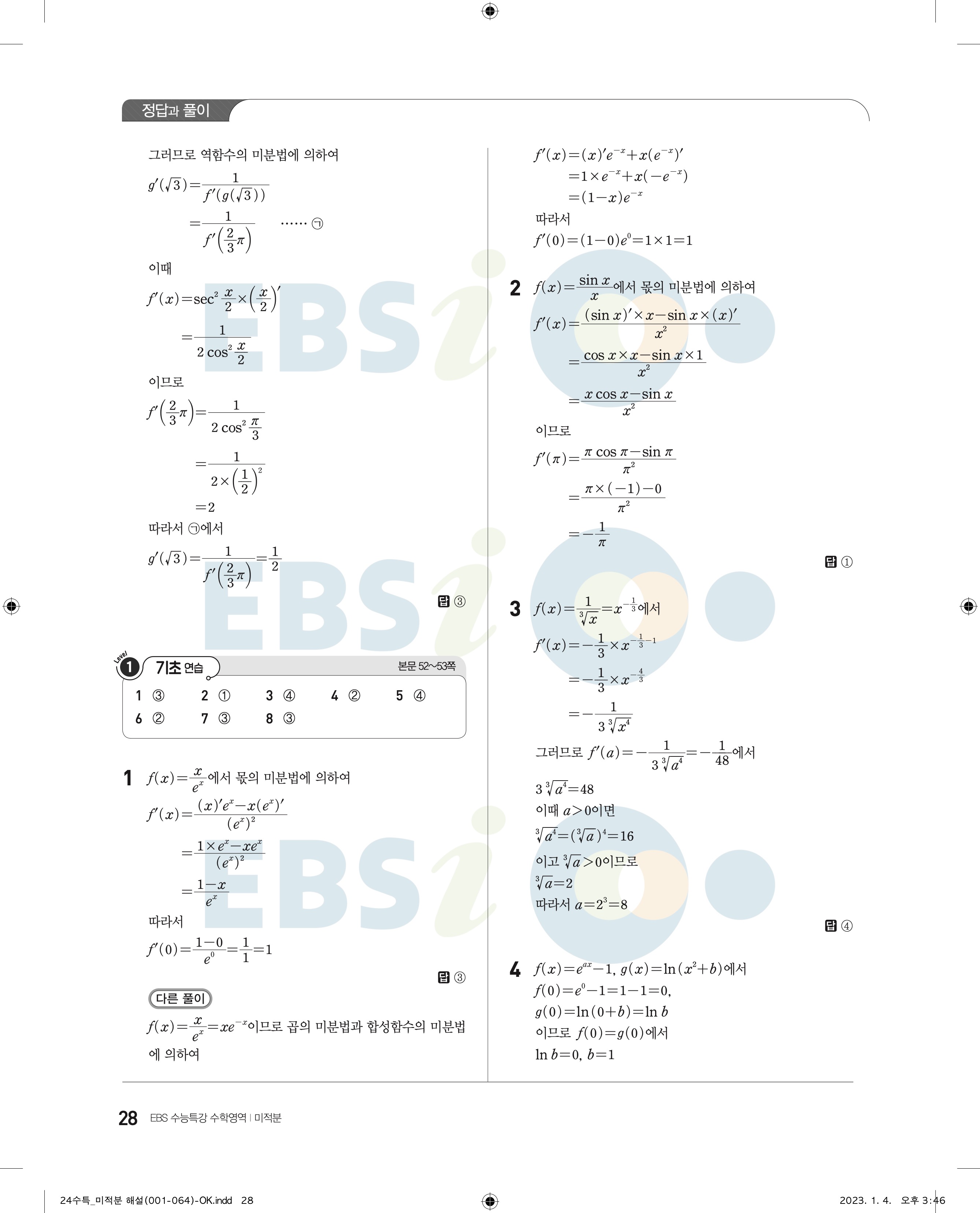 수특미적분답지해설 바로보는 사진답지 2024수능대비