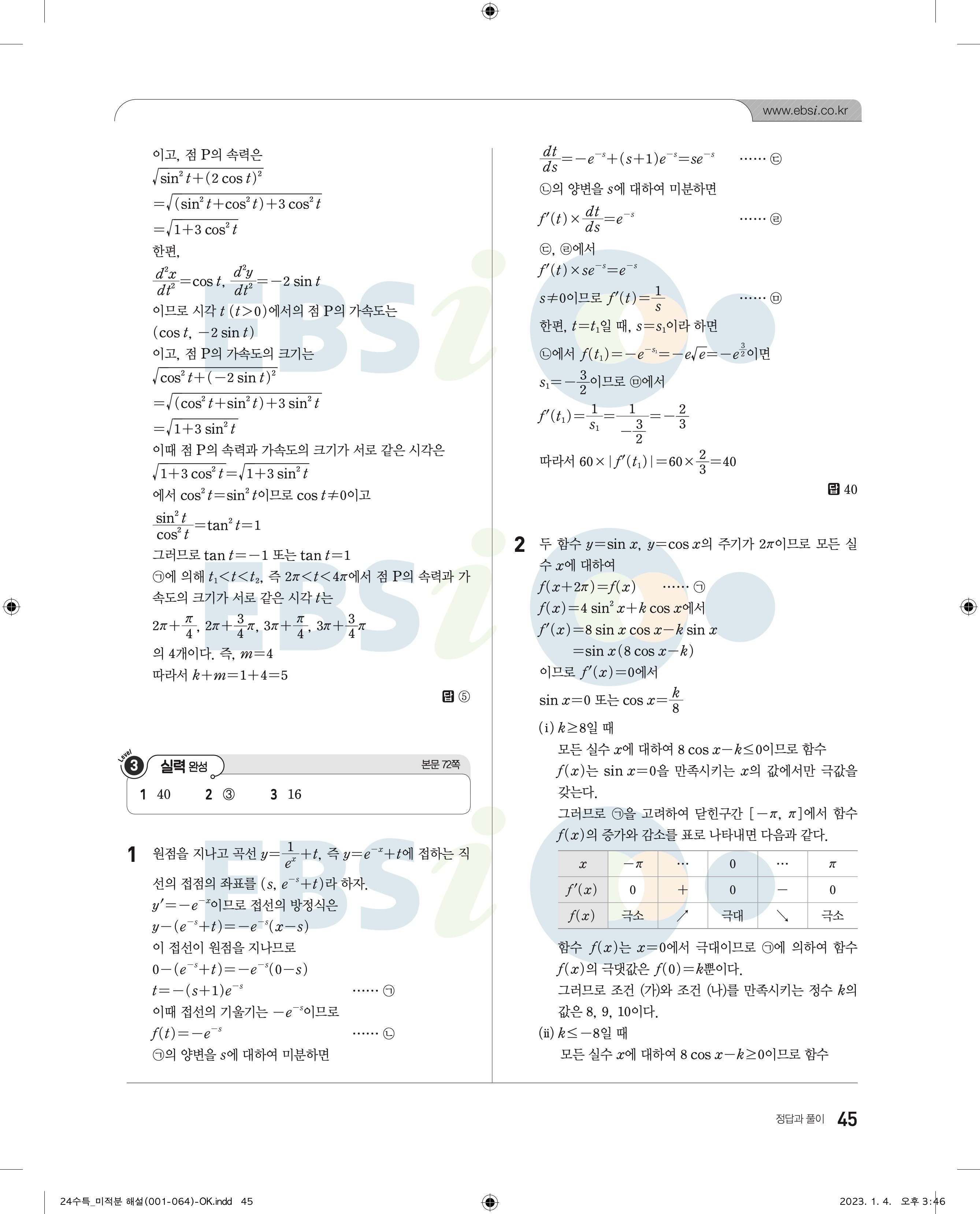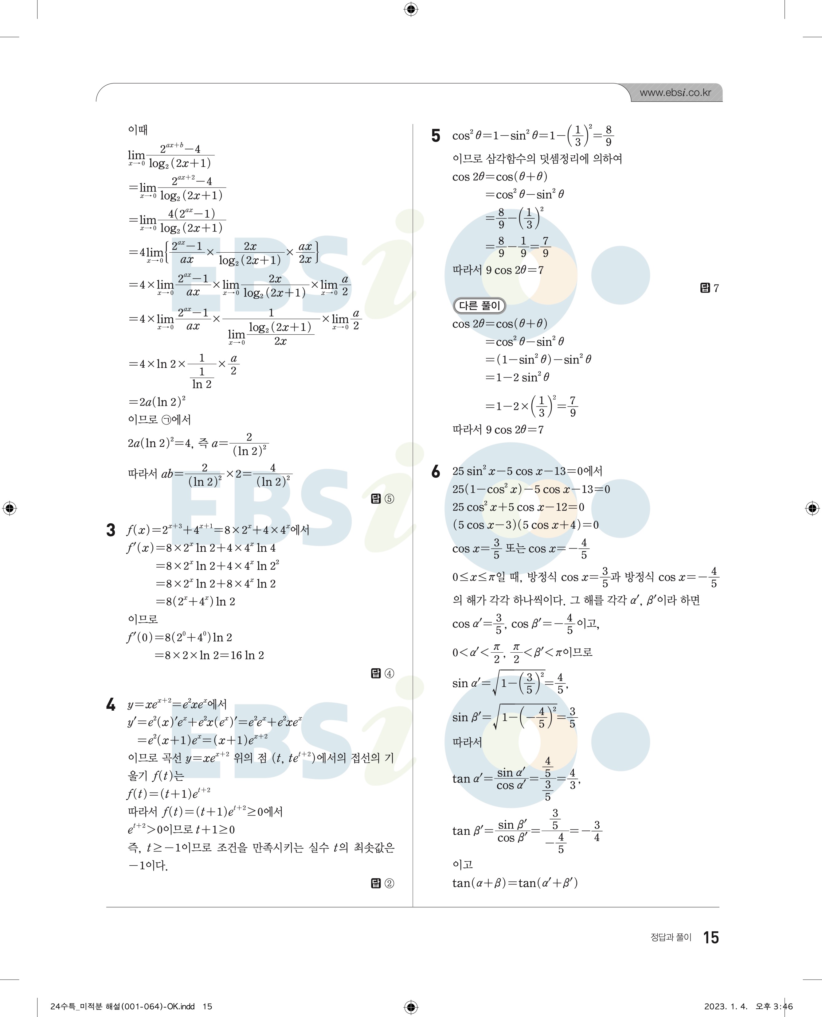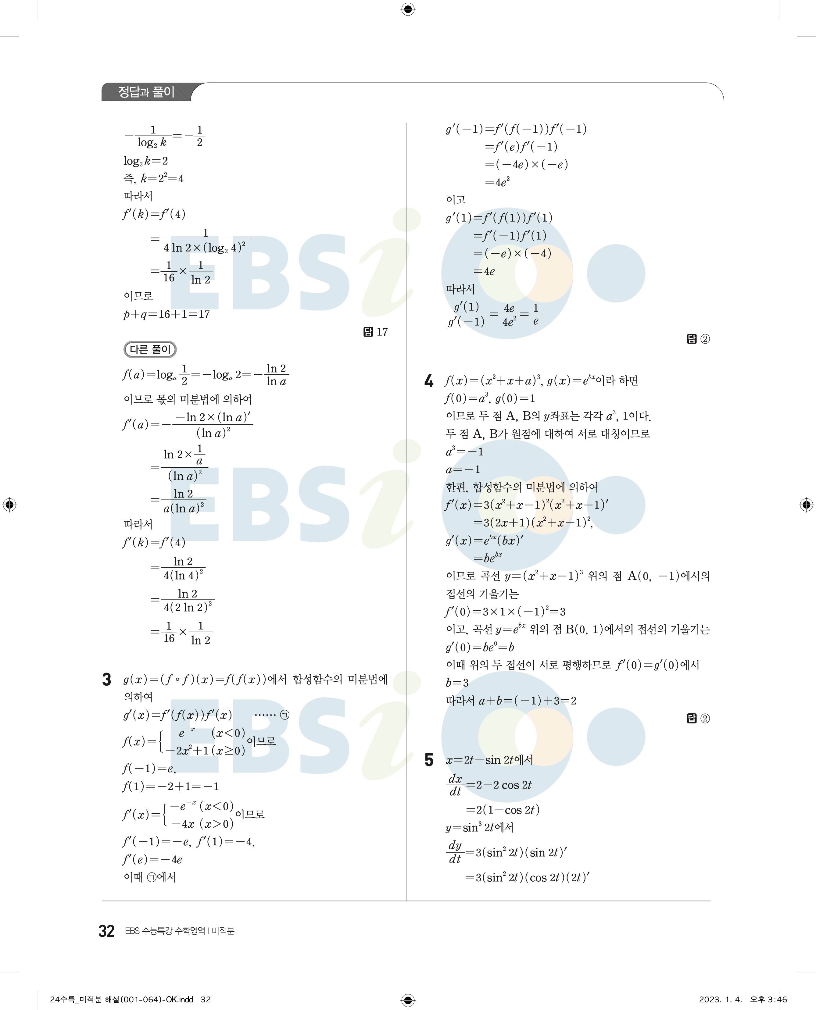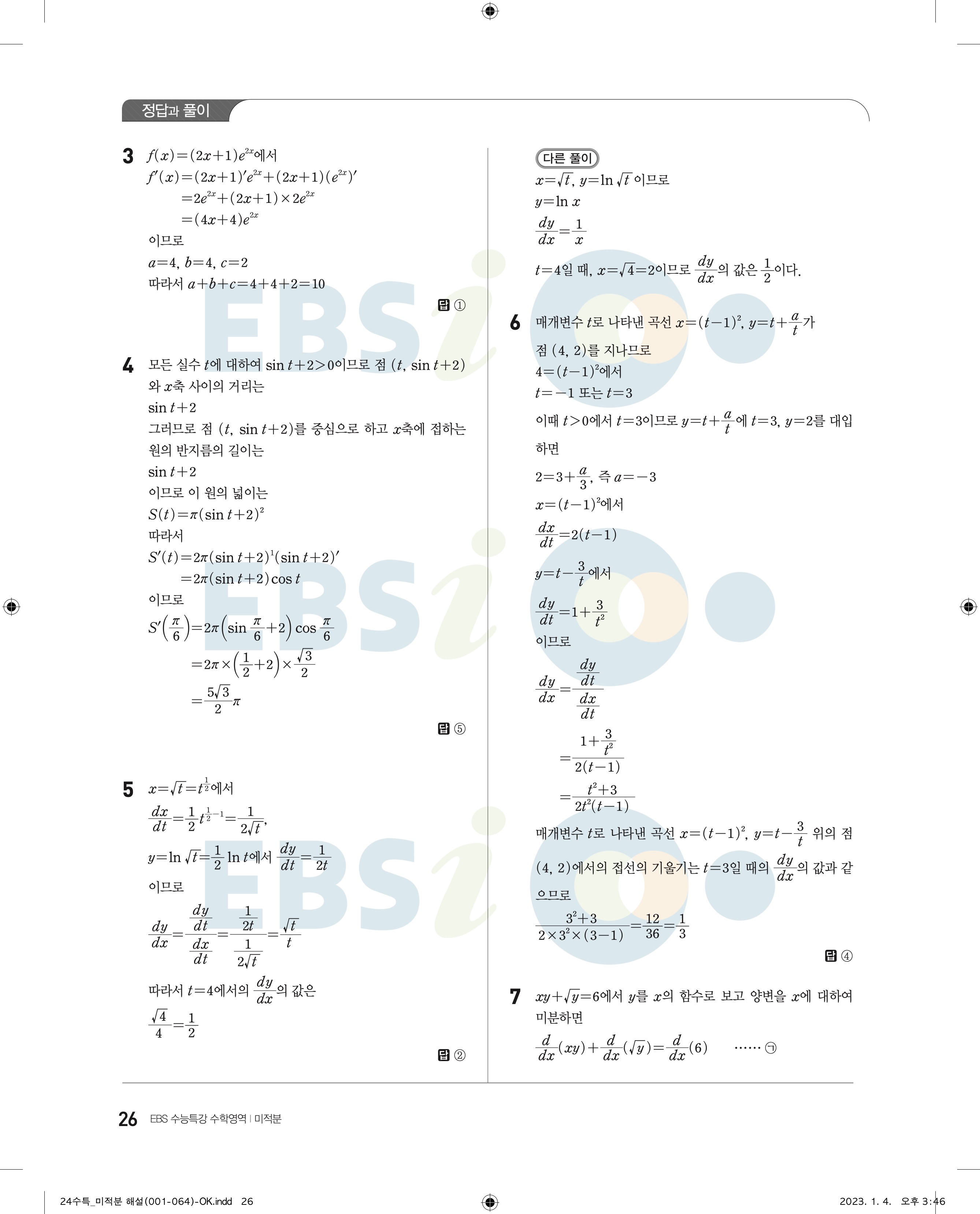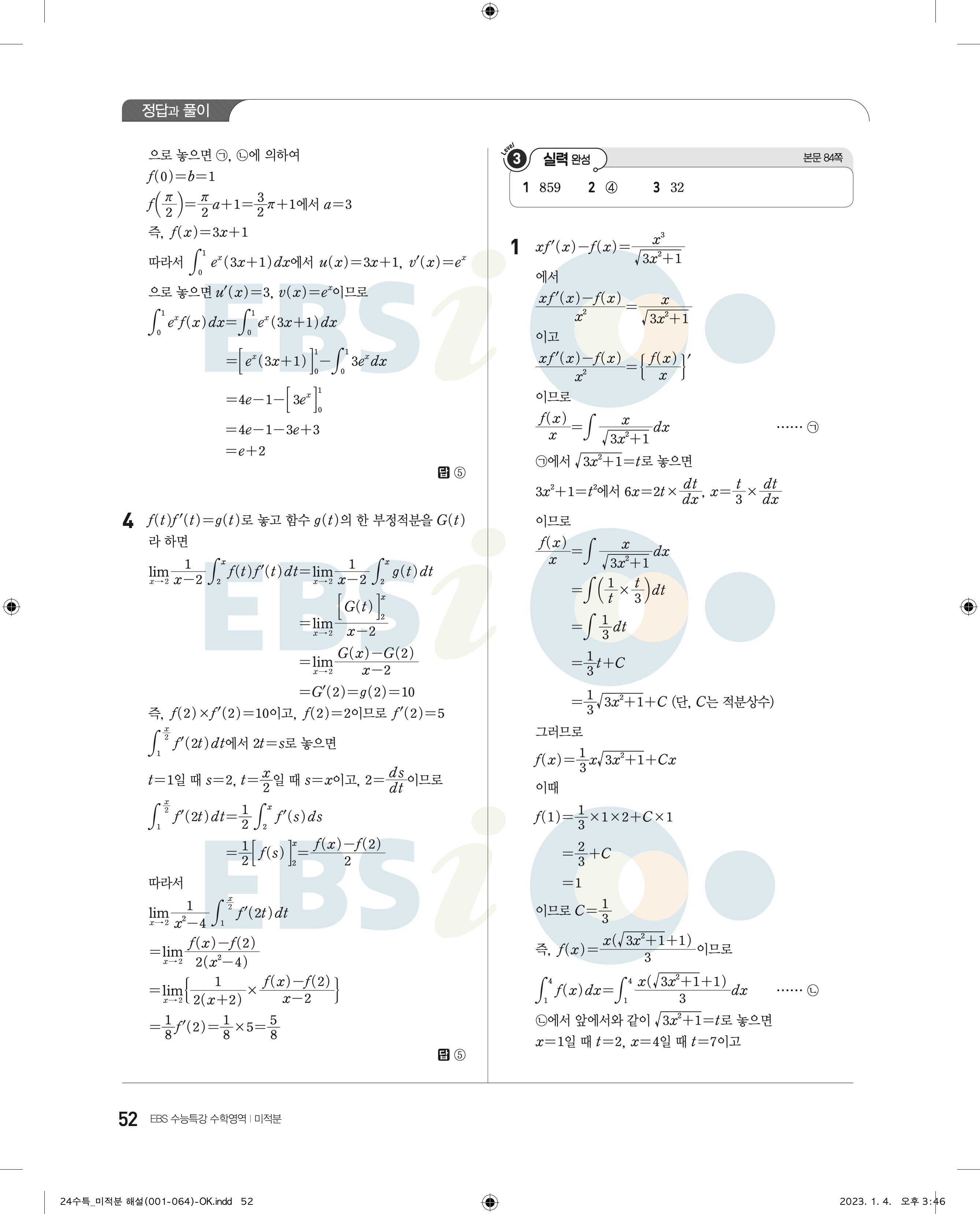 수특미적분답지해설 바로보는 사진답지 2024수능대비