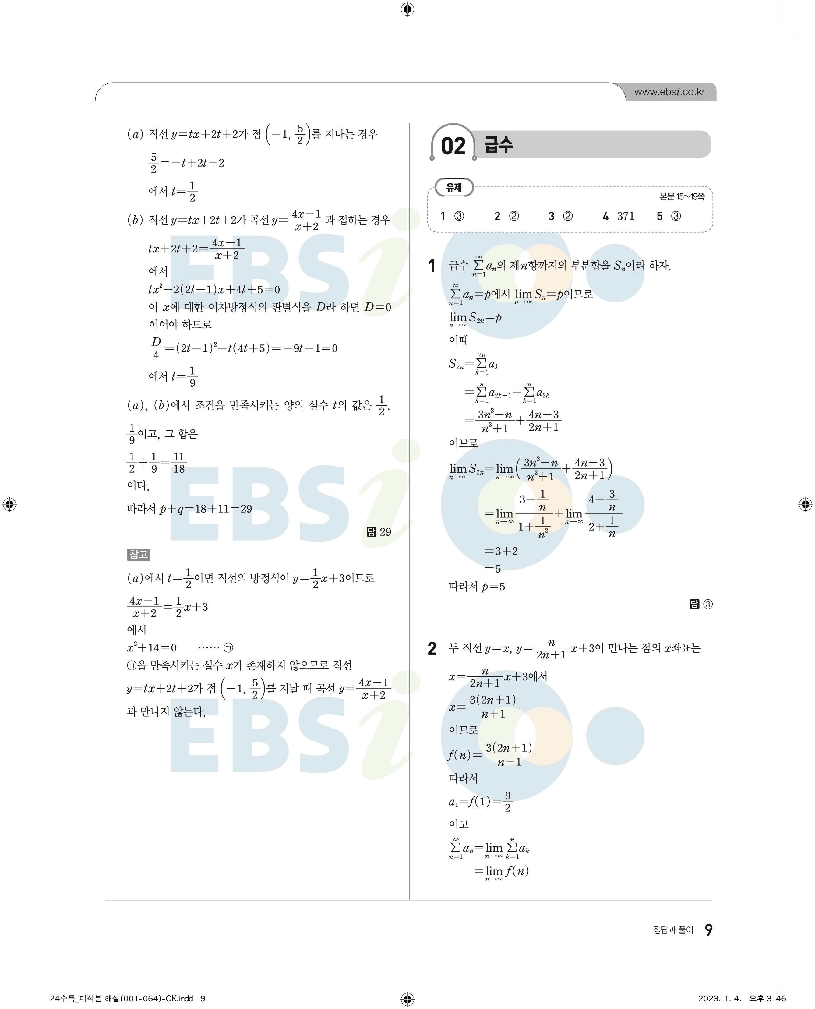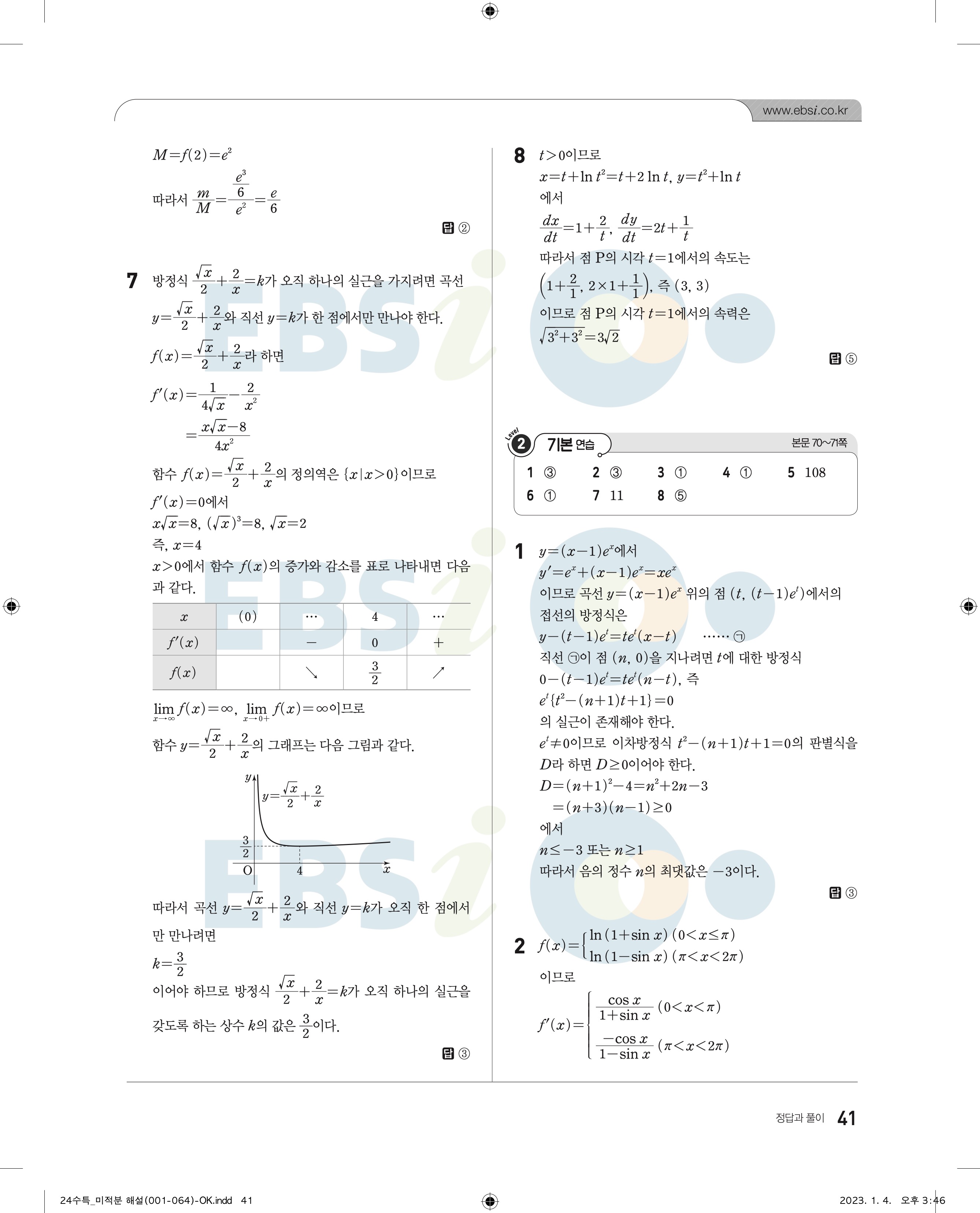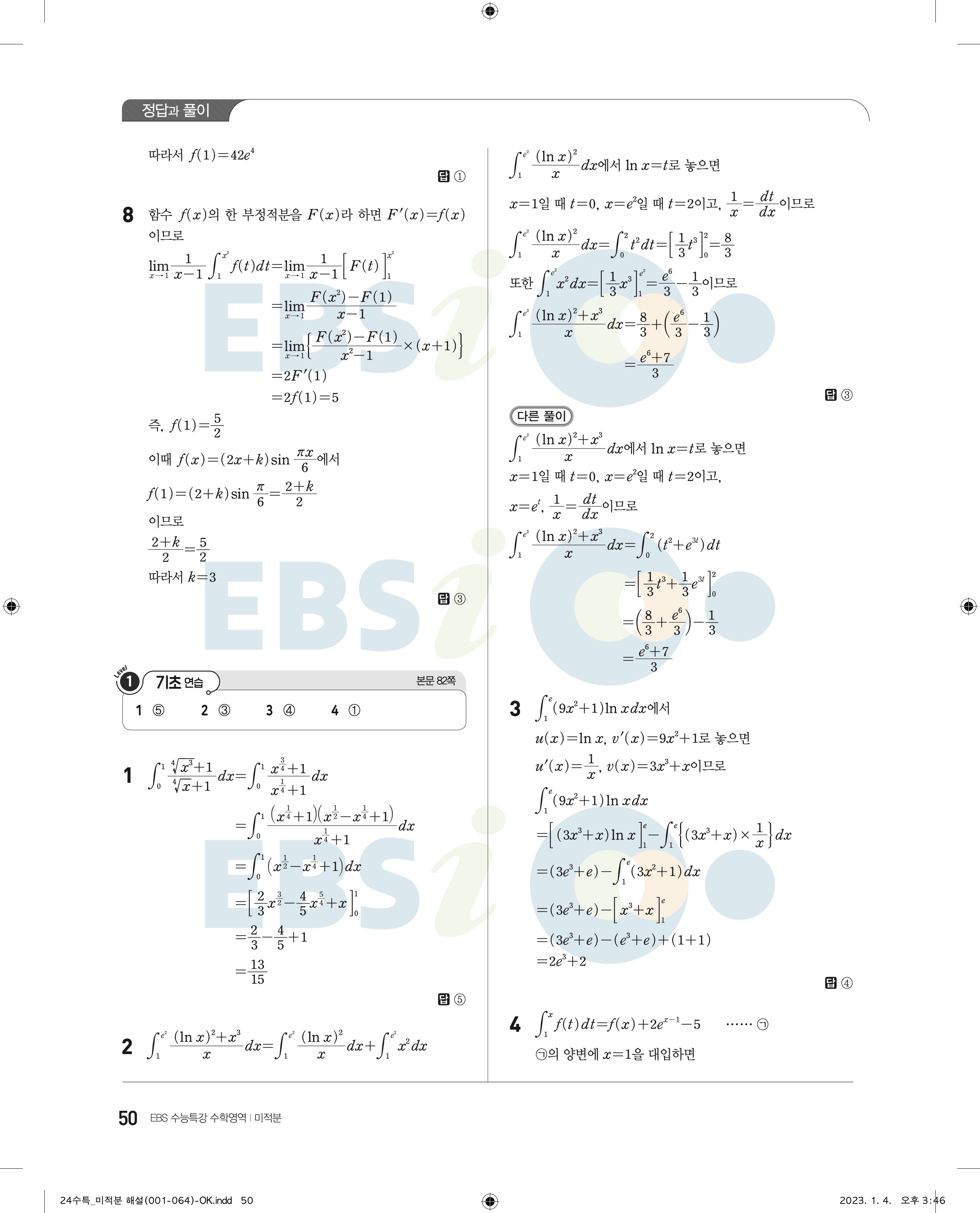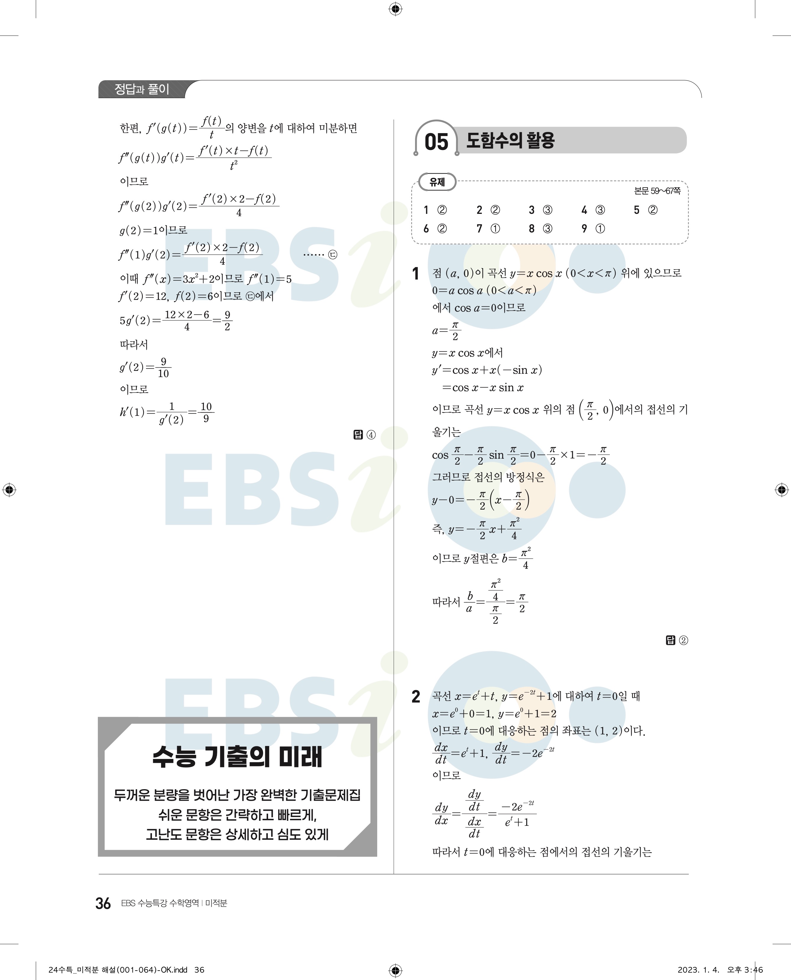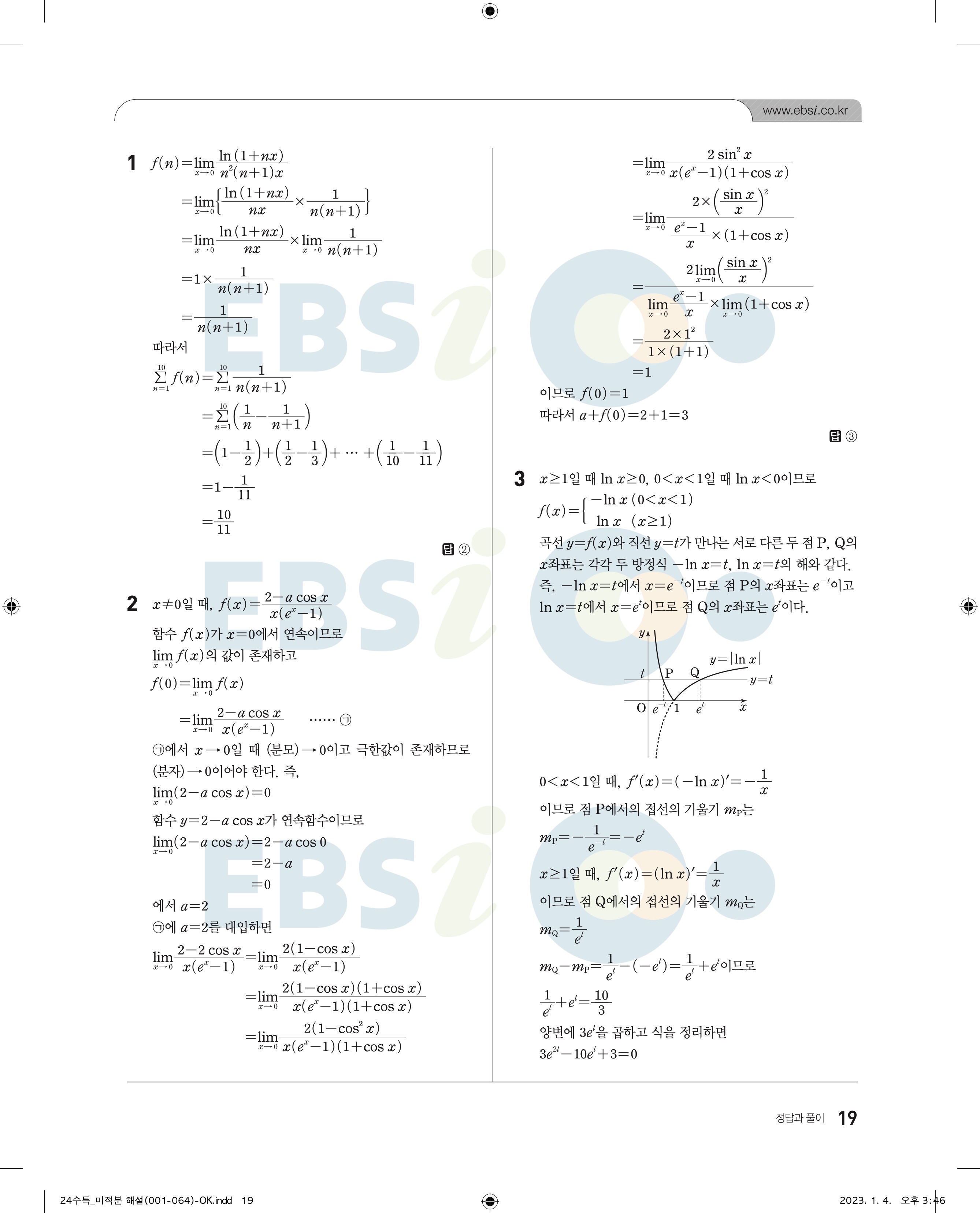수특미적분답지해설 바로보는 사진답지 2024수능대비
