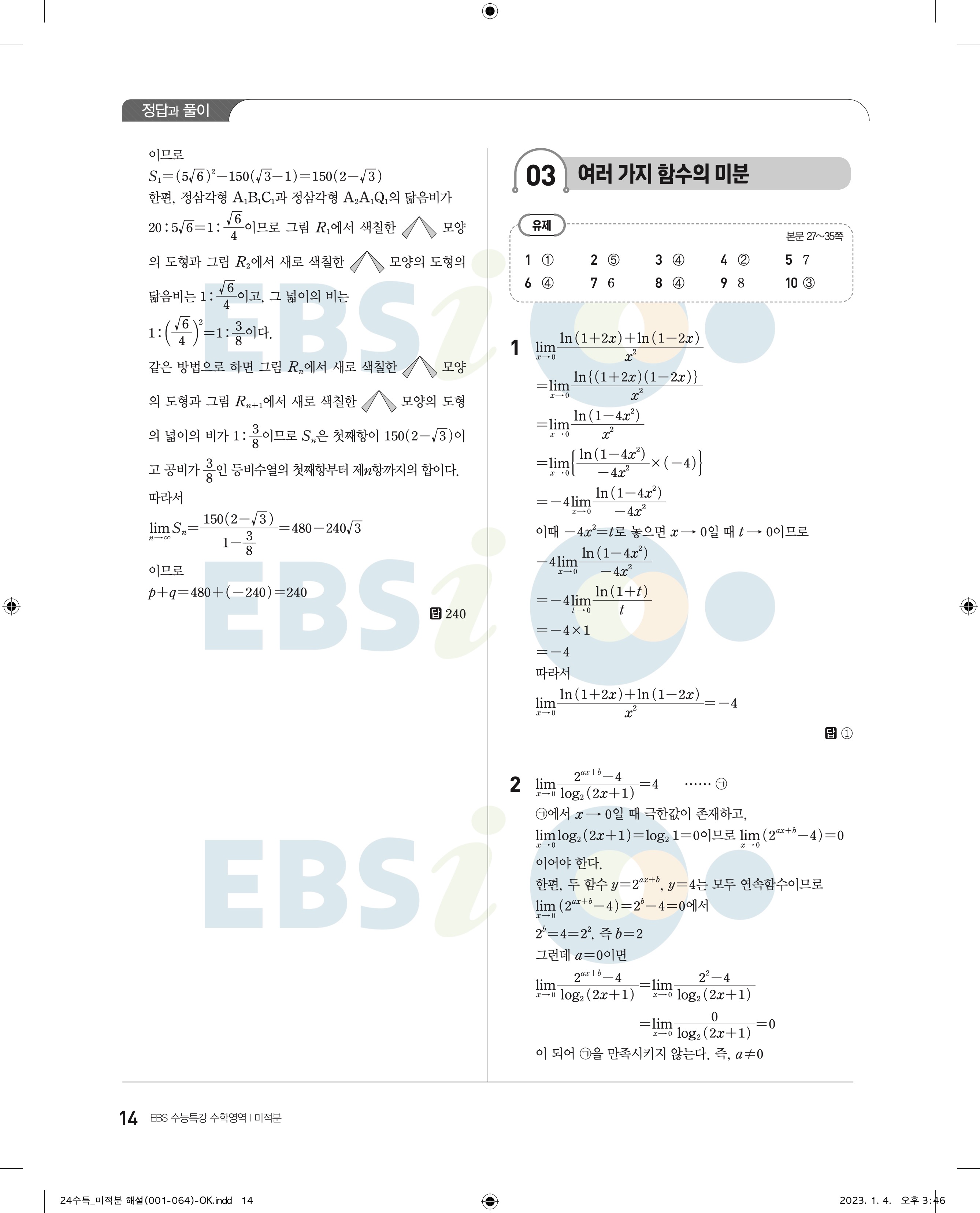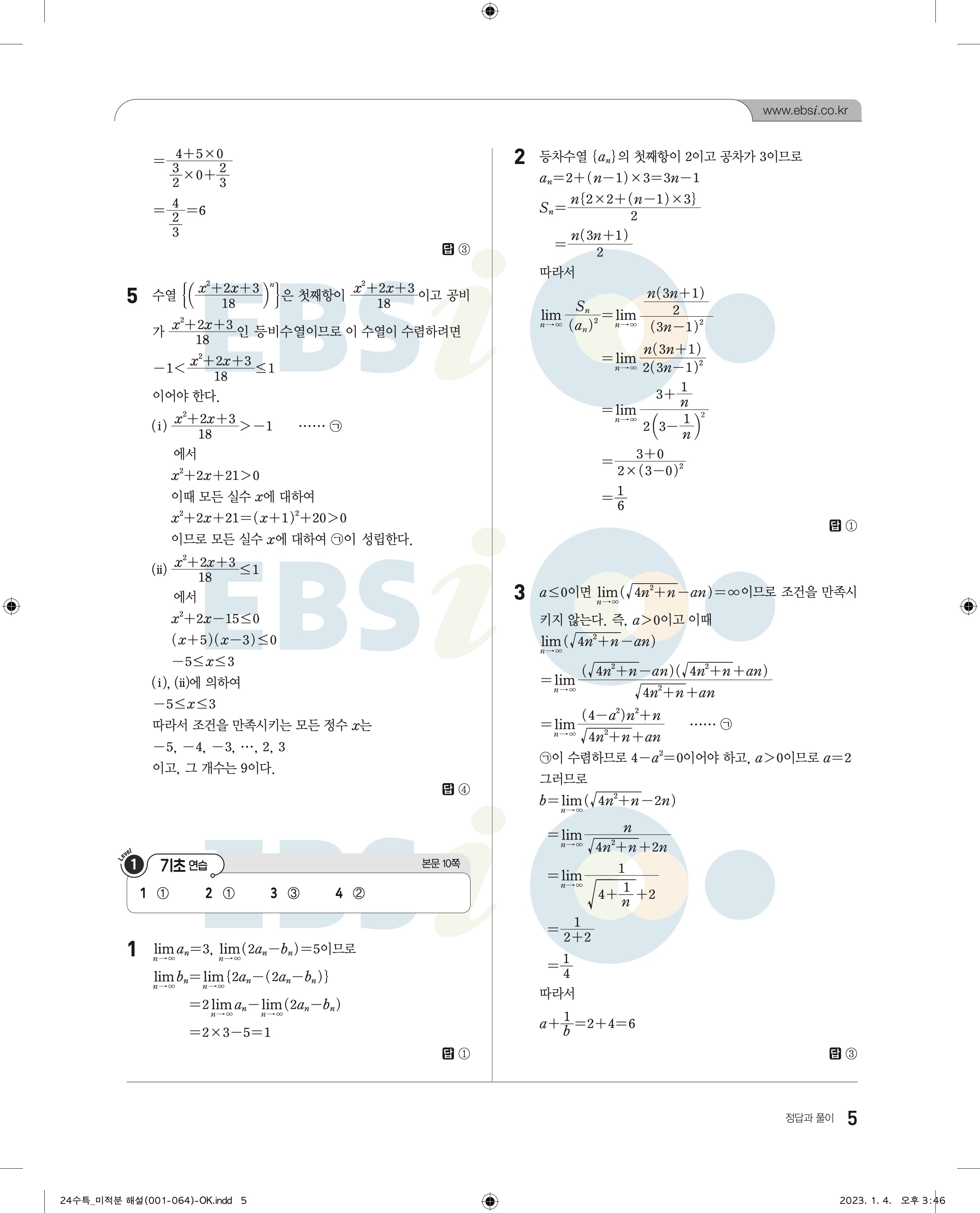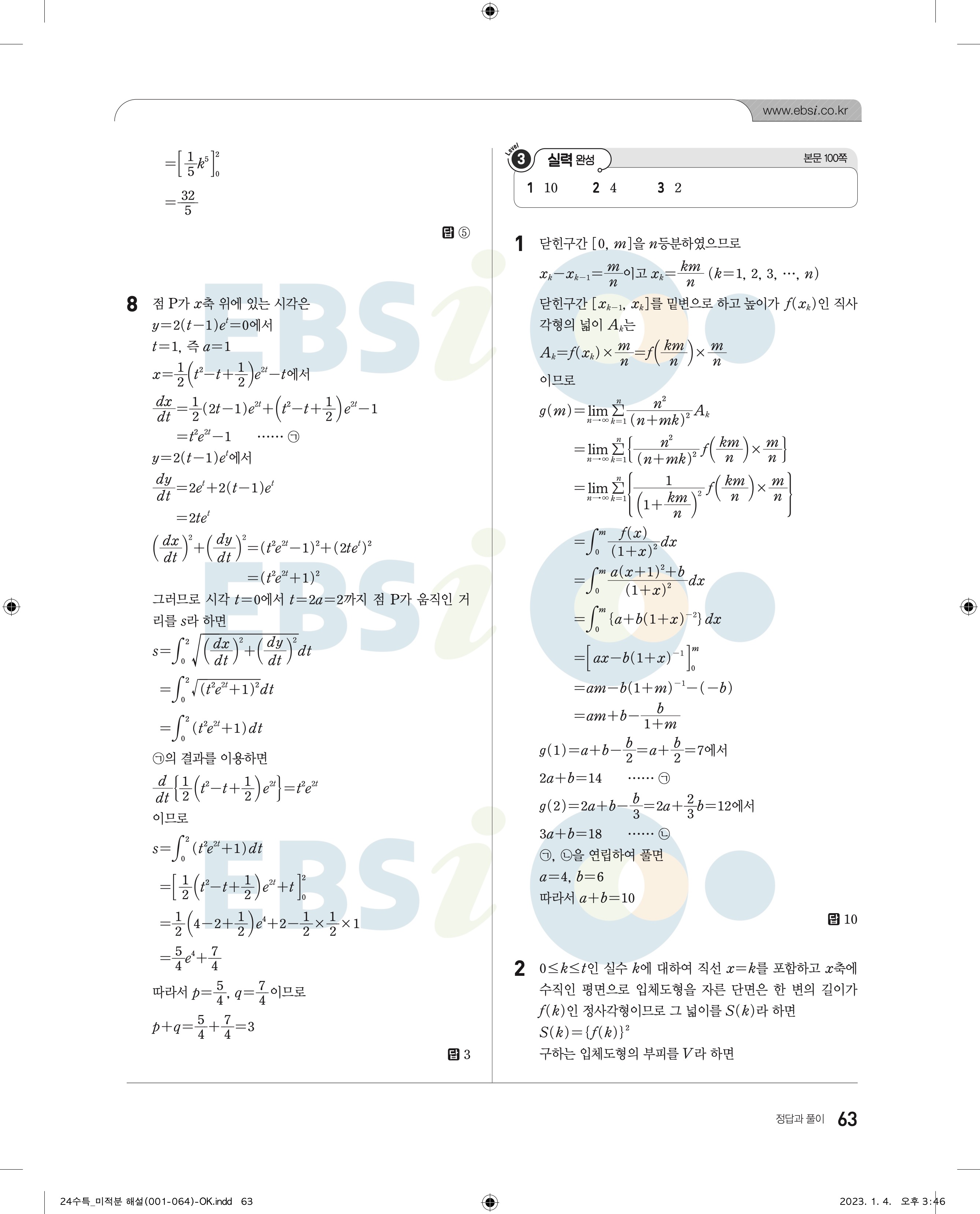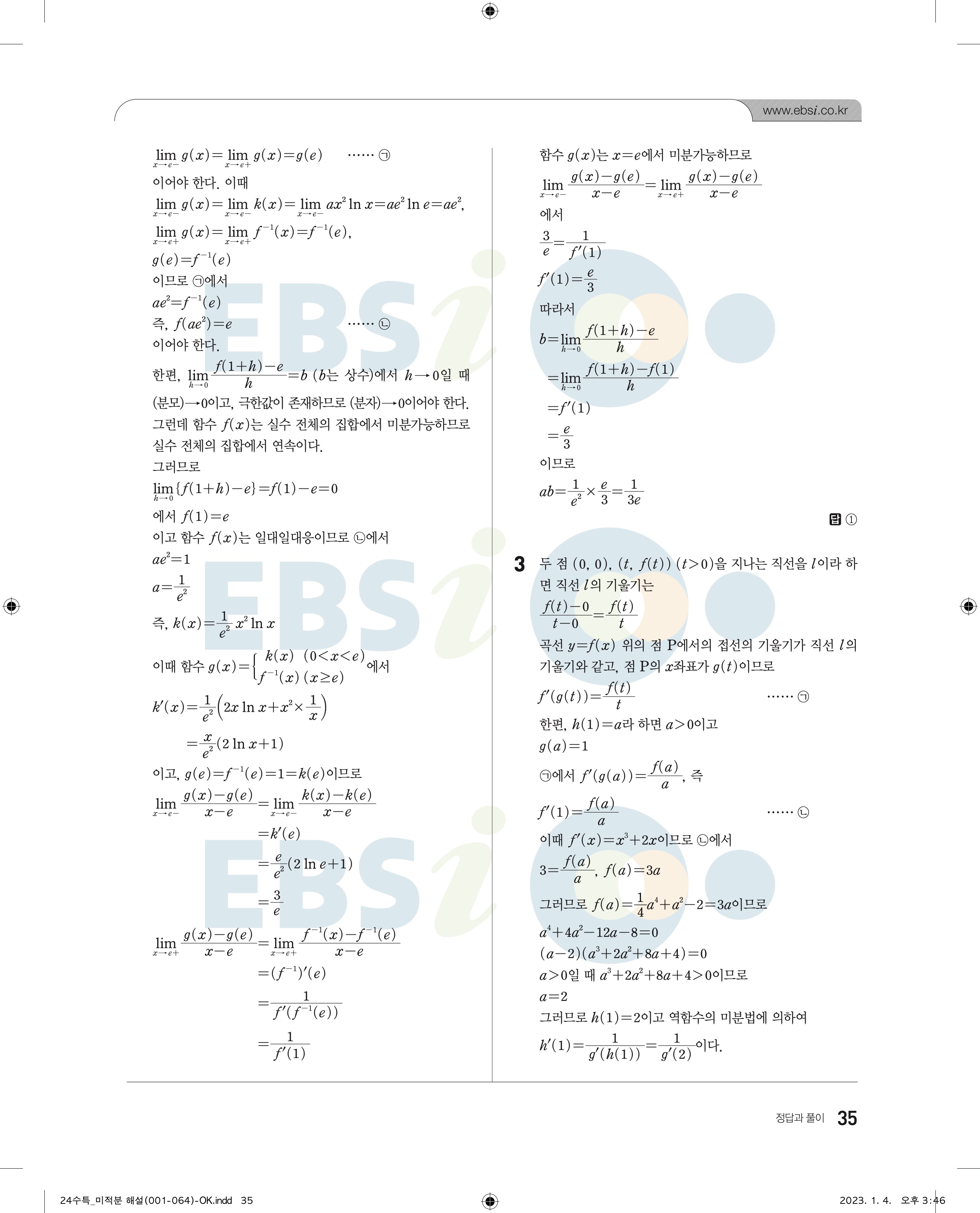 수특미적분답지해설 바로보는 사진답지 2024수능대비