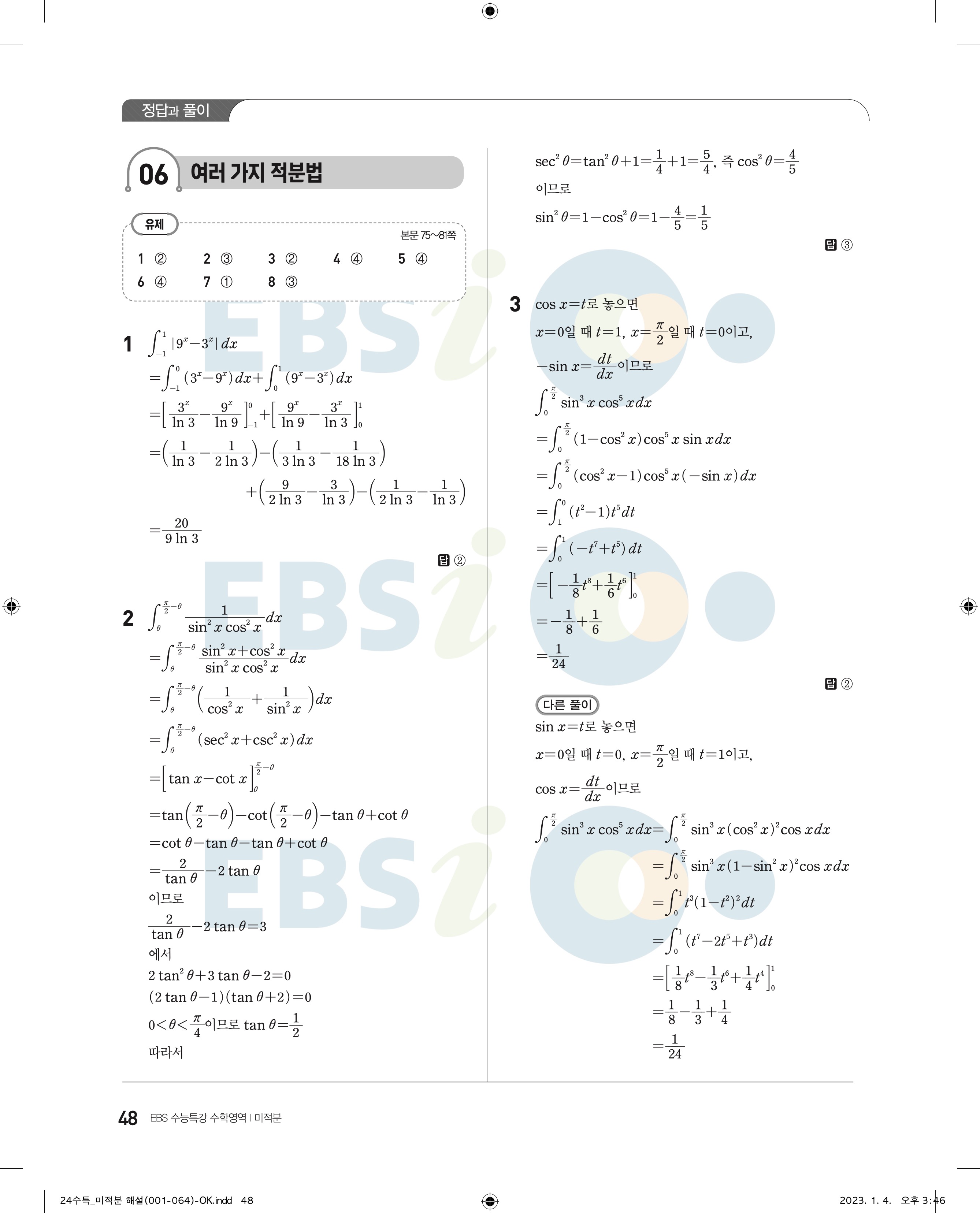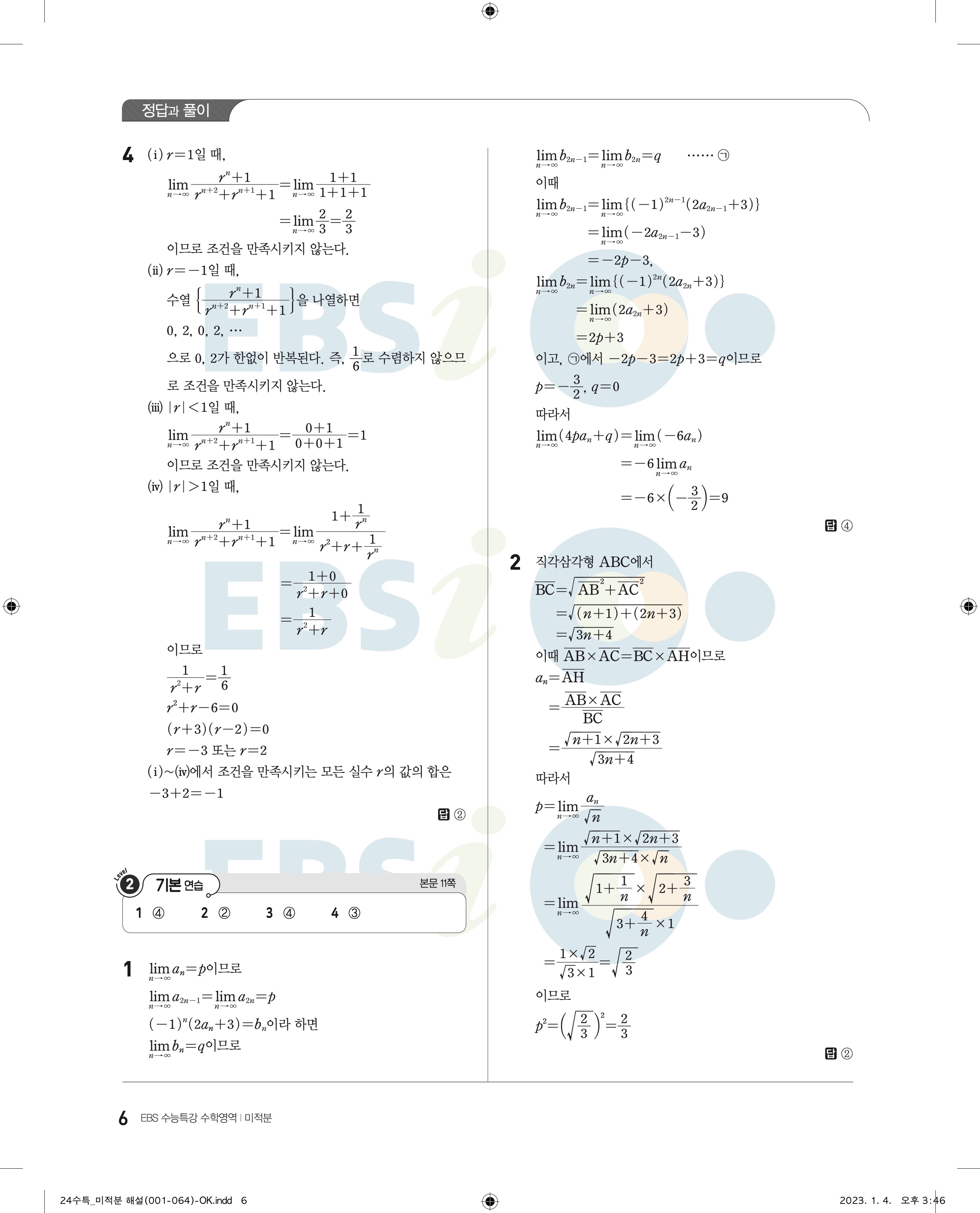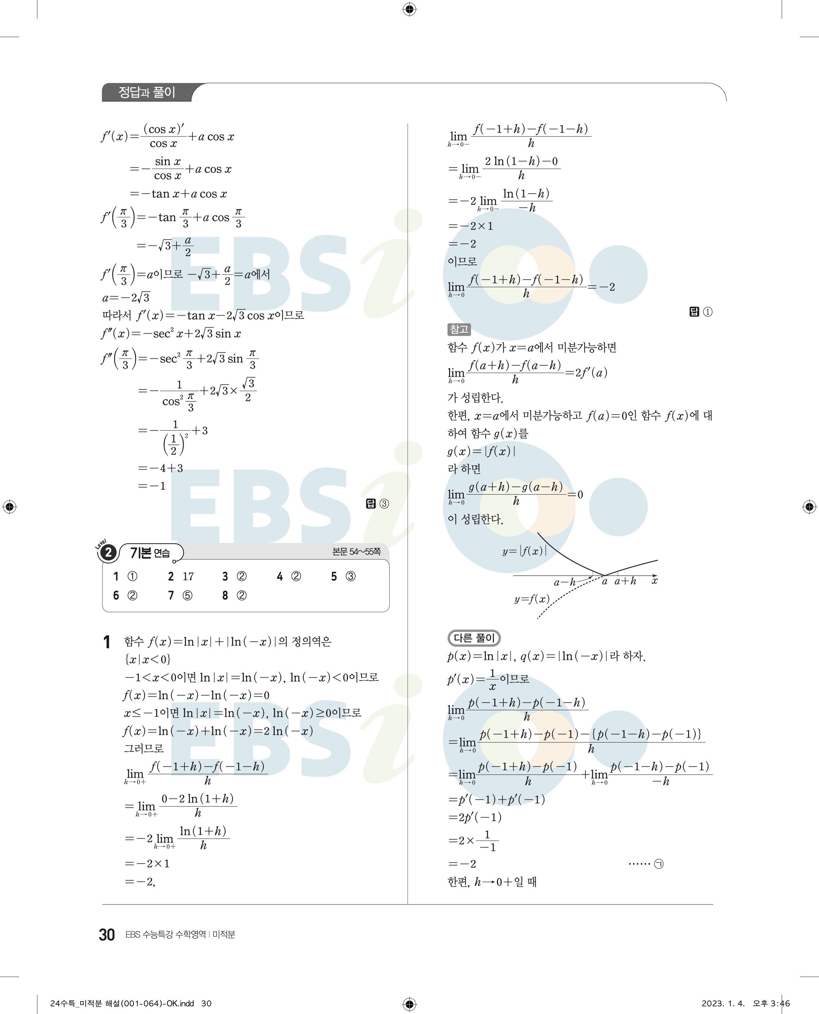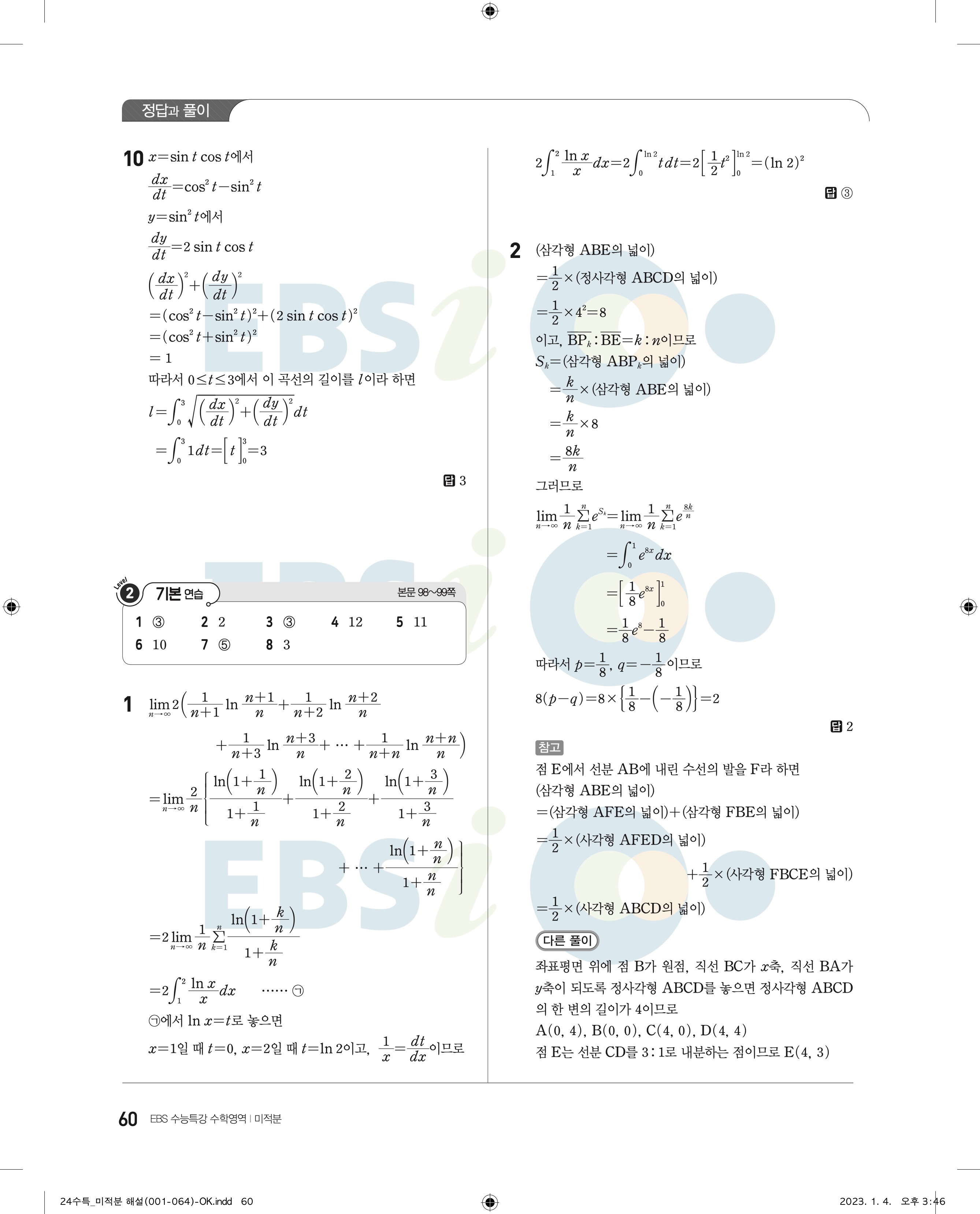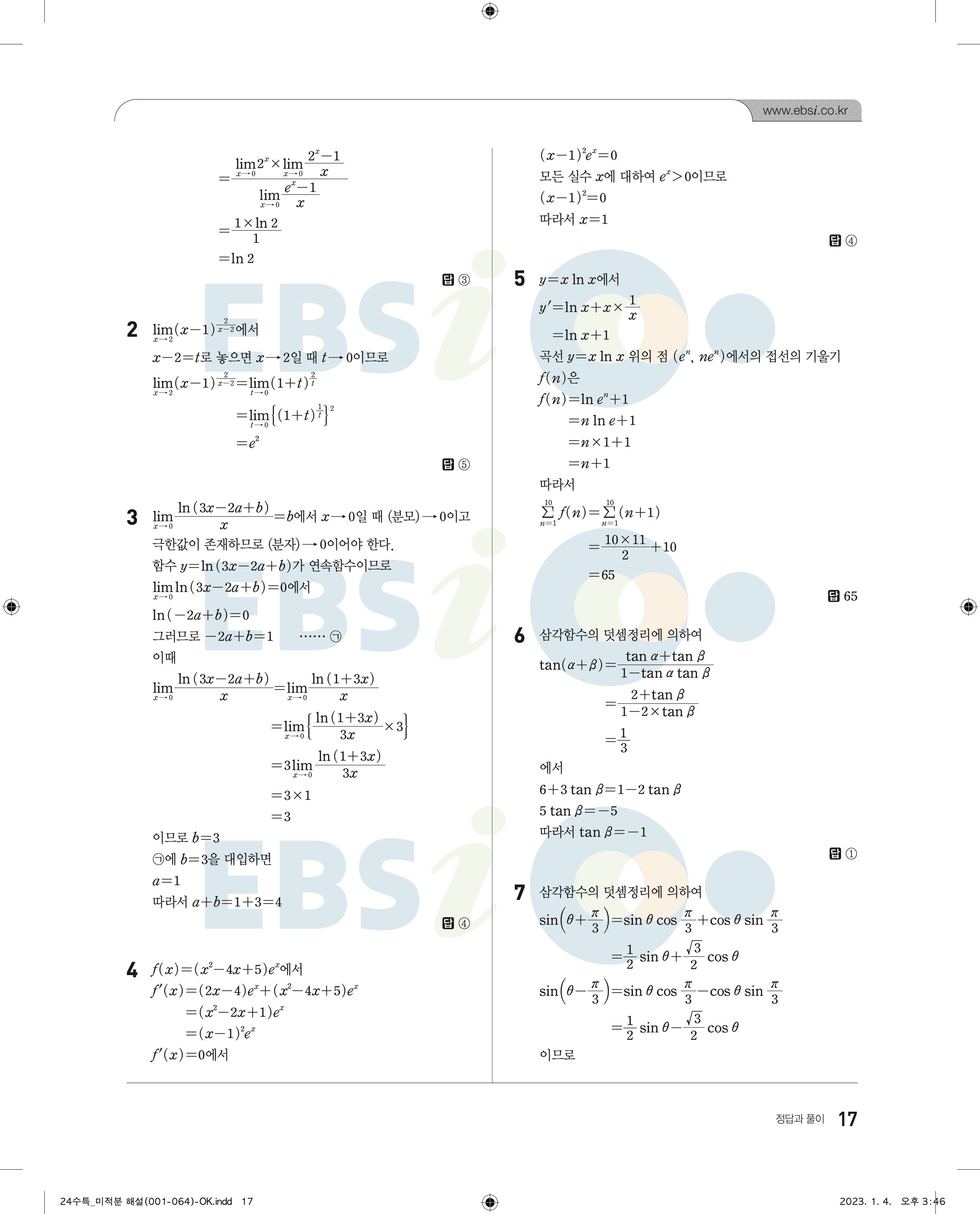 수특미적분답지해설 바로보는 사진답지 2024수능대비