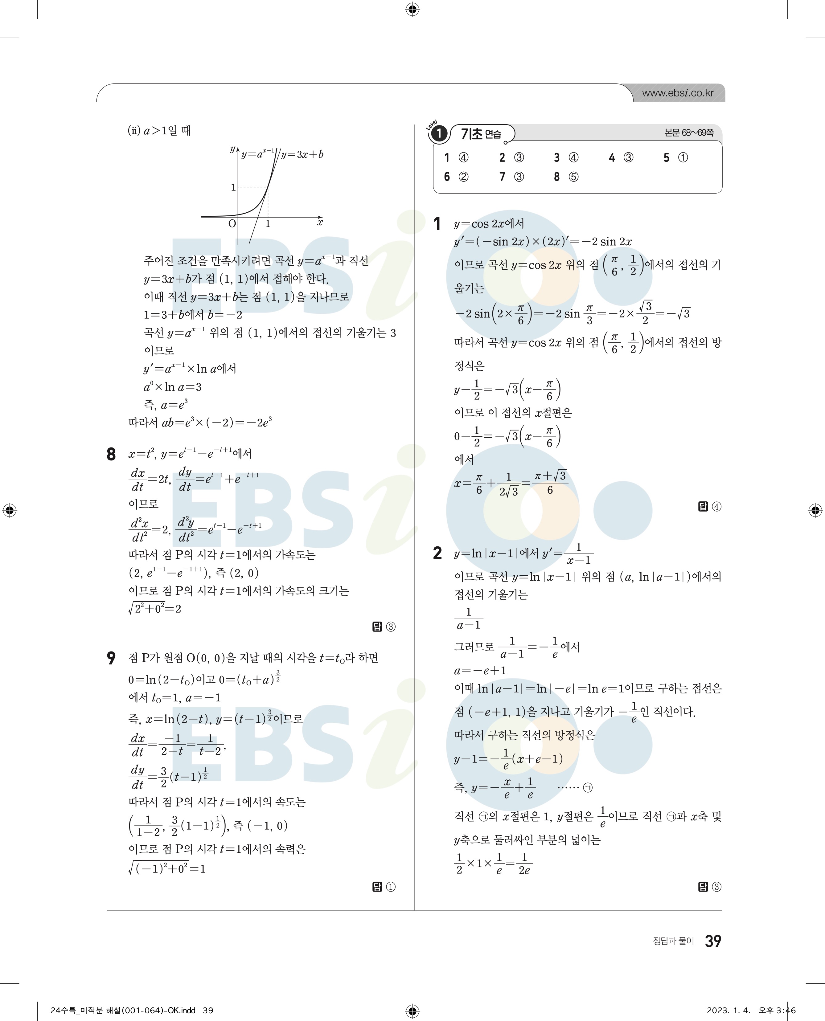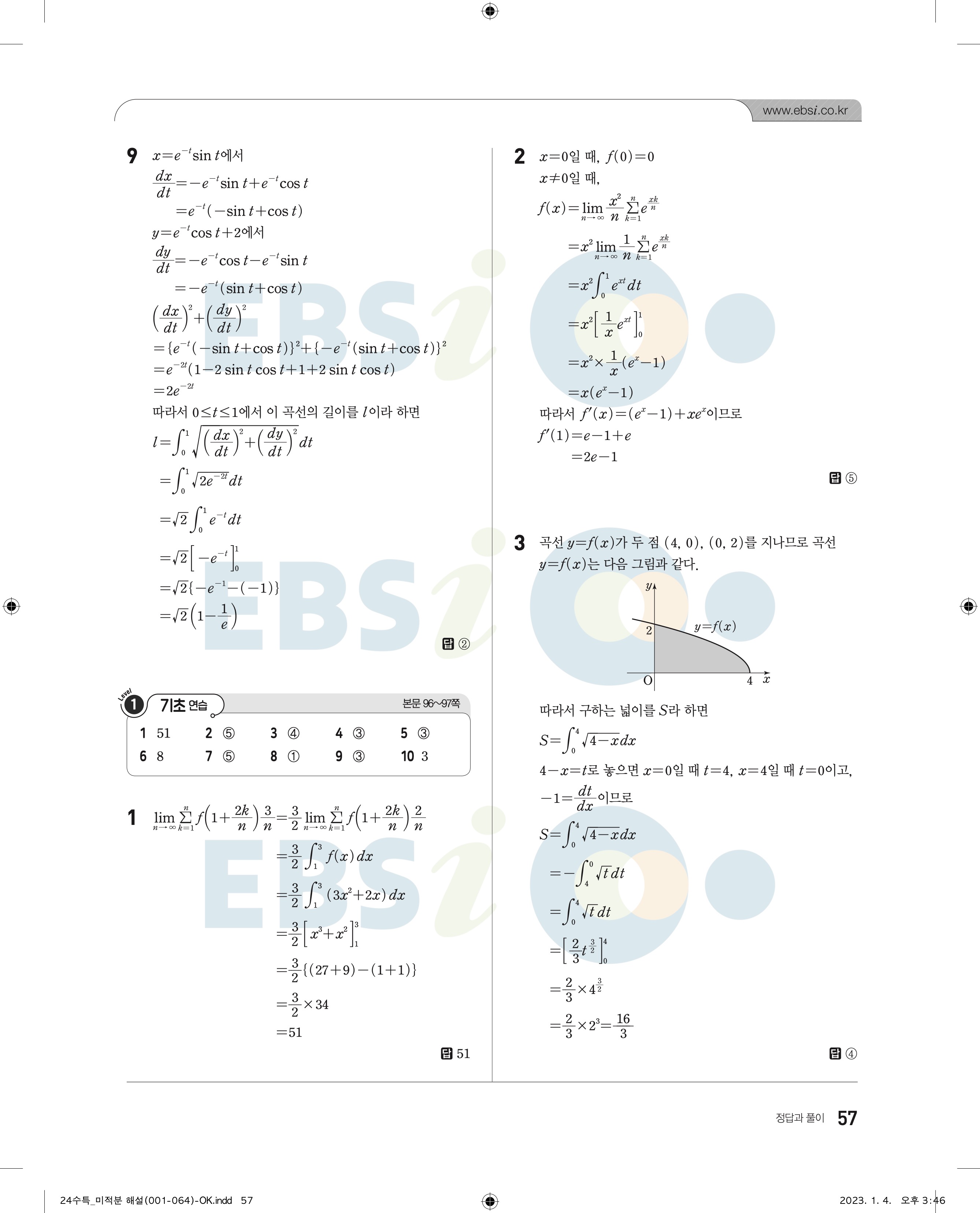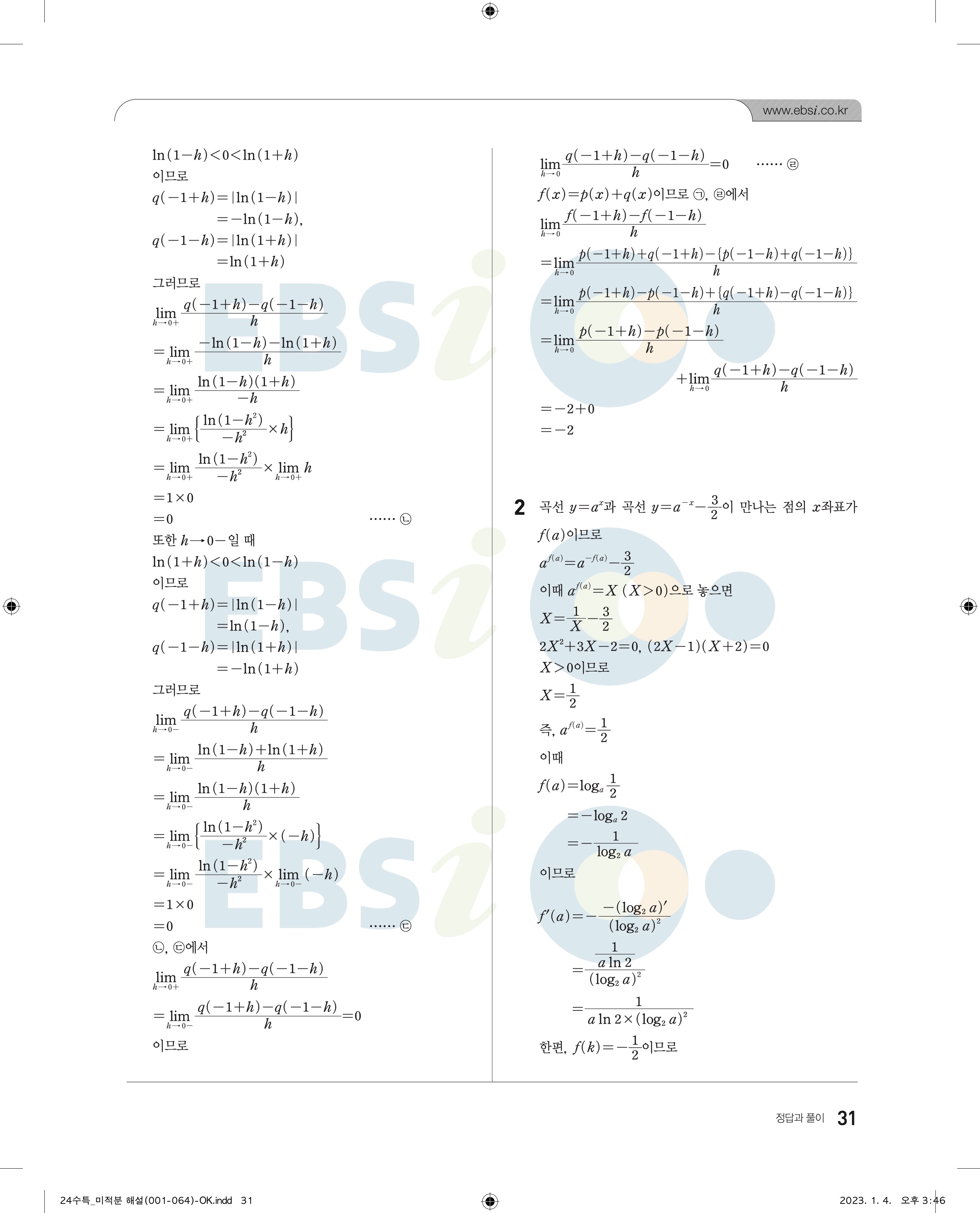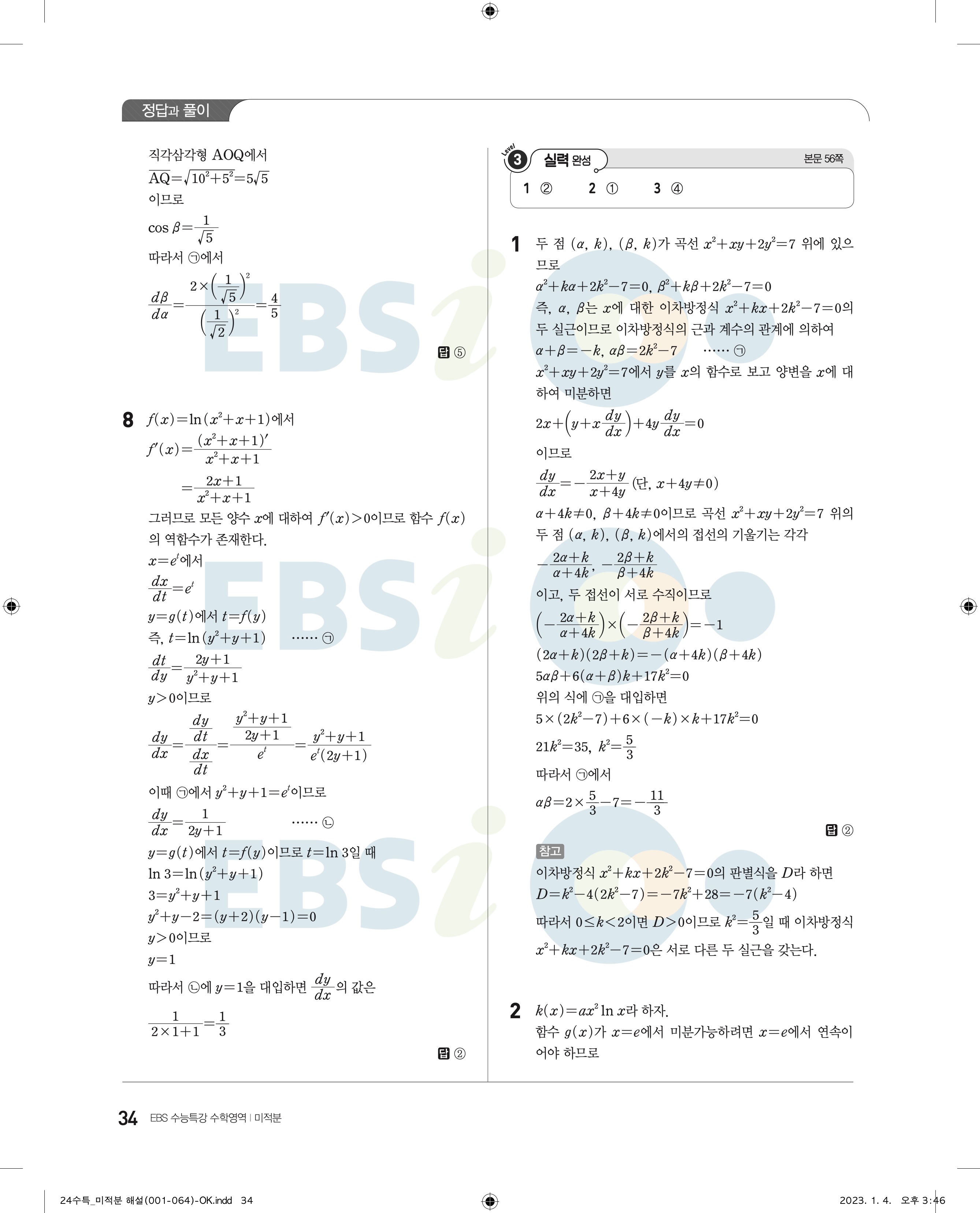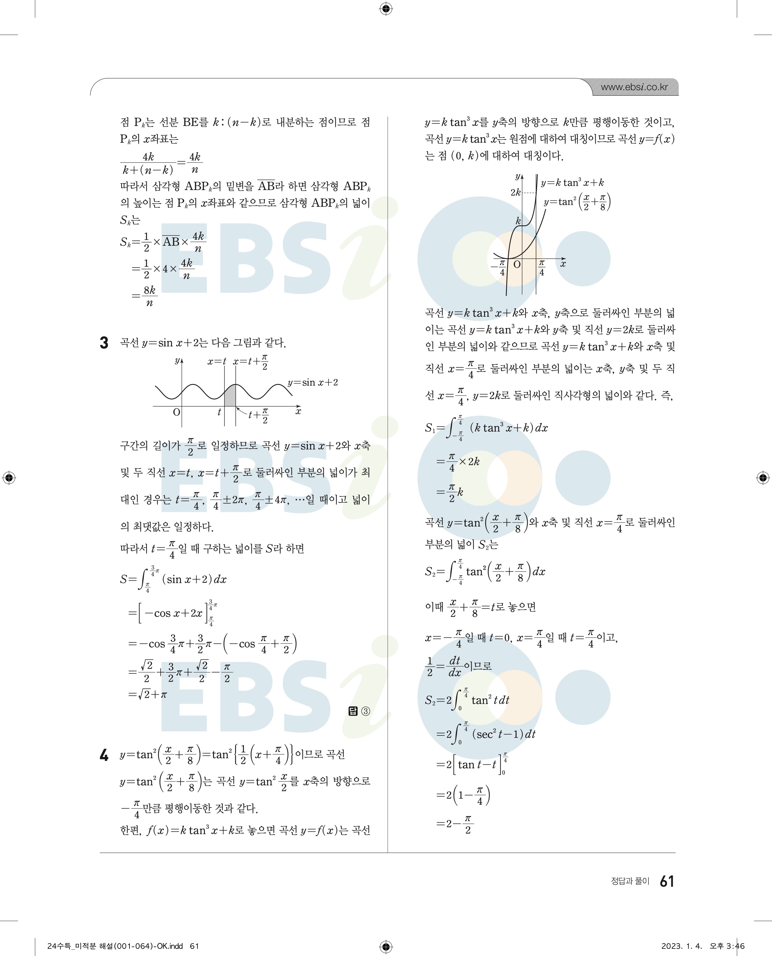수특미적분답지해설 바로보는 사진답지 2024수능대비