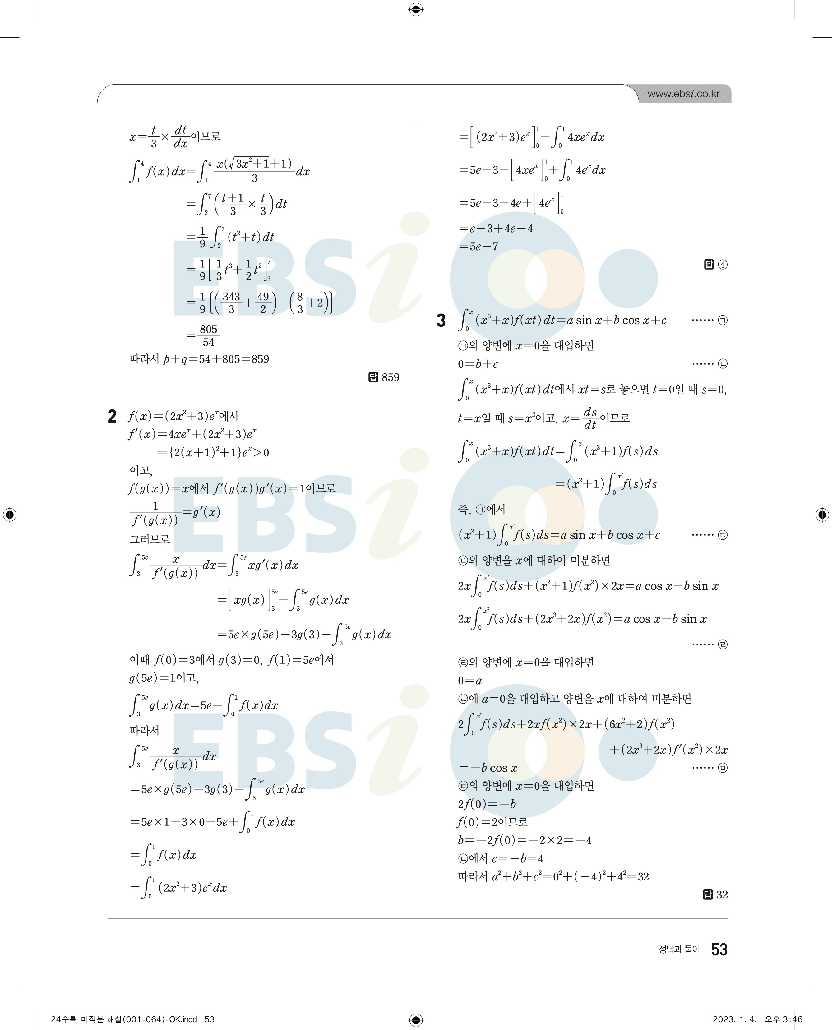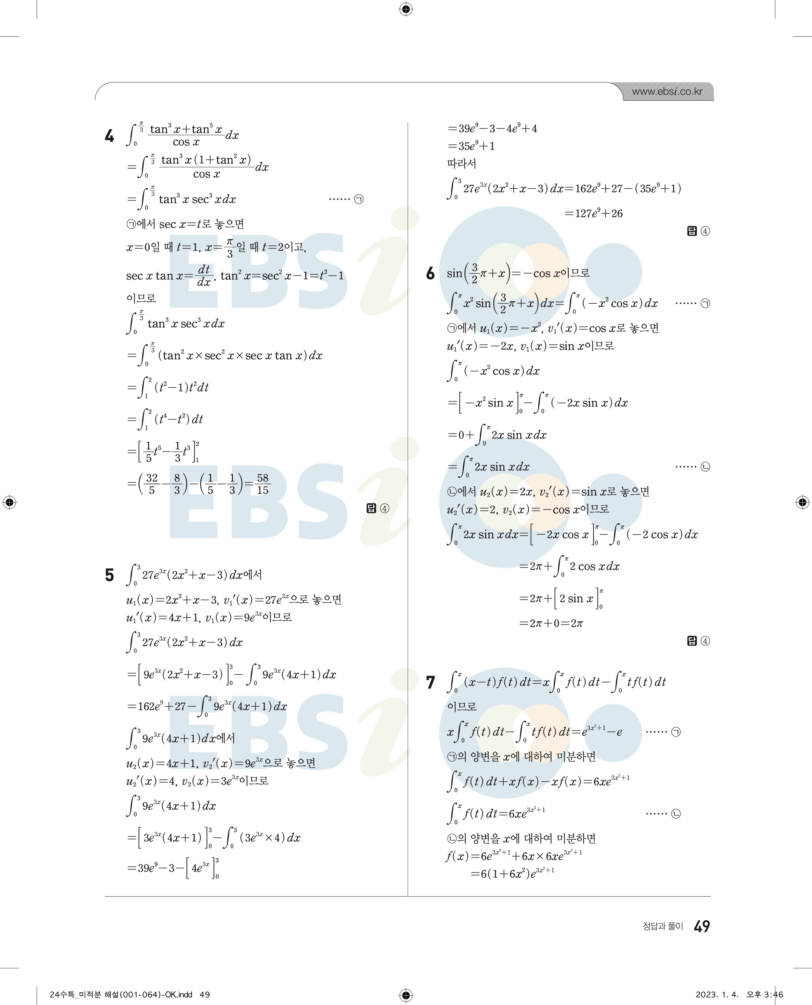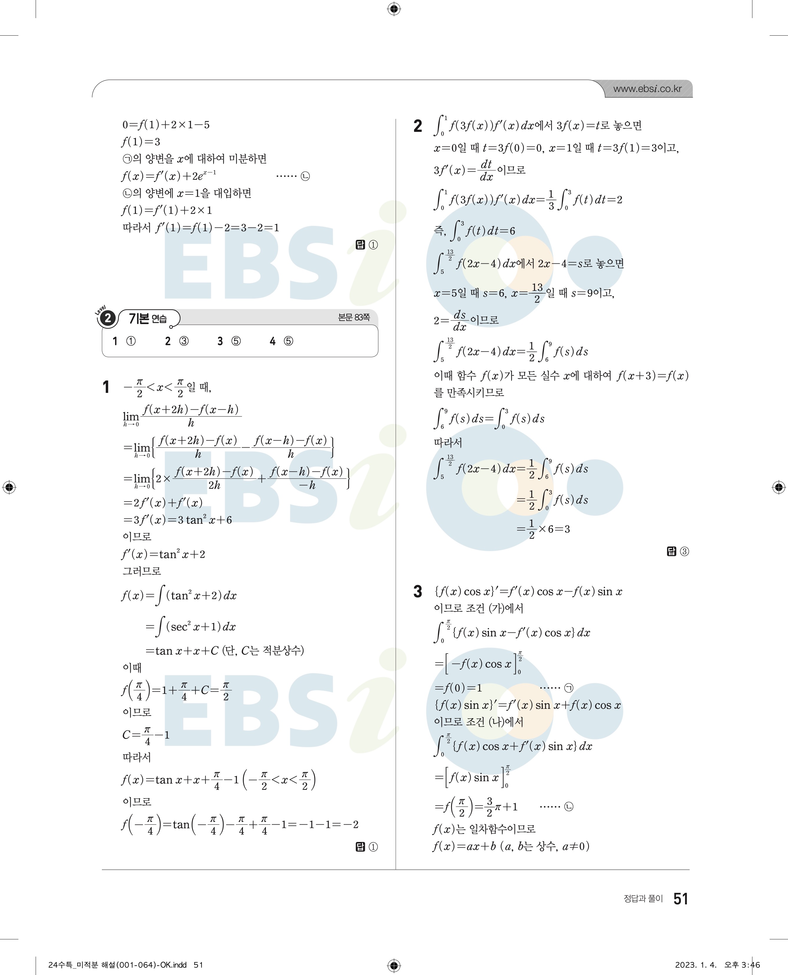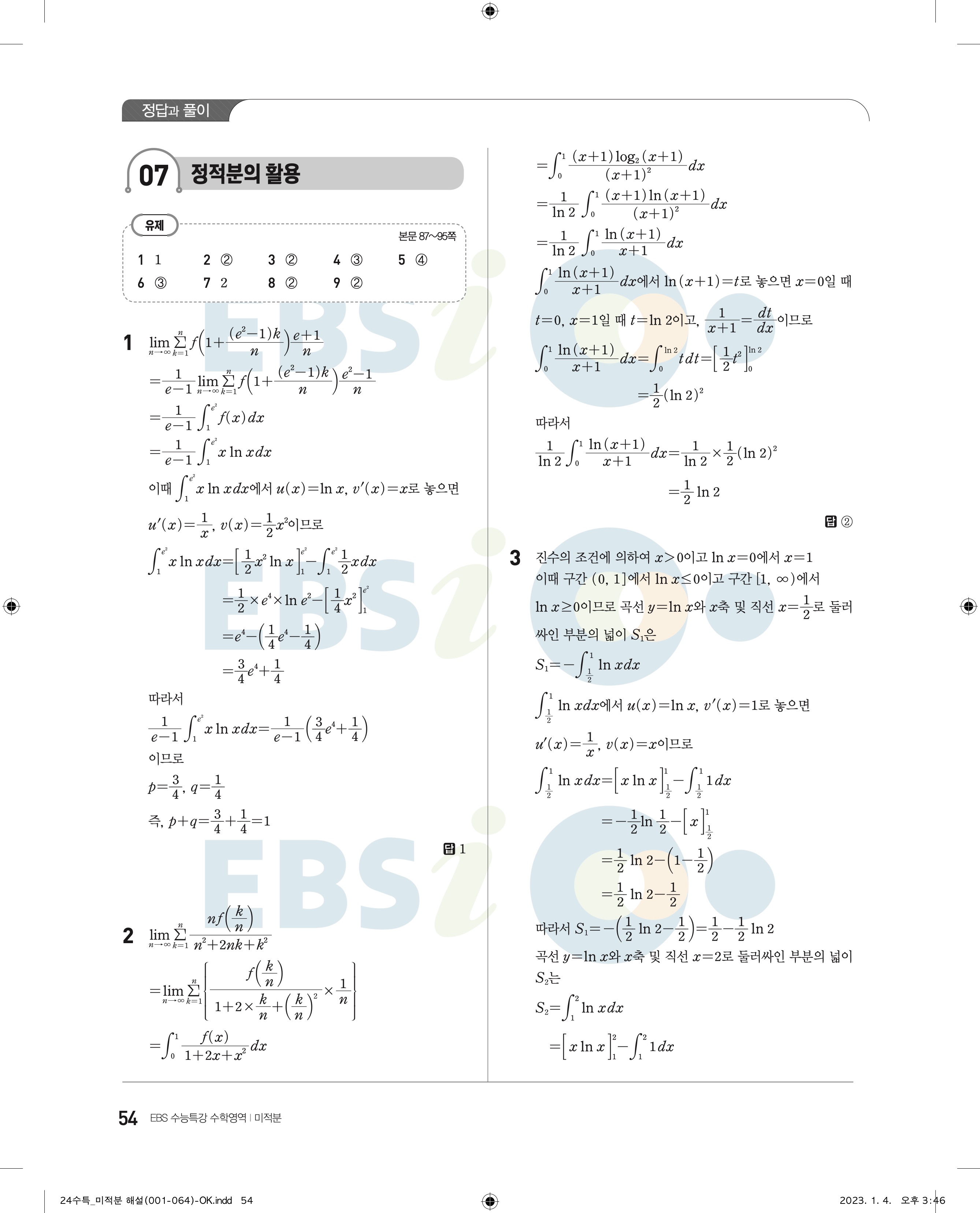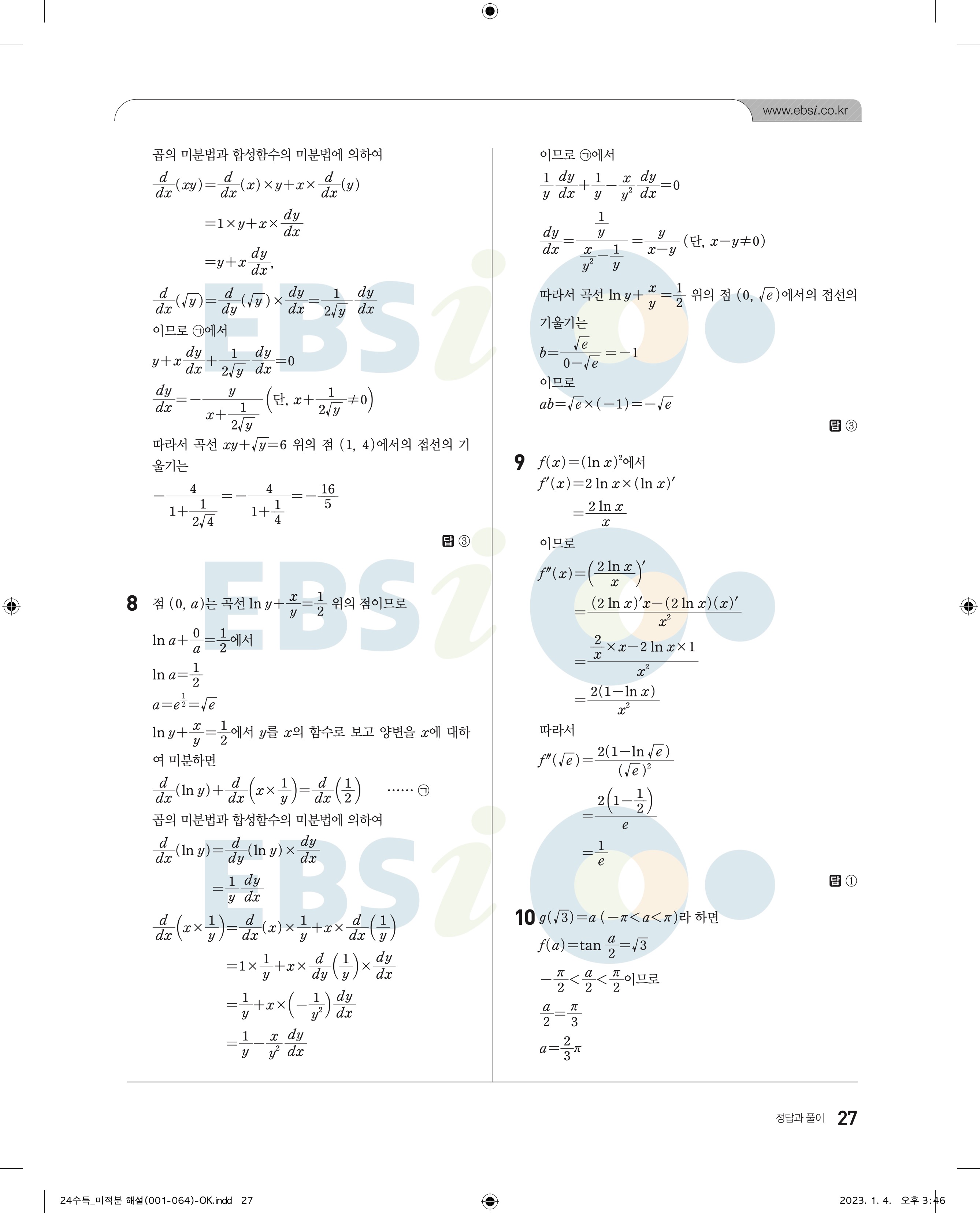 수특미적분답지해설 바로보는 사진답지 2024수능대비