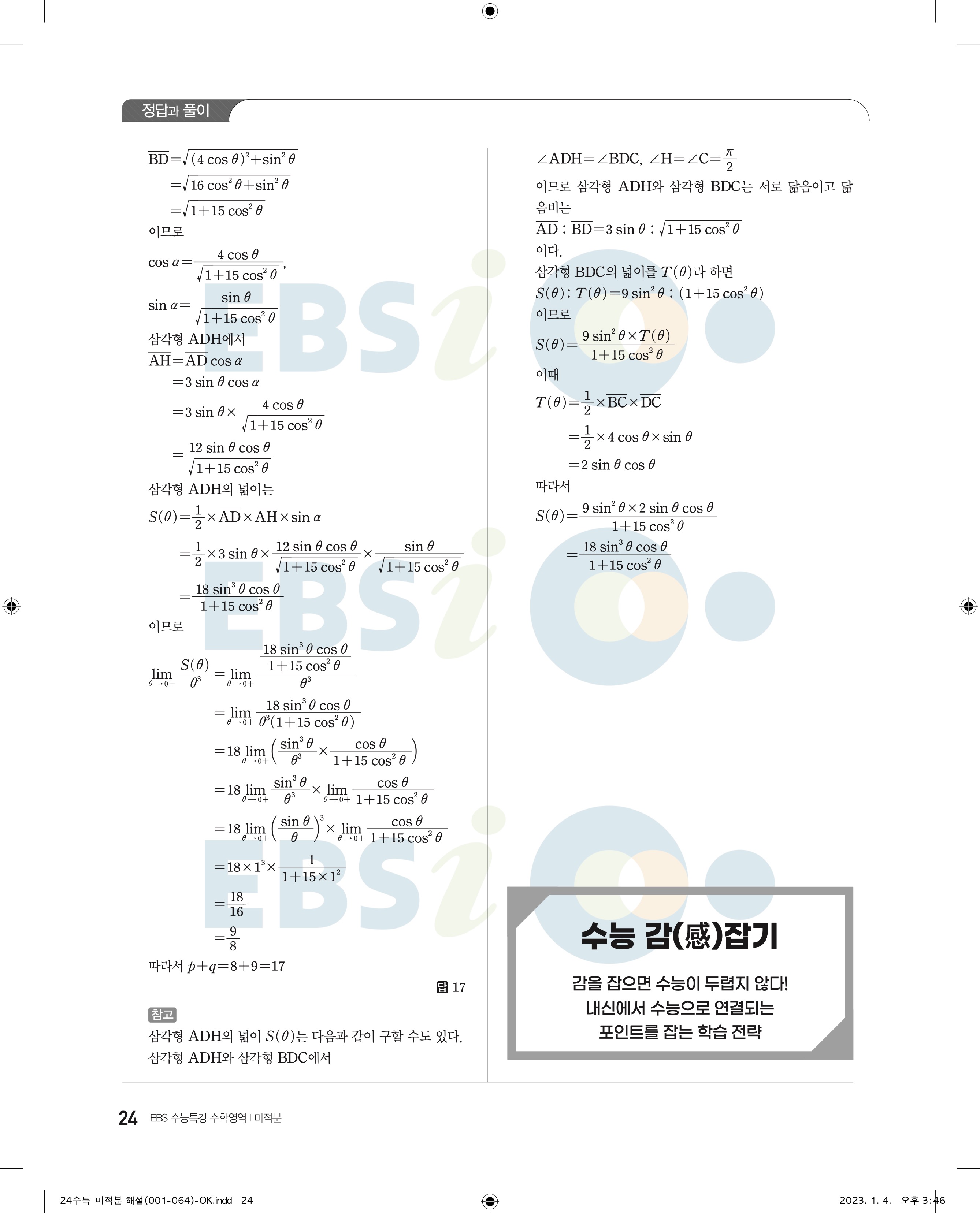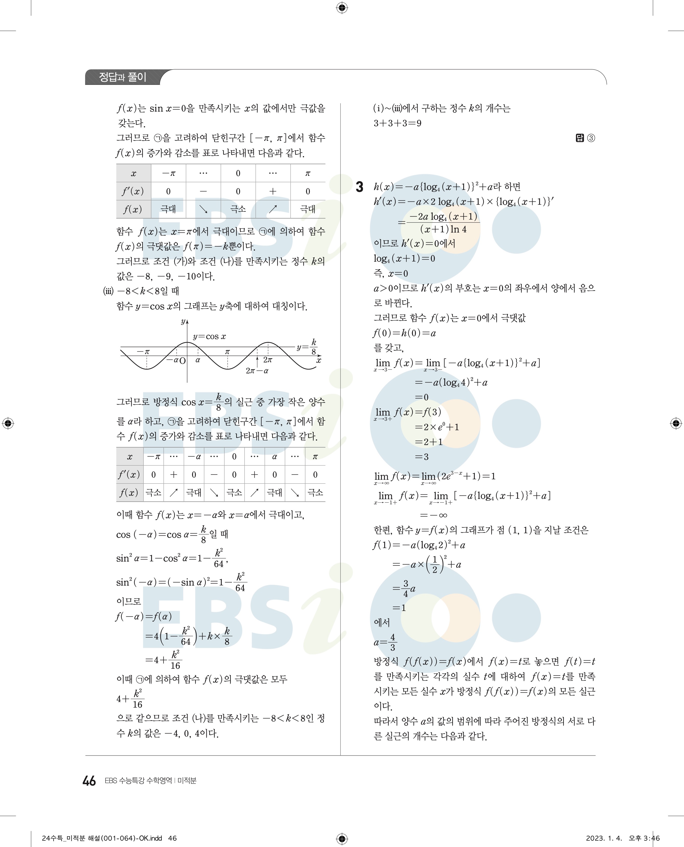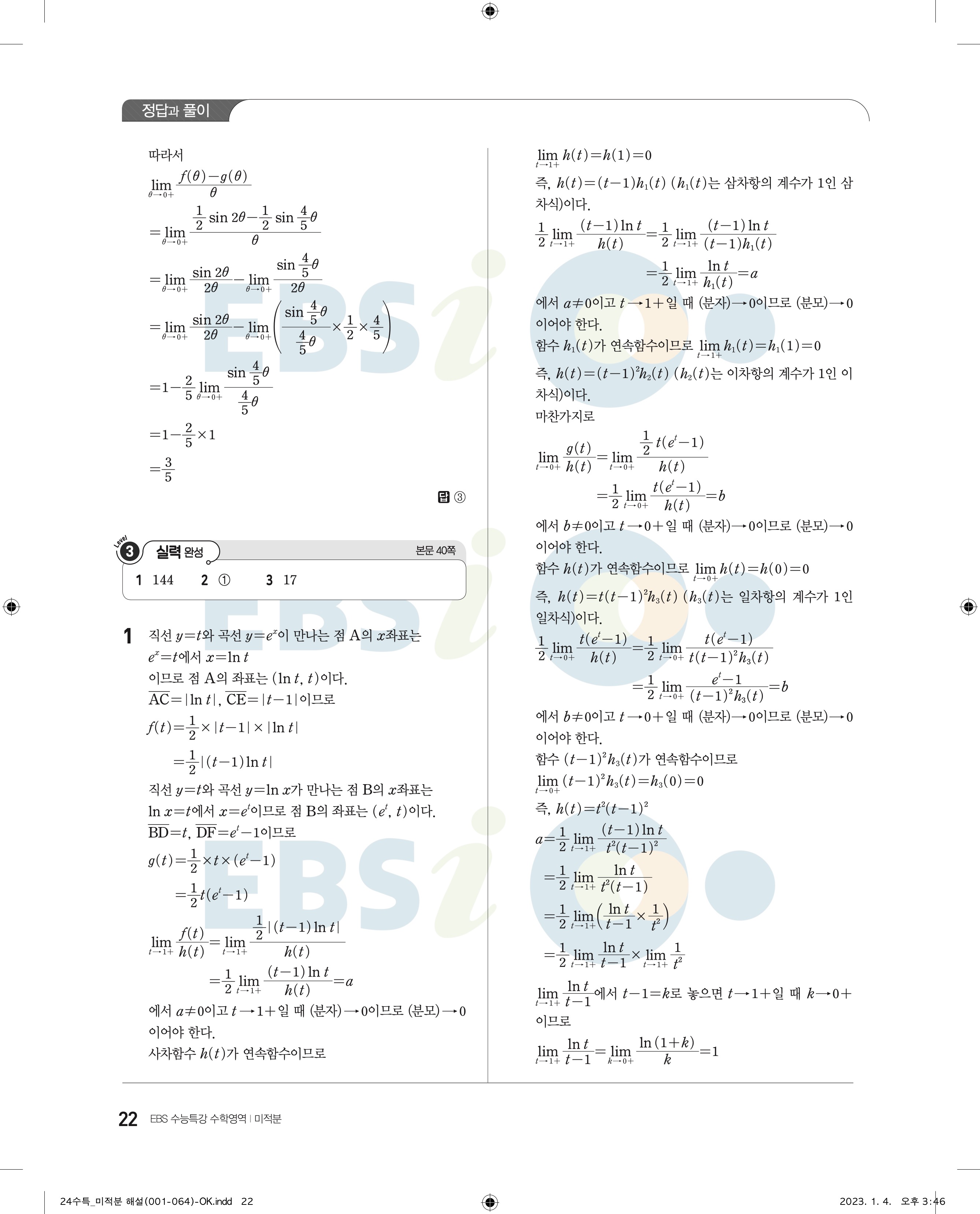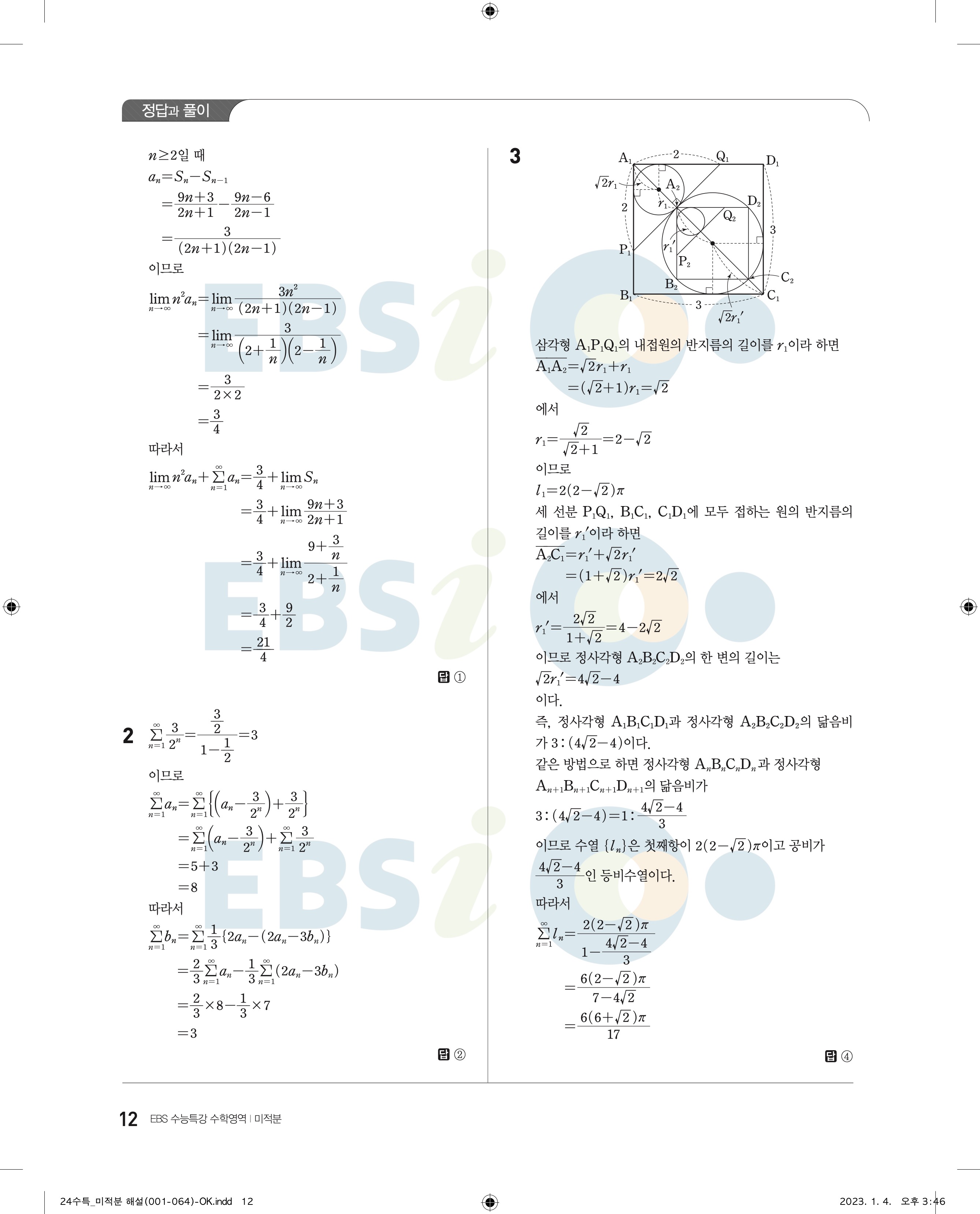 수특미적분답지해설 바로보는 사진답지 2024수능대비