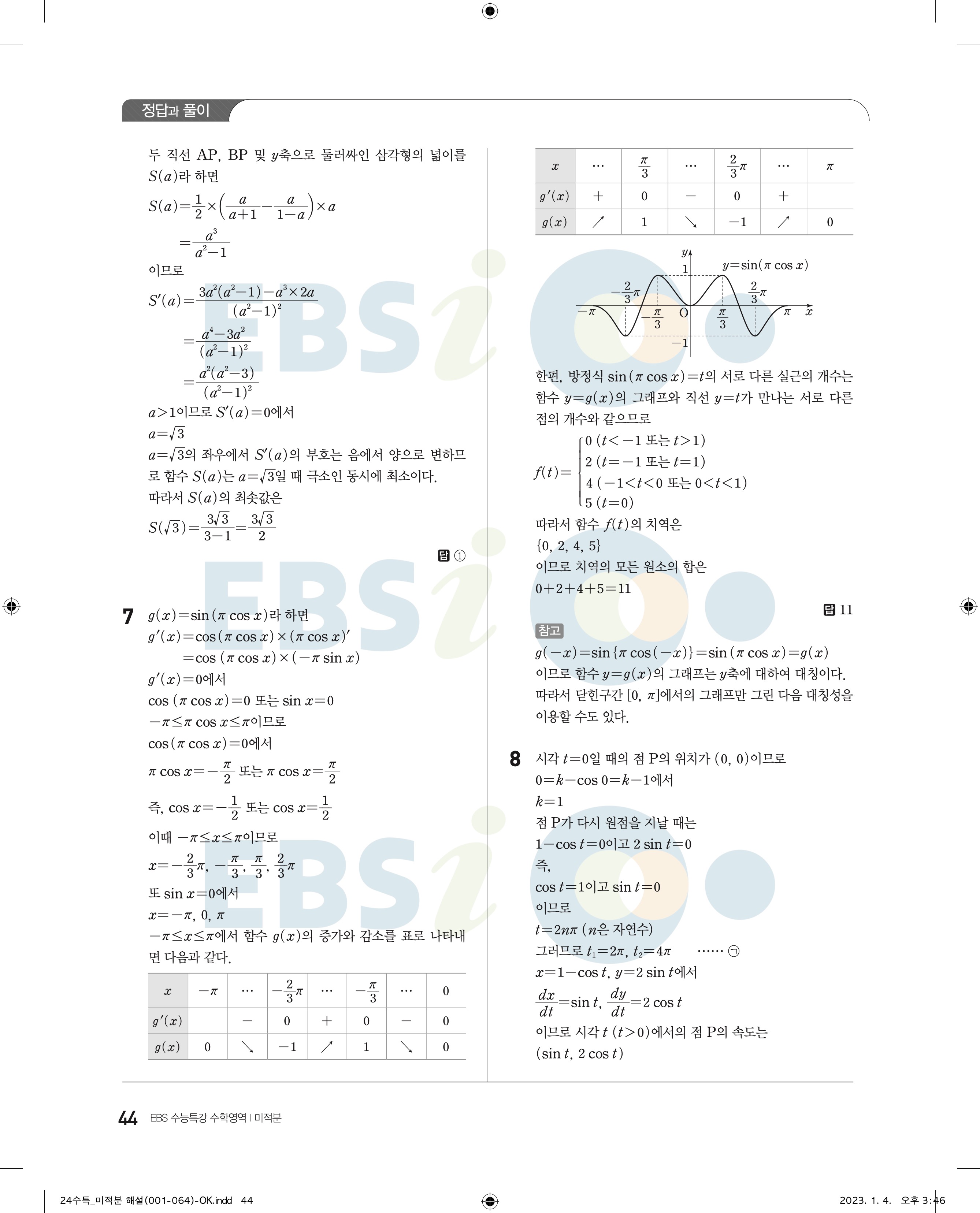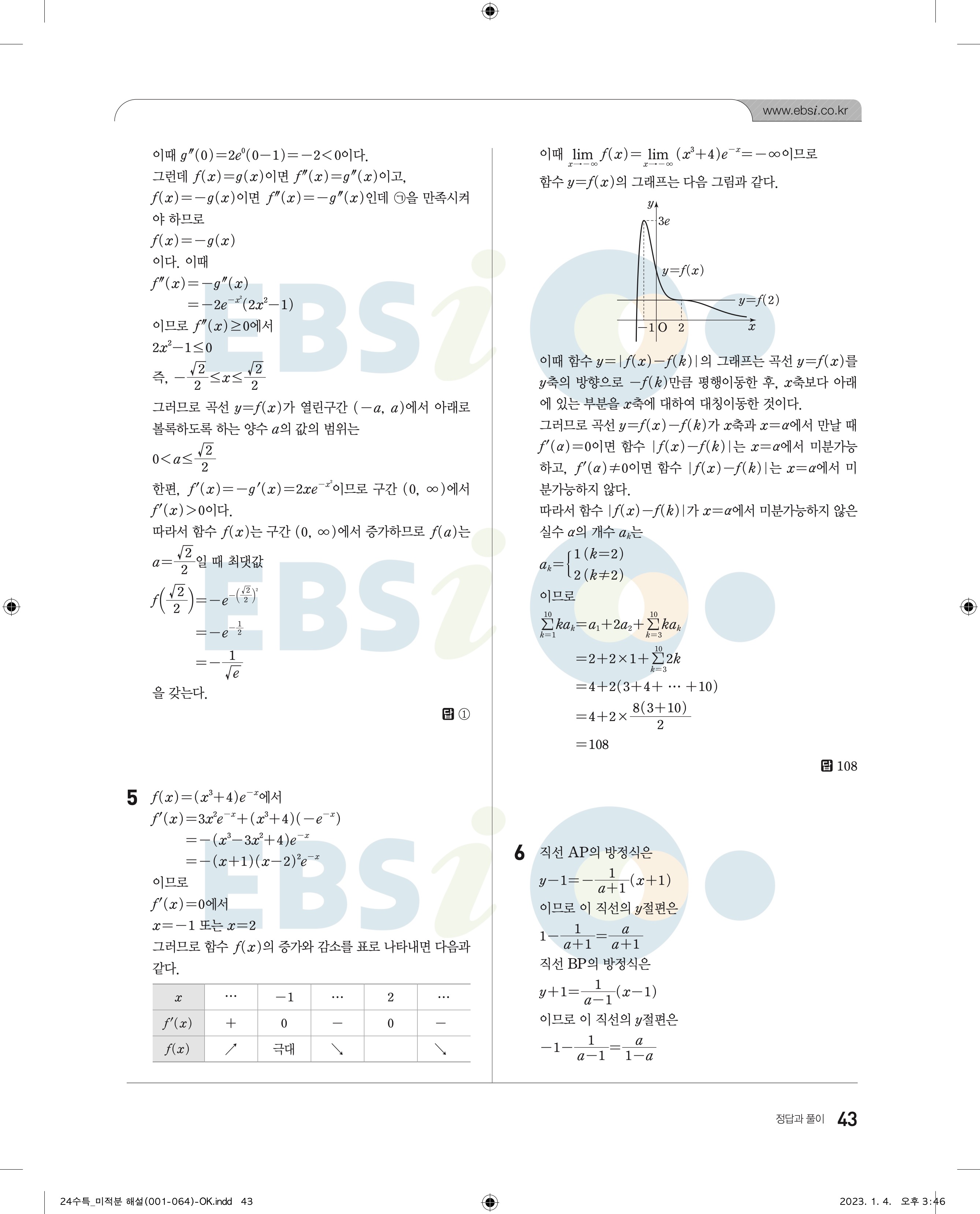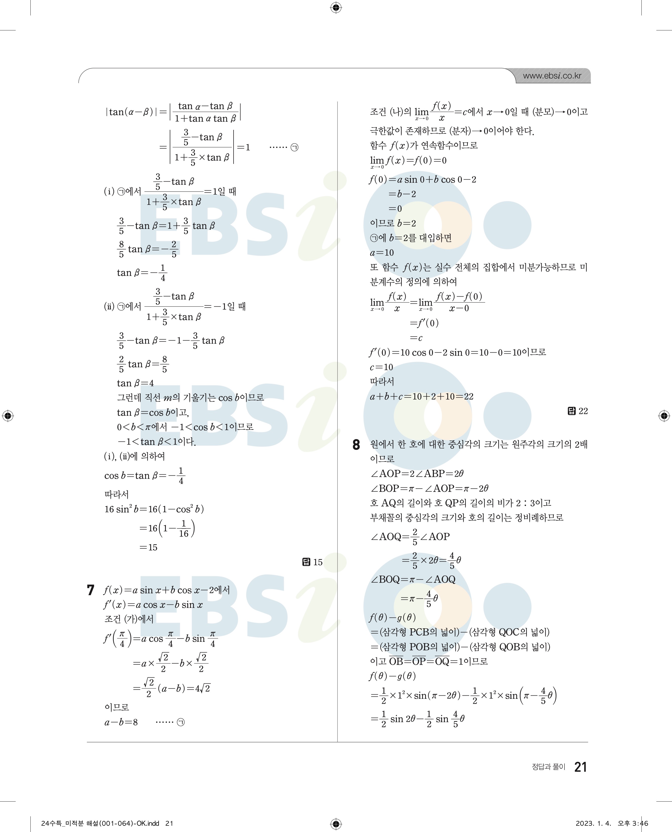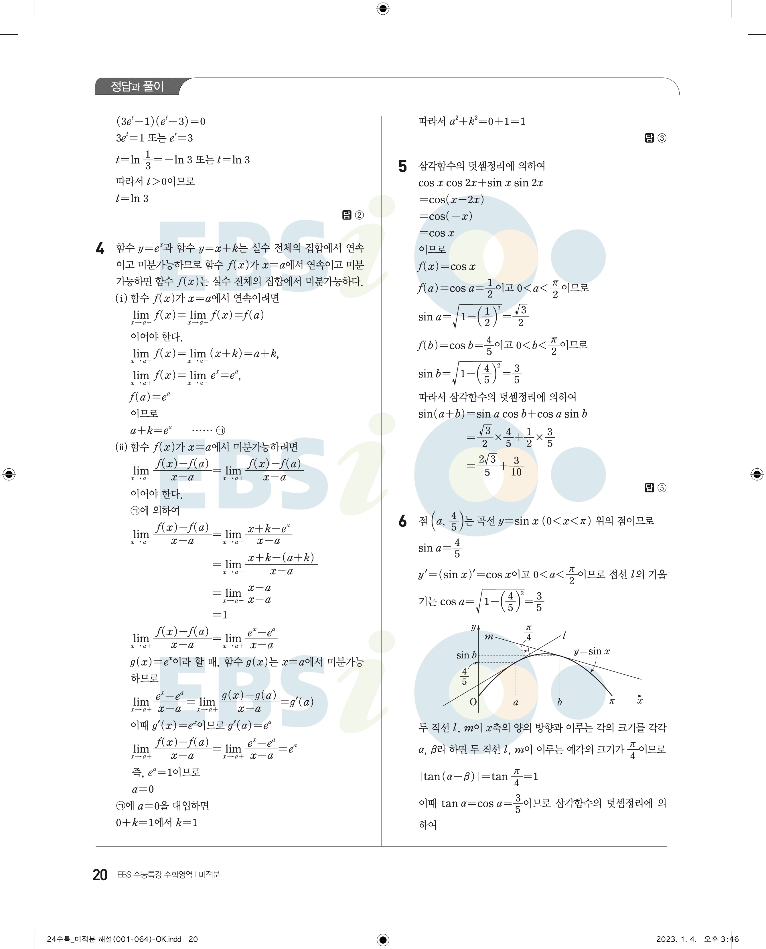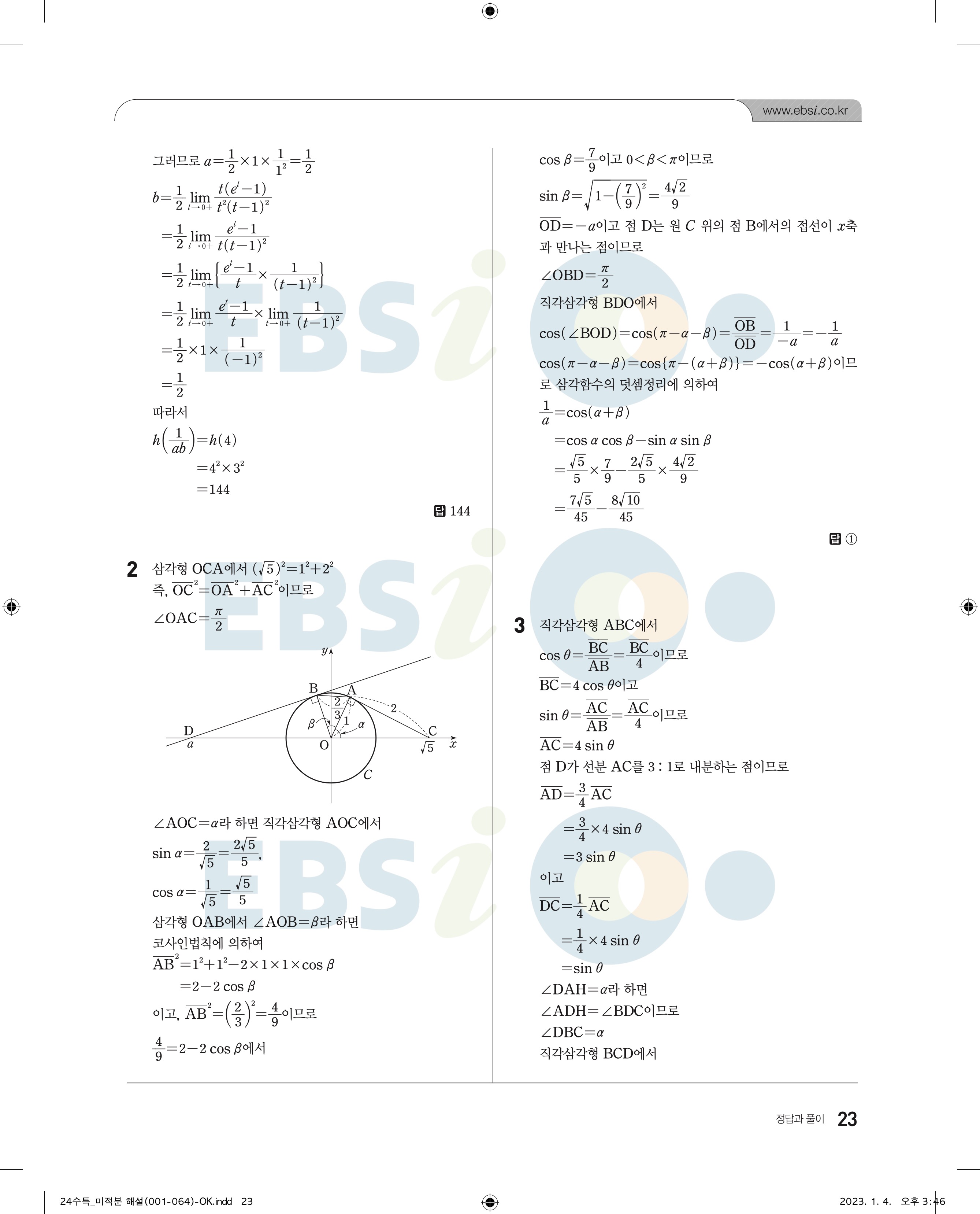 수특미적분답지해설 바로보는 사진답지 2024수능대비