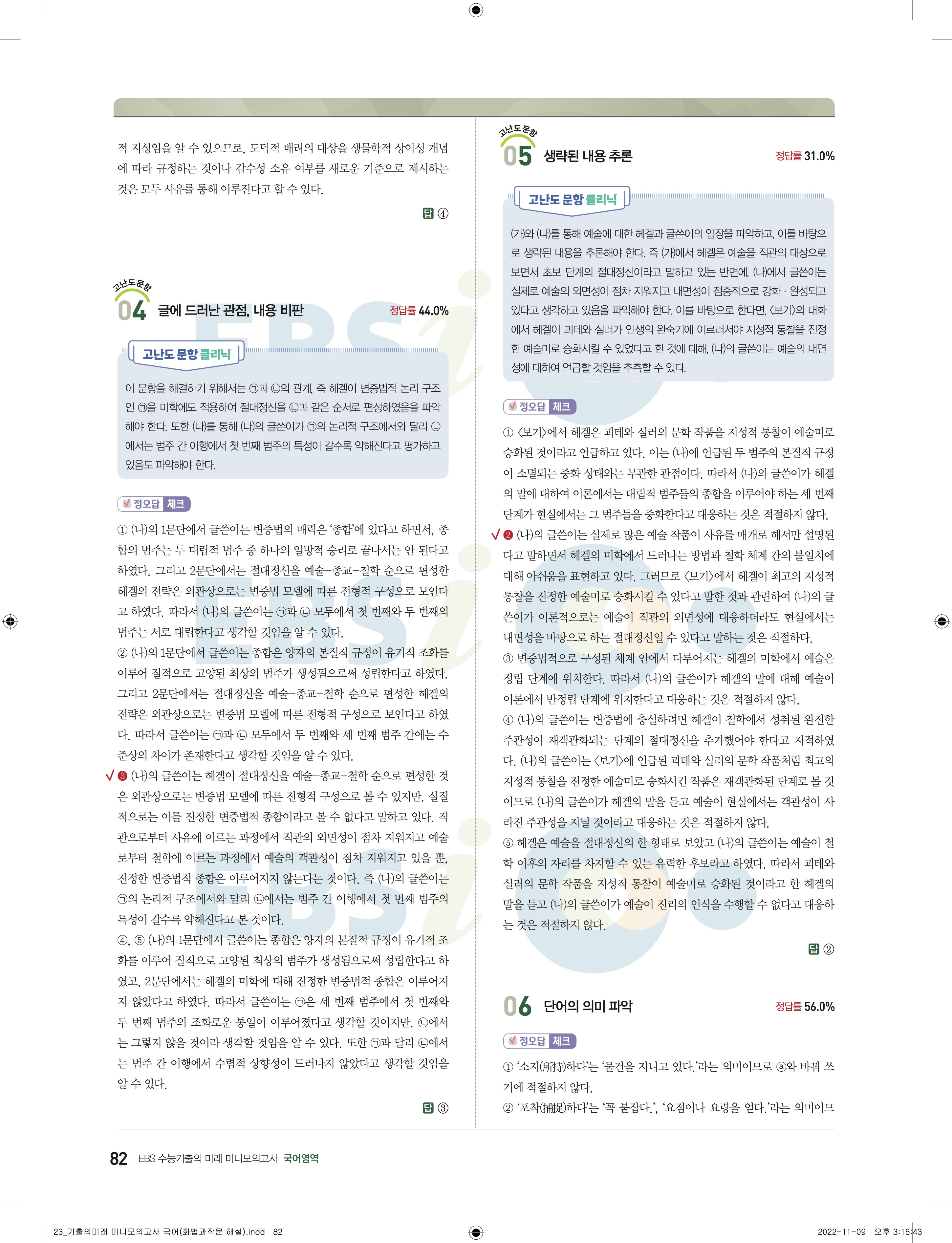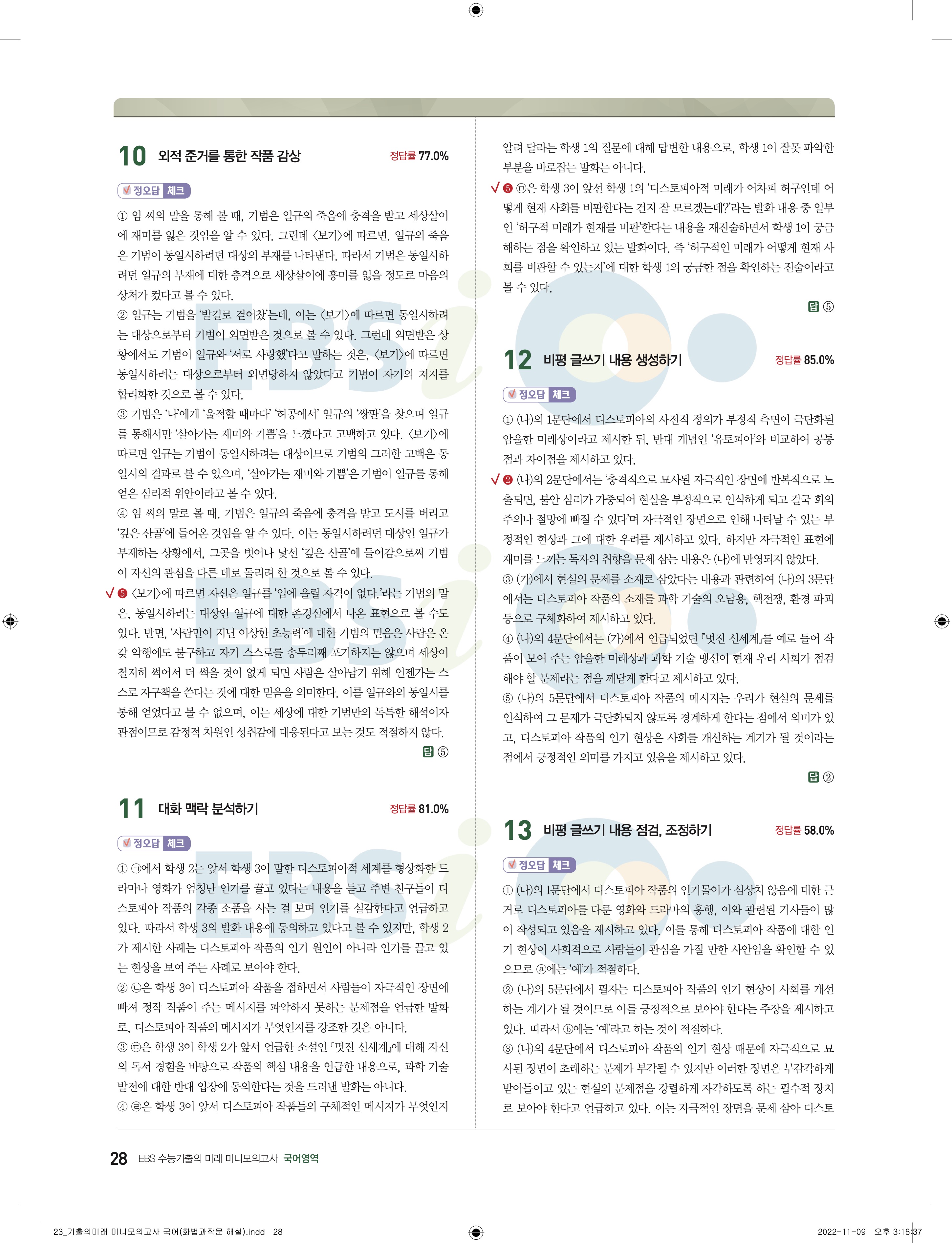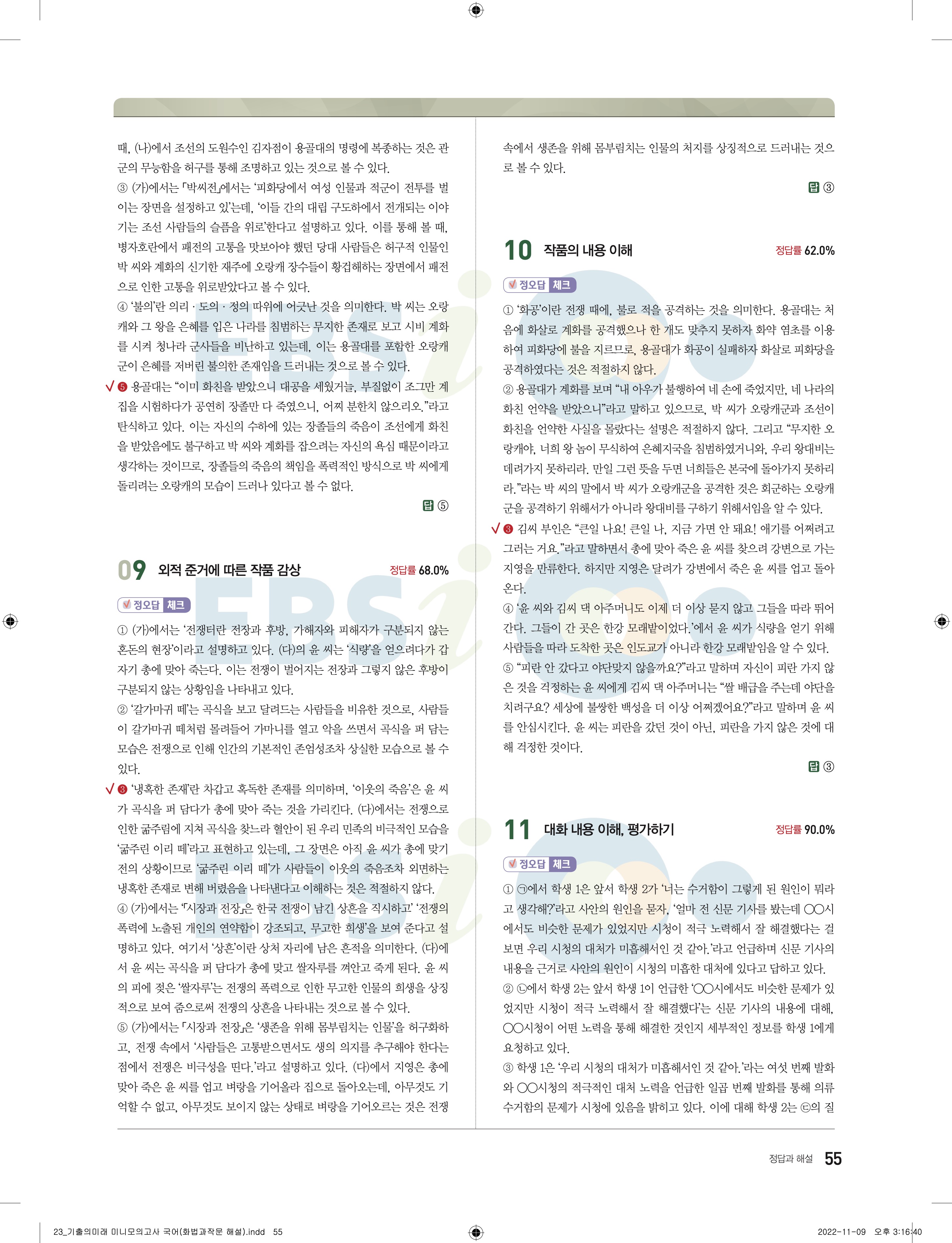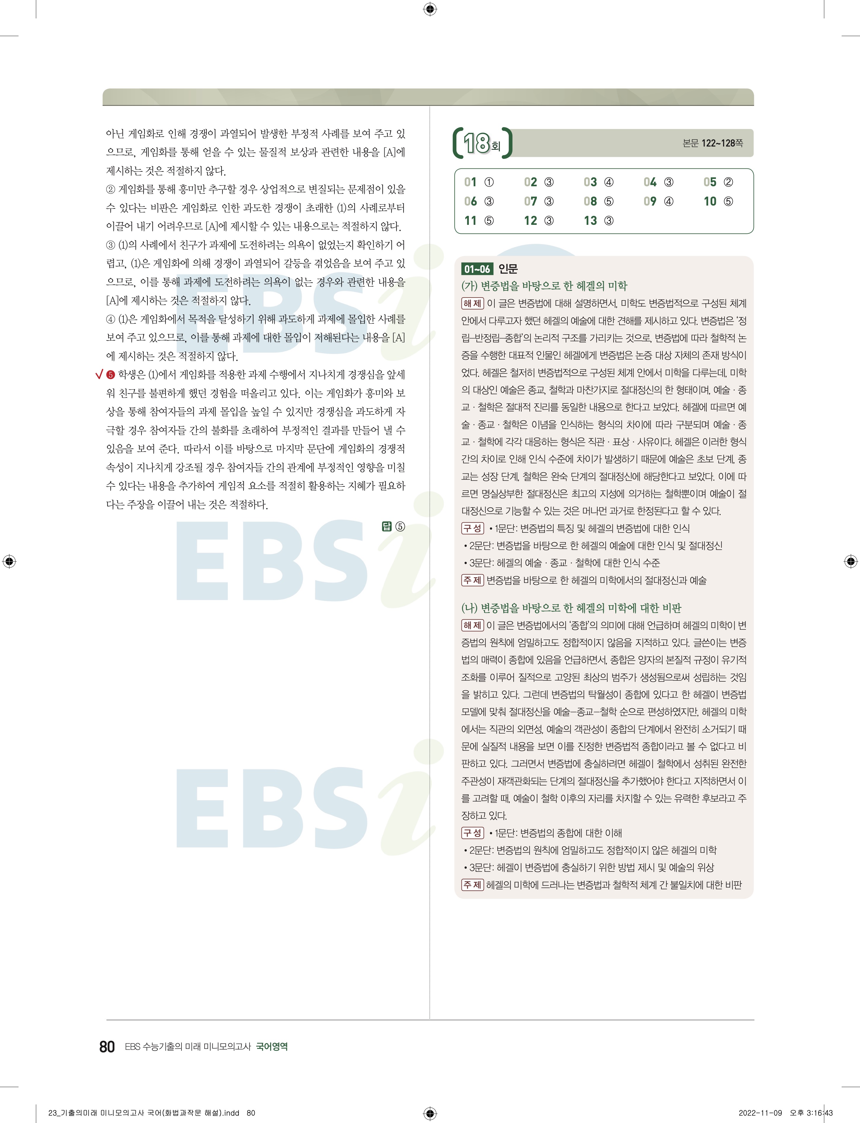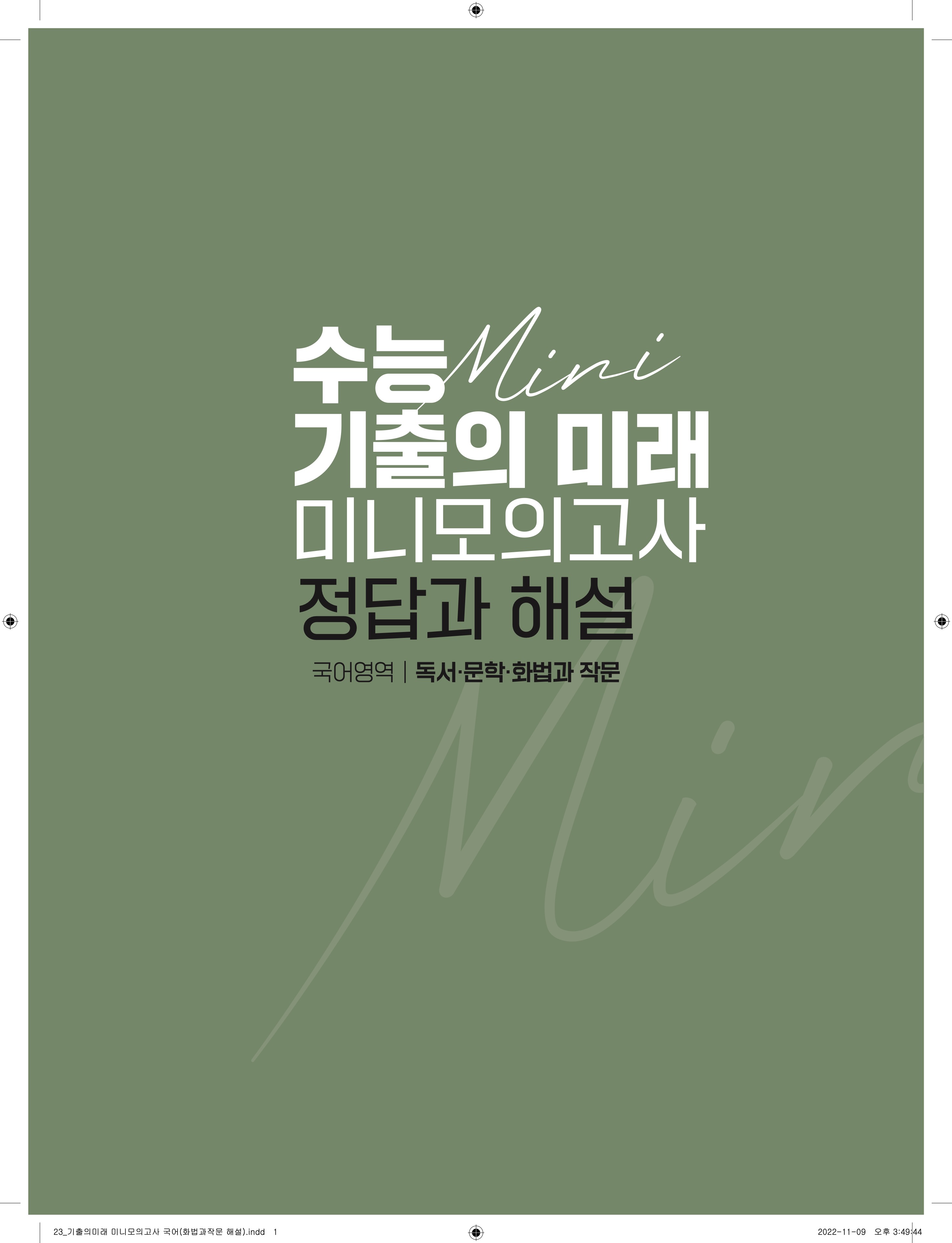 2024 수능기출의미래 미니모의고사 국어영역 독서문학화법과작문 답지.jpeg