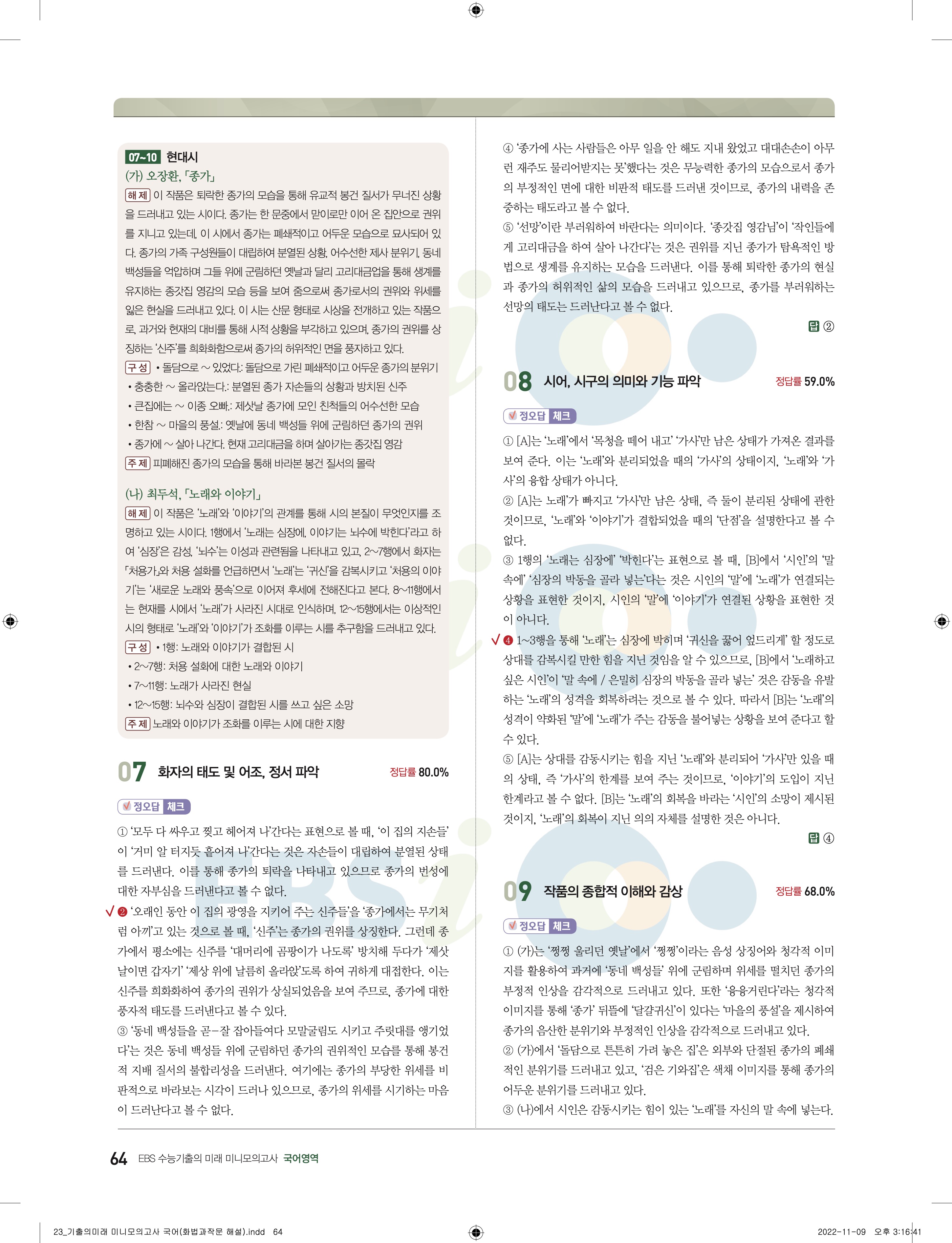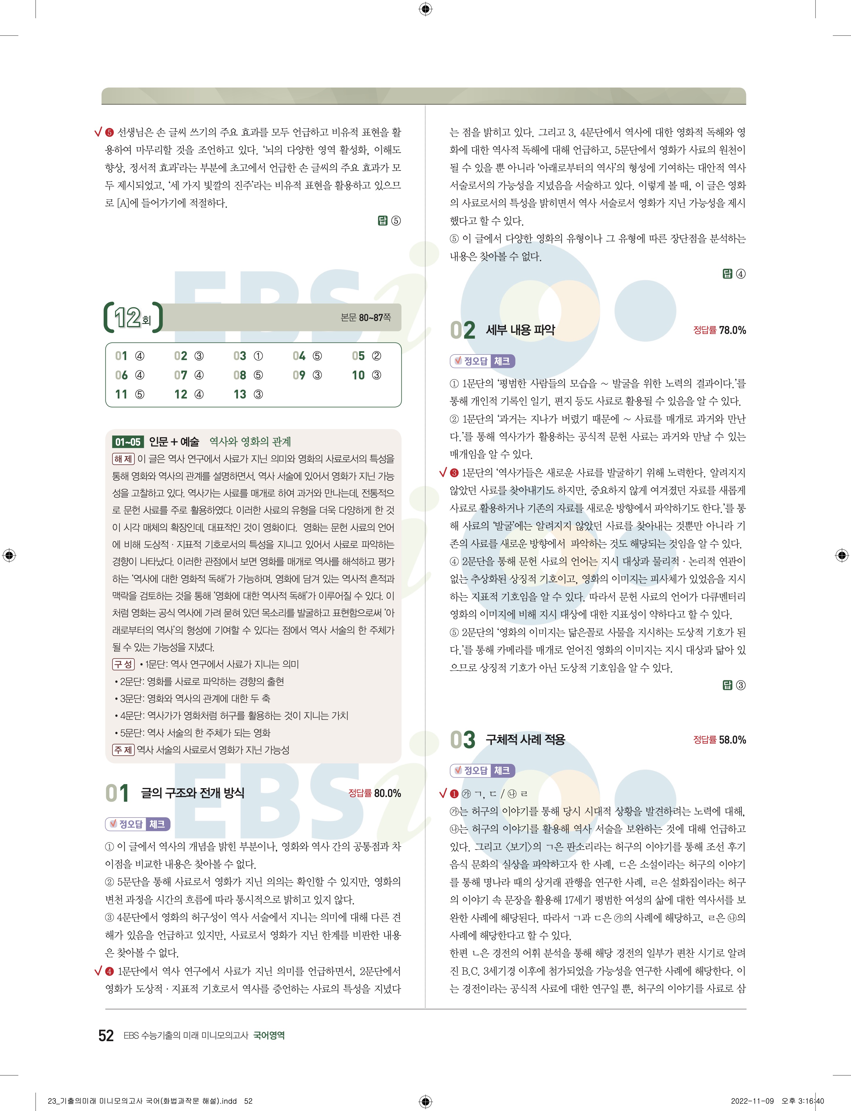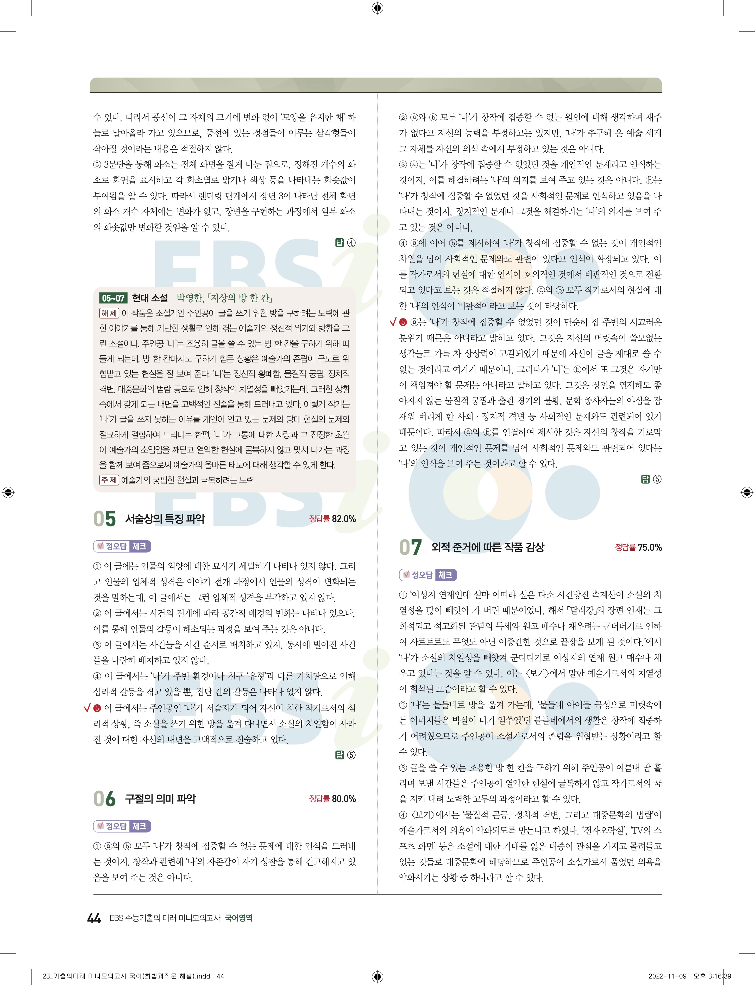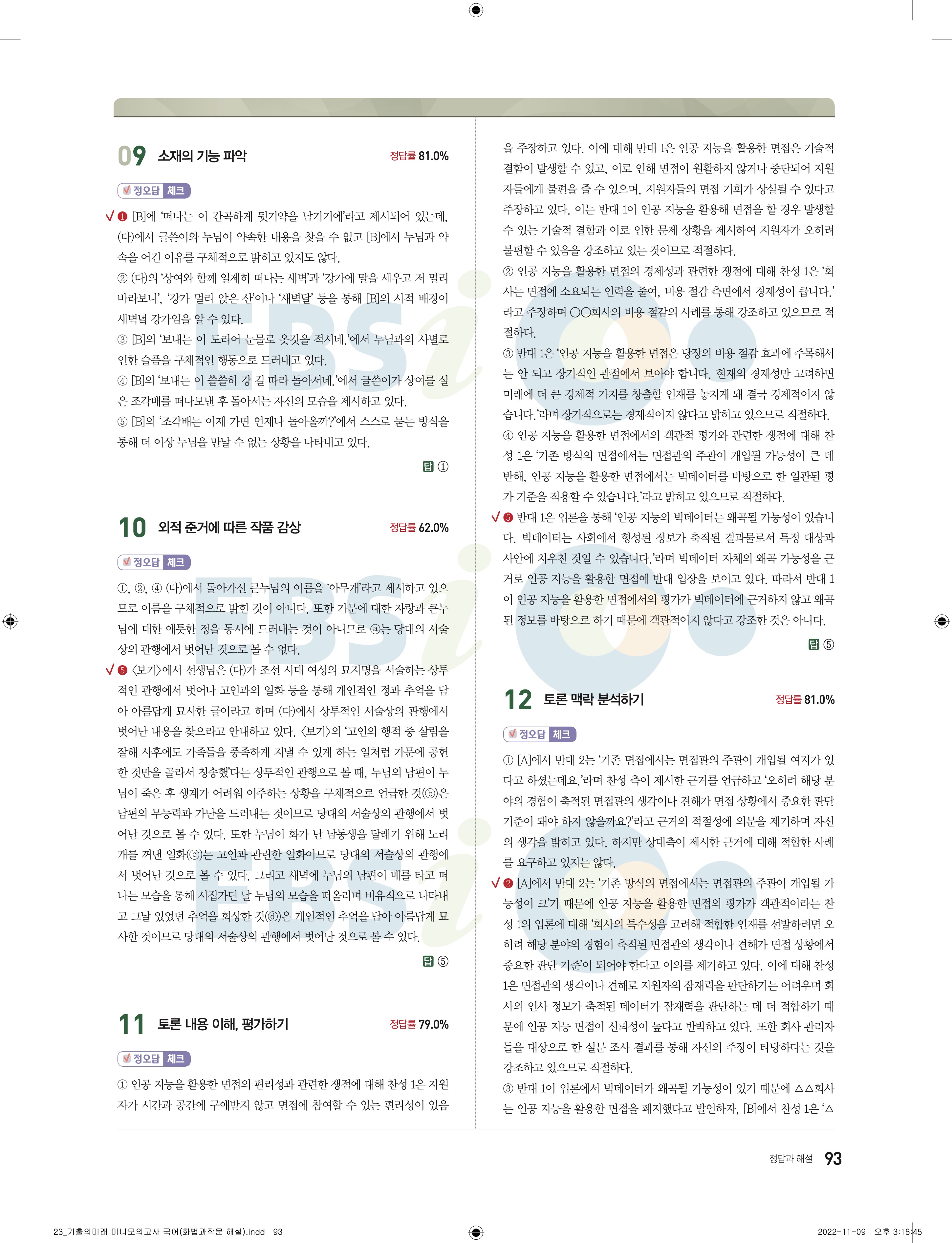 2024 수능기출의미래 미니모의고사 국어영역 독서문학화법과작문 답지.jpeg