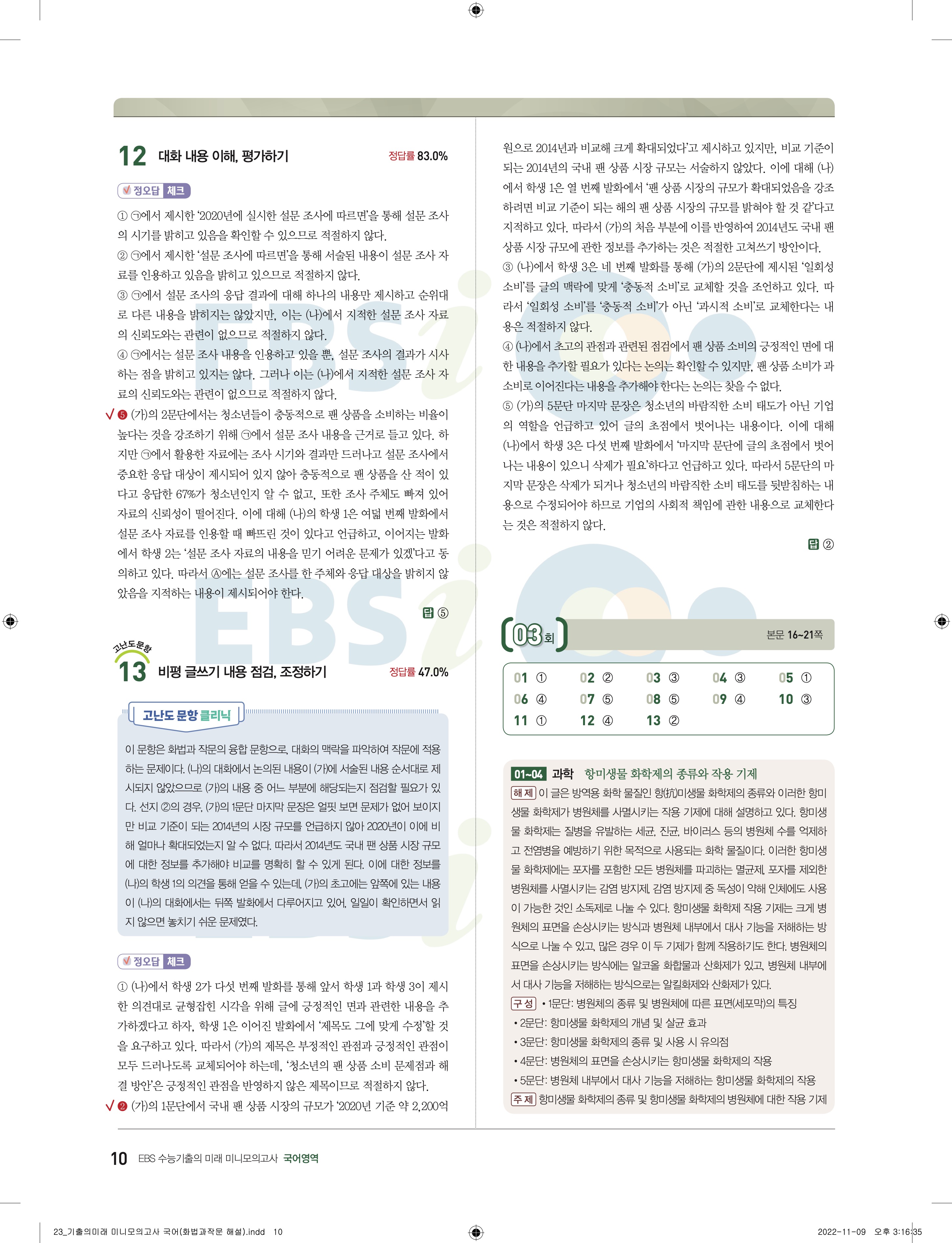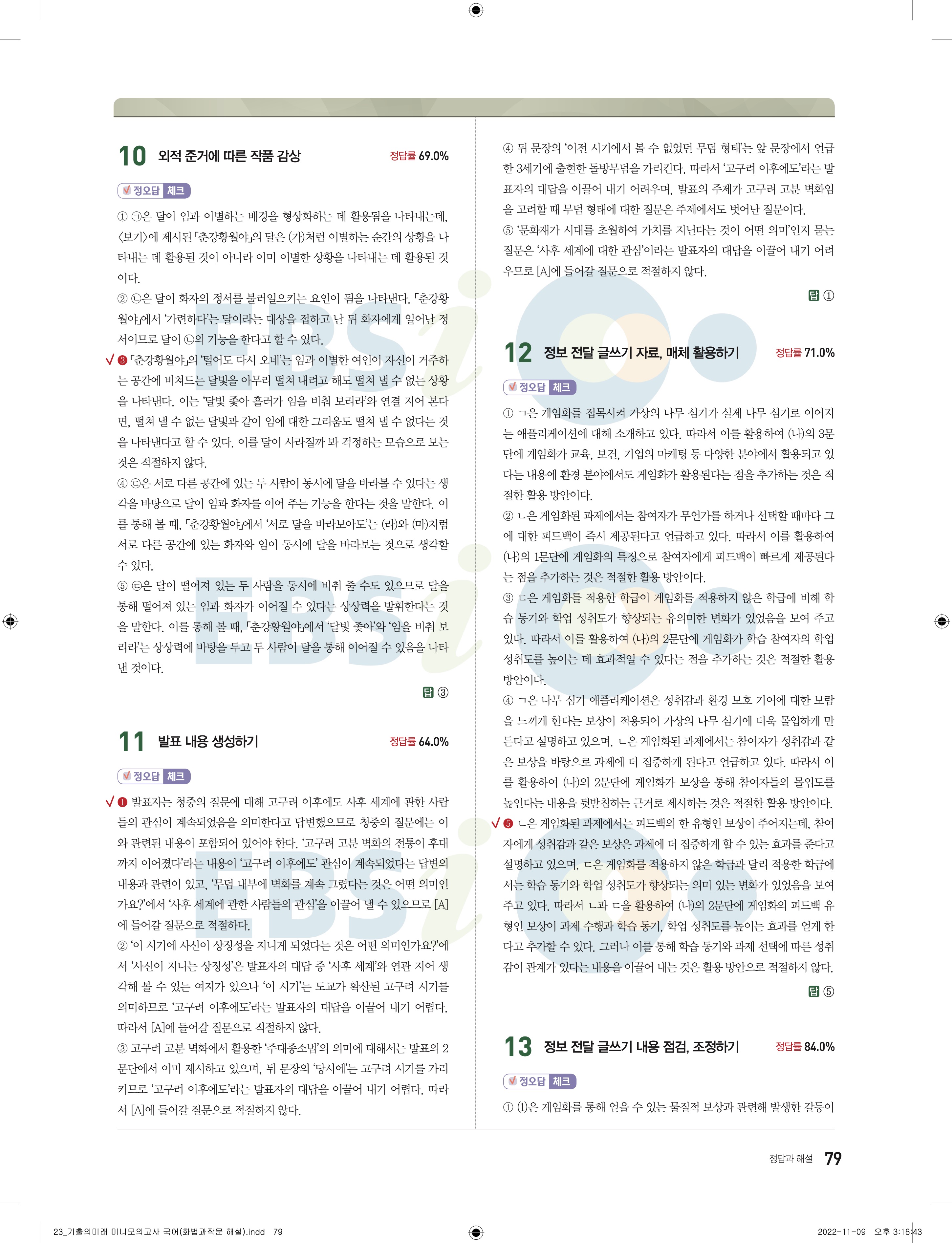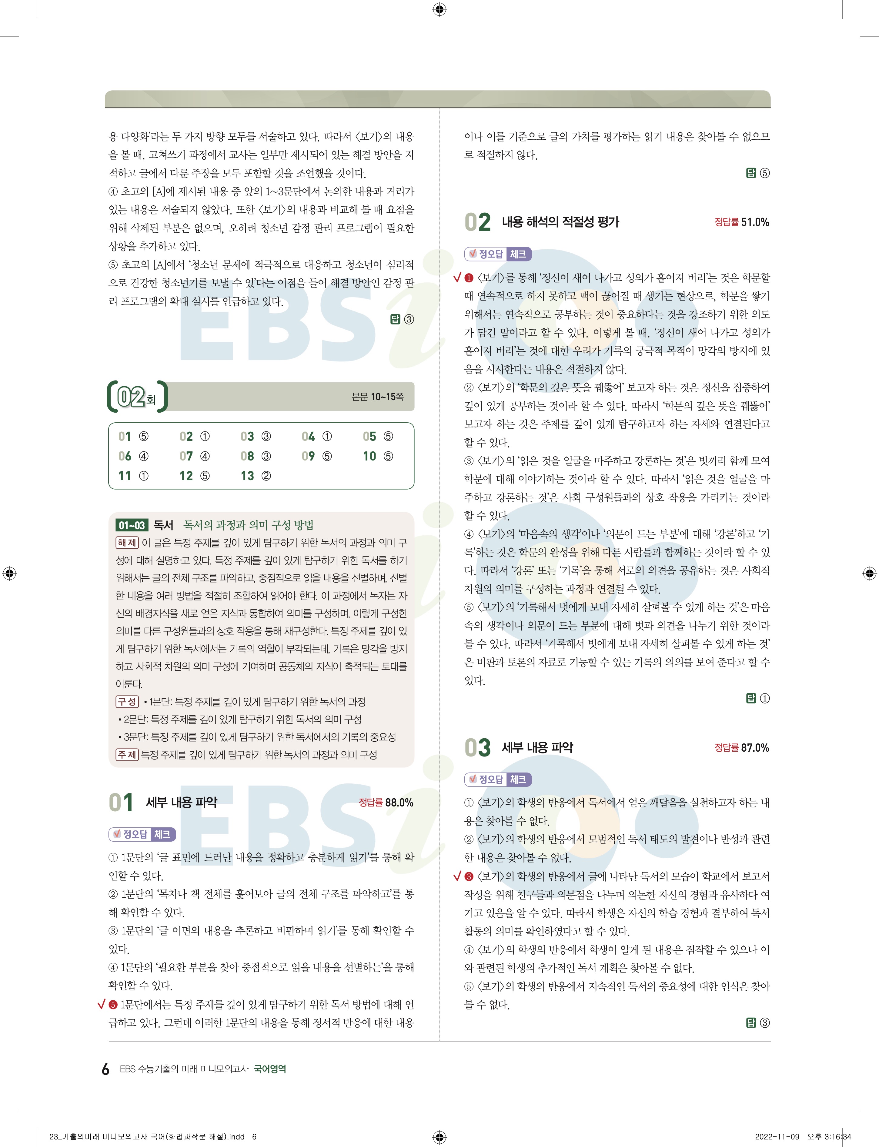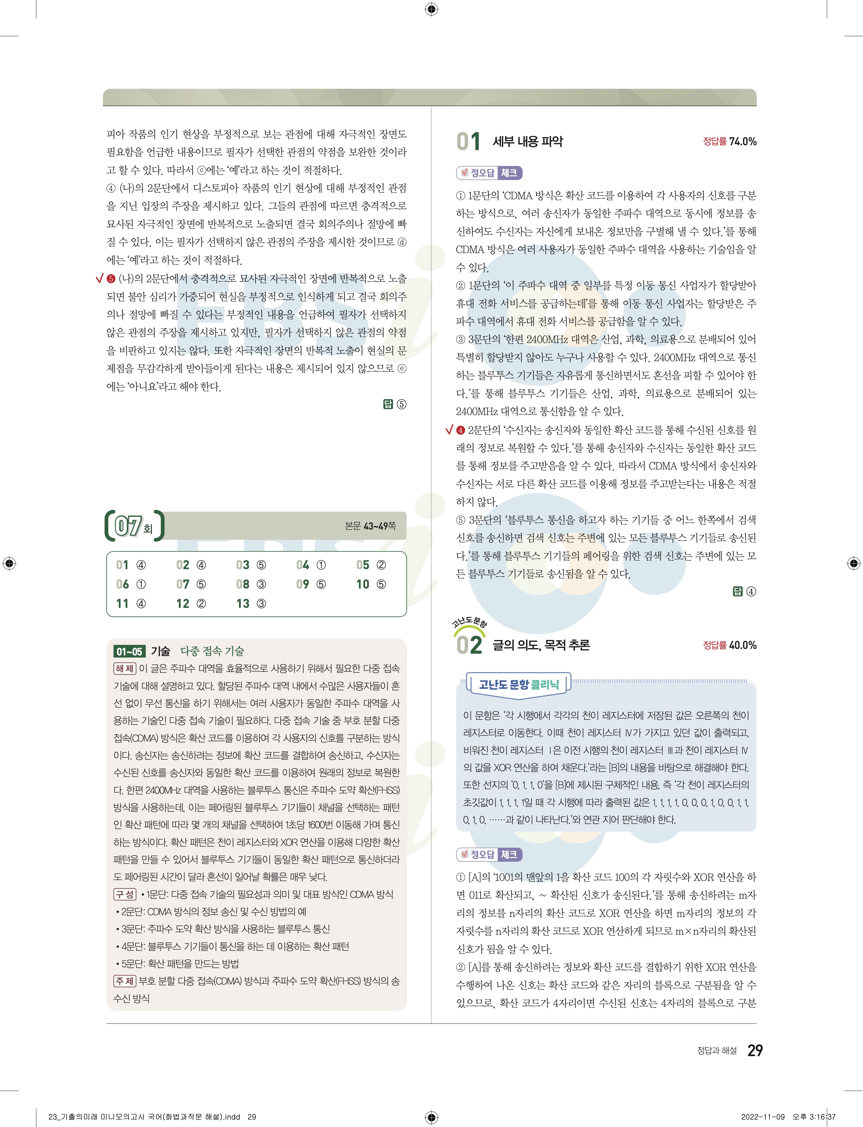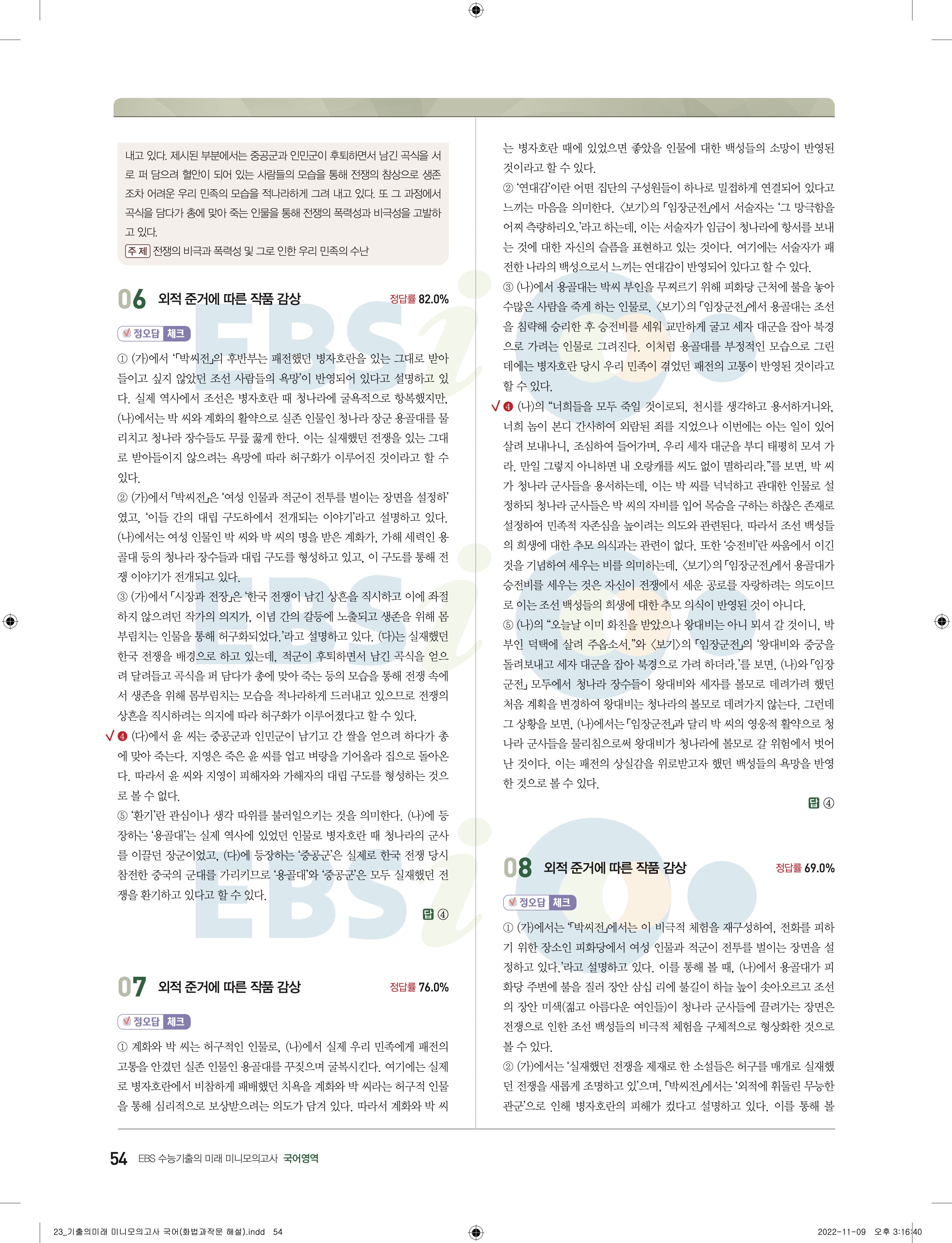 2024 수능기출의미래 미니모의고사 국어영역 독서문학화법과작문 답지.jpeg