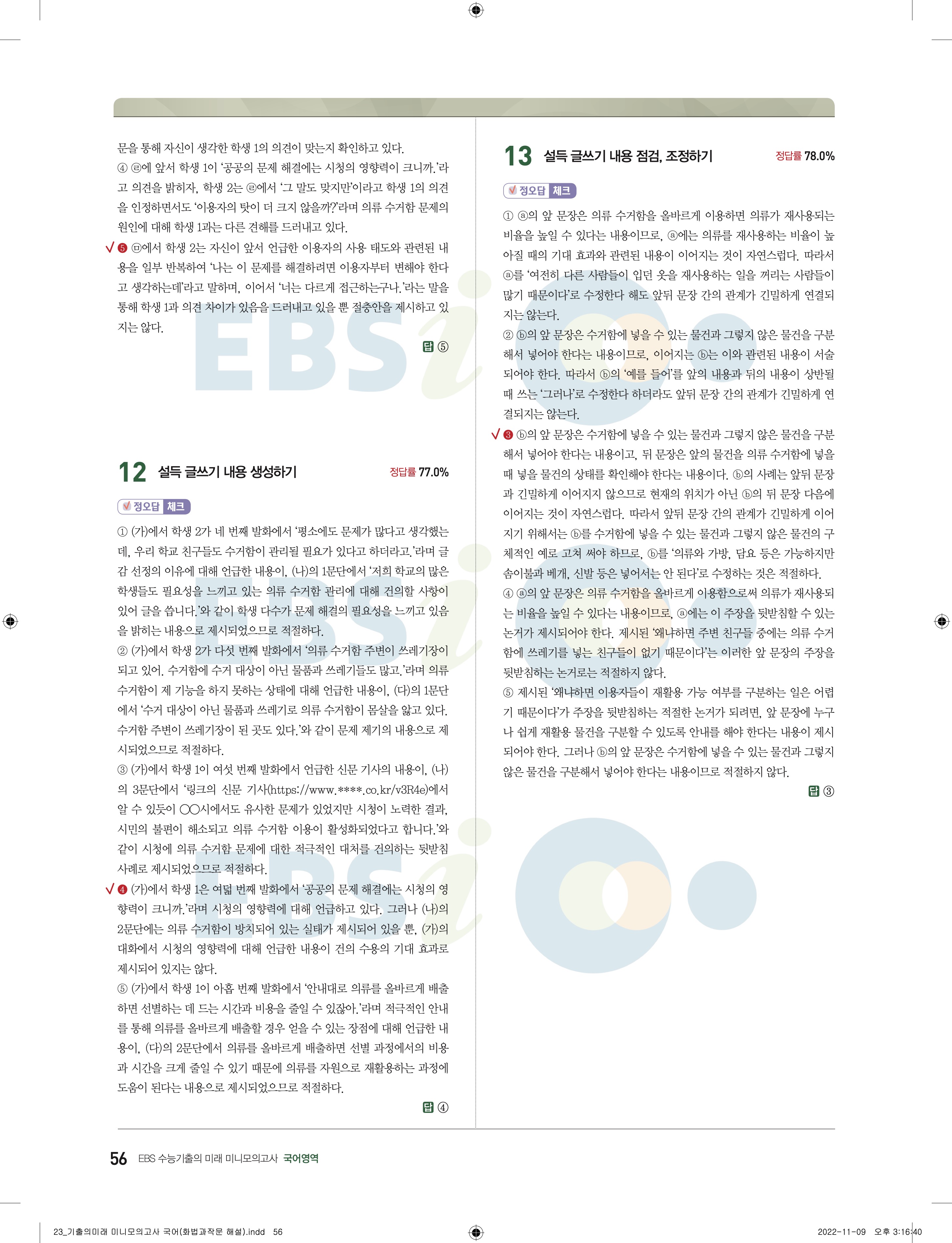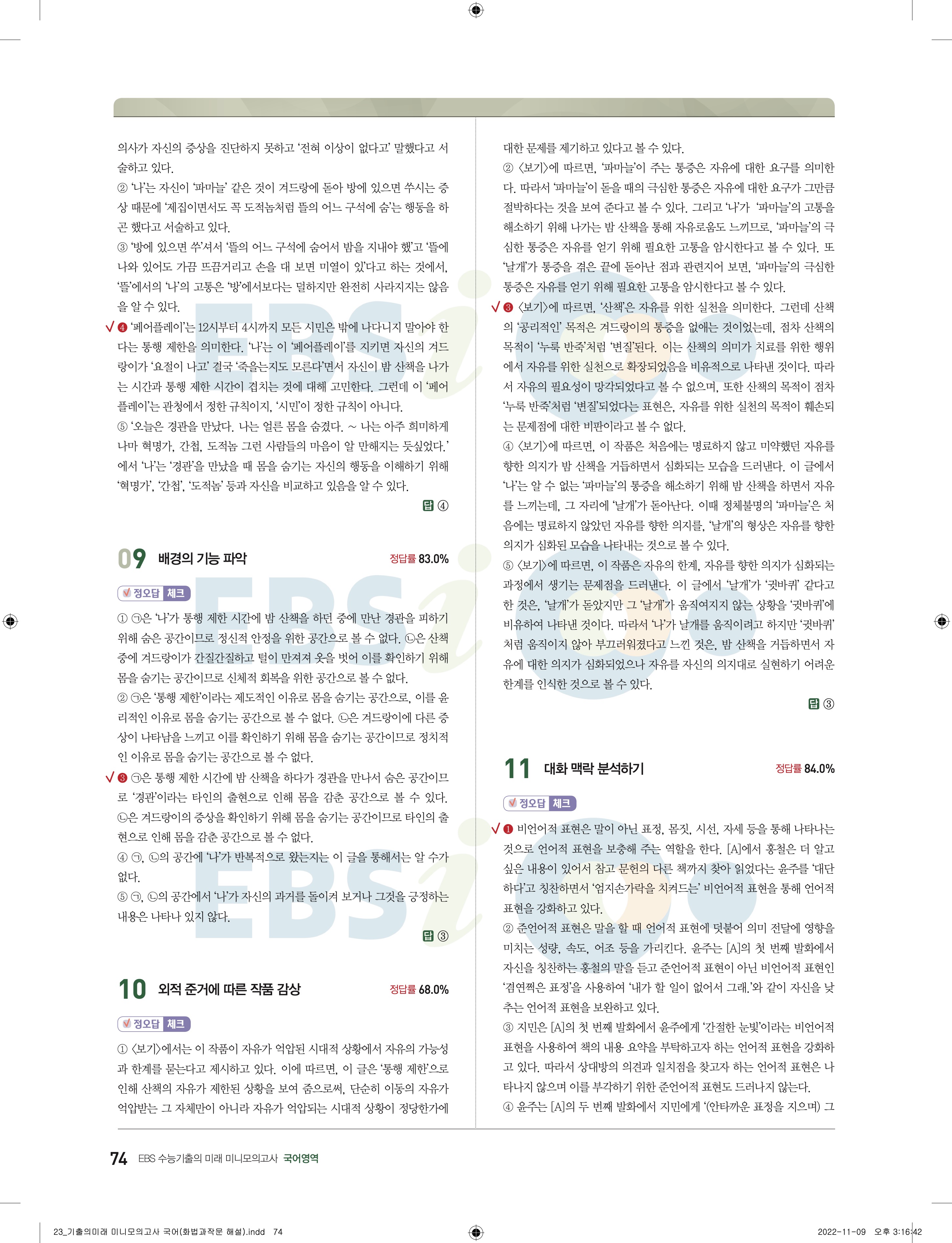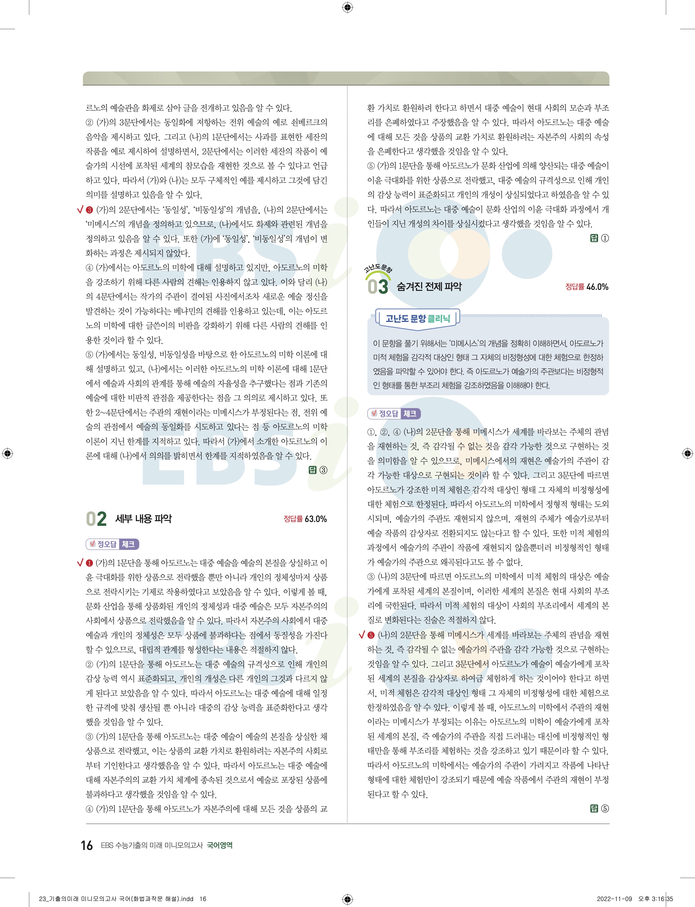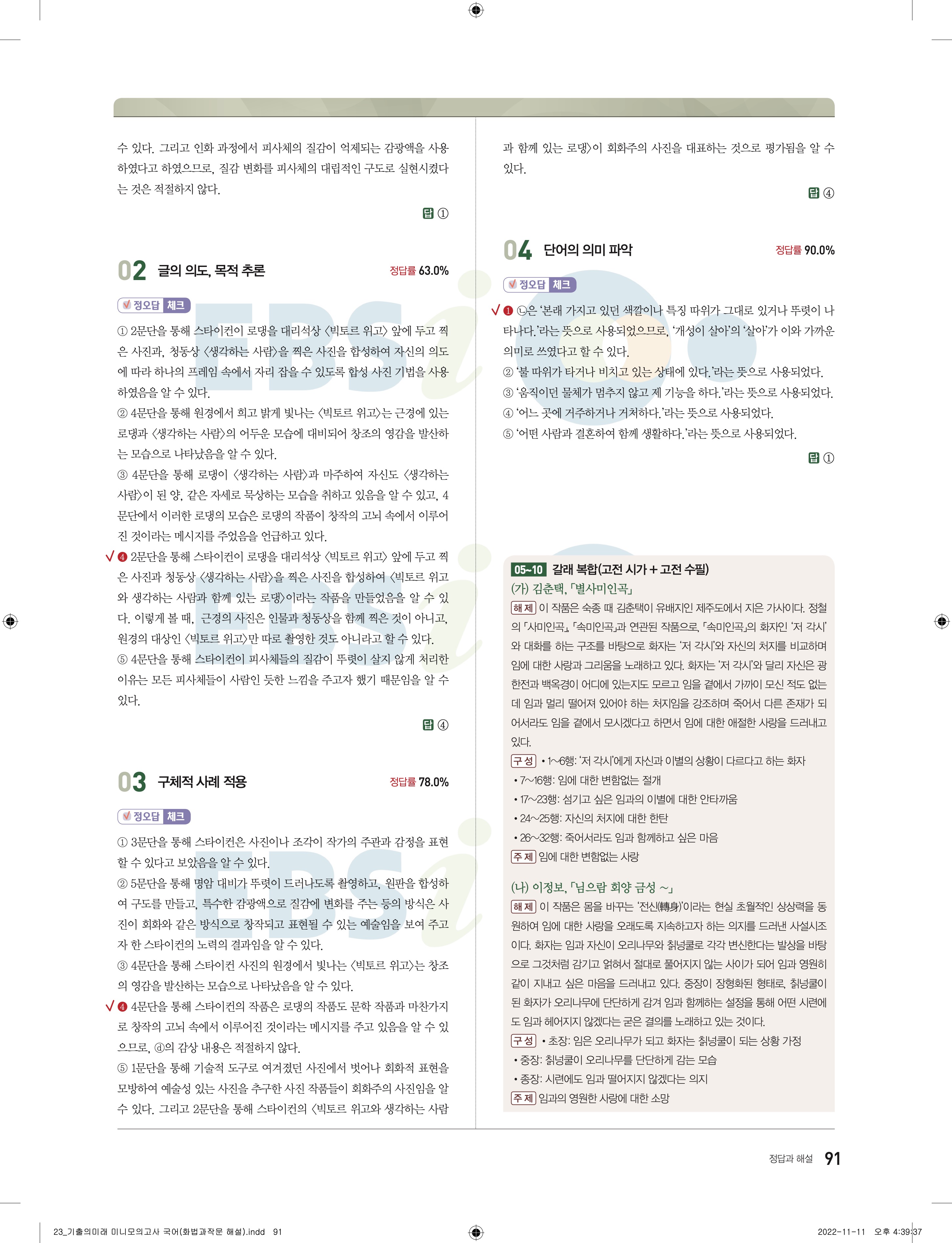 2024 수능기출의미래 미니모의고사 국어영역 독서문학화법과작문 답지.jpeg