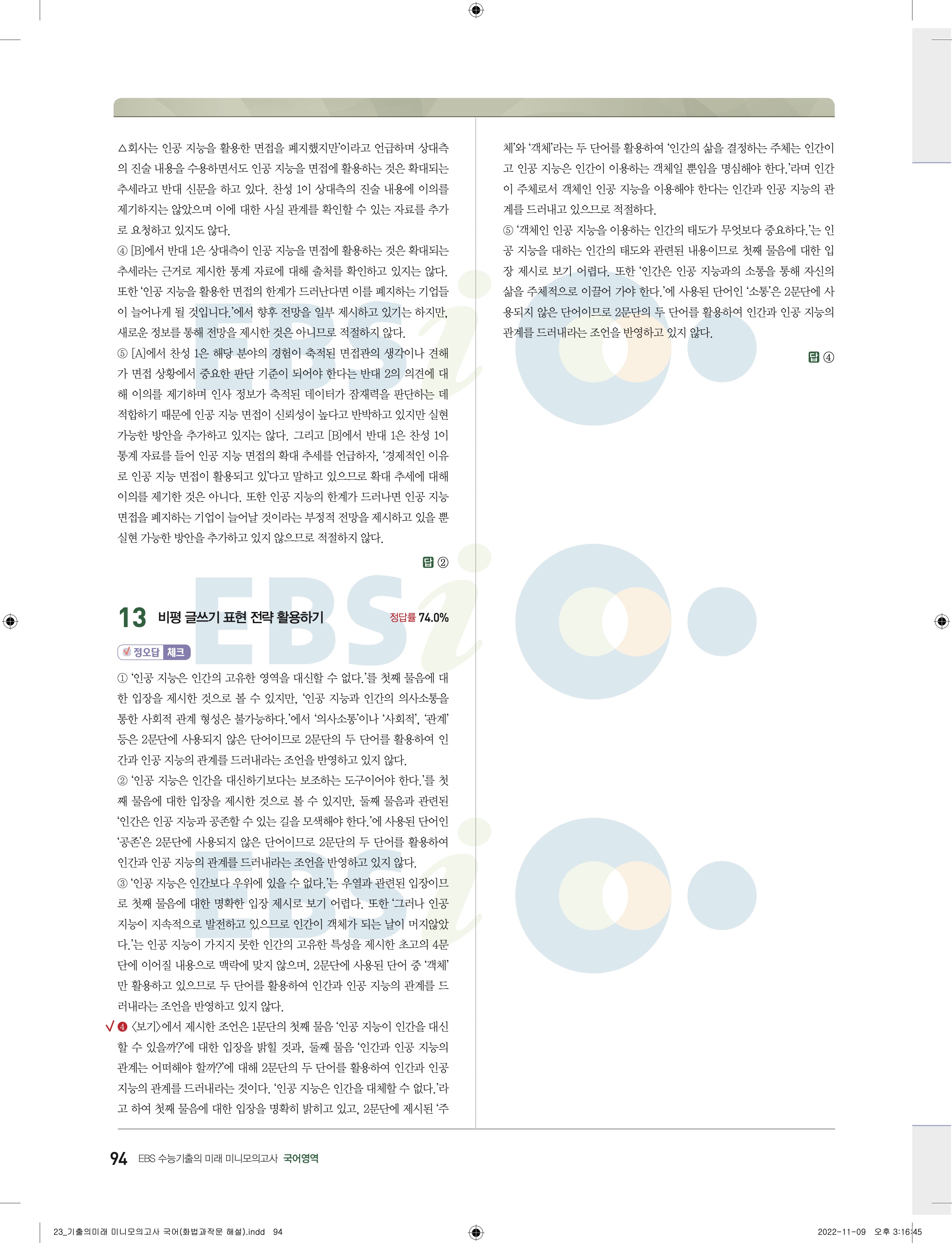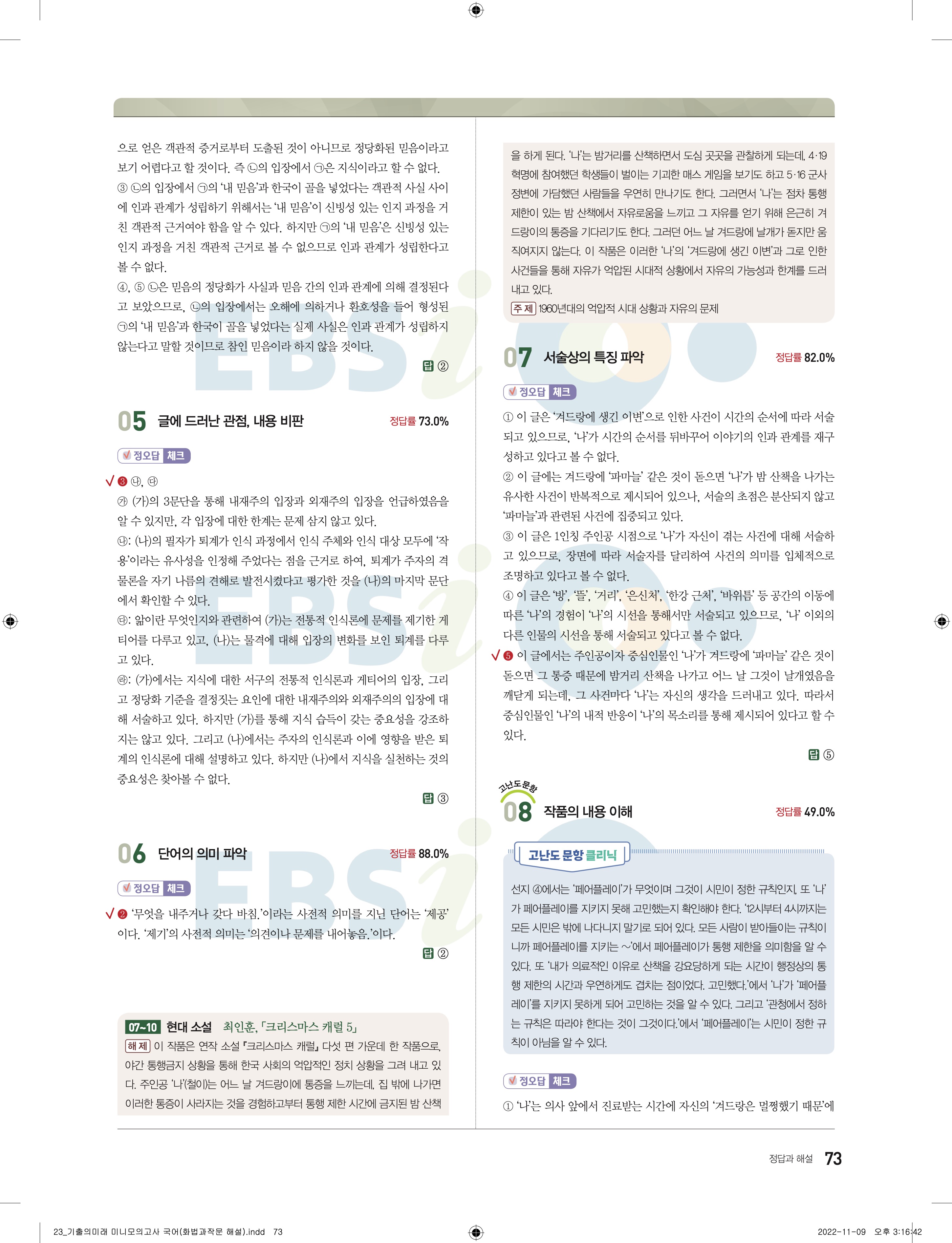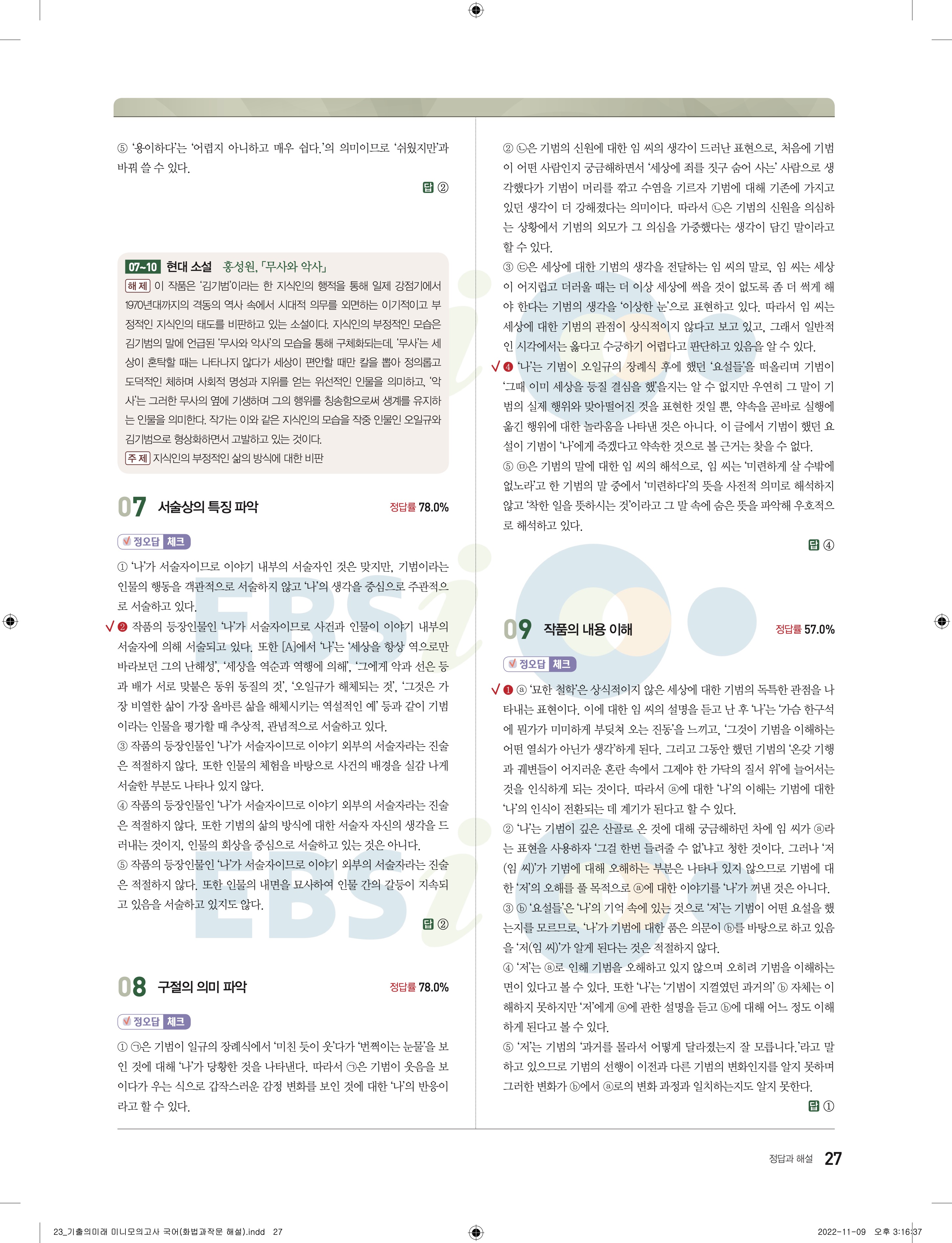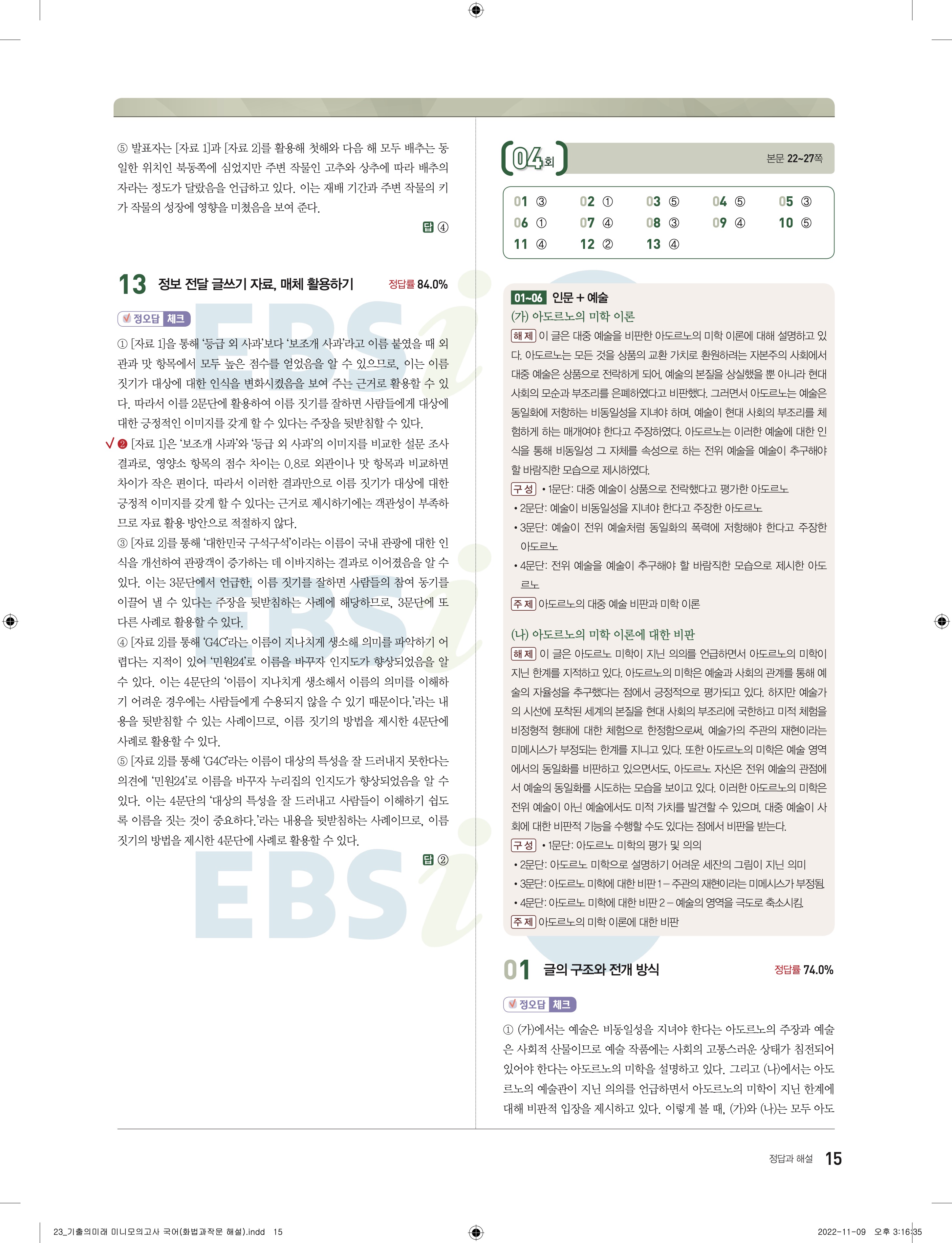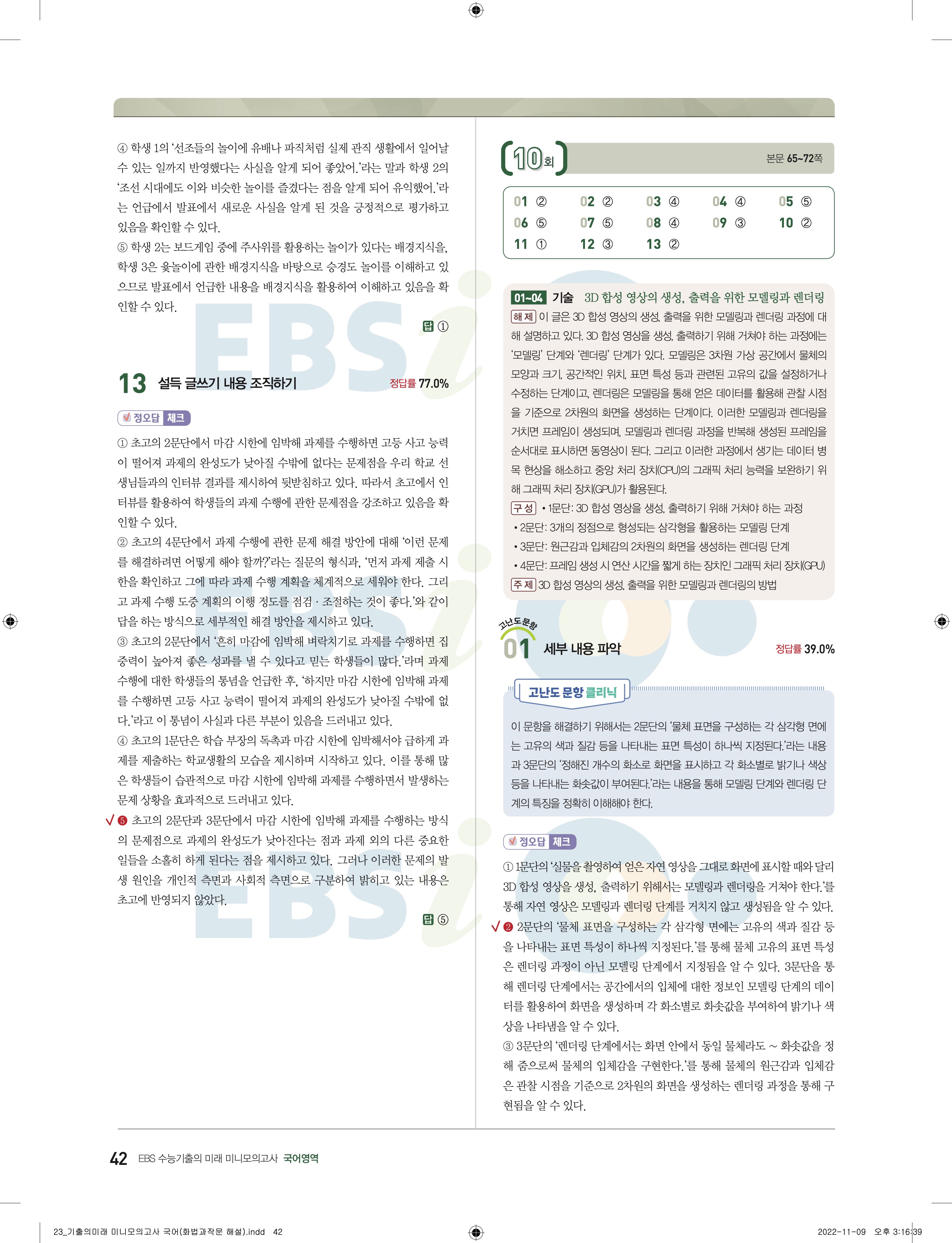 2024 수능기출의미래 미니모의고사 국어영역 독서문학화법과작문 답지.jpeg