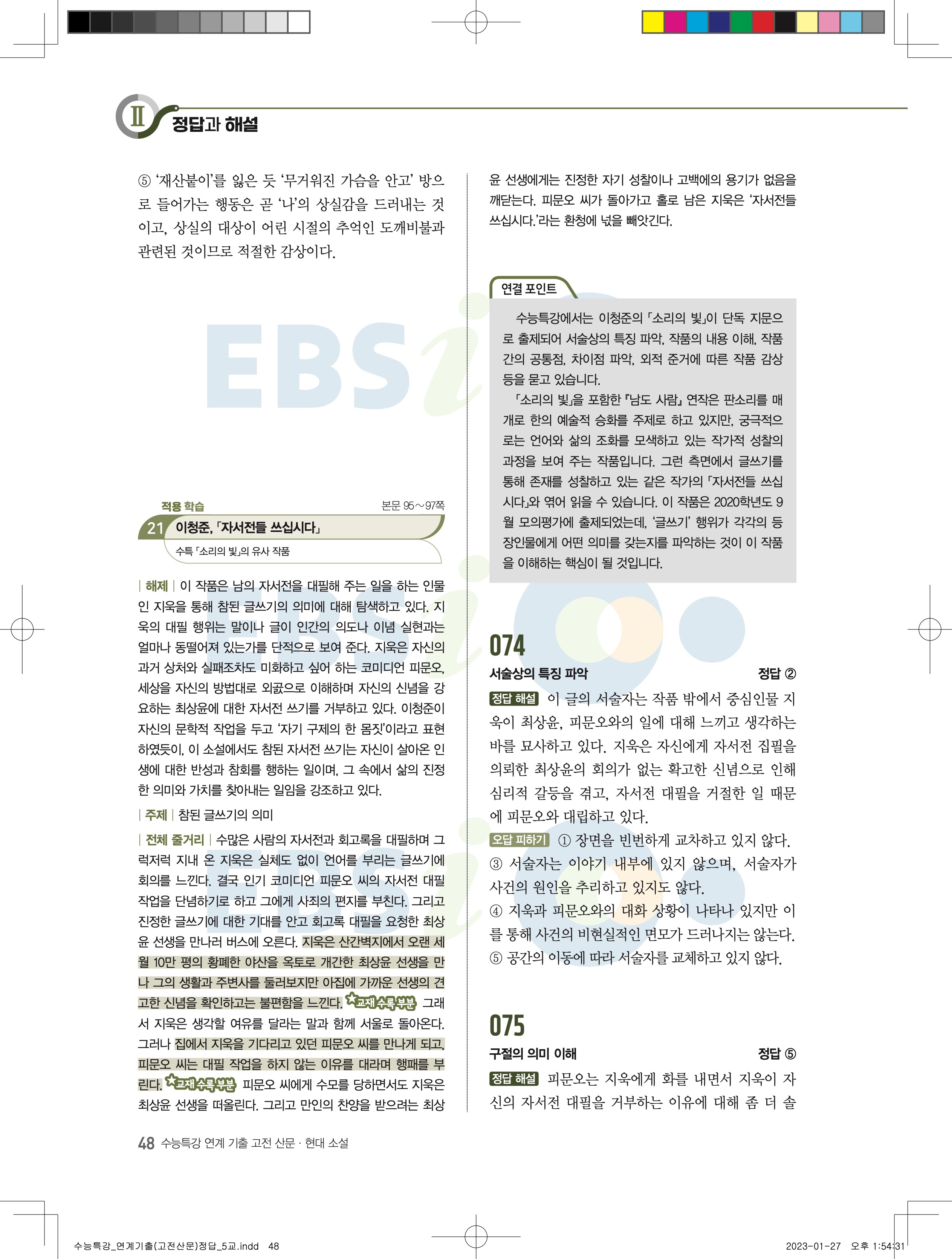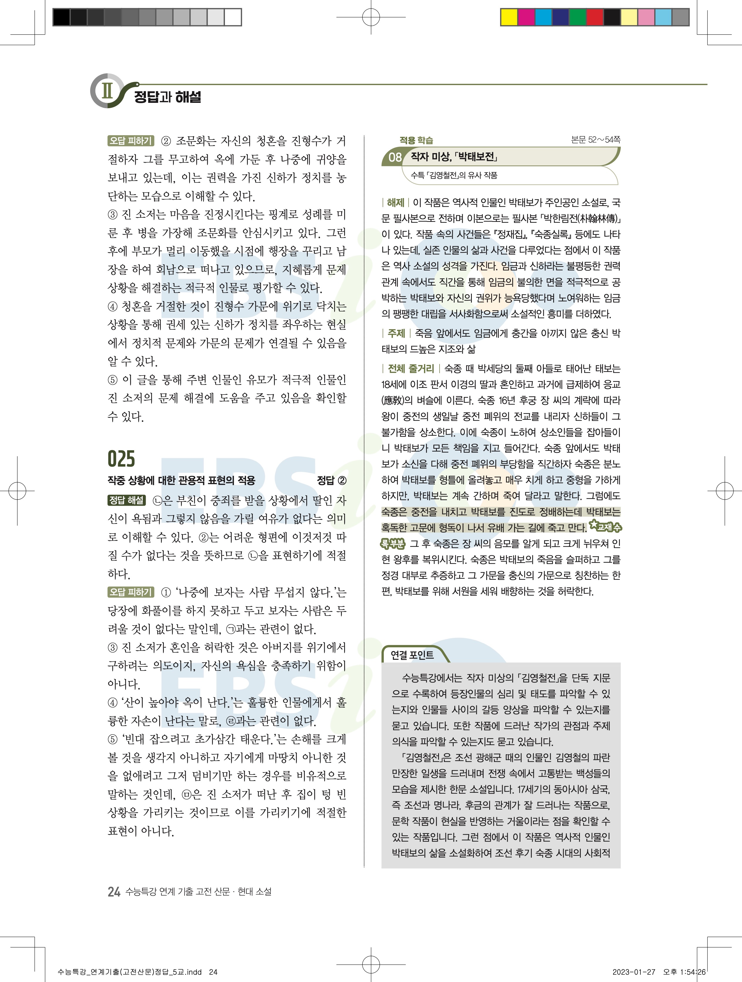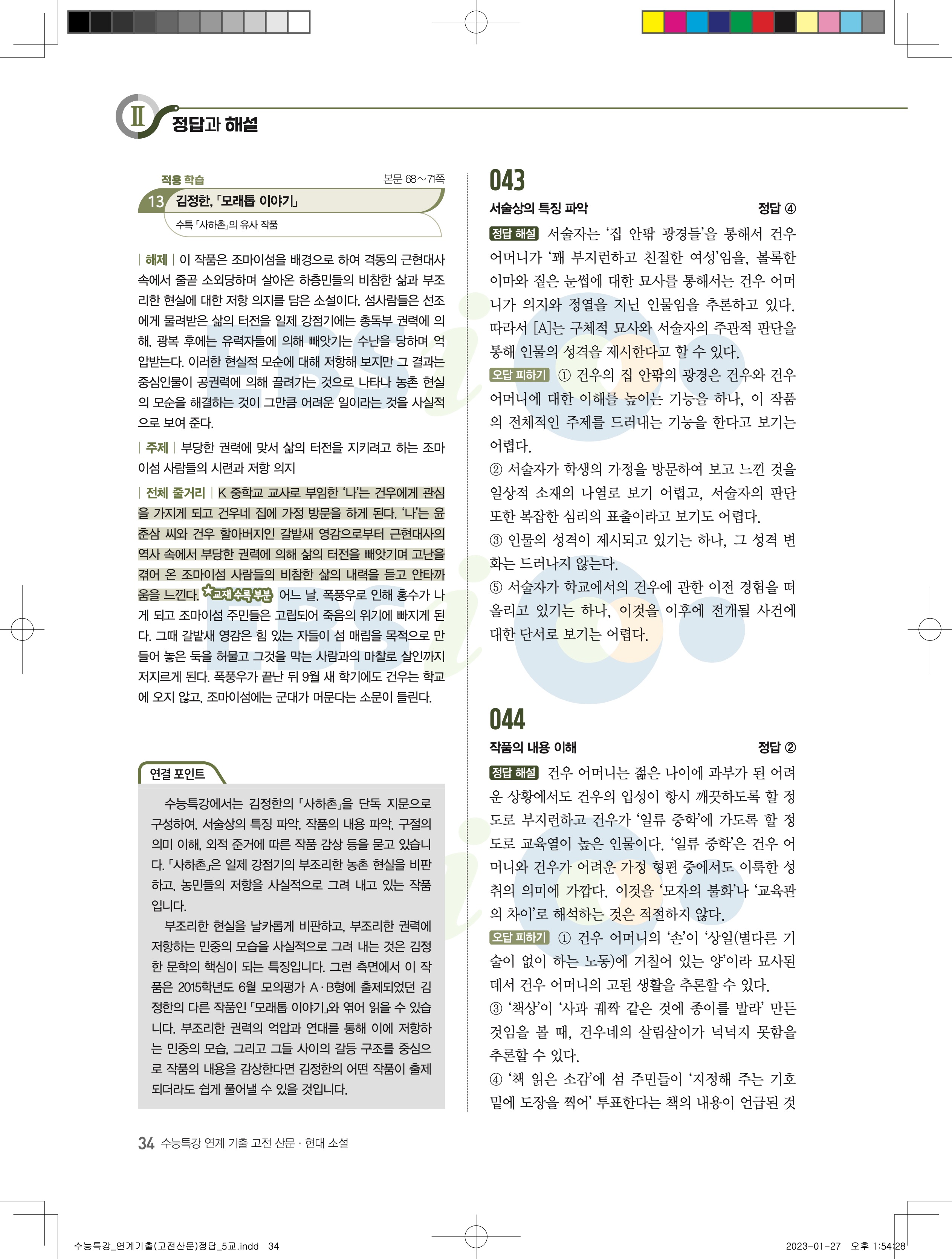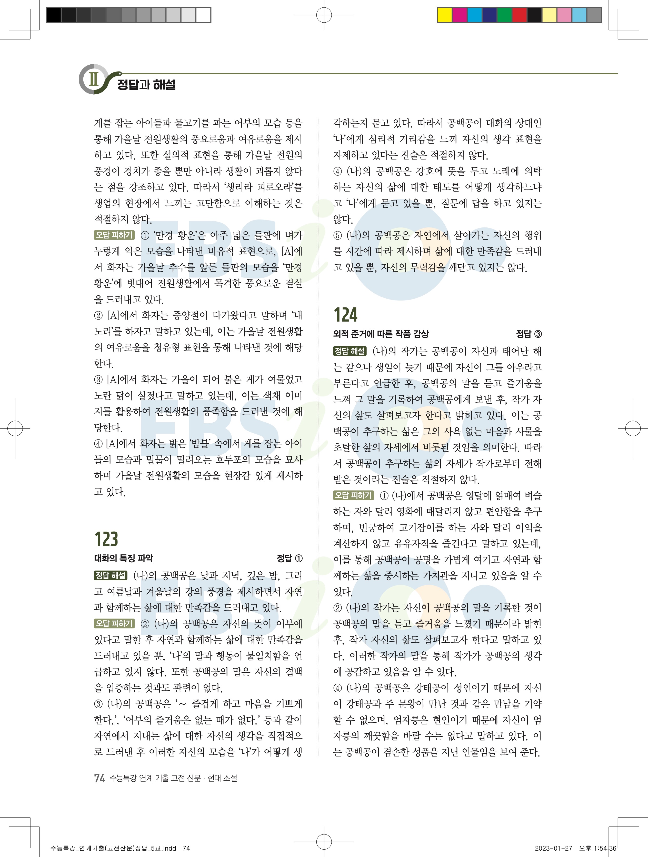 2024 수능특강 연계기출 고전산문현대소설 답지 jpg 모바일최적화 다운없이 바로보는 사진답지