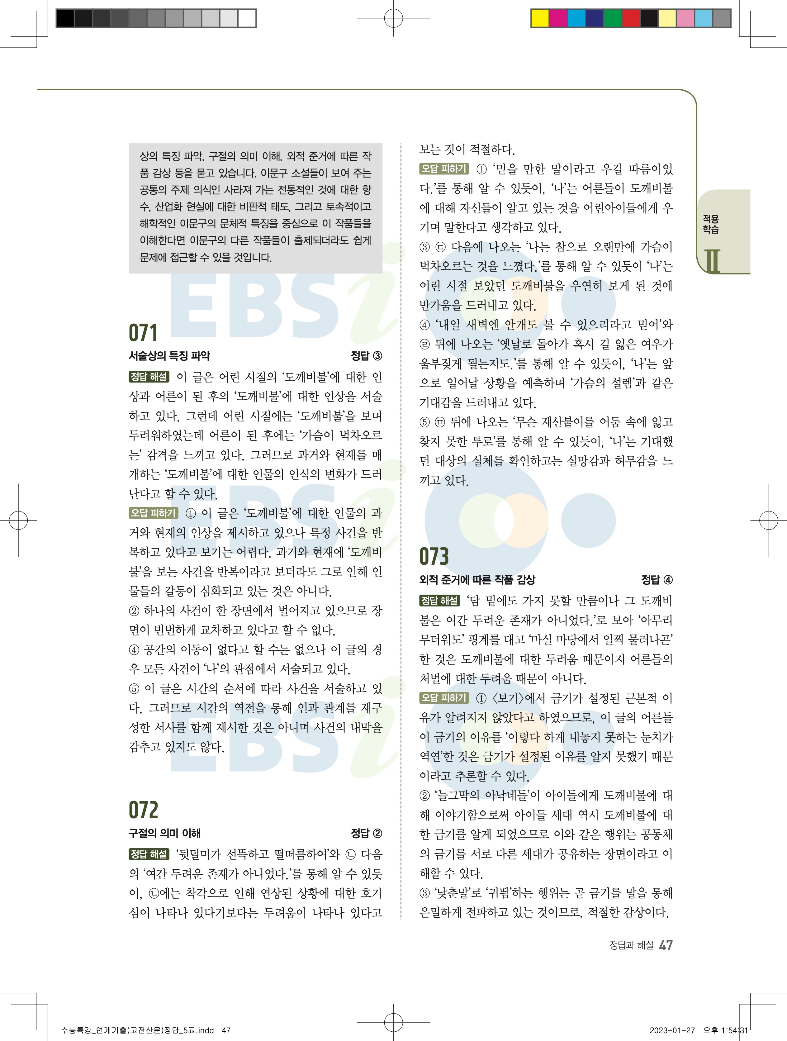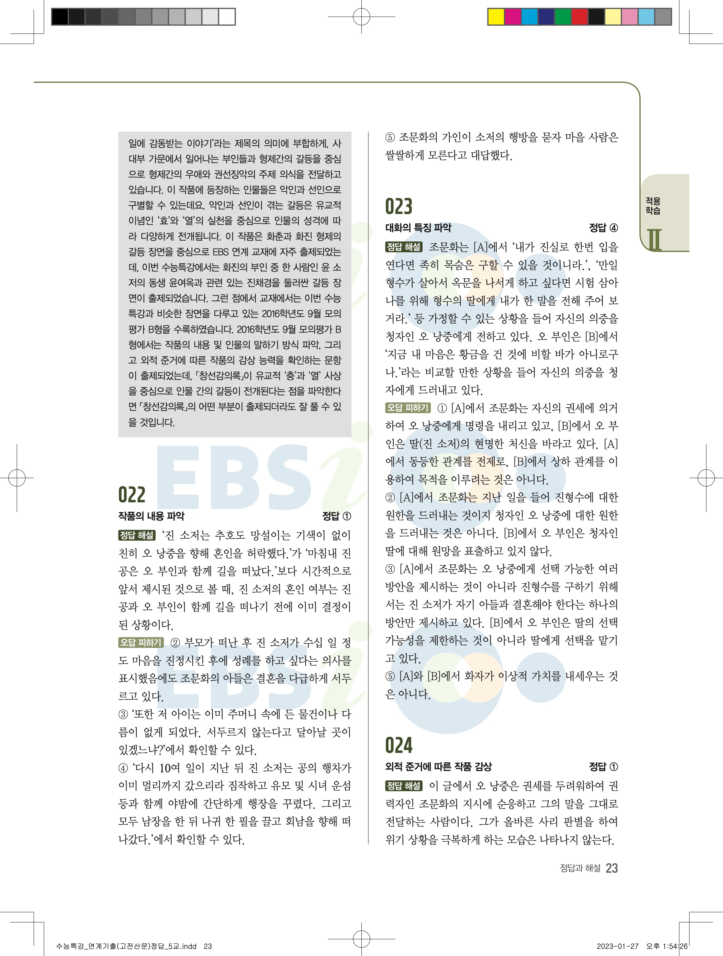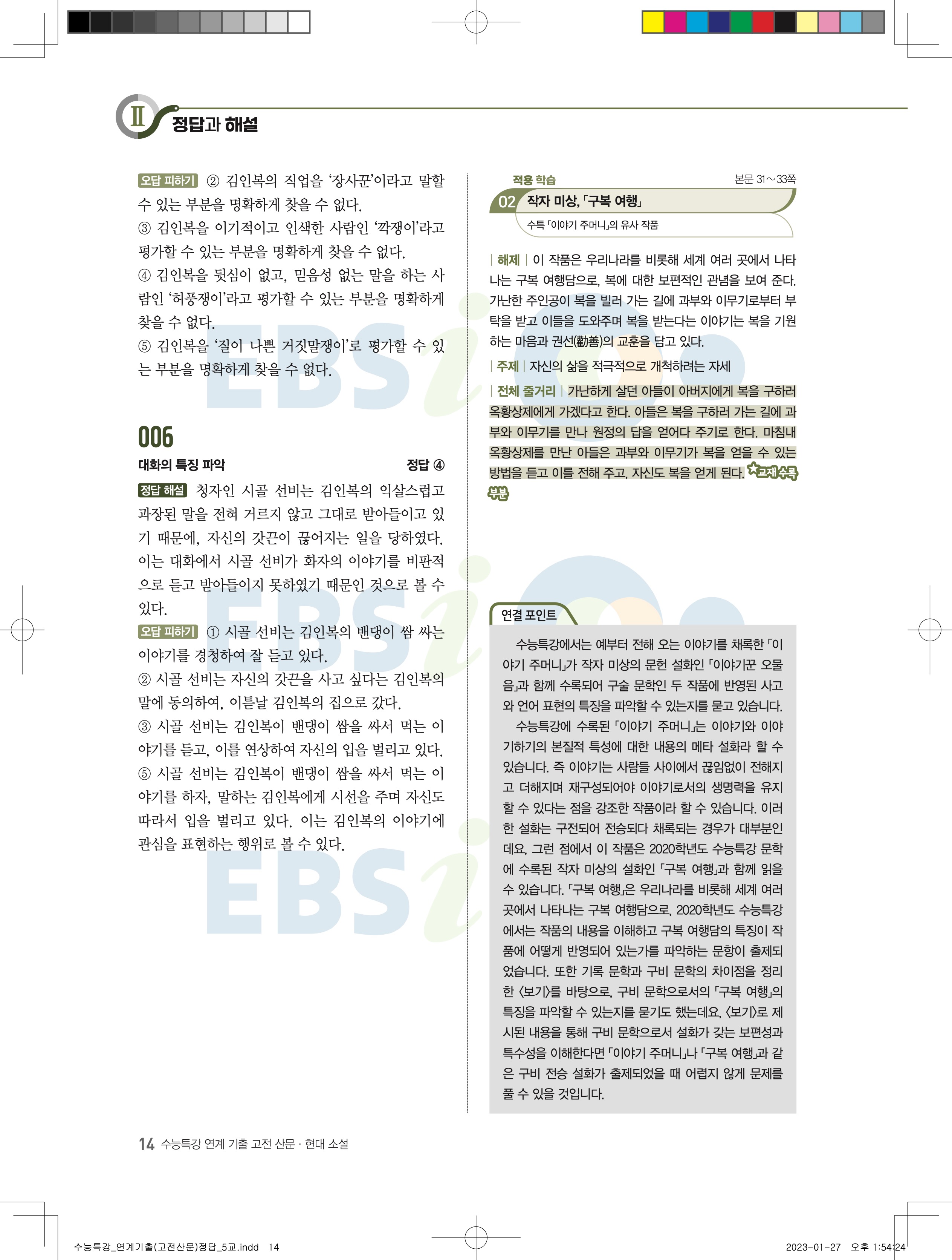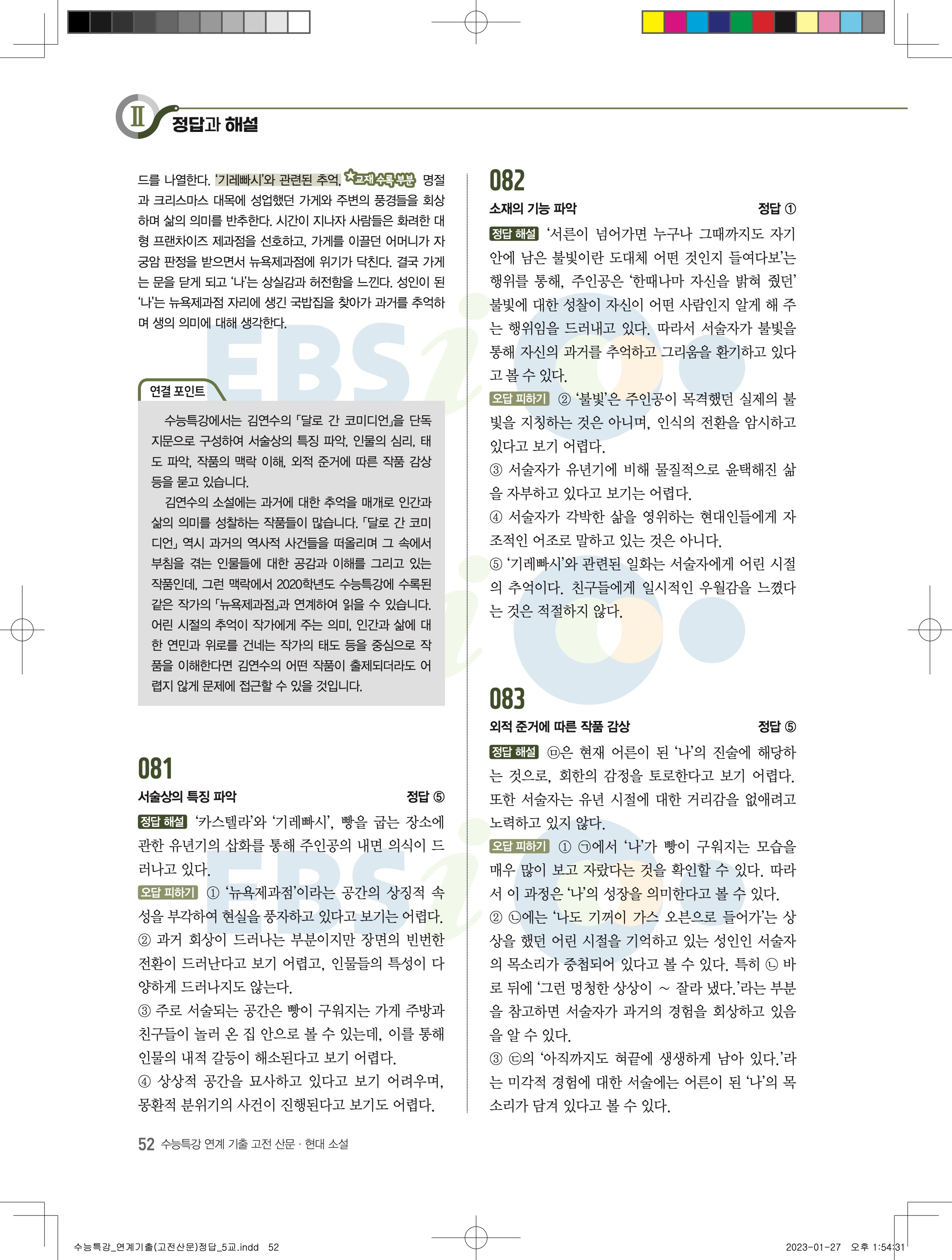 2024 수능특강 연계기출 고전산문현대소설 답지 jpg 모바일최적화 다운없이 바로보는 사진답지