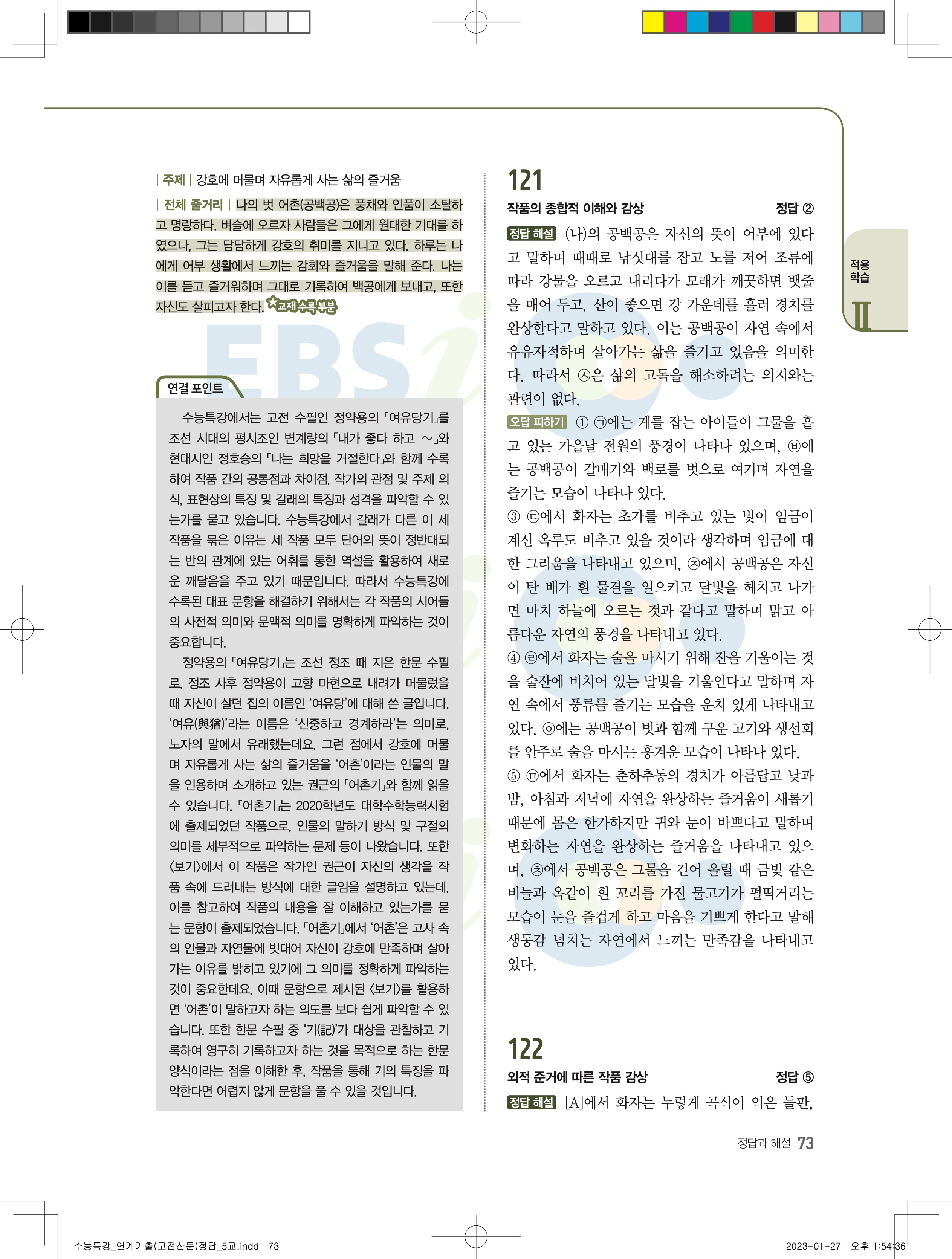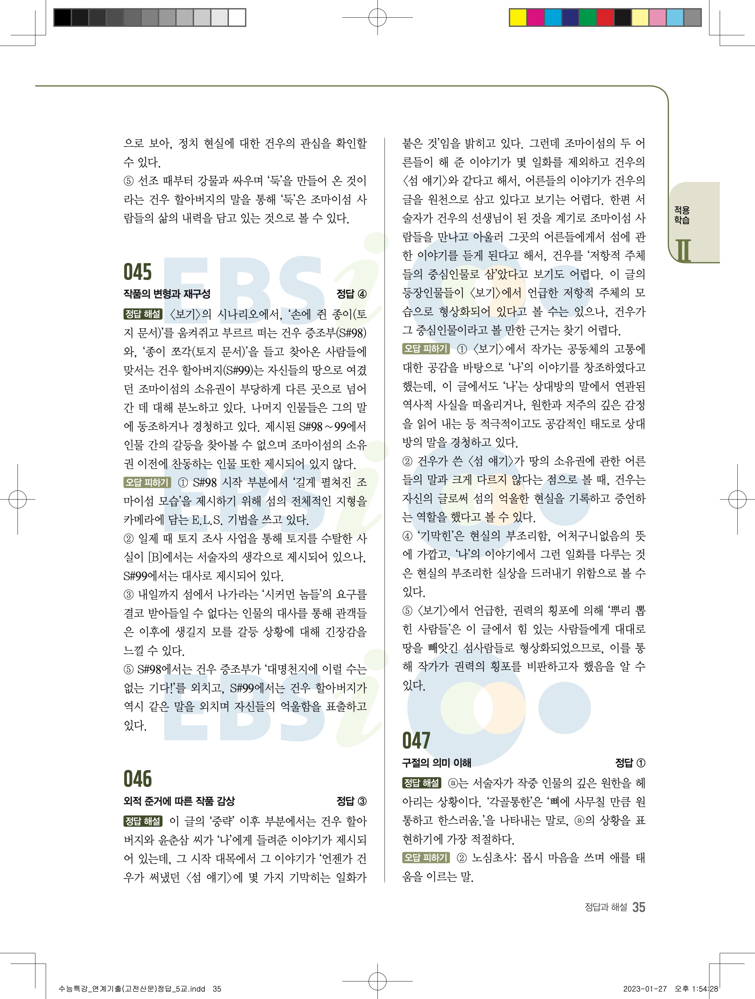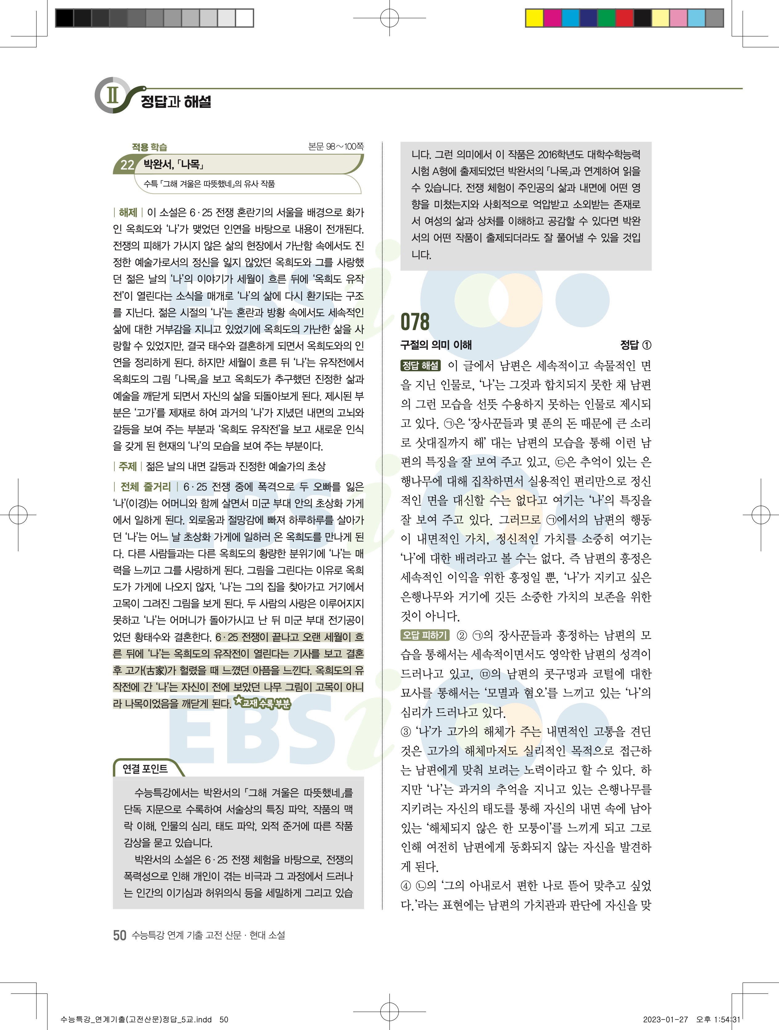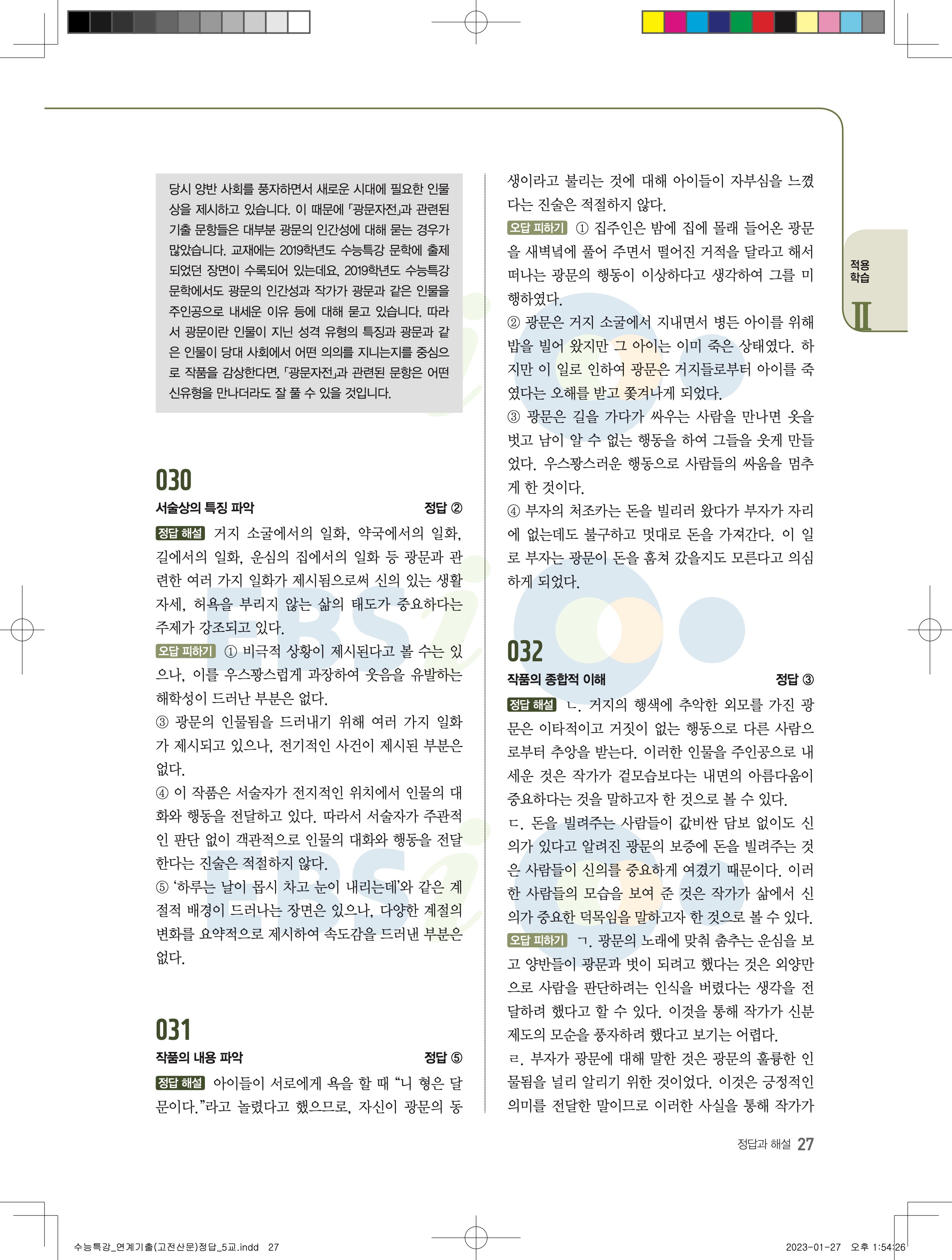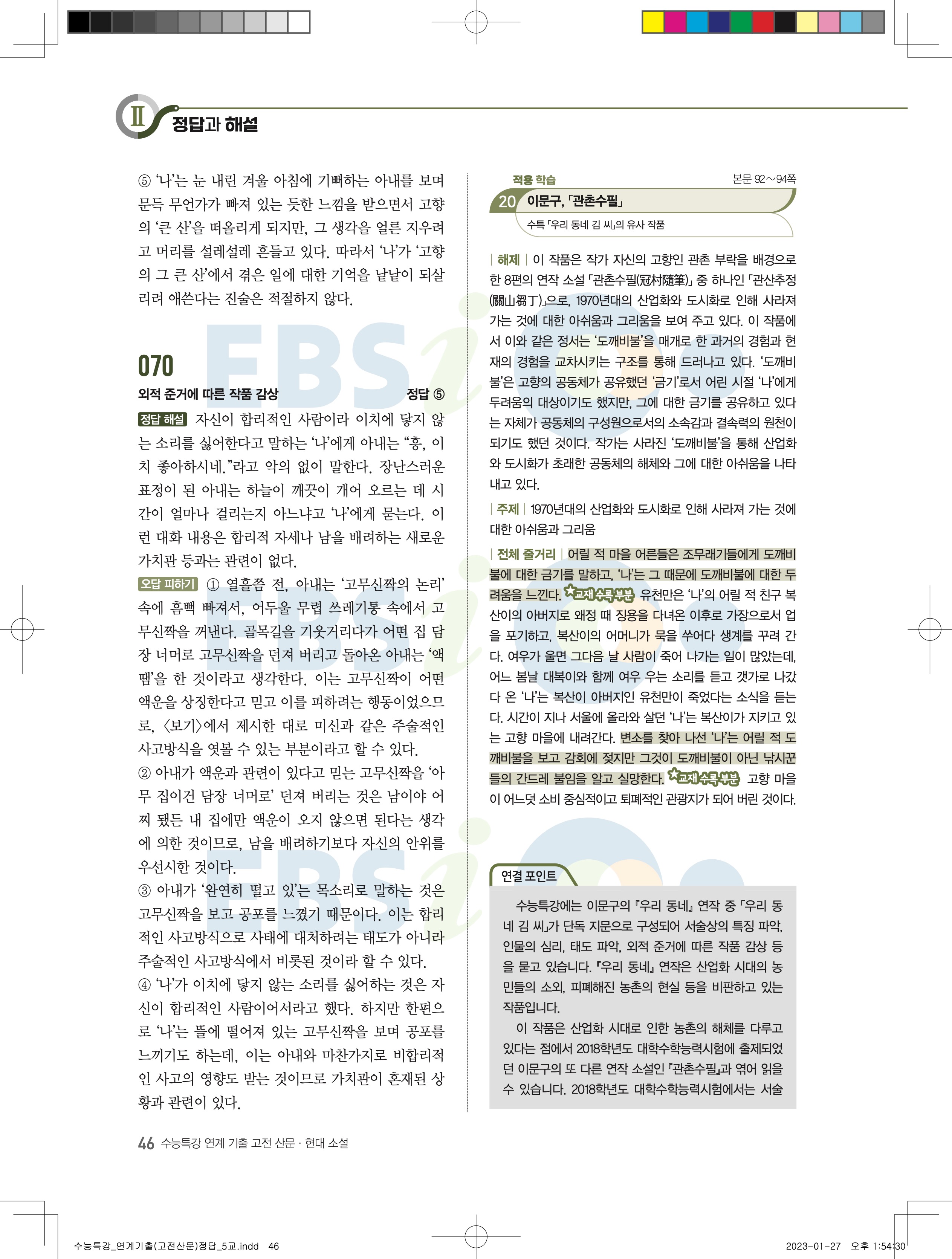 2024 수능특강 연계기출 고전산문현대소설 답지 jpg 모바일최적화 다운없이 바로보는 사진답지