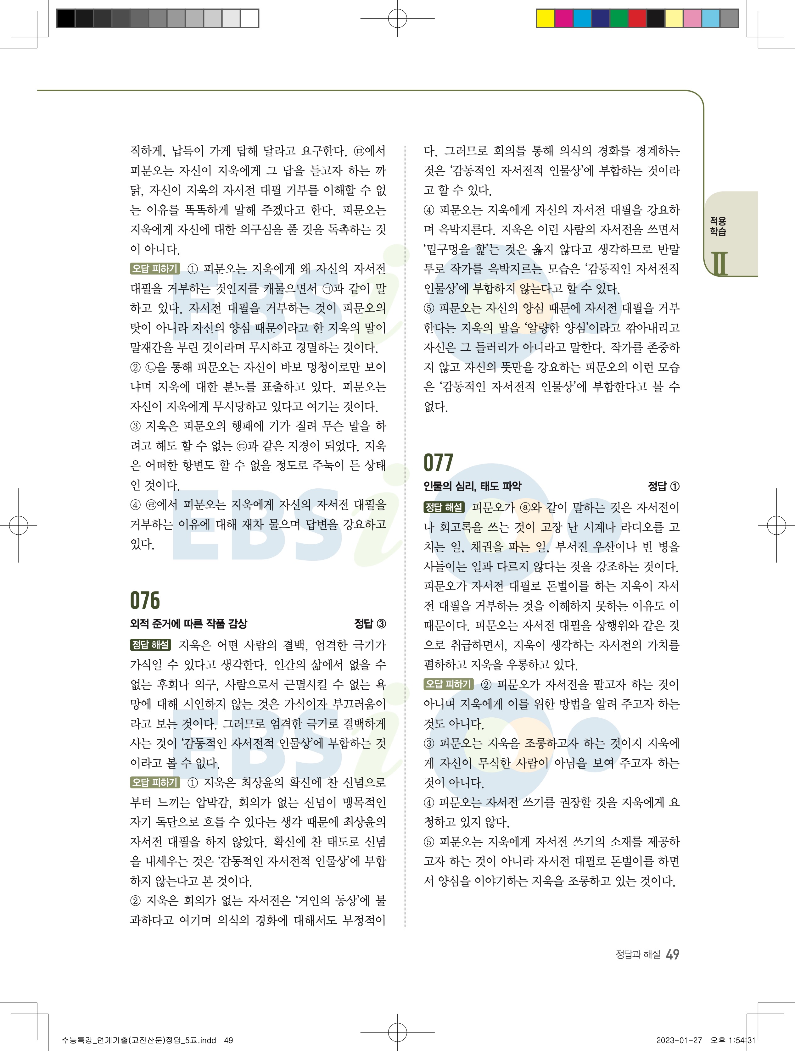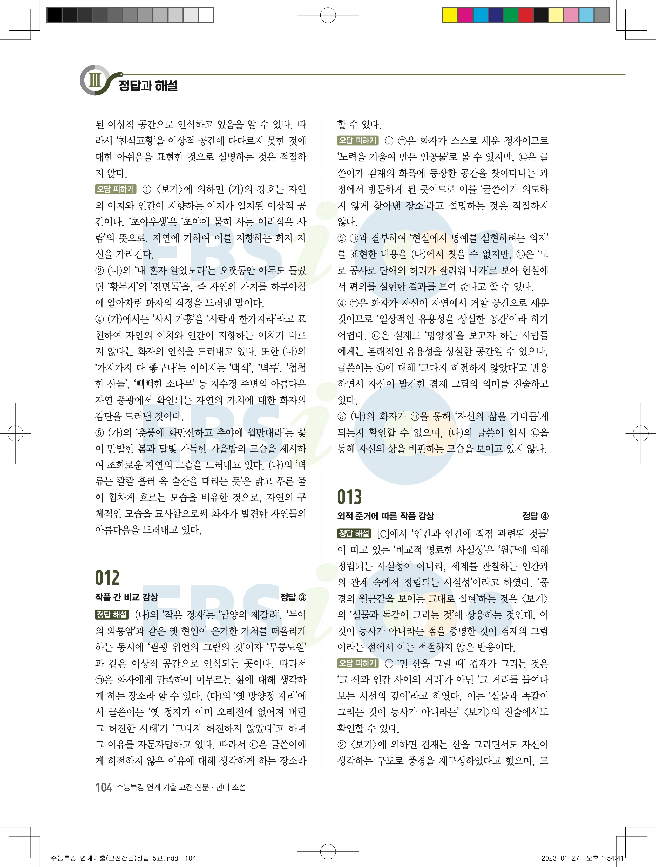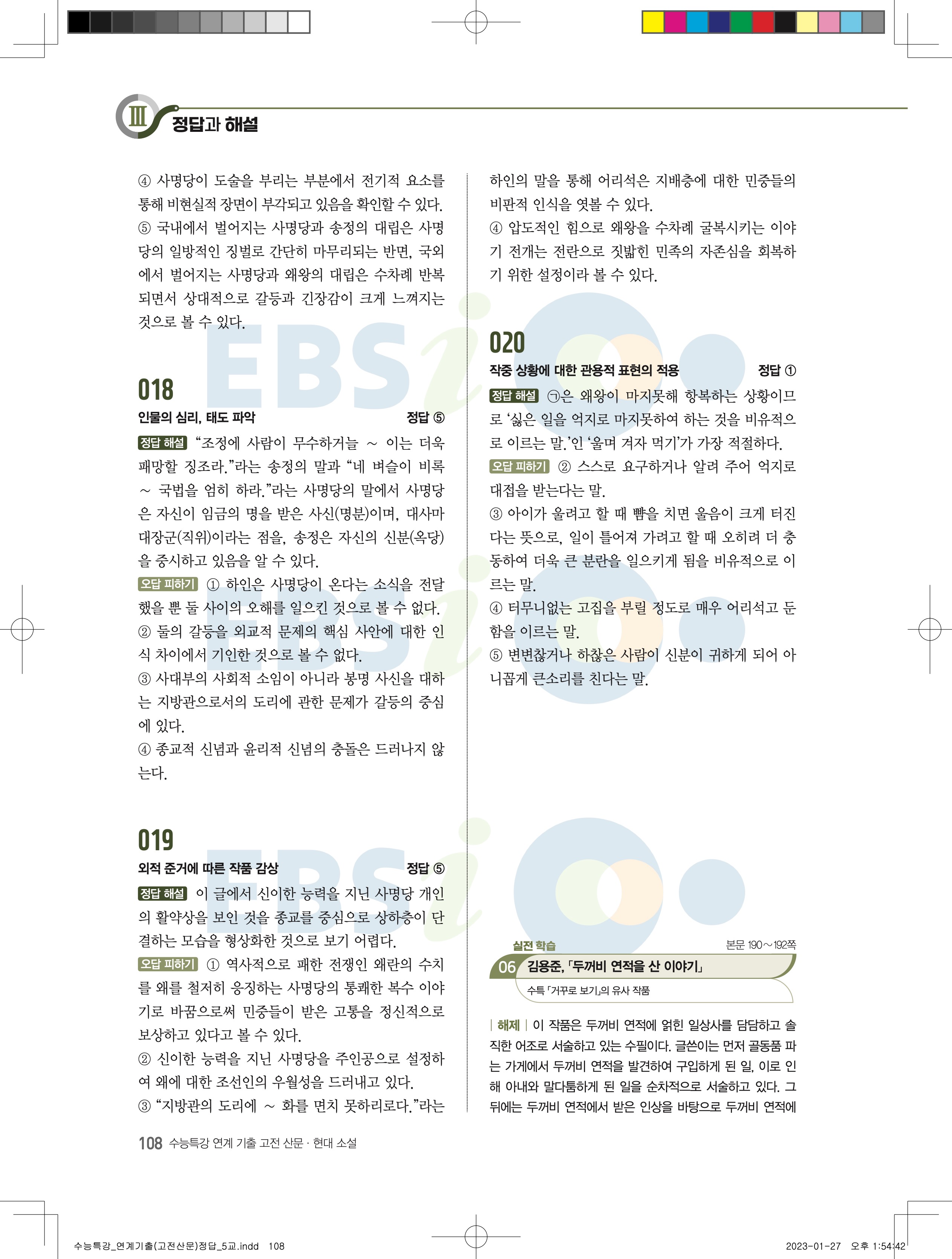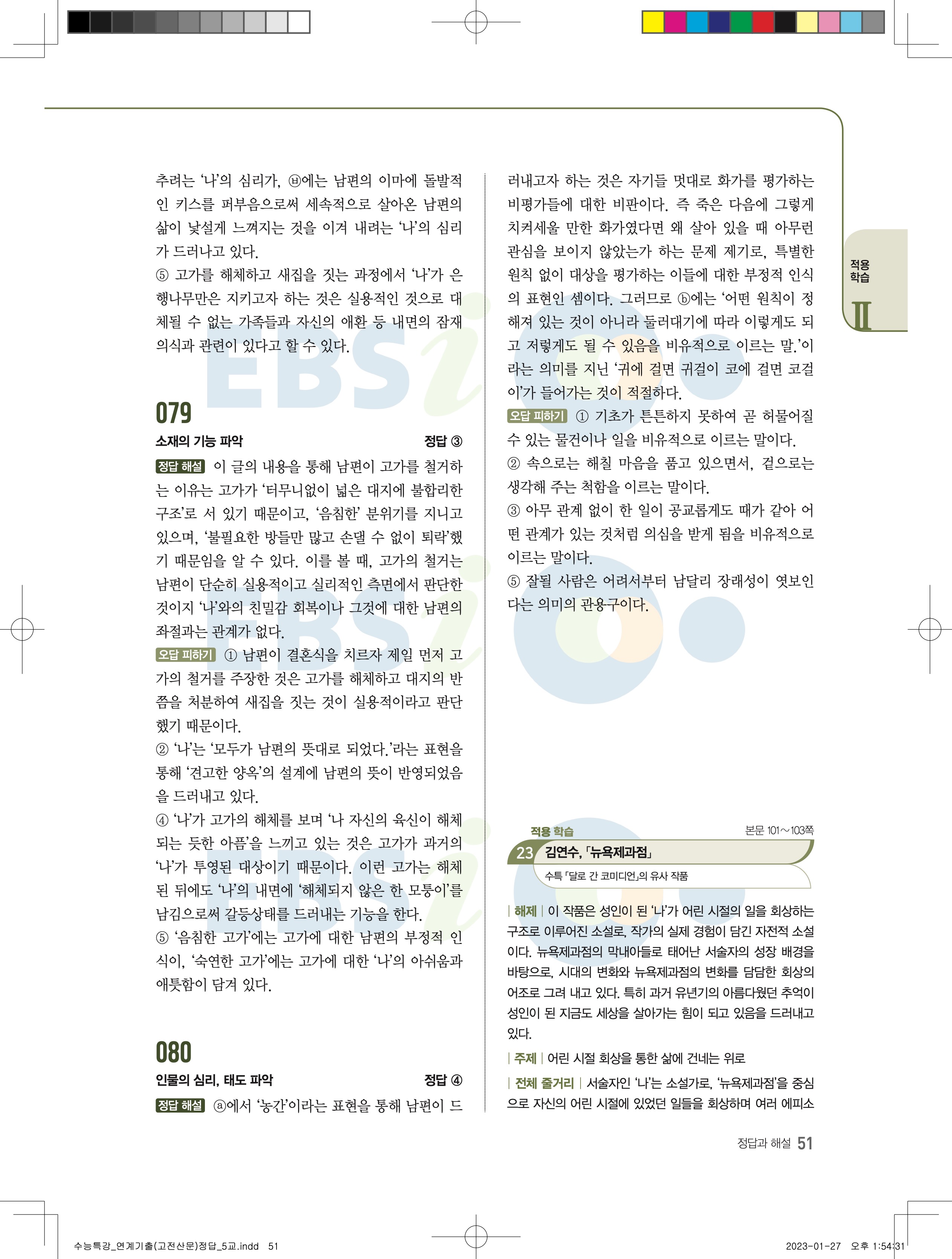 2024 수능특강 연계기출 고전산문현대소설 답지 jpg 모바일최적화 다운없이 바로보는 사진답지