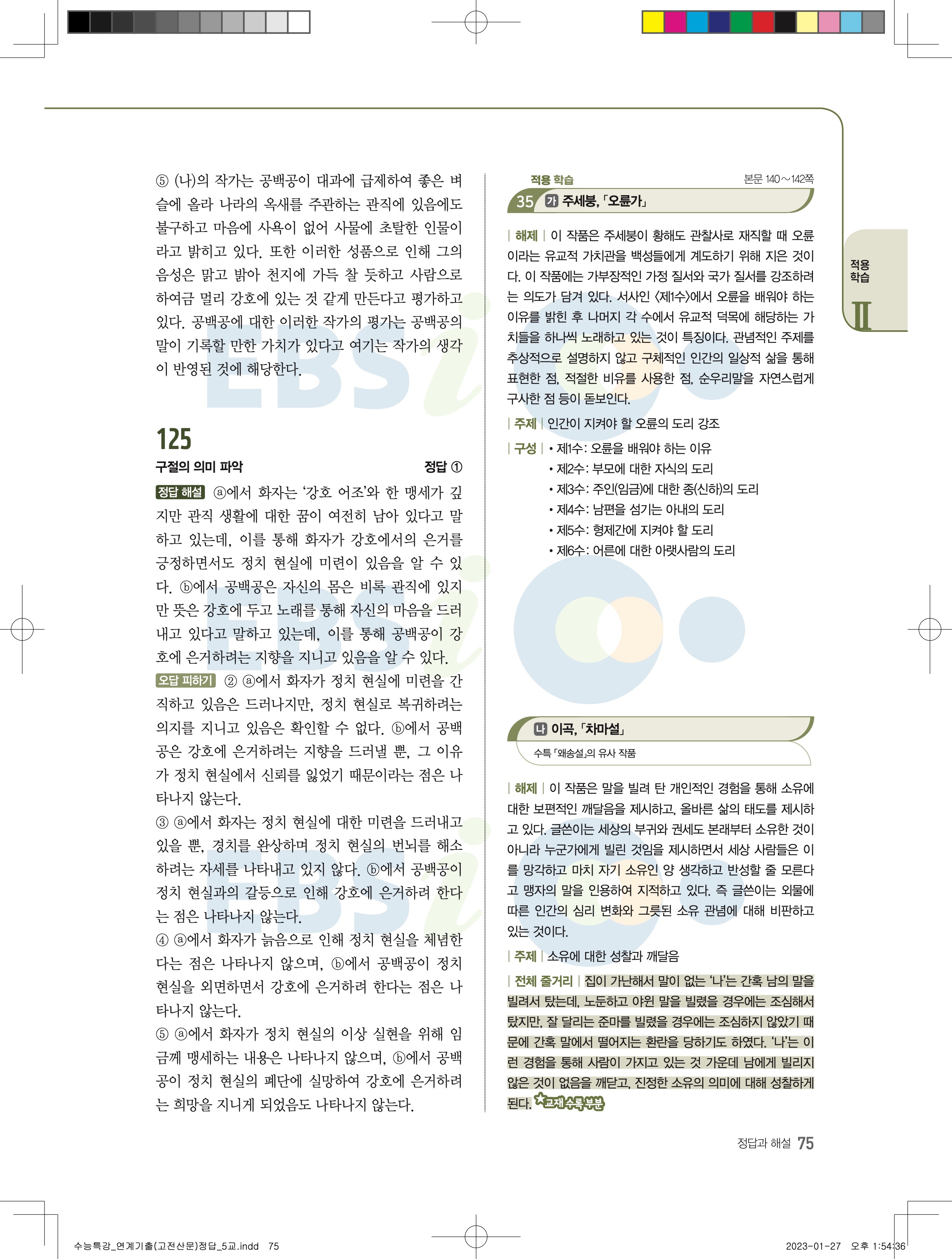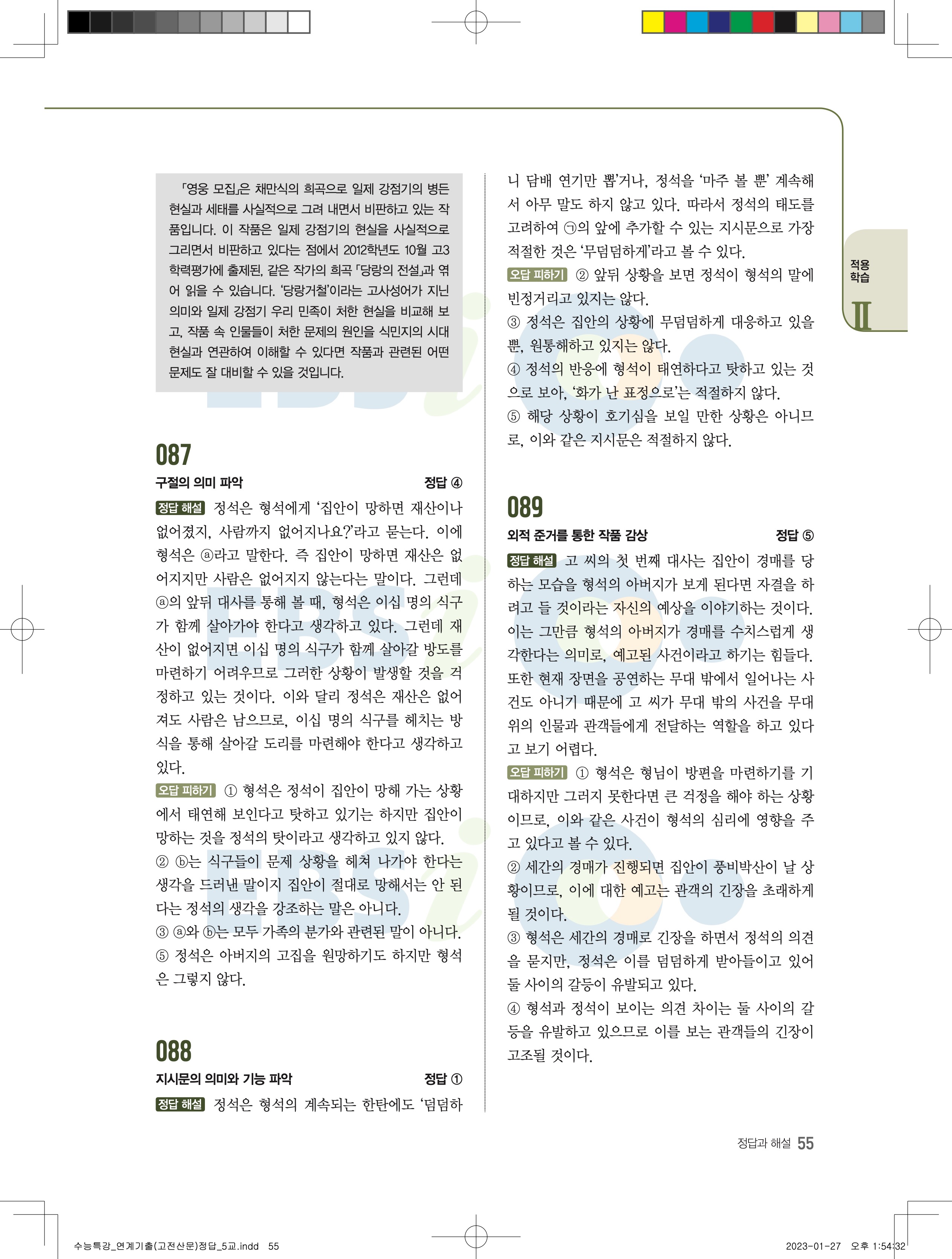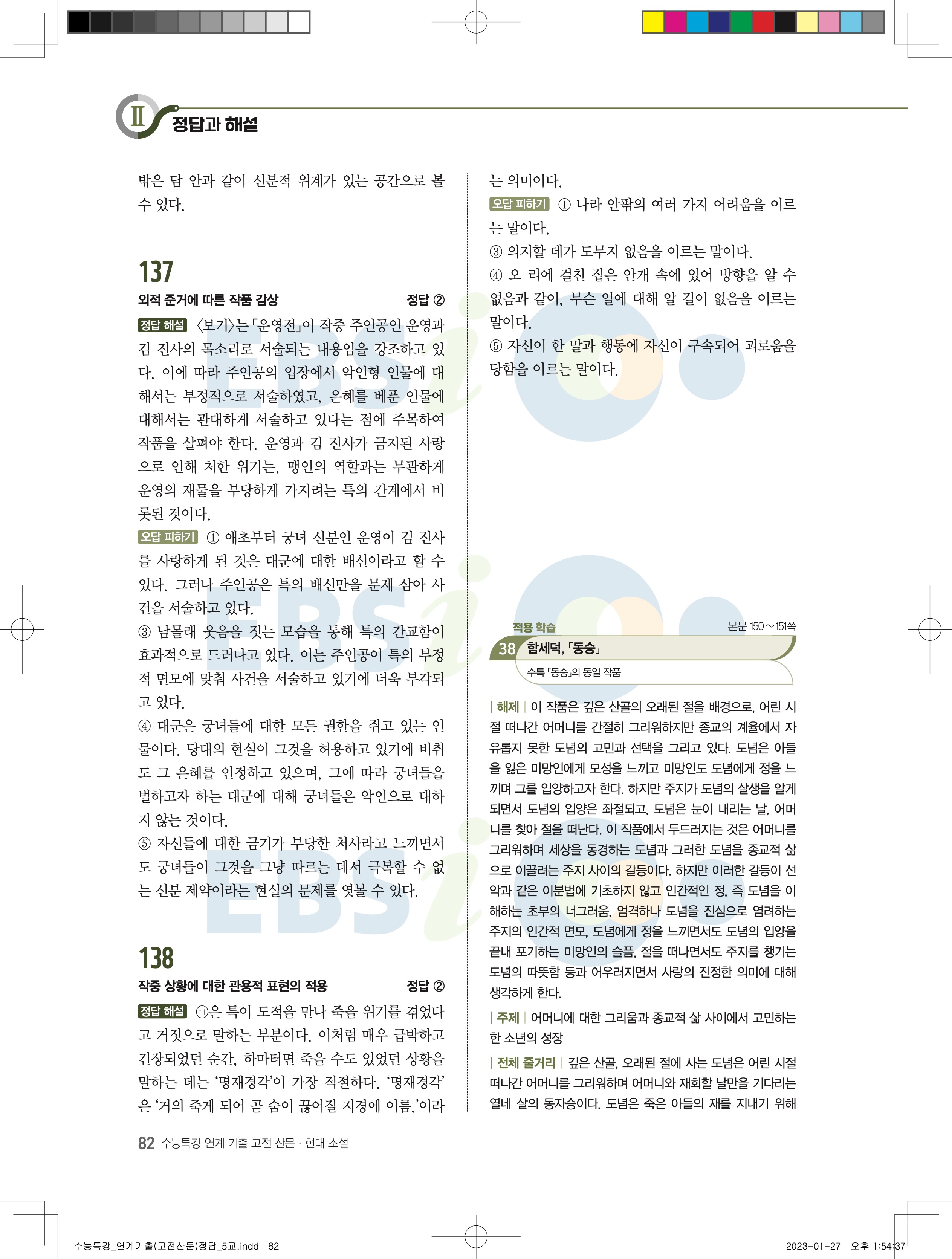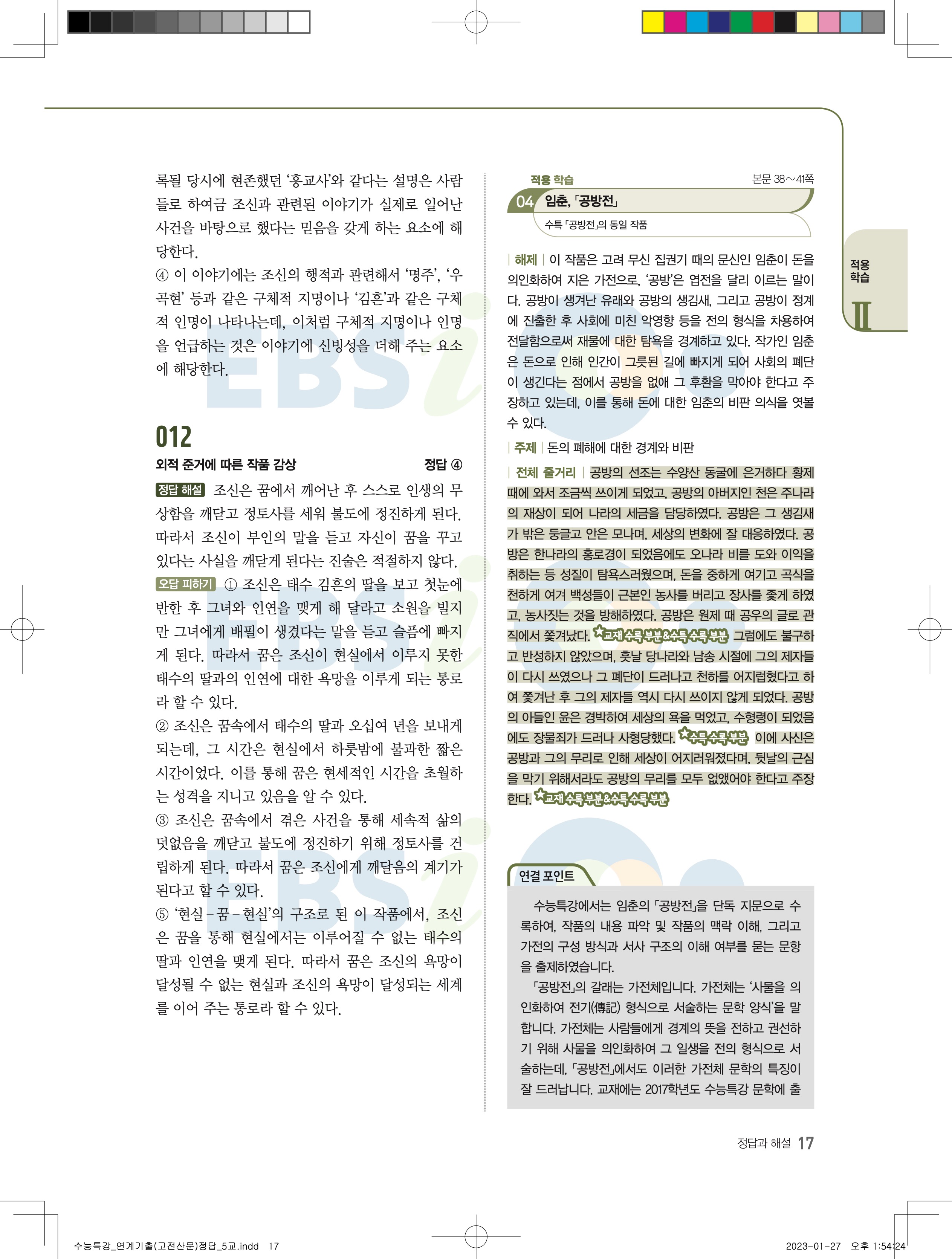 2024 수능특강 연계기출 고전산문현대소설 답지 jpg 모바일최적화 다운없이 바로보는 사진답지