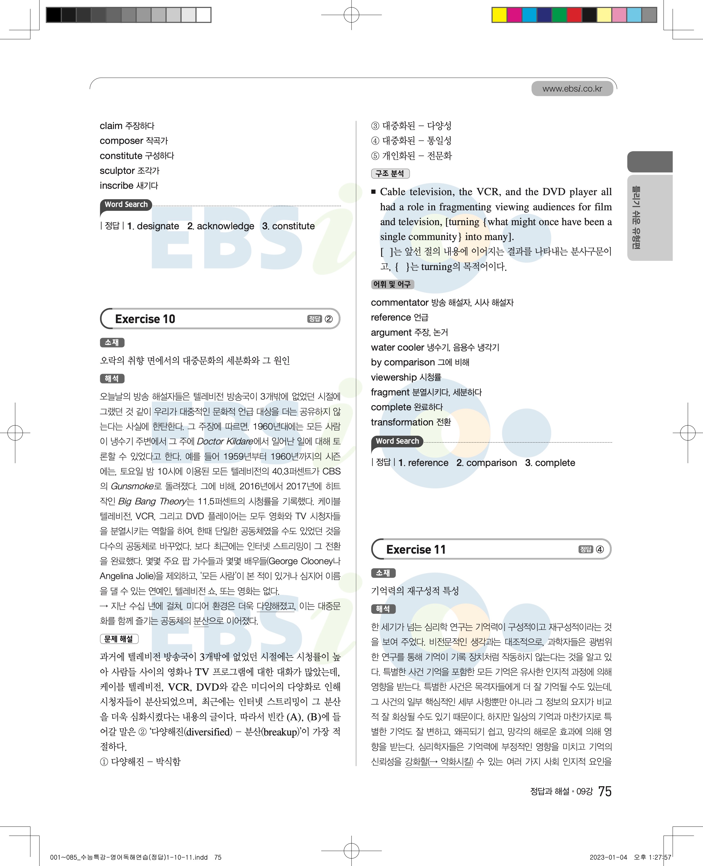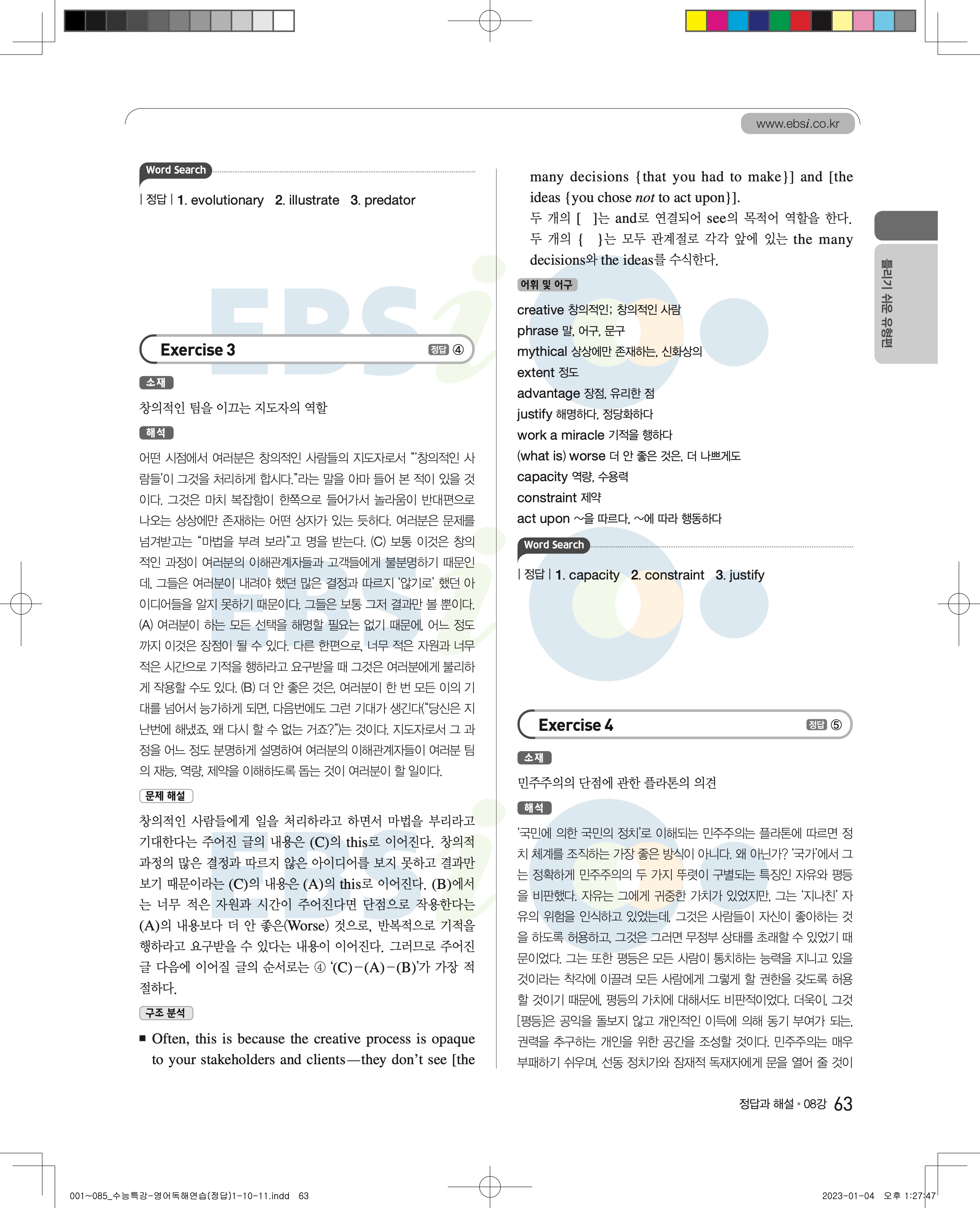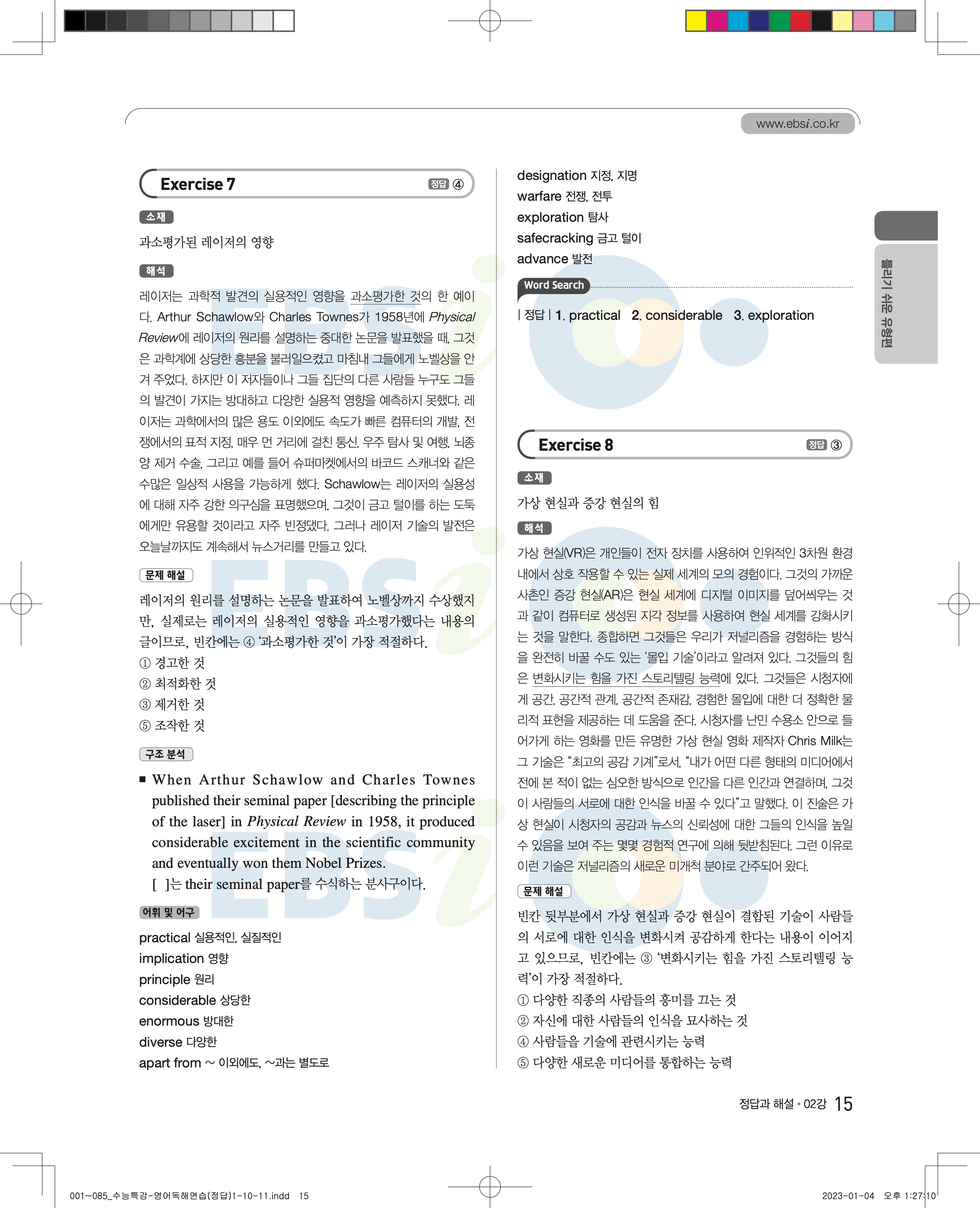 2024 수능특강 영어영역 영어독해연습 답지 jpg 모바일최적화 다운없이 바로보는 사진답지