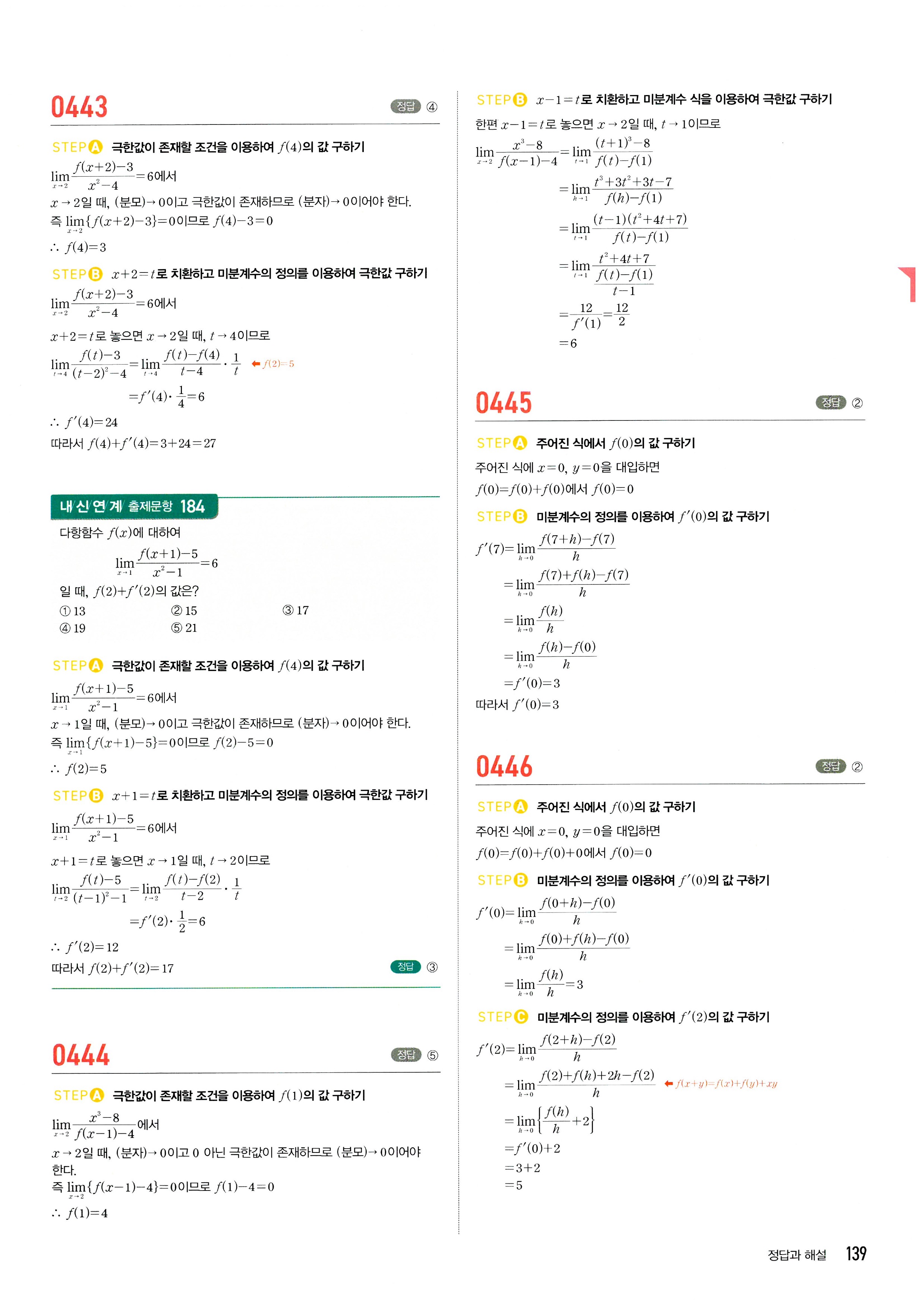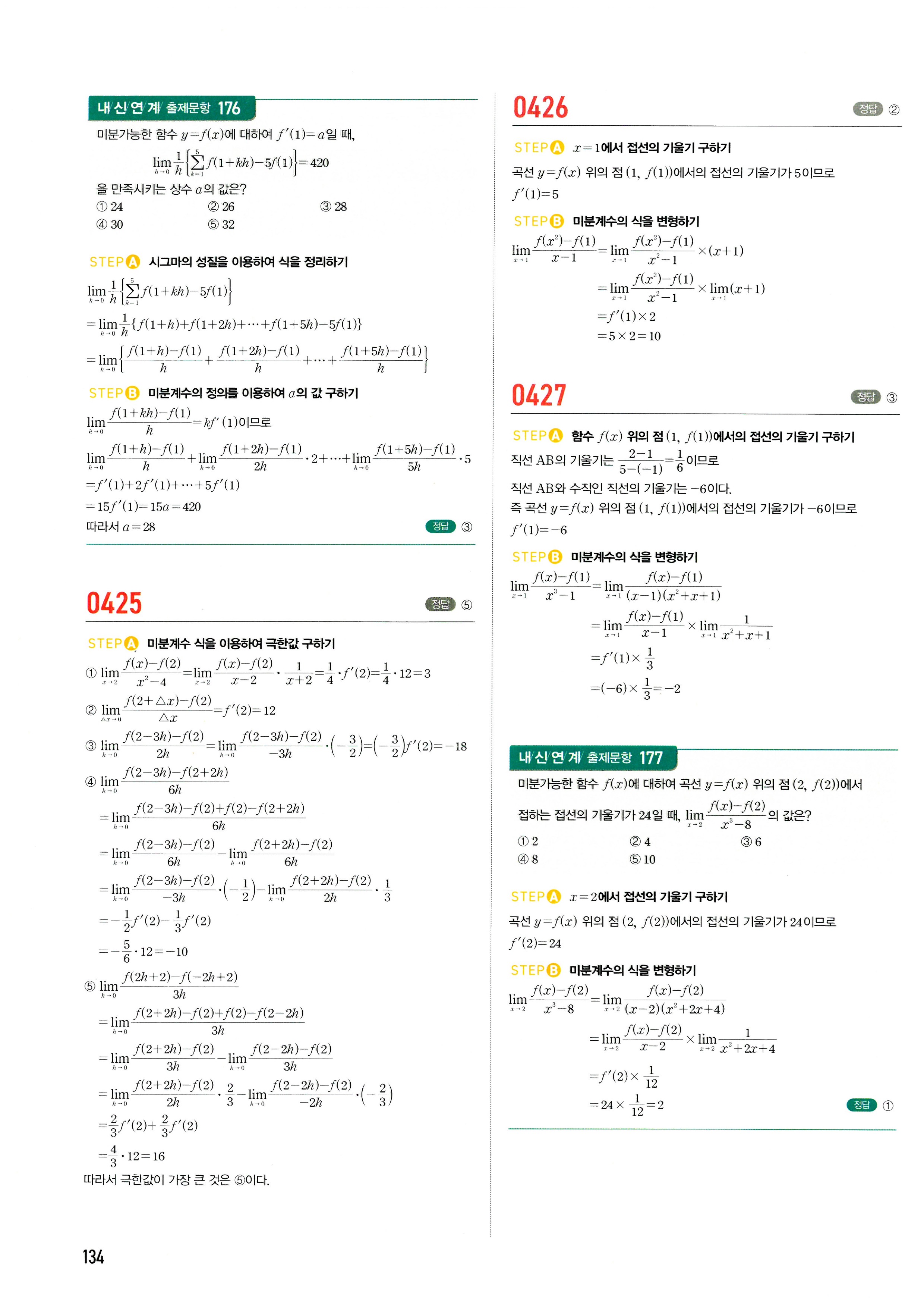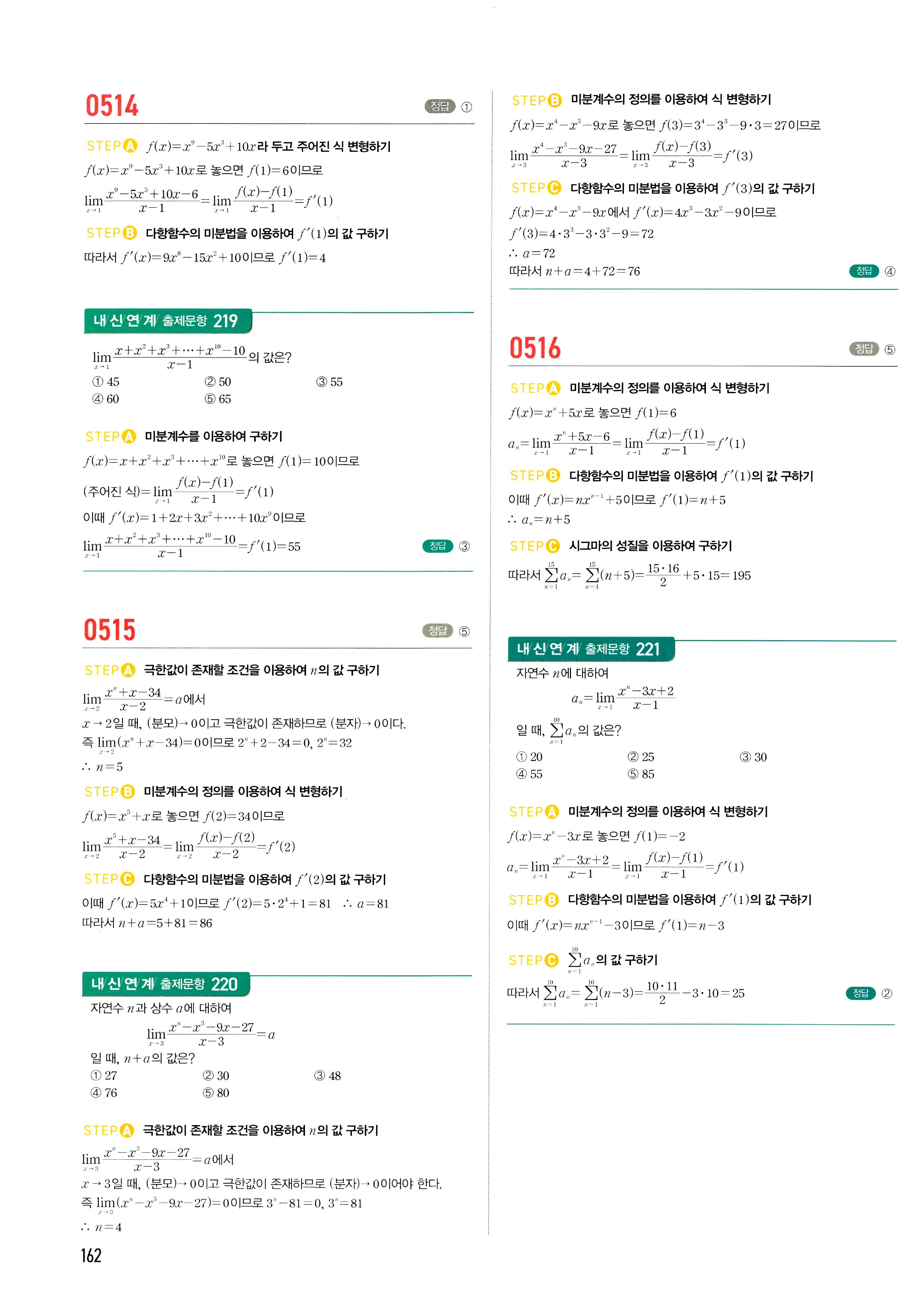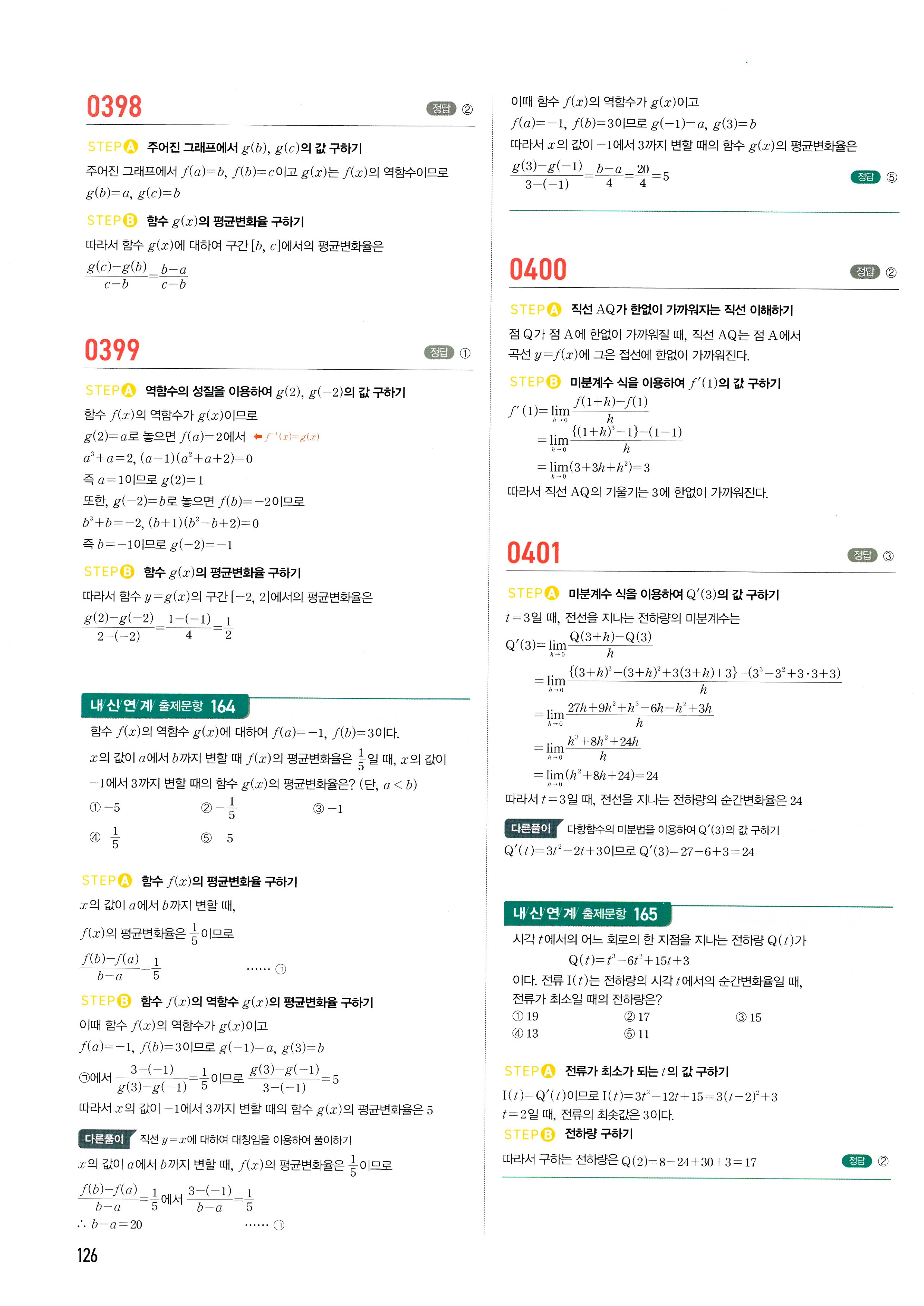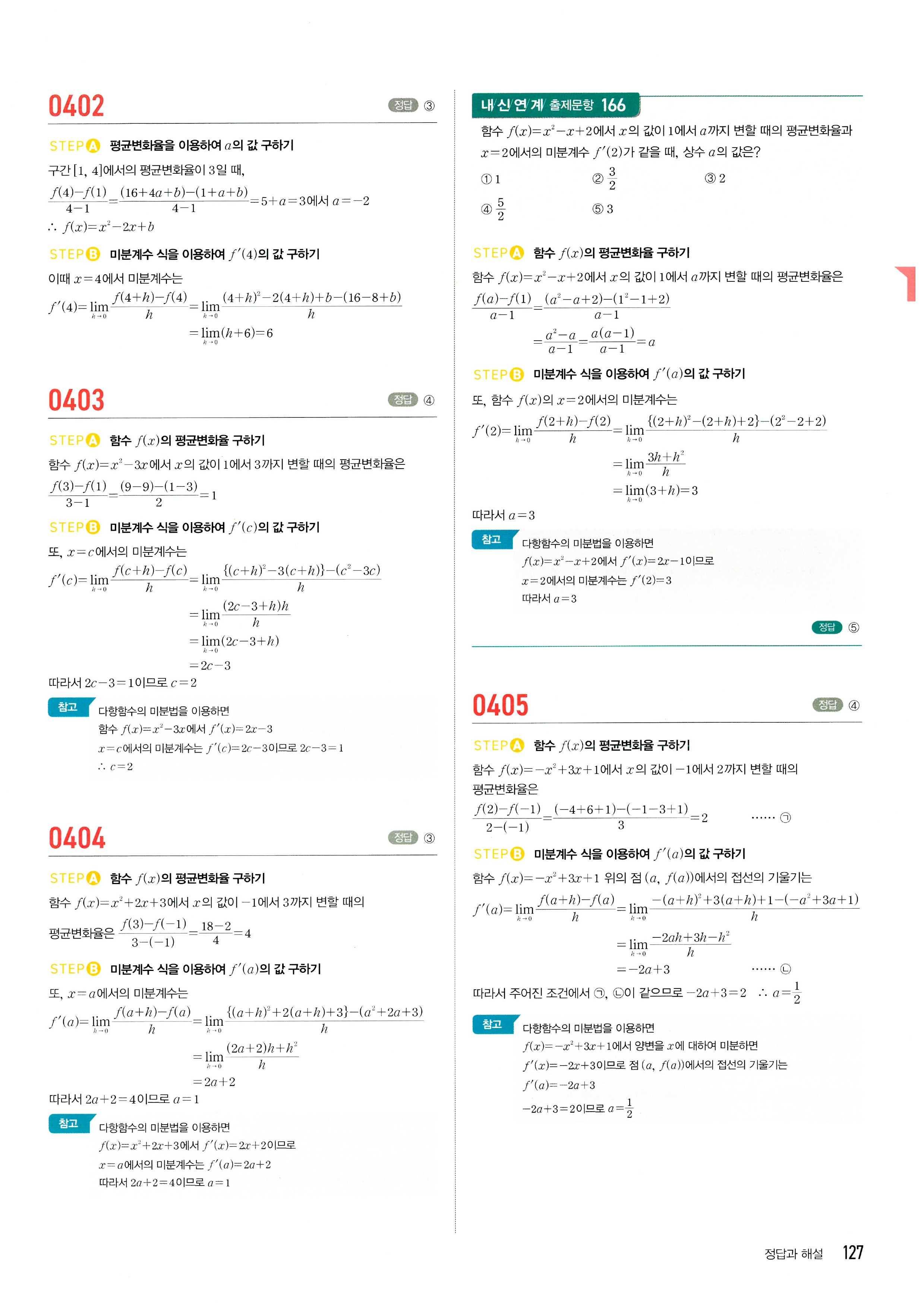 마플시너지 수학2 답지 2-1미분계수와도함수