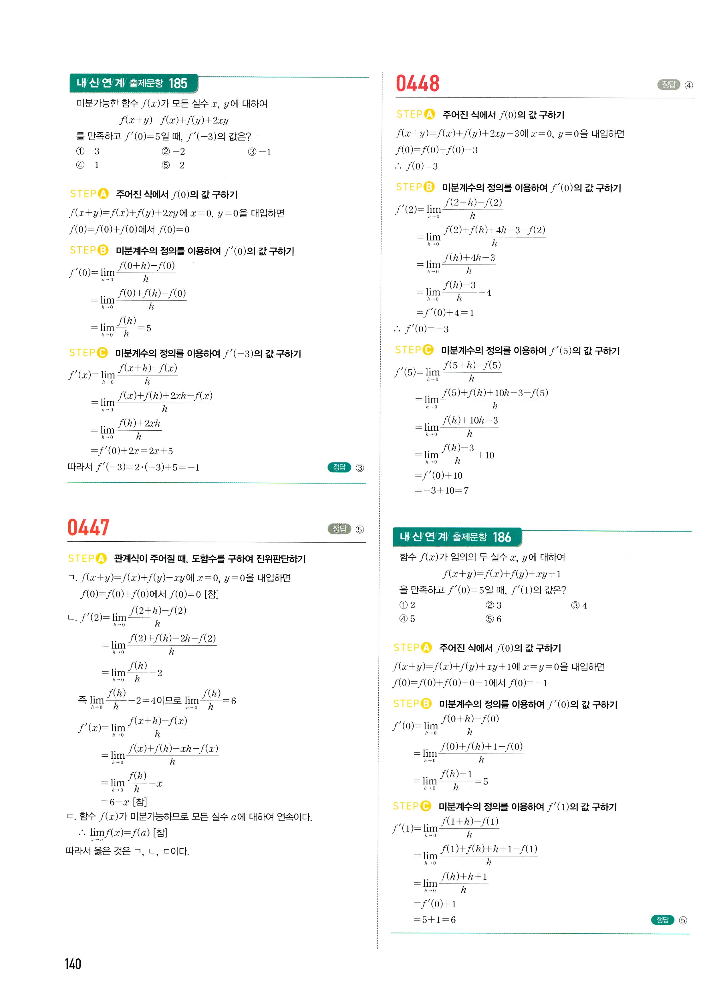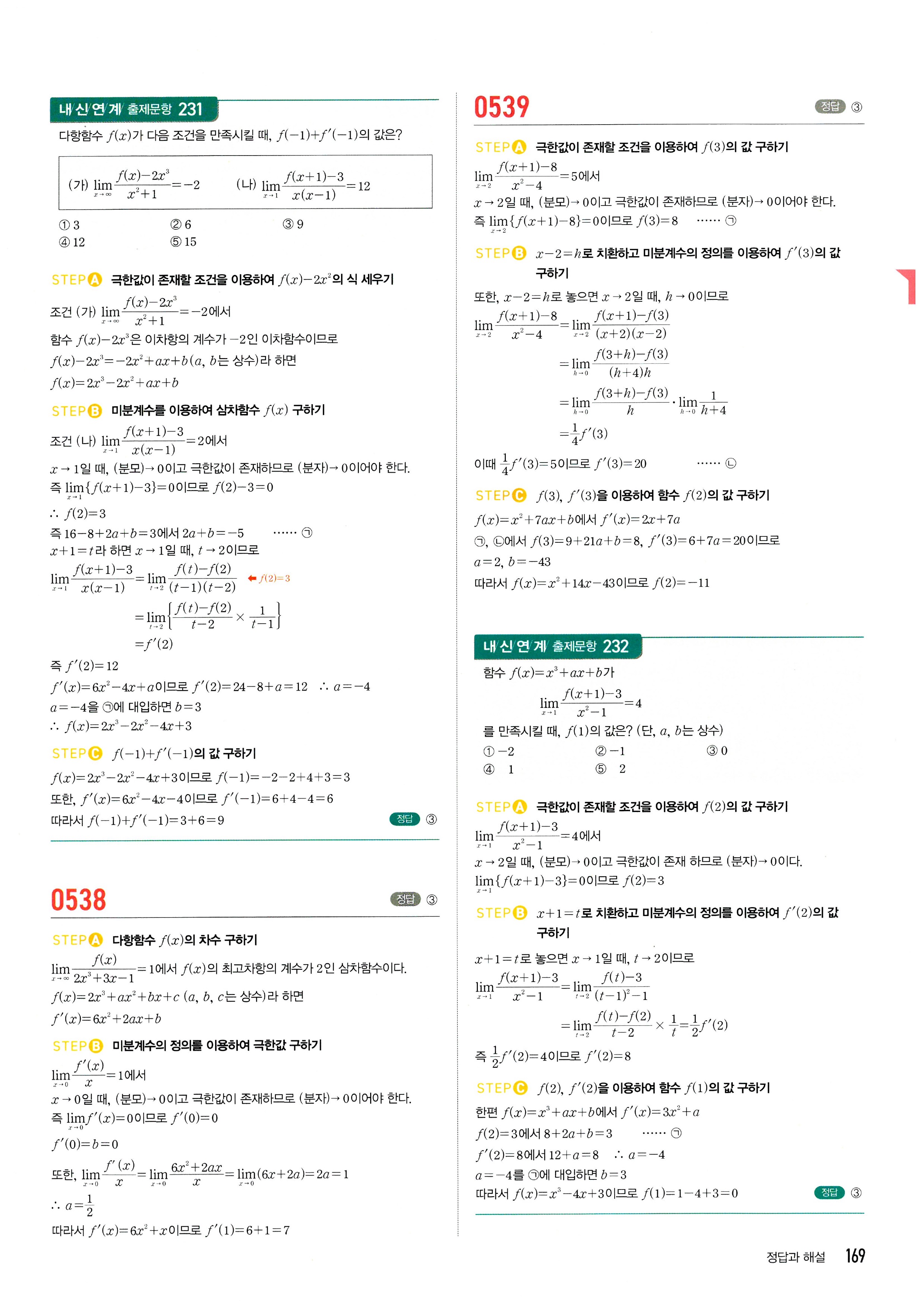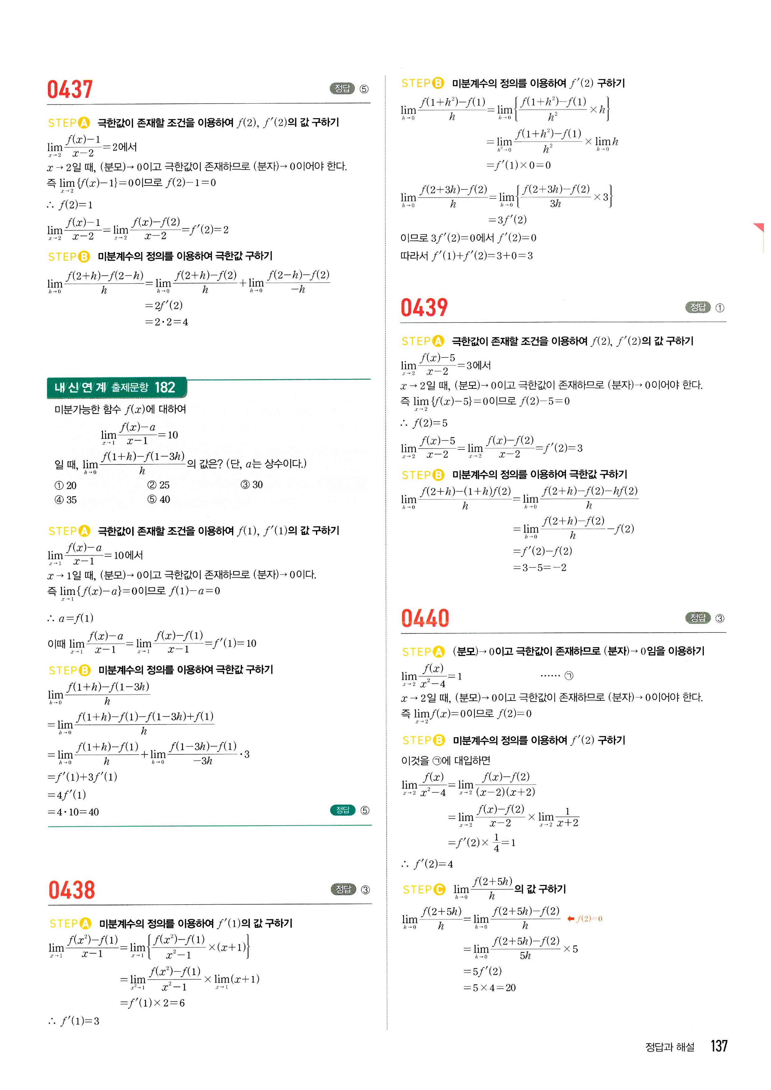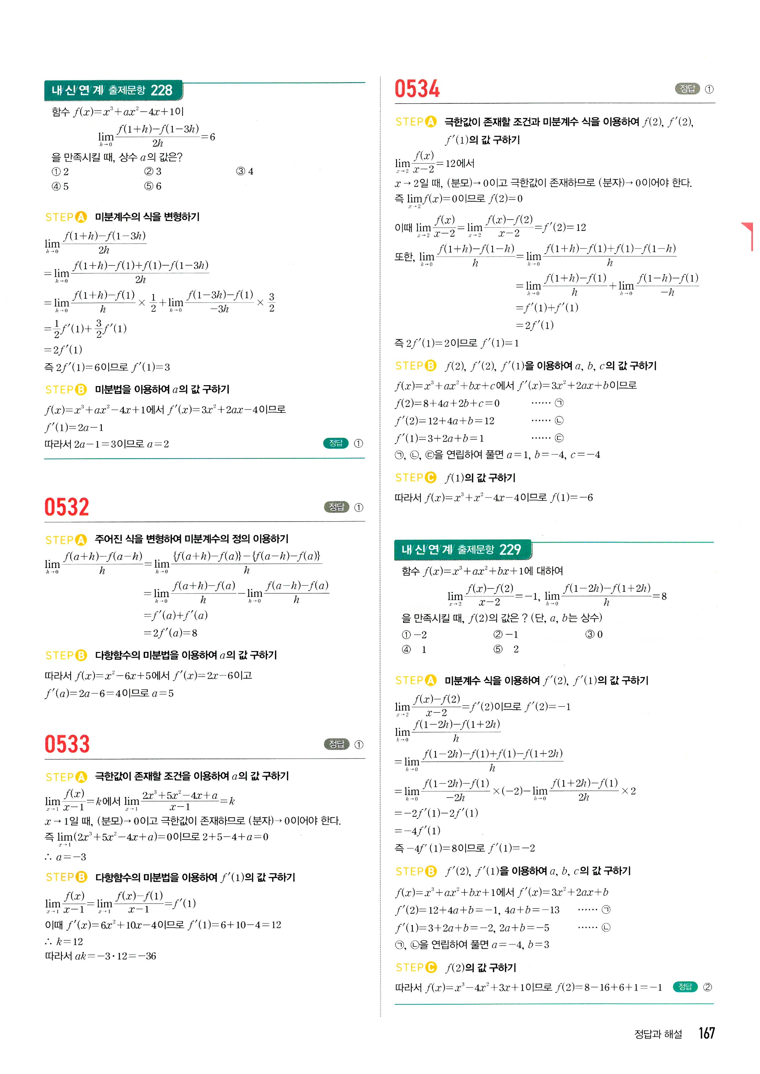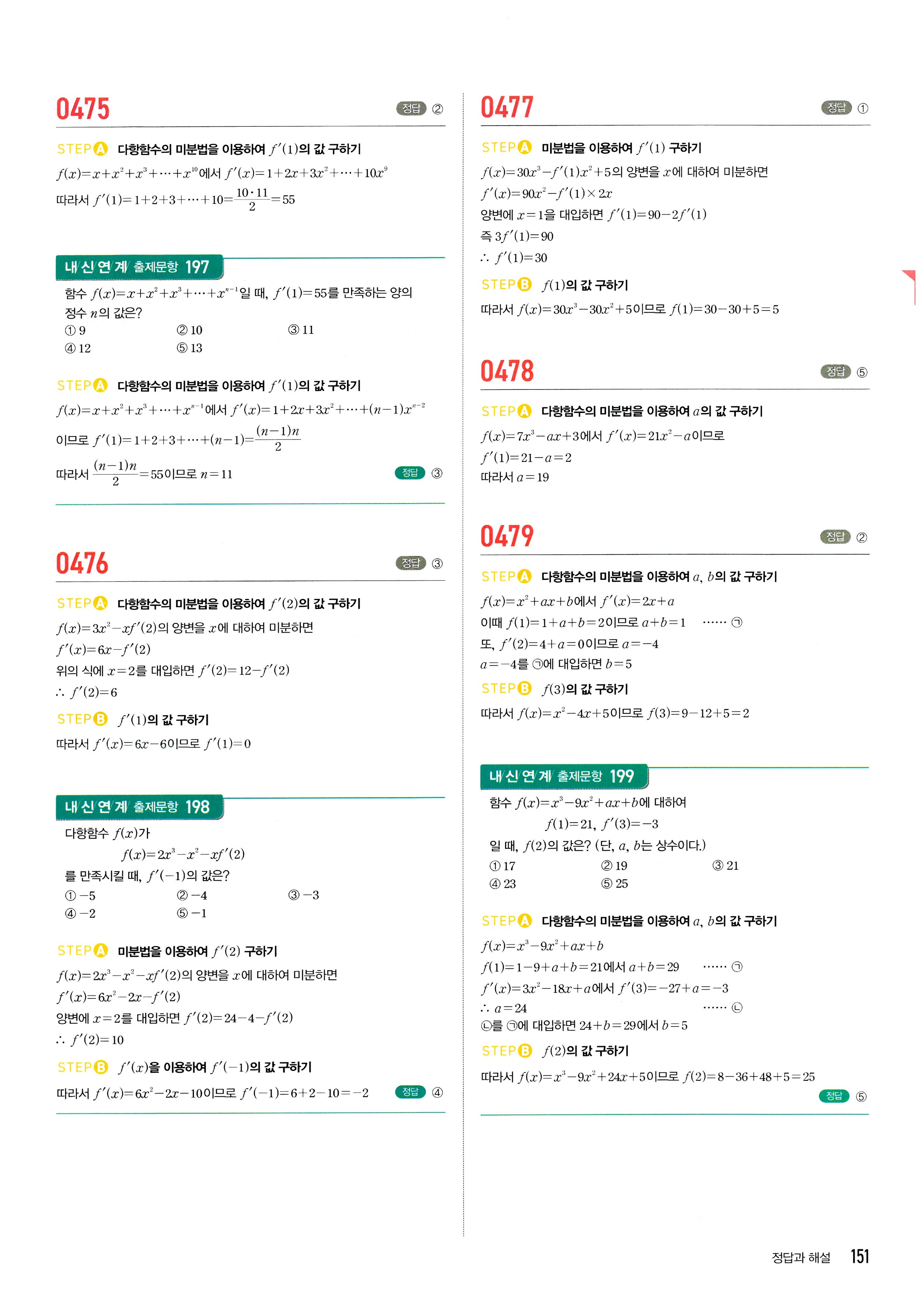 마플시너지 수학2 답지 2-1미분계수와도함수