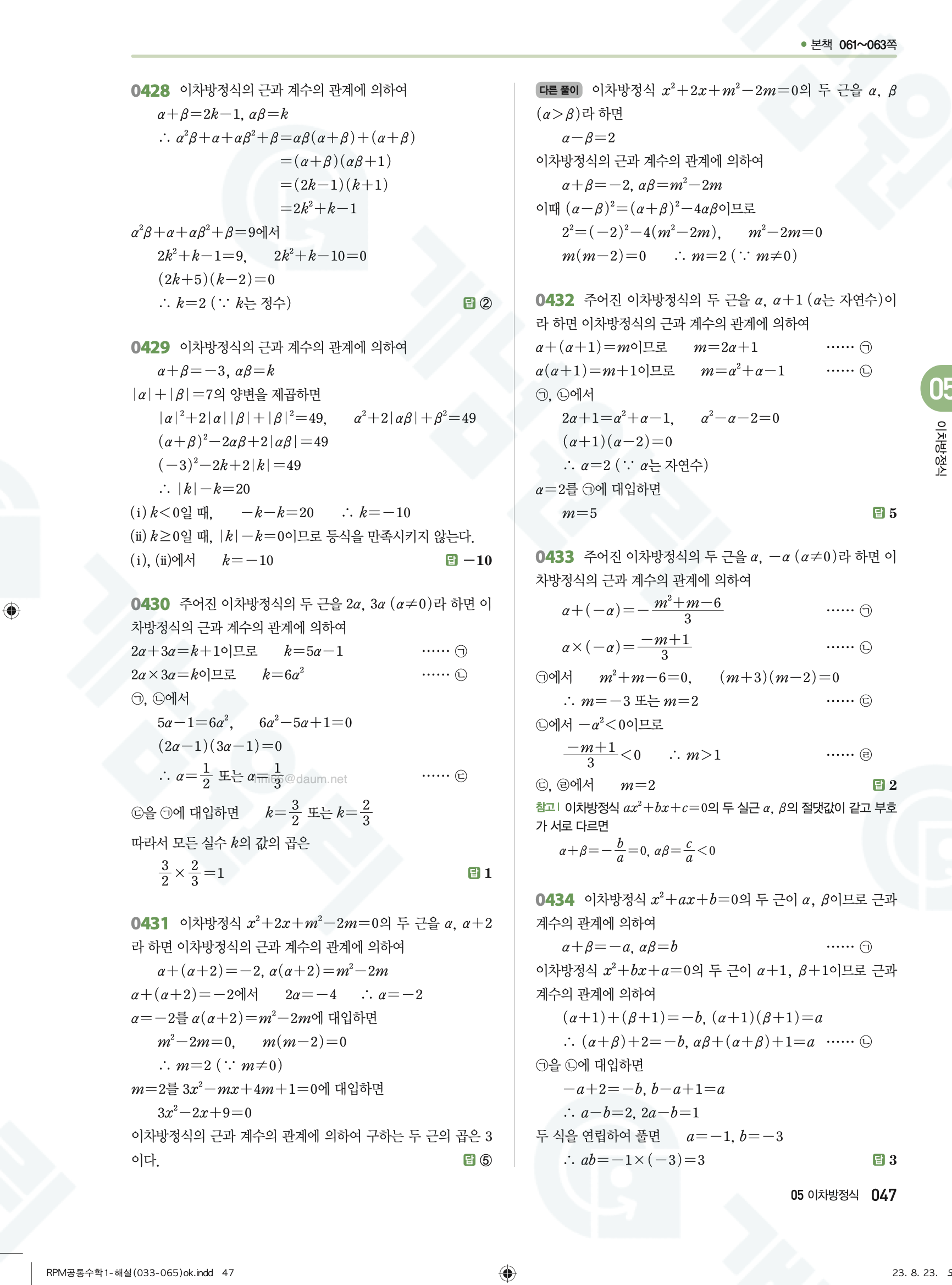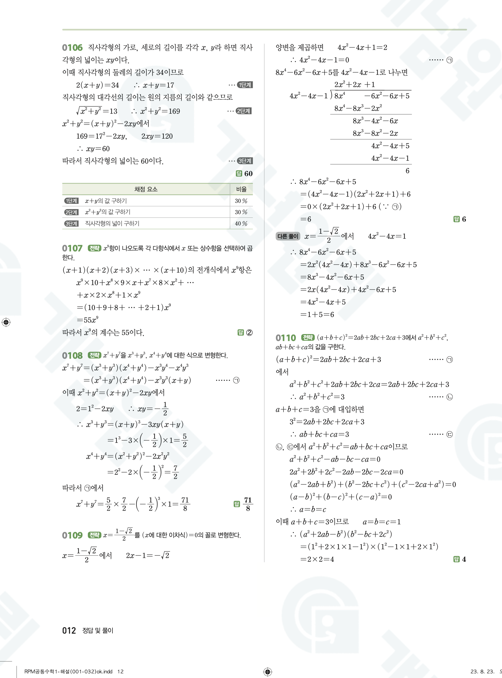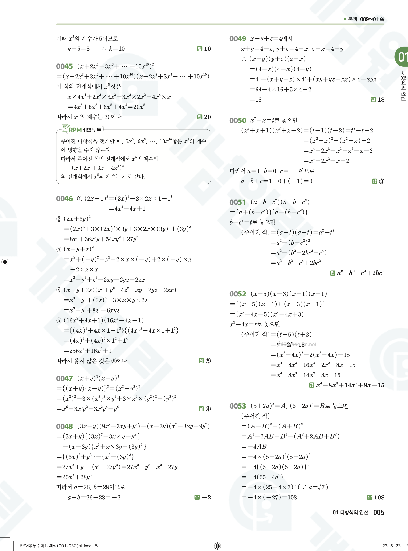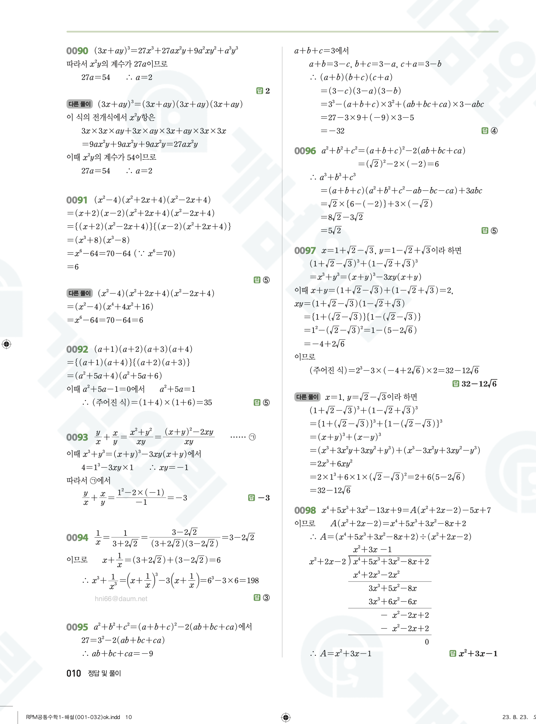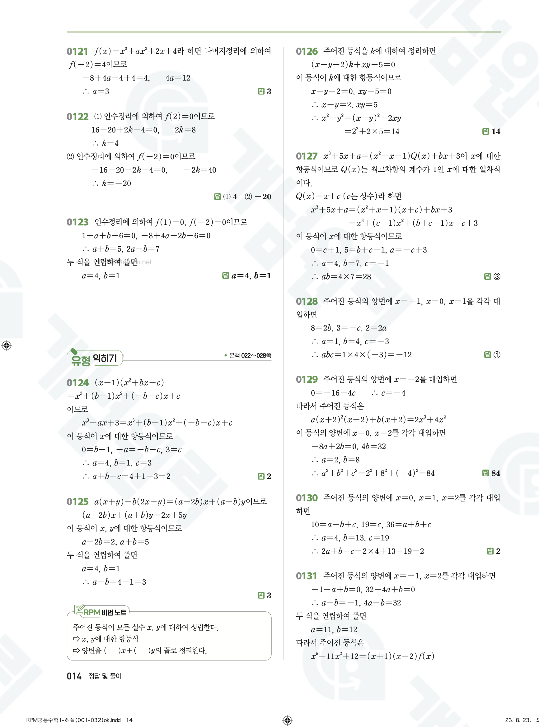 📥 알피엠 RPM 공통수학1 답지 해설 풀이 빠른답지 PDF 다운로드