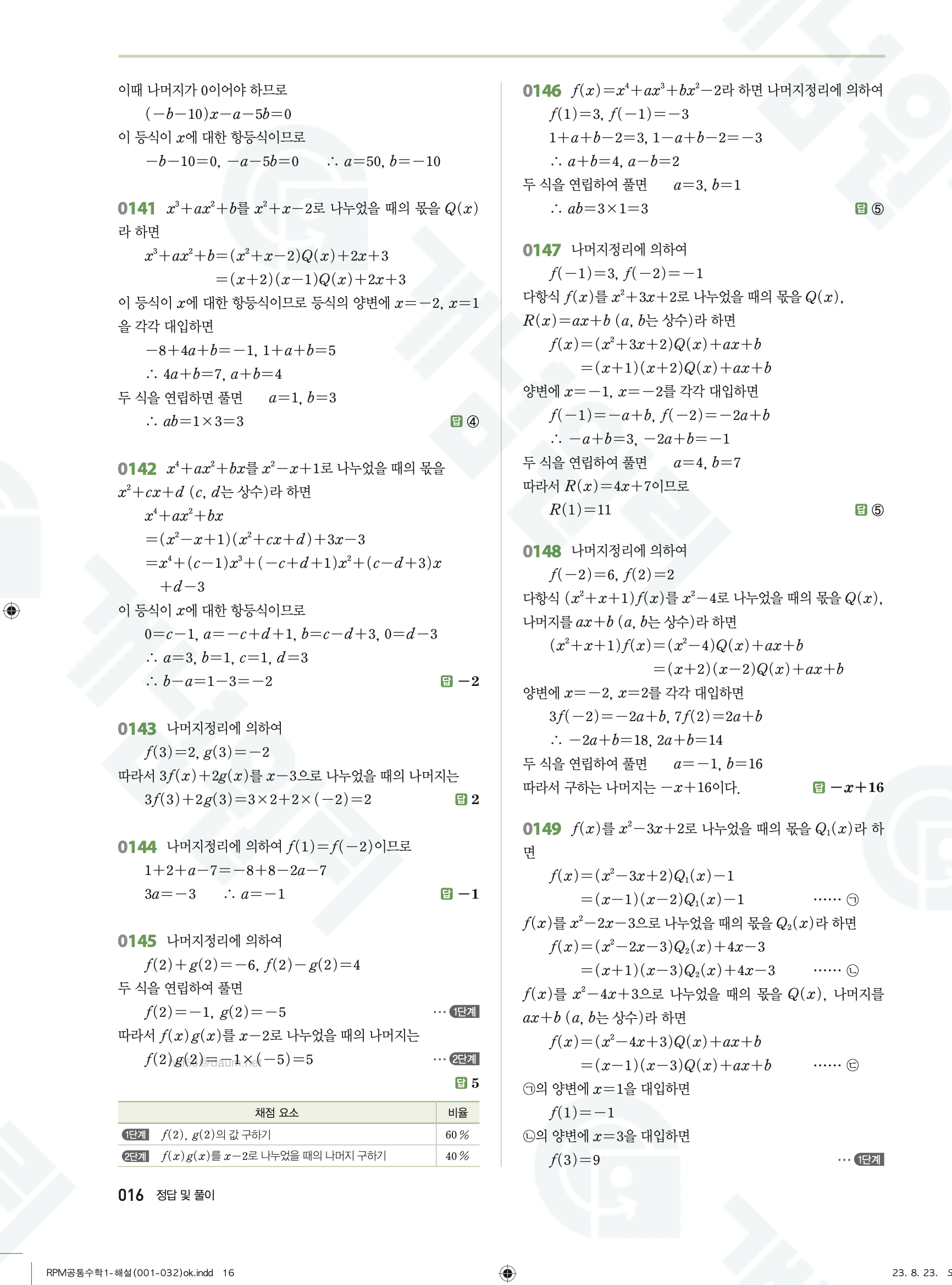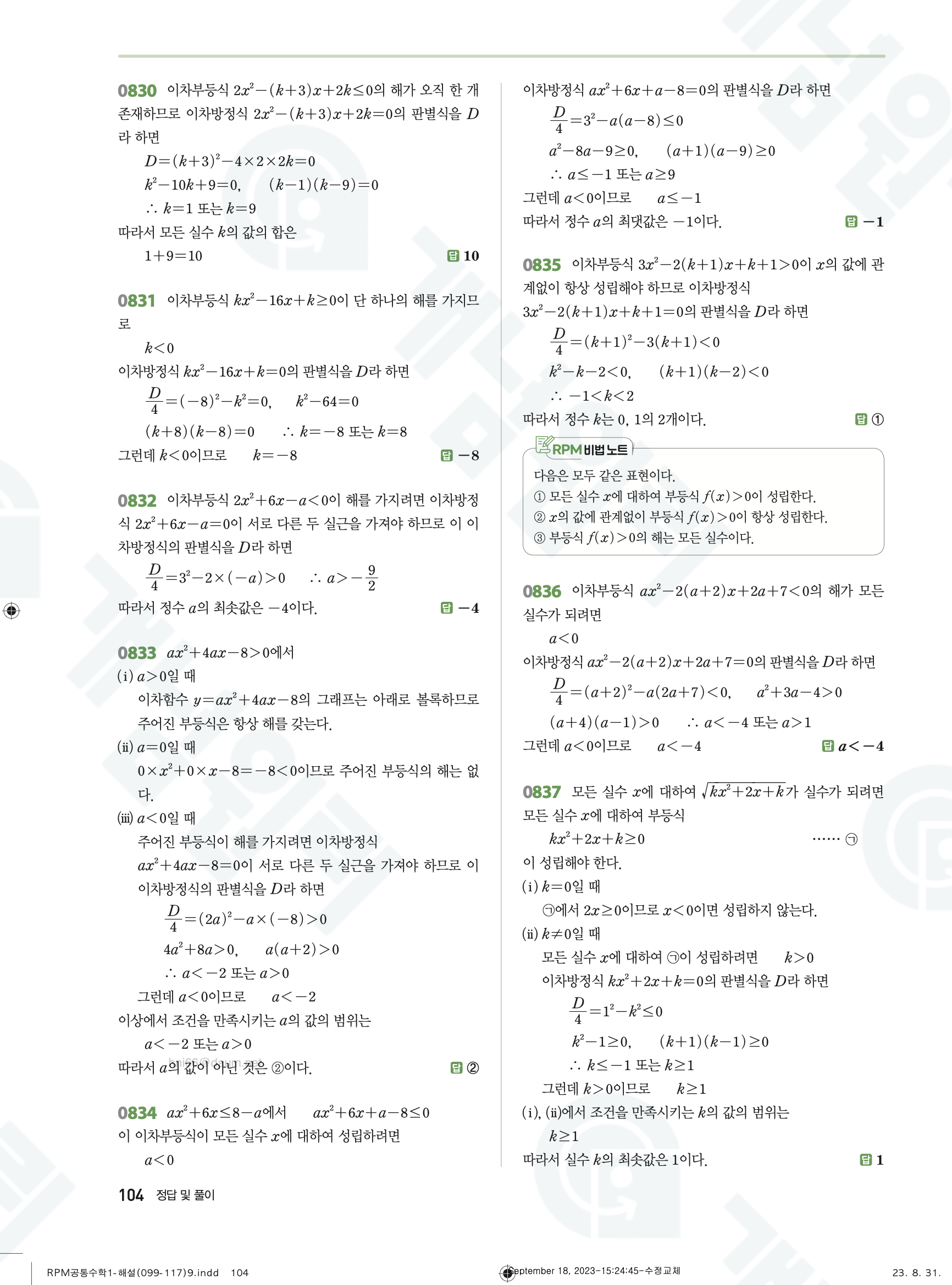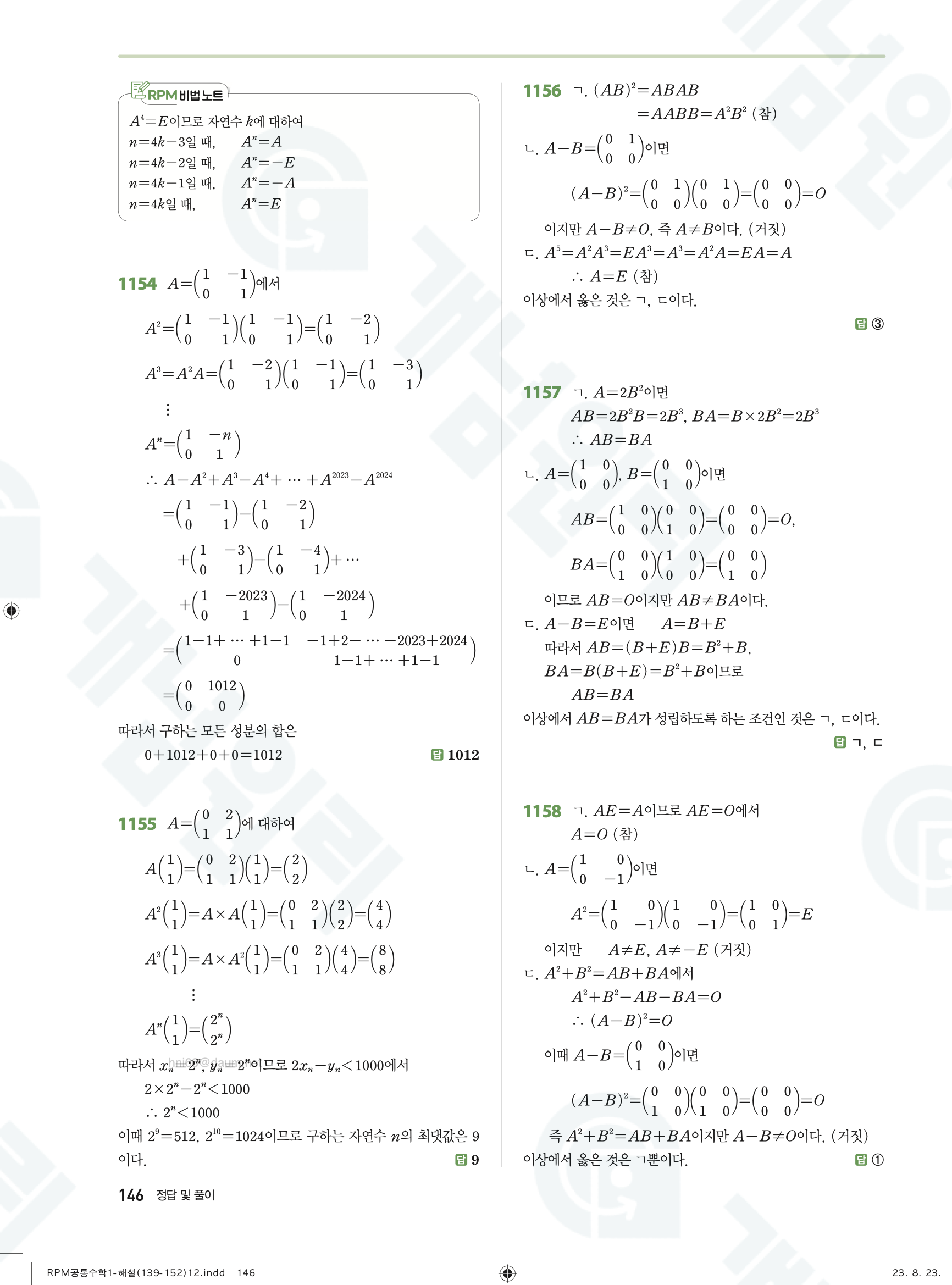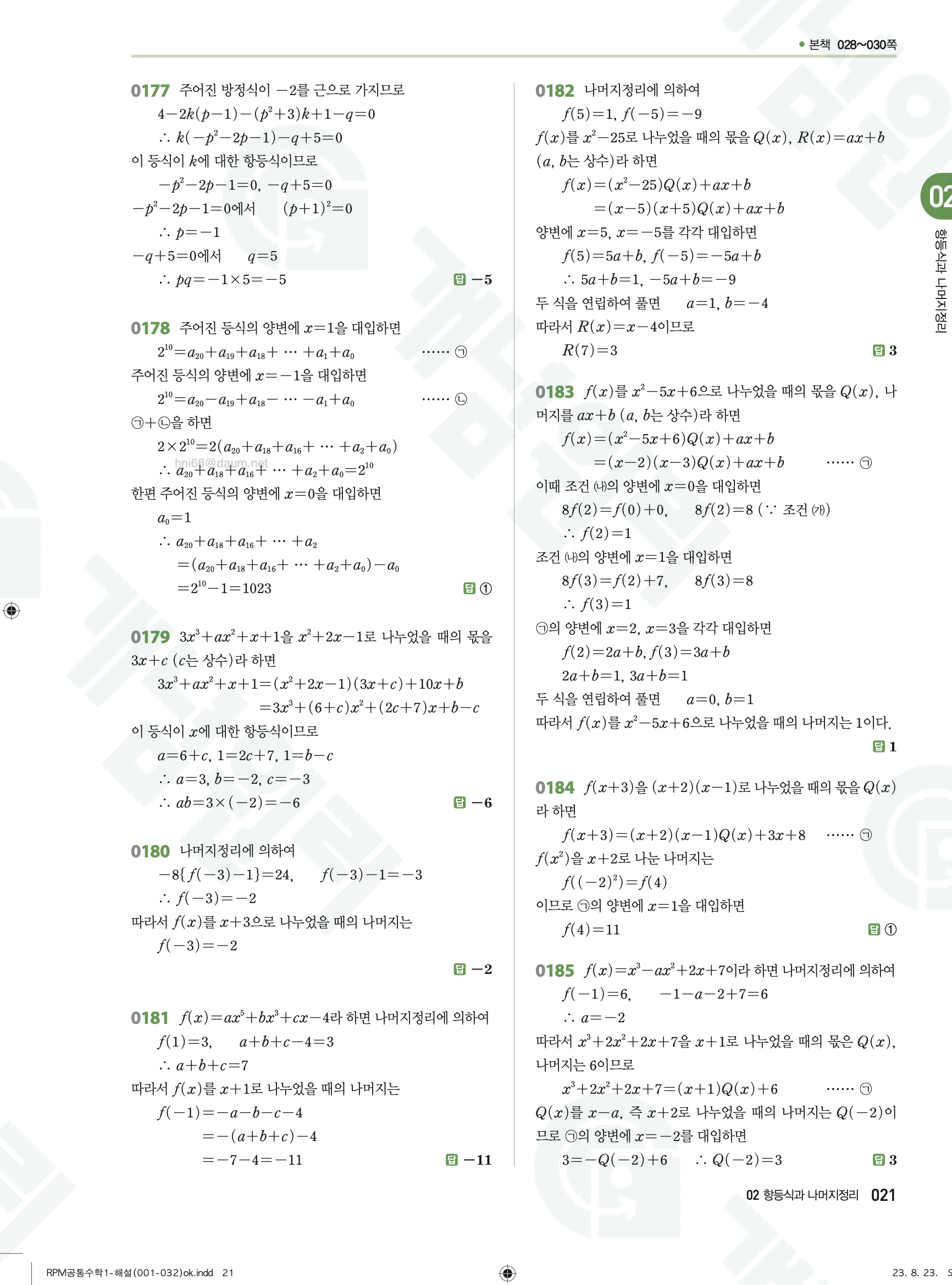 📥 알피엠 RPM 공통수학1 답지 해설 풀이 빠른답지 PDF 다운로드